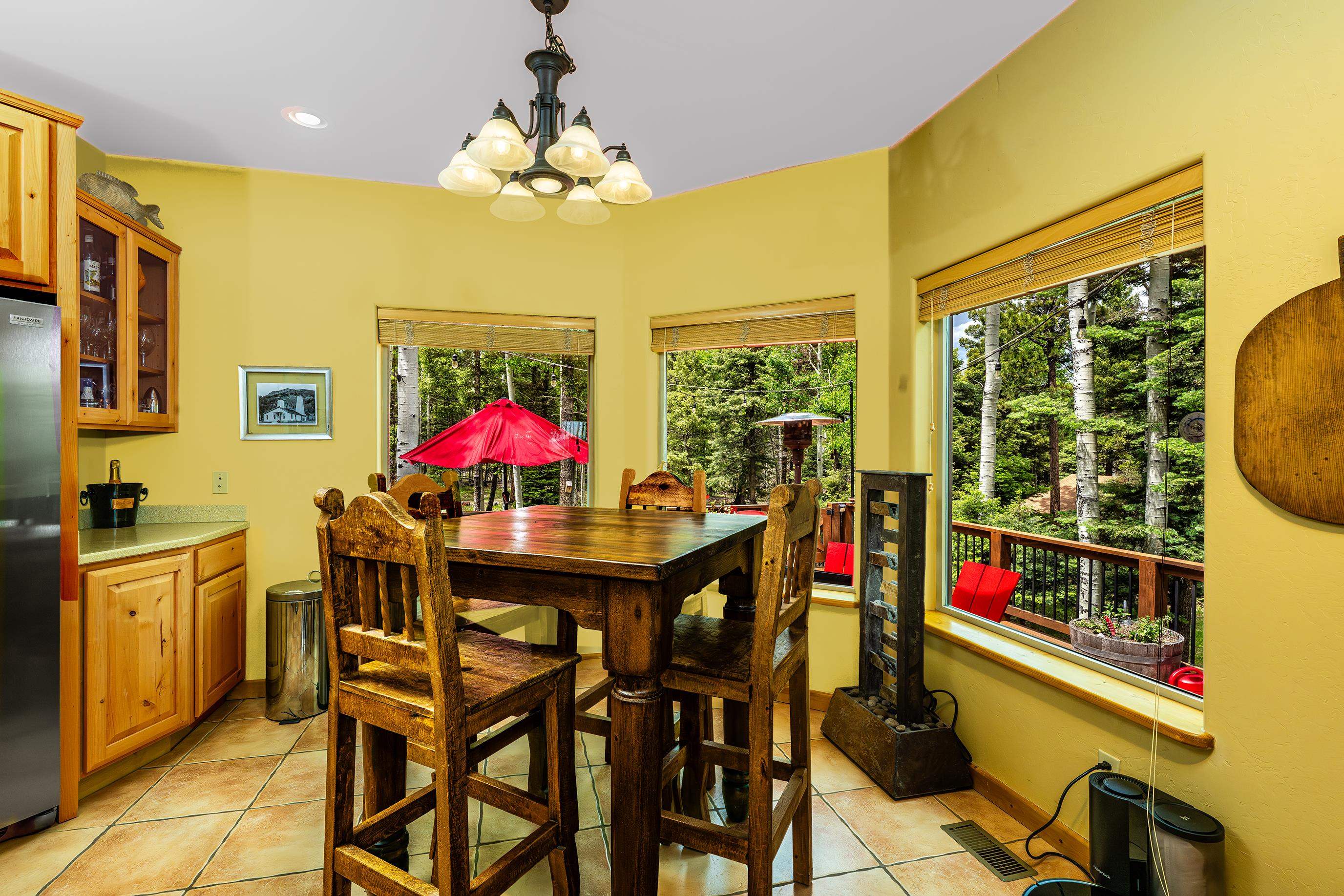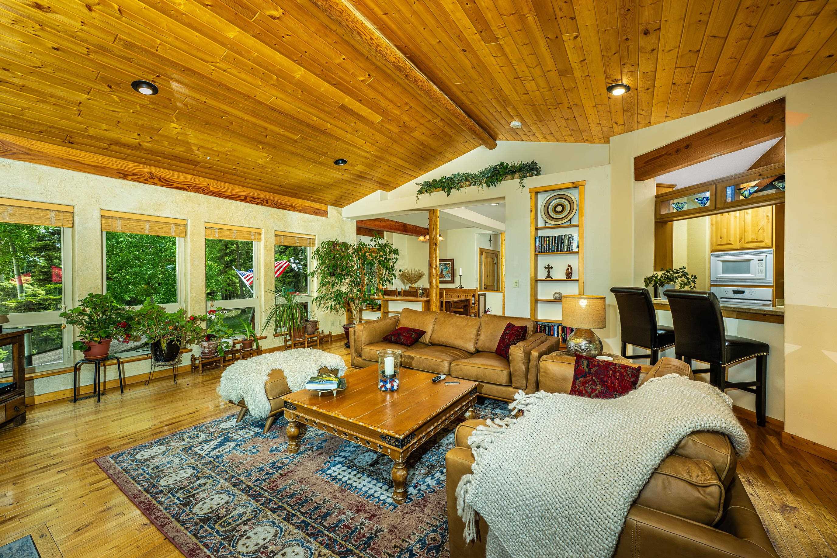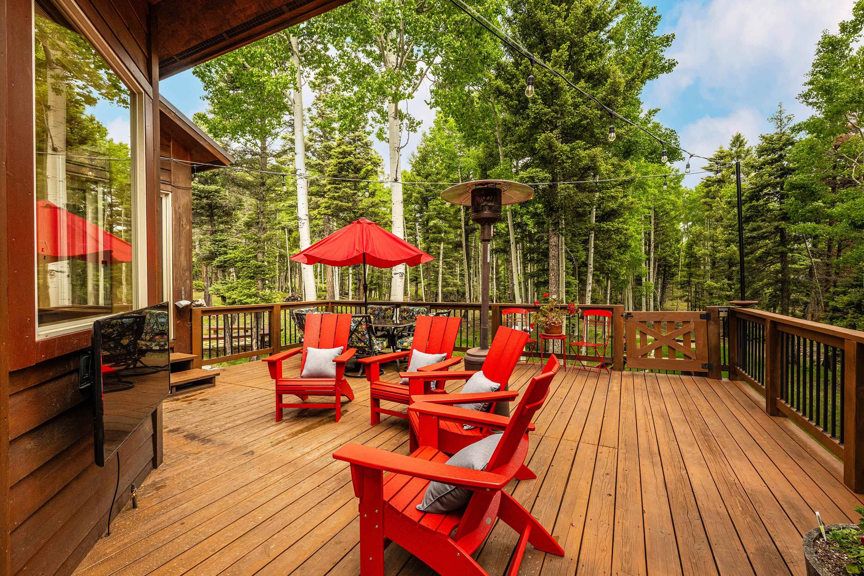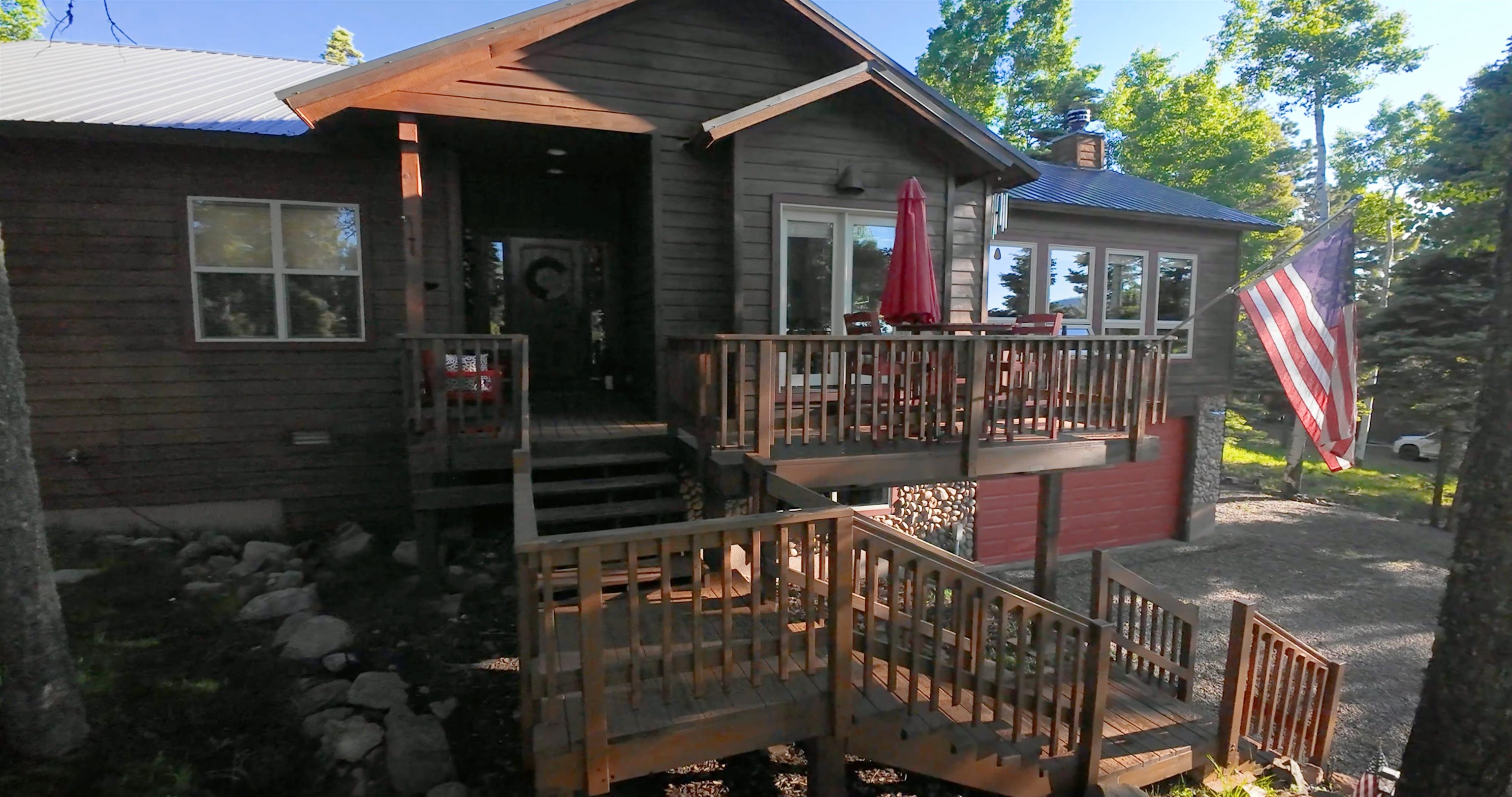 Sophisticated Southwest Retreat. Step into timeless elegance with this beautifully appointed home. Rich wood floors and stylish tile flow seamlessly throughout, creating a warm and inviting ambiance. Well-designed kitchen, featuring quality finishes and ample counter space, perfect for the culinary enthusiast. Enjoy casual meals in the sunny breakfast area or quick bites at the convenient breakfast bar. For special gatherings, the formal dining room provides the ideal setting for large family dinners.The spacious living room is a showstopper, anchored by a grand Southwest-style fireplace that offers both beauty and warmth. The luxurious master suite is a private haven, complete with access to the deck area, a generous walk-in closet, and a spa like jetted jacuzzi tub. A dedicated office space provides a quiet area for work or study, while a separate workout room supports your active lifestyle. Step outside into your personal oasis--an amazing backyard featuring lush green grass, a custom horseshoe pit, a comfortable seating area with a firepit, and an impressive outdoor living deck space equipped with a TV, ideal for entertaining and watching your favorite sports under the stars. Additional features include a spacious two-car garage, a large laundry room with a utility sink for added convenience, a front deck, and a 9 hole frisbee golf course. This home offers the perfect blend of sophisticated design and laid-back Southwest living.