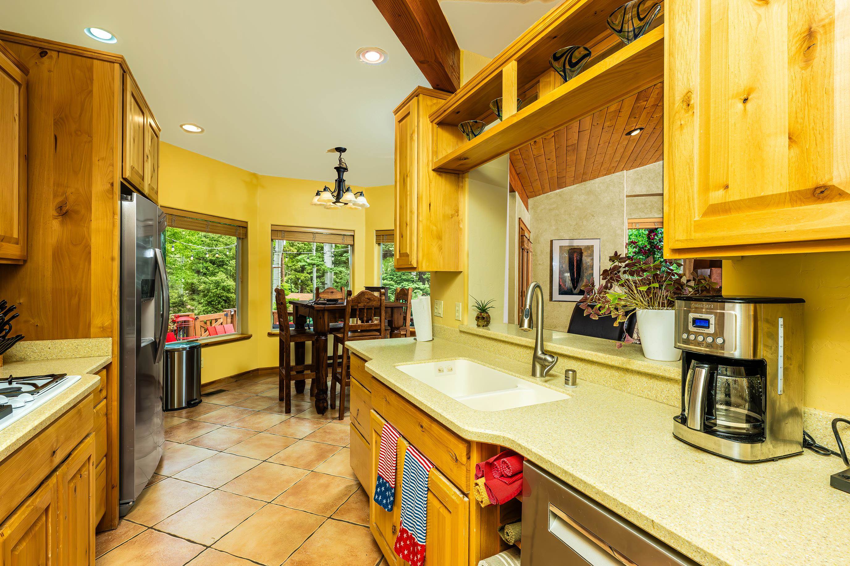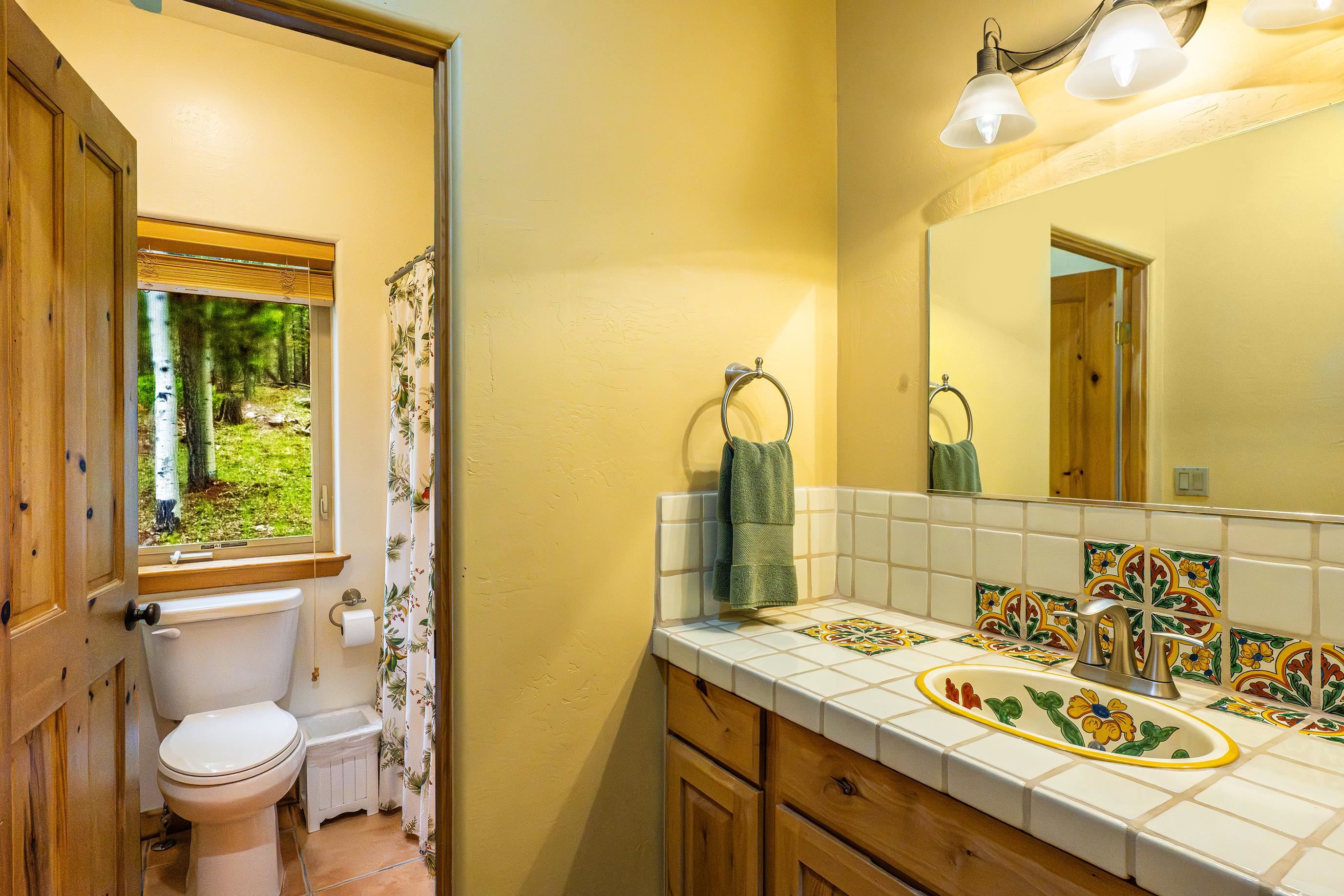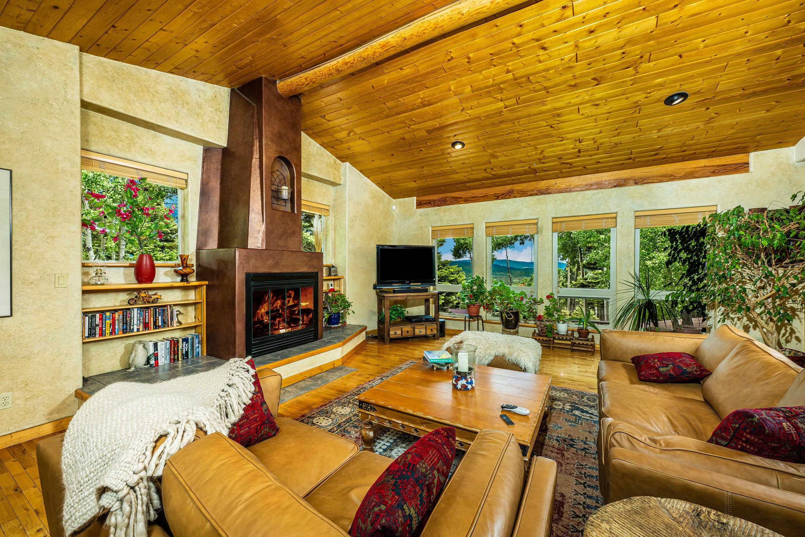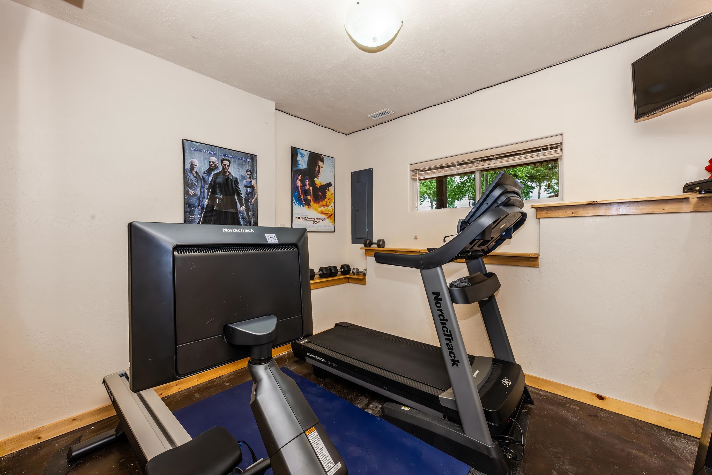 Sophisticated Southwest Retreat. Step into timeless elegance with this beautifully appointed home. Rich wood floors and stylish tile flow seamlessly throughout, creating a warm and inviting ambiance. Well-designed kitchen, featuring quality finishes and ample counter space, perfect for the culinary enthusiast. Enjoy casual meals in the sunny breakfast area or quick bites at the convenient breakfast bar. For special gatherings, the formal dining room provides the ideal setting for large family dinners.The spacious living room is a showstopper, anchored by a grand Southwest-style fireplace that offers both beauty and warmth. The luxurious master suite is a private haven, complete with access to the deck area, a generous walk-in closet, and a spa like jetted jacuzzi tub. A dedicated office space provides a quiet area for work or study, while a separate workout room supports your active lifestyle. Step outside into your personal oasis--an amazing backyard featuring lush green grass, a custom horseshoe pit, a comfortable seating area with a firepit, and an impressive outdoor living deck space equipped with a TV, ideal for entertaining and watching your favorite sports under the stars. Additional features include a spacious two-car garage, a large laundry room with a utility sink for added convenience, a front deck, and a 9 hole frisbee golf course. This home offers the perfect blend of sophisticated design and laid-back Southwest living.