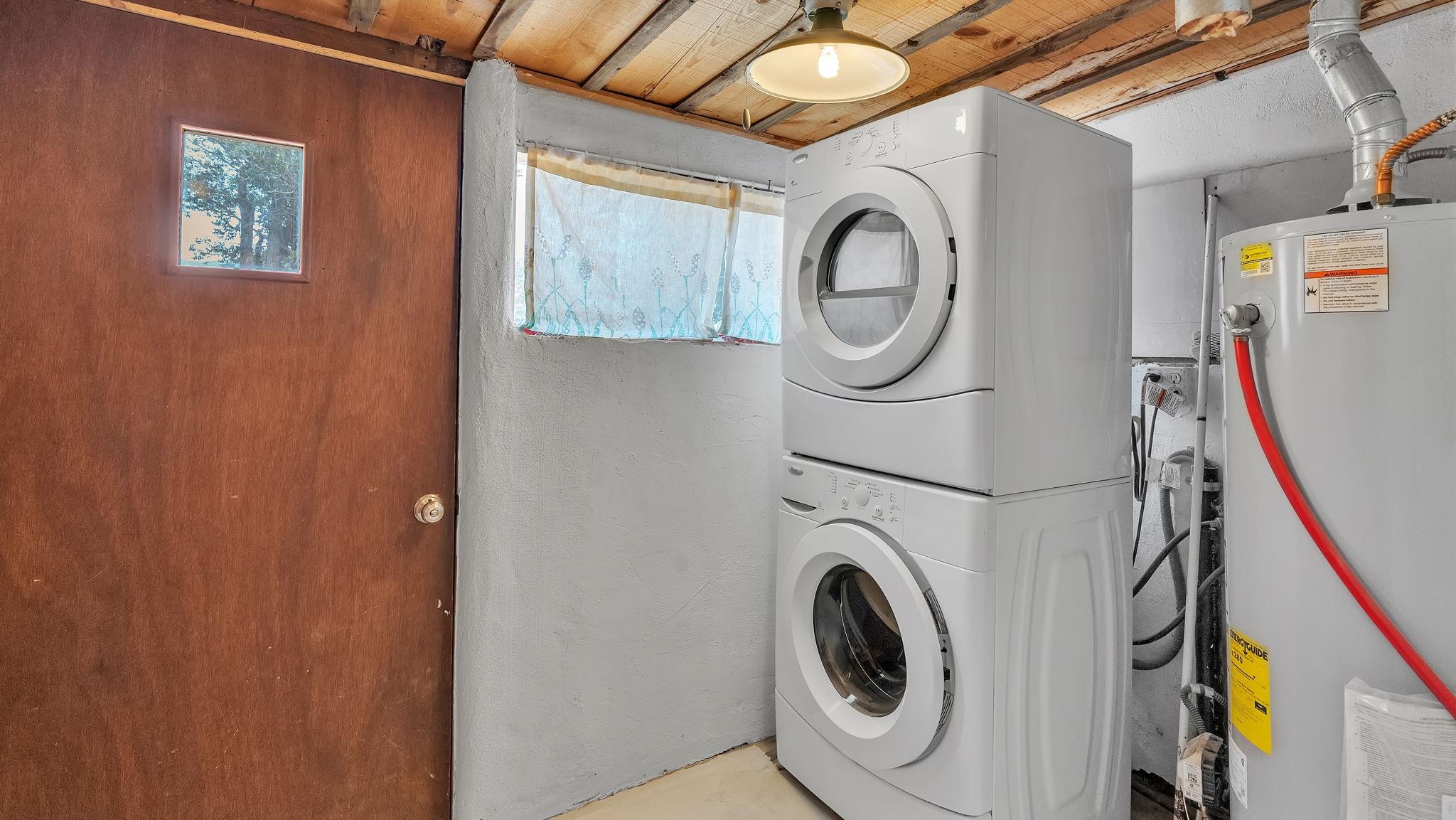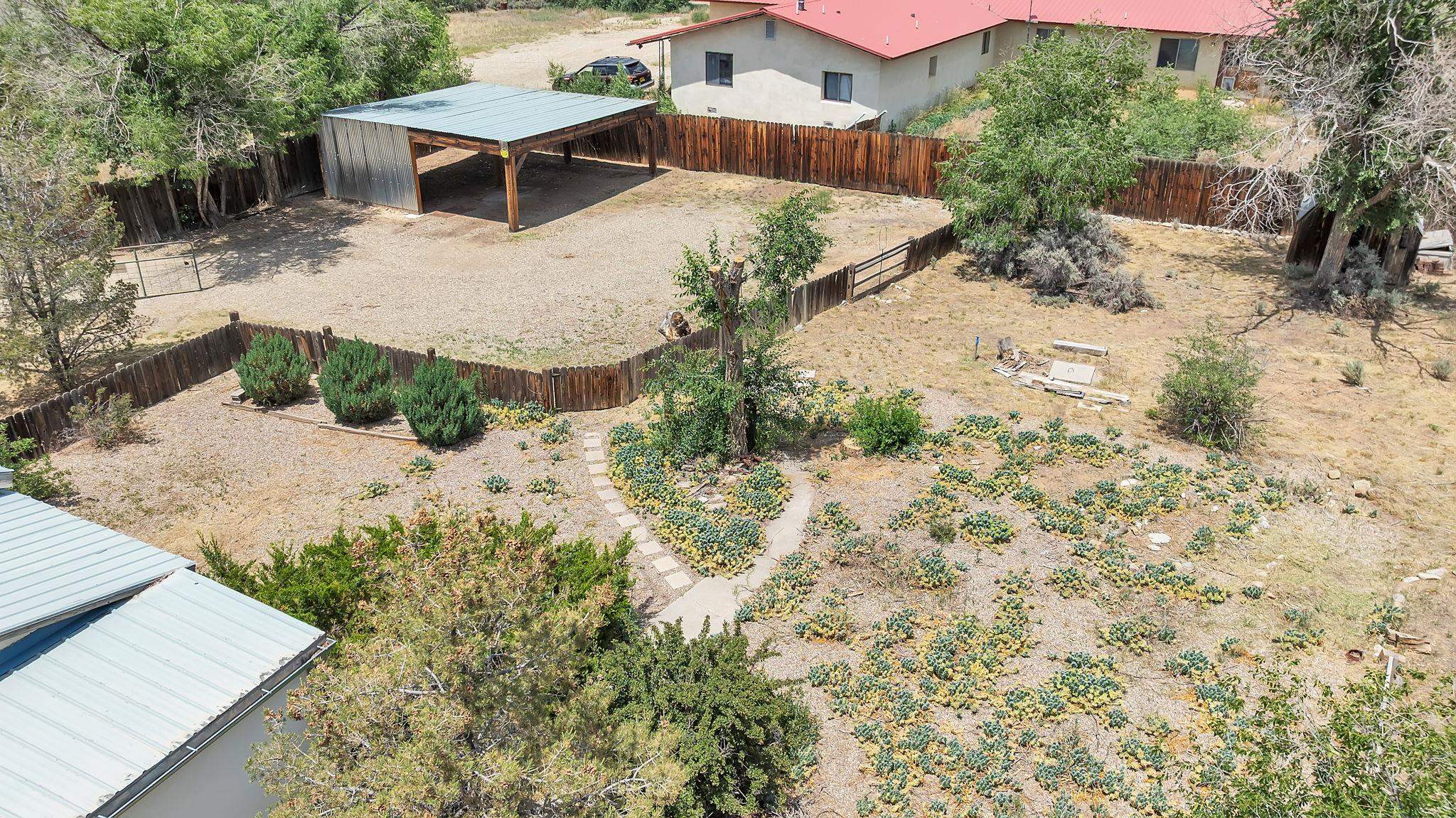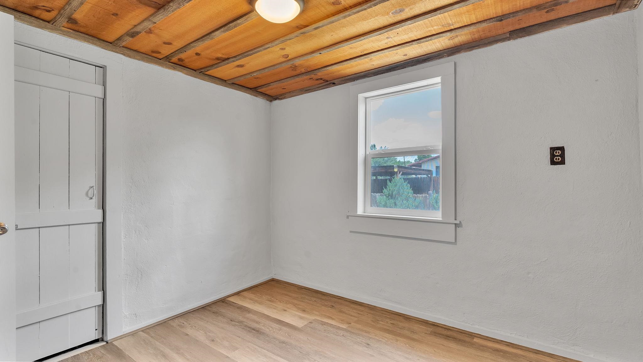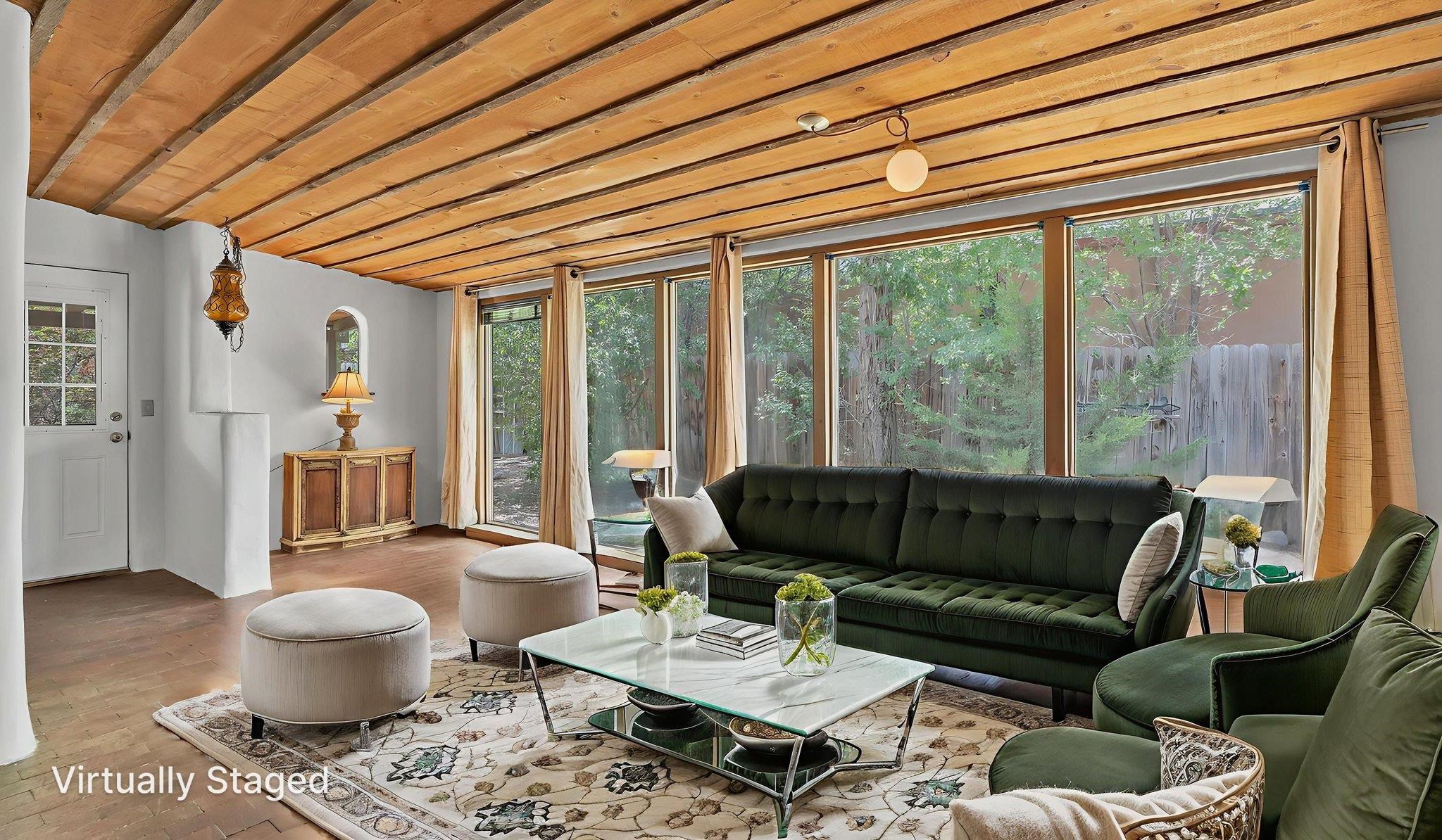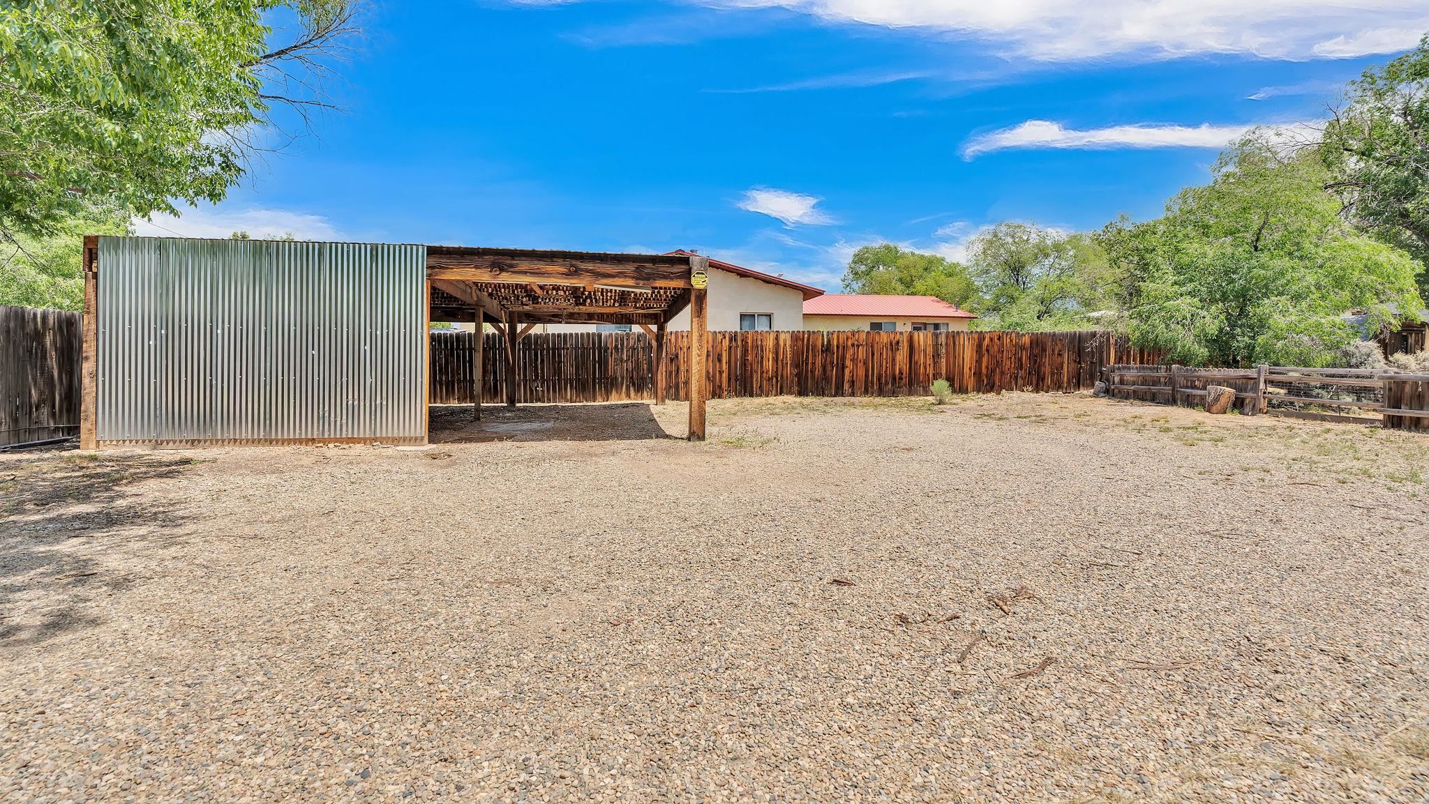A Special Property with a Yard Just Minutes from Downtown Taos ~ Tucked at the end of a private road in Town, you will stumble upon this wonderful 3 bedroom, 1.5 bath residence with a spacious gated yard and large carport. This rare town gem with mature greenery surrounding is a home that offers unrivaled tranquility moments from the vibrant Taos Plaza, restaurants, shopping, schools, doctors, and many outlets to NATURE. Through the chainlink fence into the second contained yard area then enter the residence through a rustic front door to an incredibly warm and loving space. First, the living room with its inviting brick floors, efficient south-facing windows that flood the entire front area with natural light and passive solar heat, and a fantastic natural gas heater strong enough to warm the home by itself that ideally compliments the sunshine. The residence possesses unique South Western architectural features, with subtle farm-style touches such as rustic wood ceilings found throughout the home. In the large primary bedroom you will find a traditional wood-burning fireplace with a bancito, updated thermopane windows also found in other rooms, and a generous walk-in closet. In to the bright and updated kitchen where culinary delights will be crated on the daile, followed by two additional cozy bedrooms, two tastefully renovated bathrooms that add a feeling of extra freshness to the space, and a fully functional laundry room with practically brand new units. Beyond the home's endless interior potential, the outdoor's surrounding offer equal opportunity with plenty of room to garden, xeriscape, landscape, or leave it as is; whatever you, the kids, and pets desire. Around the corner, explore world-class art galleries, hit the slopes at Taos Ski Valley, fish the Rio Grande, or immerse yourself in the rich culture and history of the region. The home has been virtually staged to spark creativity. There's not many places as convenient, maintained, an ready-to-go than 121 Cruz Alta, so be sure you don't miss the opportunity.