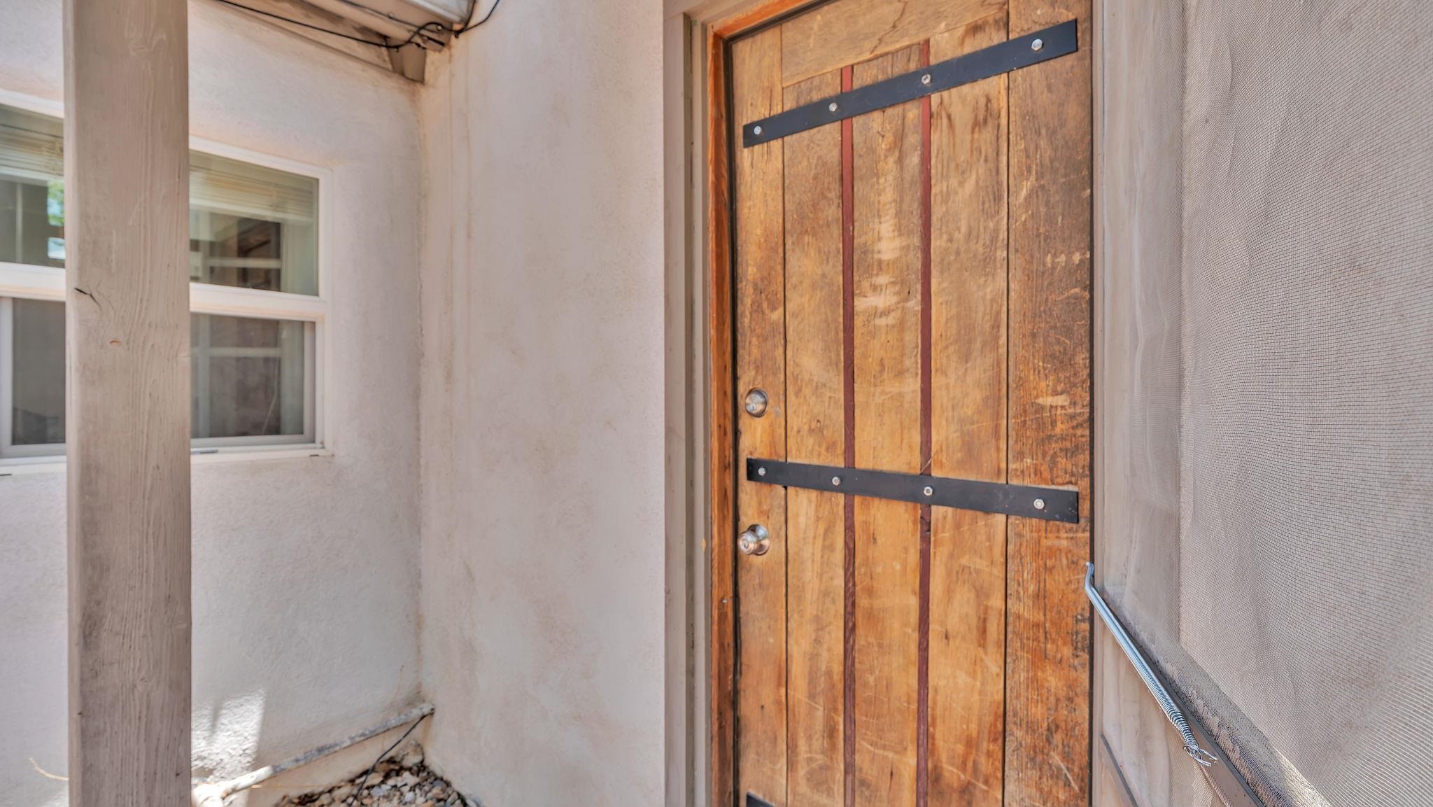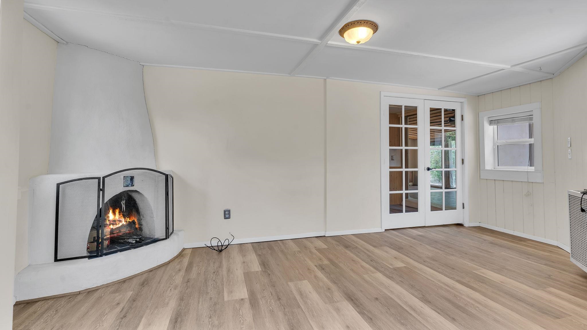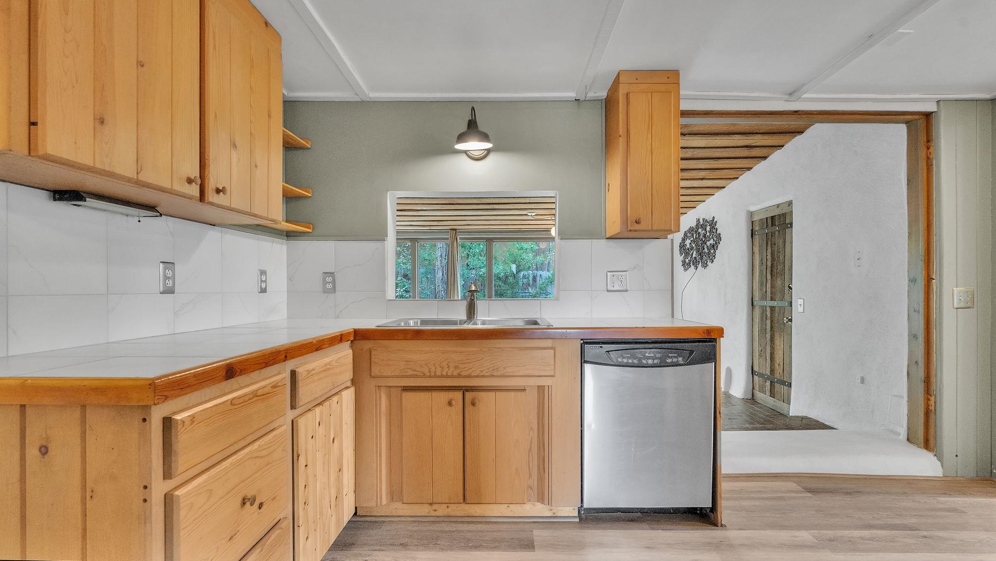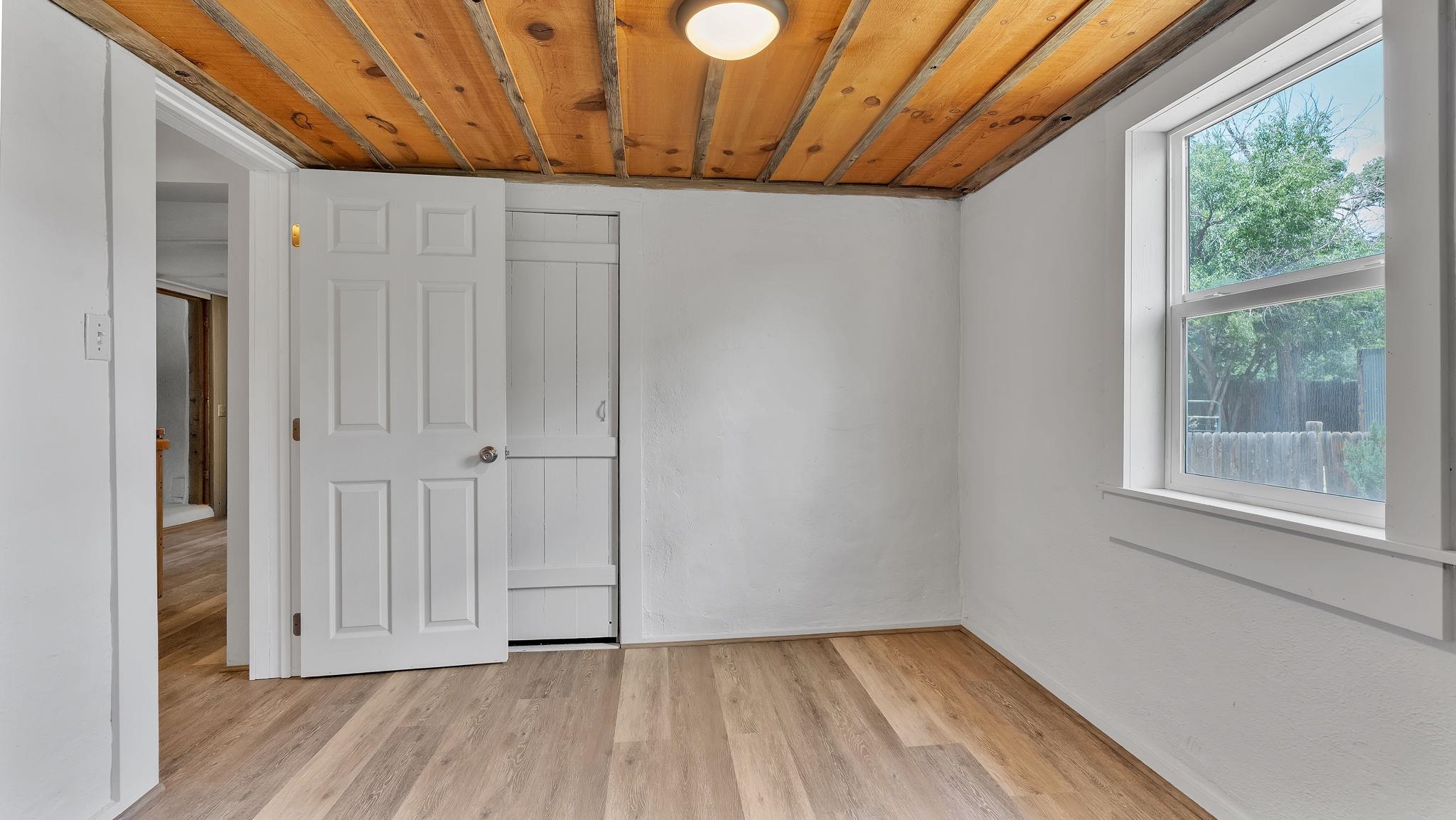 A Special Property with a Yard Just Minutes from Downtown Taos ~ Tucked at the end of a private road in Town, you will stumble upon this wonderful 3 bedroom, 1.5 bath residence with a spacious gated yard and large carport. This rare town gem with mature greenery surrounding is a home that offers unrivaled tranquility moments from the vibrant Taos Plaza, restaurants, shopping, schools, doctors, and many outlets to NATURE. Through the chainlink fence into the second contained yard area then enter the residence through a rustic front door to an incredibly warm and loving space. First, the living room with its inviting brick floors, efficient south-facing windows that flood the entire front area with natural light and passive solar heat, and a fantastic natural gas heater strong enough to warm the home by itself that ideally compliments the sunshine. The residence possesses unique South Western architectural features, with subtle farm-style touches such as rustic wood ceilings found throughout the home. In the large primary bedroom you will find a traditional wood-burning fireplace with a bancito, updated thermopane windows also found in other rooms, and a generous walk-in closet. In to the bright and updated kitchen where culinary delights will be crated on the daile, followed by two additional cozy bedrooms, two tastefully renovated bathrooms that add a feeling of extra freshness to the space, and a fully functional laundry room with practically brand new units. Beyond the home's endless interior potential, the outdoor's surrounding offer equal opportunity with plenty of room to garden, xeriscape, landscape, or leave it as is; whatever you, the kids, and pets desire. Around the corner, explore world-class art galleries, hit the slopes at Taos Ski Valley, fish the Rio Grande, or immerse yourself in the rich culture and history of the region. The home has been virtually staged to spark creativity. There's not many places as convenient, maintained, an ready-to-go than 121 Cruz Alta, so be sure you don't miss the opportunity.