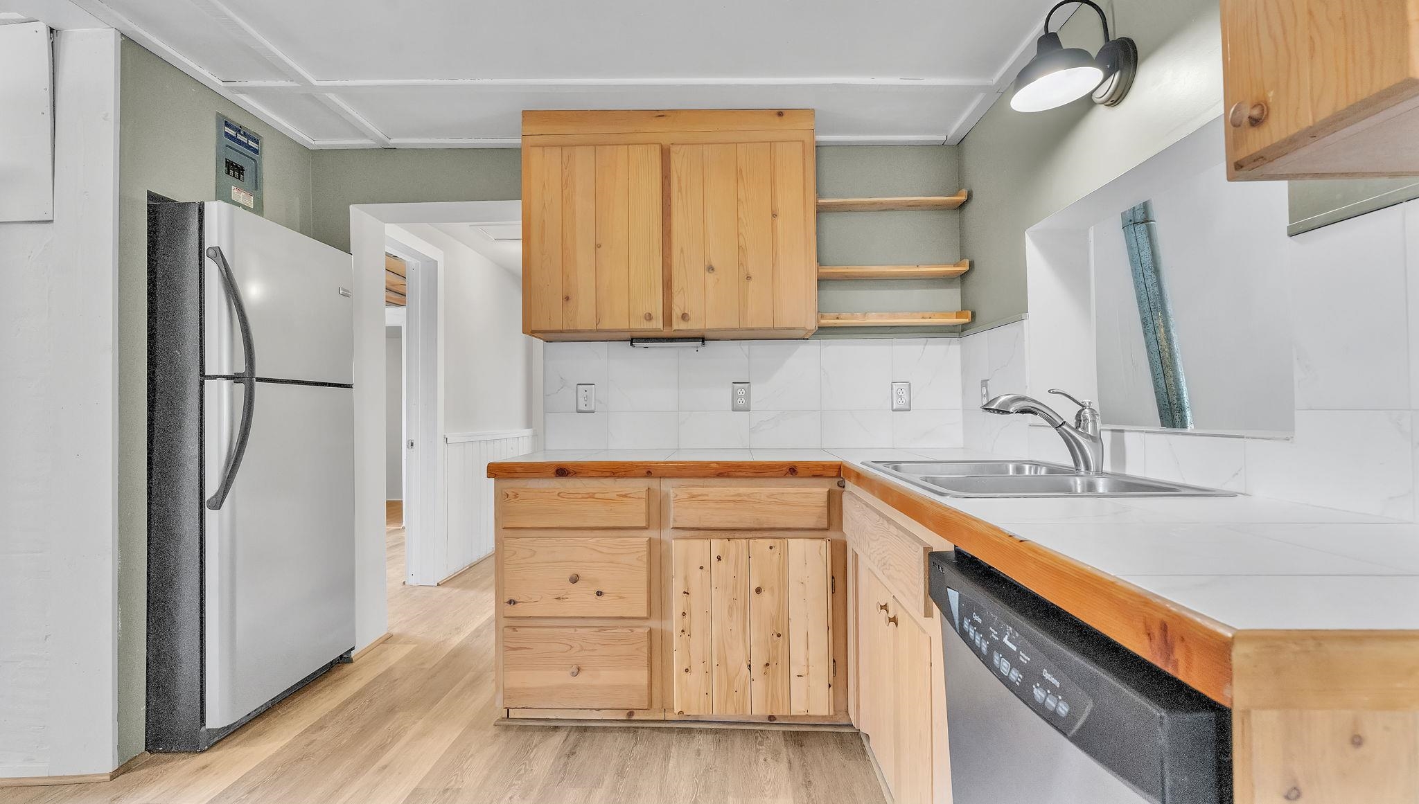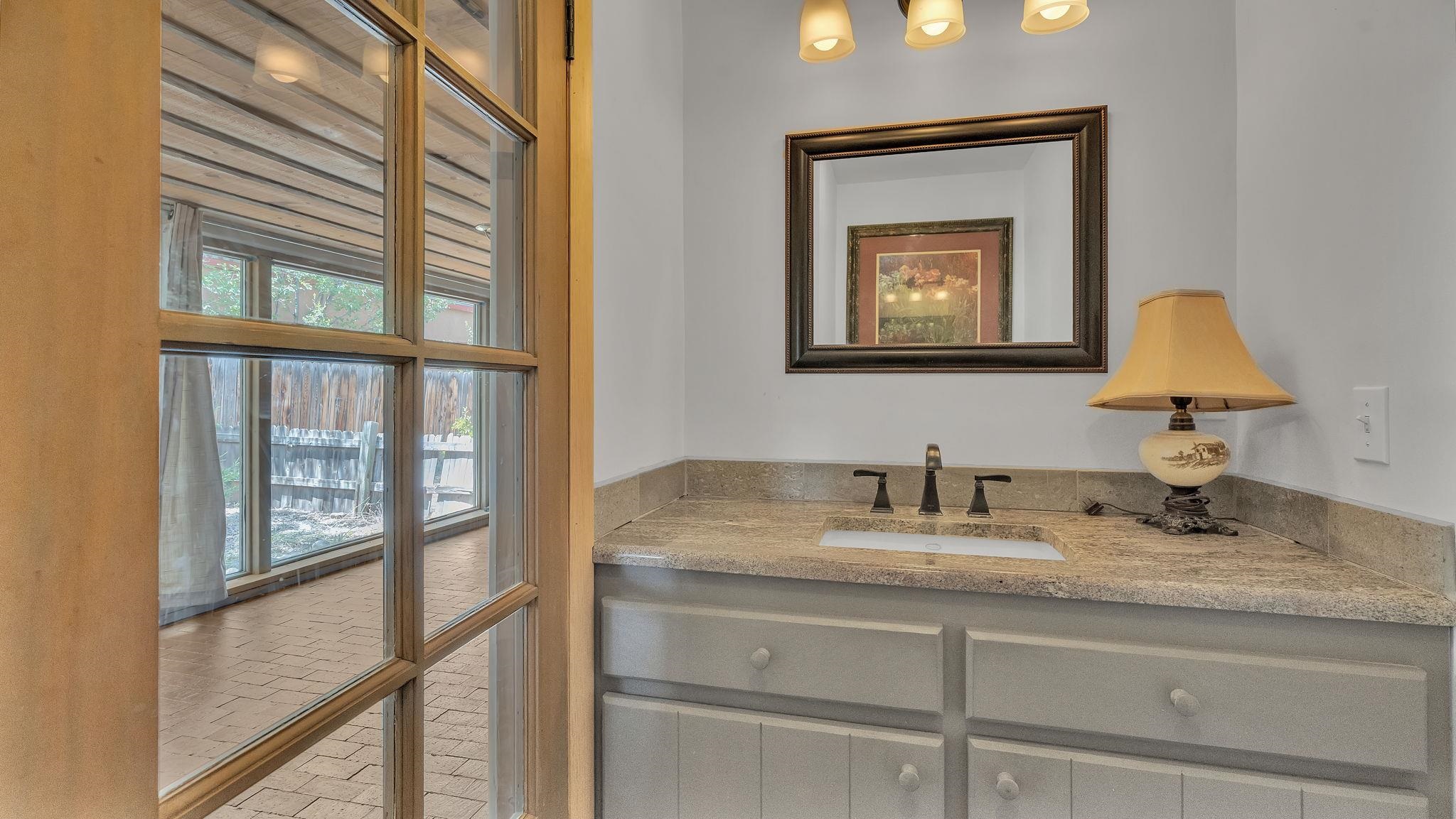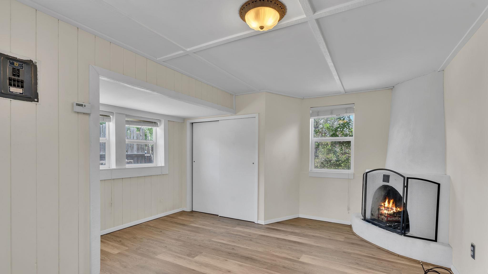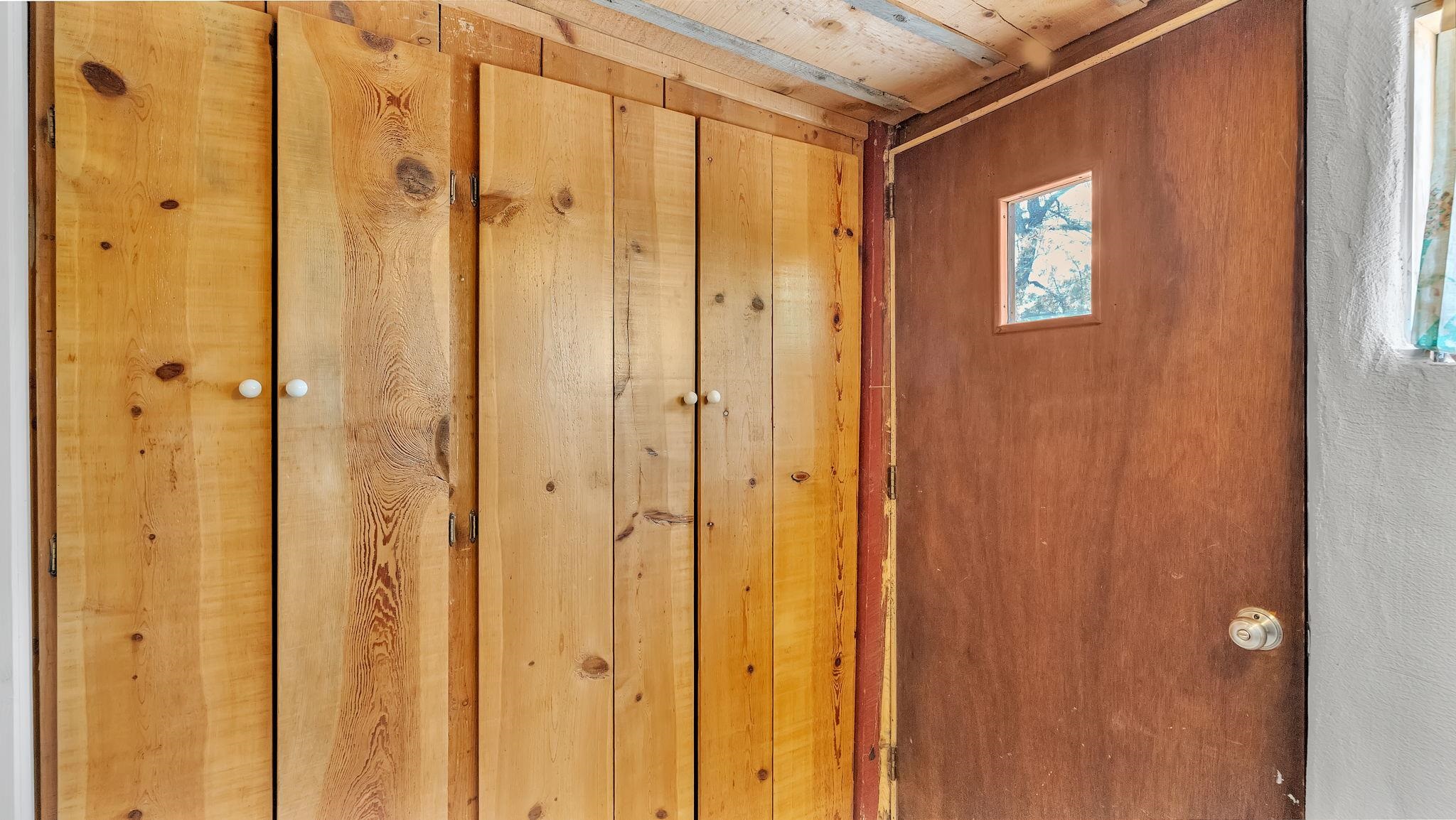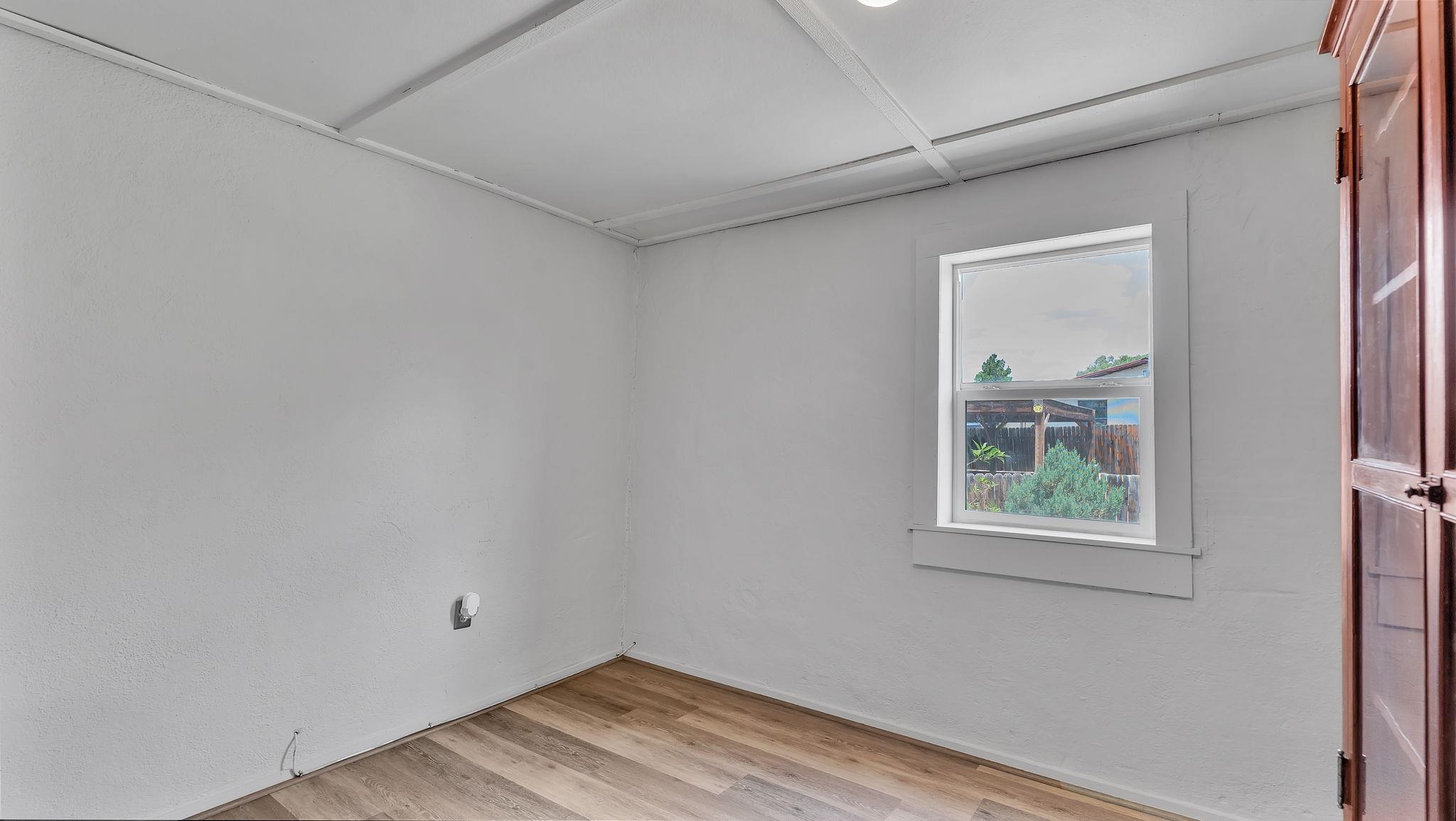 A Special Property with a Yard Just Minutes from Downtown Taos ~ Tucked at the end of a private road in Town, you will stumble upon this wonderful 3 bedroom, 1.5 bath residence with a spacious gated yard and large carport. This rare town gem with mature greenery surrounding is a home that offers unrivaled tranquility moments from the vibrant Taos Plaza, restaurants, shopping, schools, doctors, and many outlets to NATURE. Through the chainlink fence into the second contained yard area then enter the residence through a rustic front door to an incredibly warm and loving space. First, the living room with its inviting brick floors, efficient south-facing windows that flood the entire front area with natural light and passive solar heat, and a fantastic natural gas heater strong enough to warm the home by itself that ideally compliments the sunshine. The residence possesses unique South Western architectural features, with subtle farm-style touches such as rustic wood ceilings found throughout the home. In the large primary bedroom you will find a traditional wood-burning fireplace with a bancito, updated thermopane windows also found in other rooms, and a generous walk-in closet. In to the bright and updated kitchen where culinary delights will be crated on the daile, followed by two additional cozy bedrooms, two tastefully renovated bathrooms that add a feeling of extra freshness to the space, and a fully functional laundry room with practically brand new units. Beyond the home's endless interior potential, the outdoor's surrounding offer equal opportunity with plenty of room to garden, xeriscape, landscape, or leave it as is; whatever you, the kids, and pets desire. Around the corner, explore world-class art galleries, hit the slopes at Taos Ski Valley, fish the Rio Grande, or immerse yourself in the rich culture and history of the region. The home has been virtually staged to spark creativity. There's not many places as convenient, maintained, an ready-to-go than 121 Cruz Alta, so be sure you don't miss the opportunity.