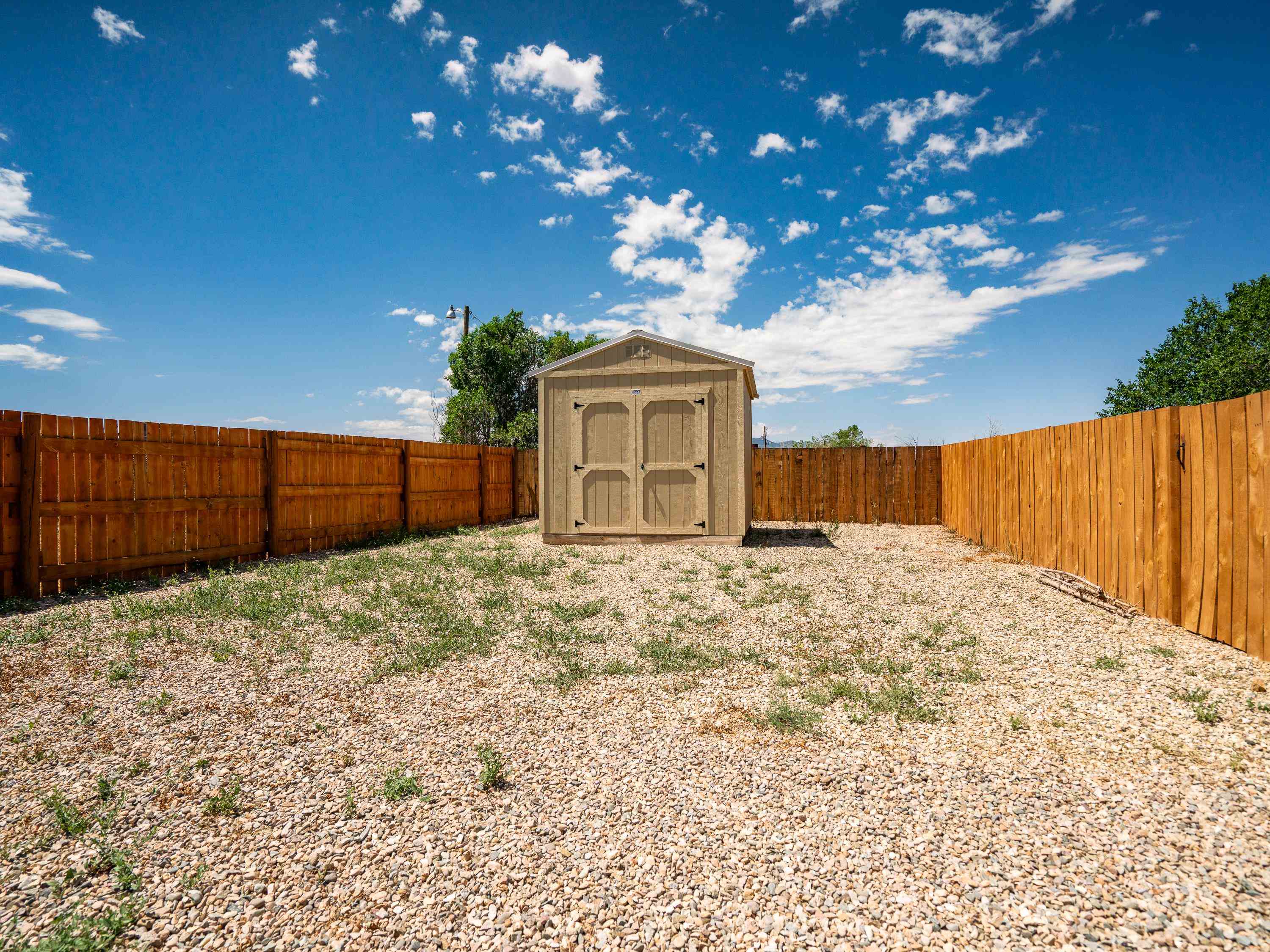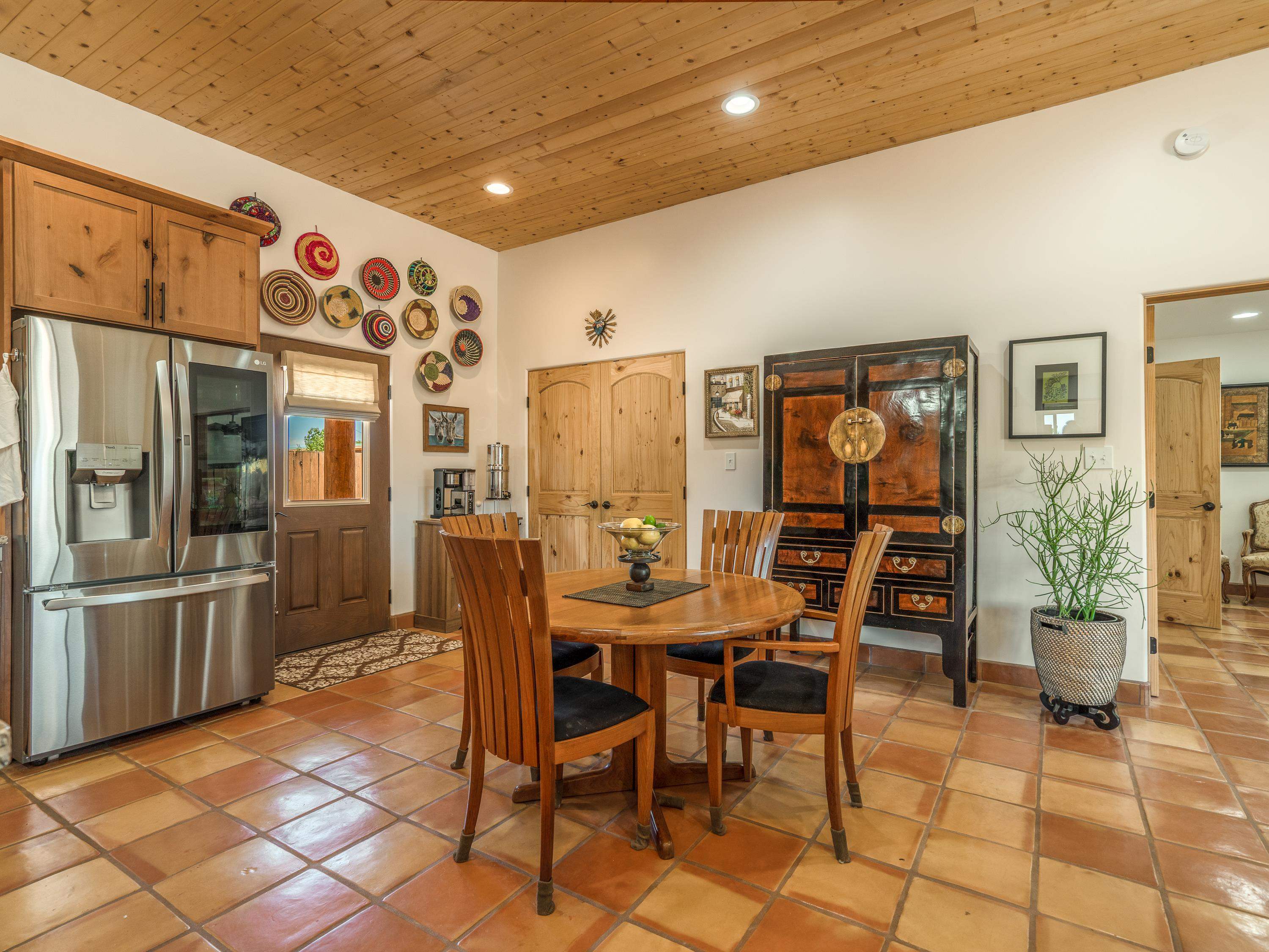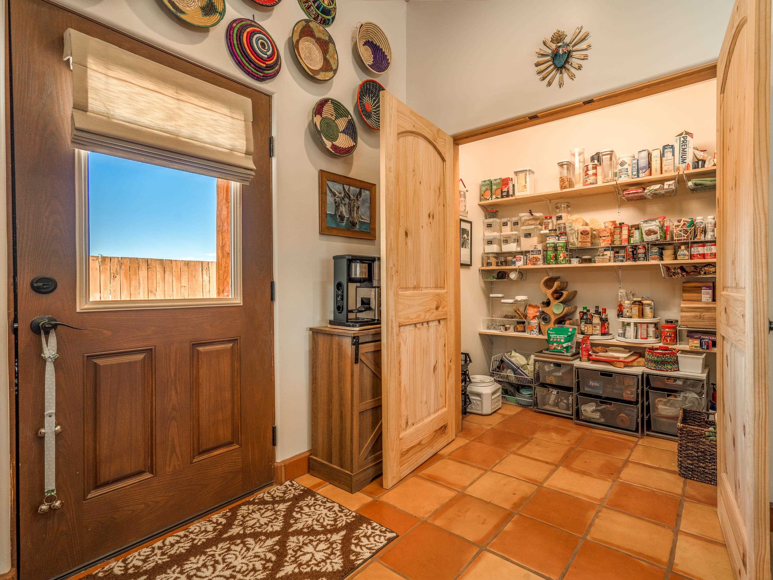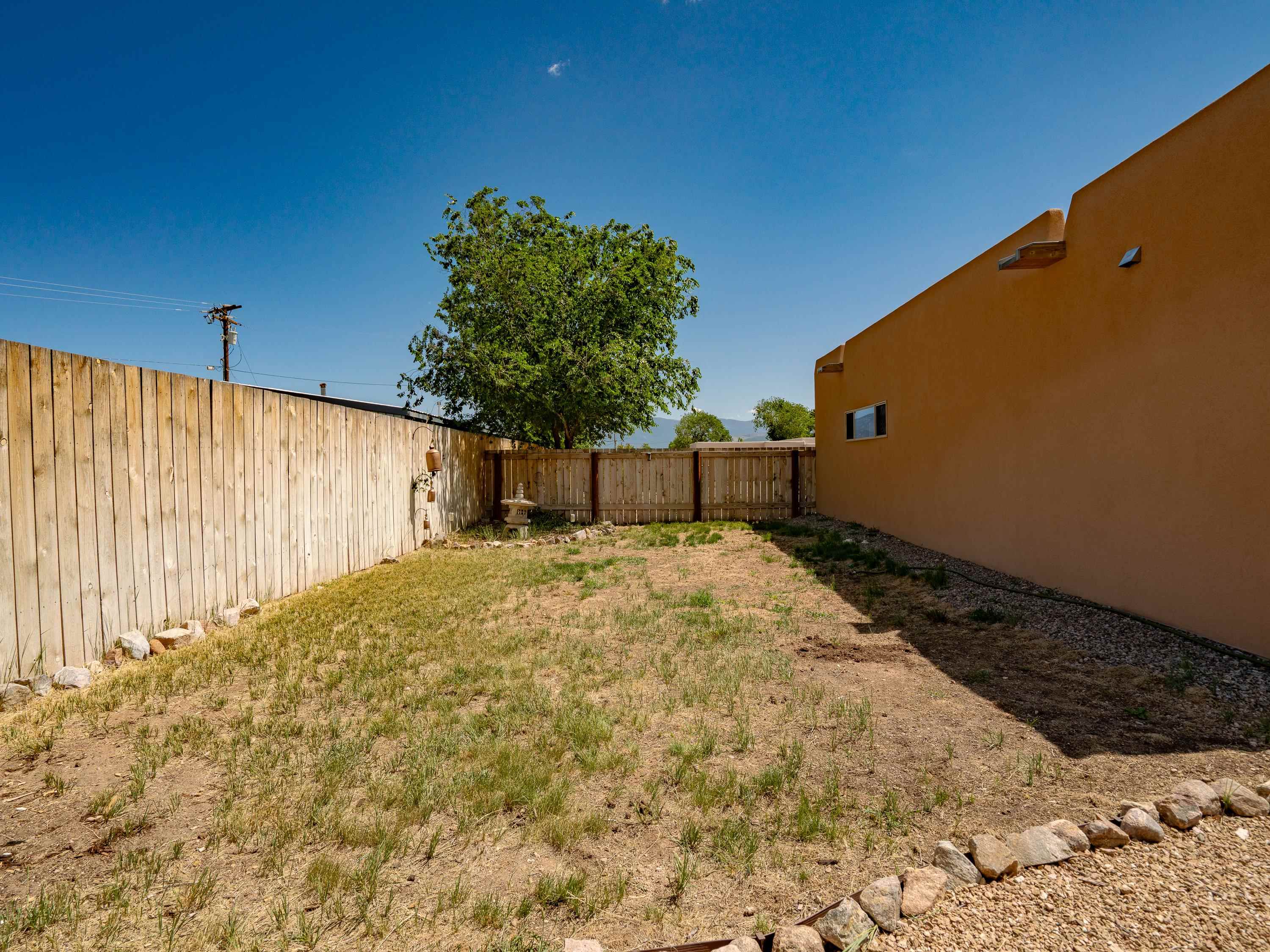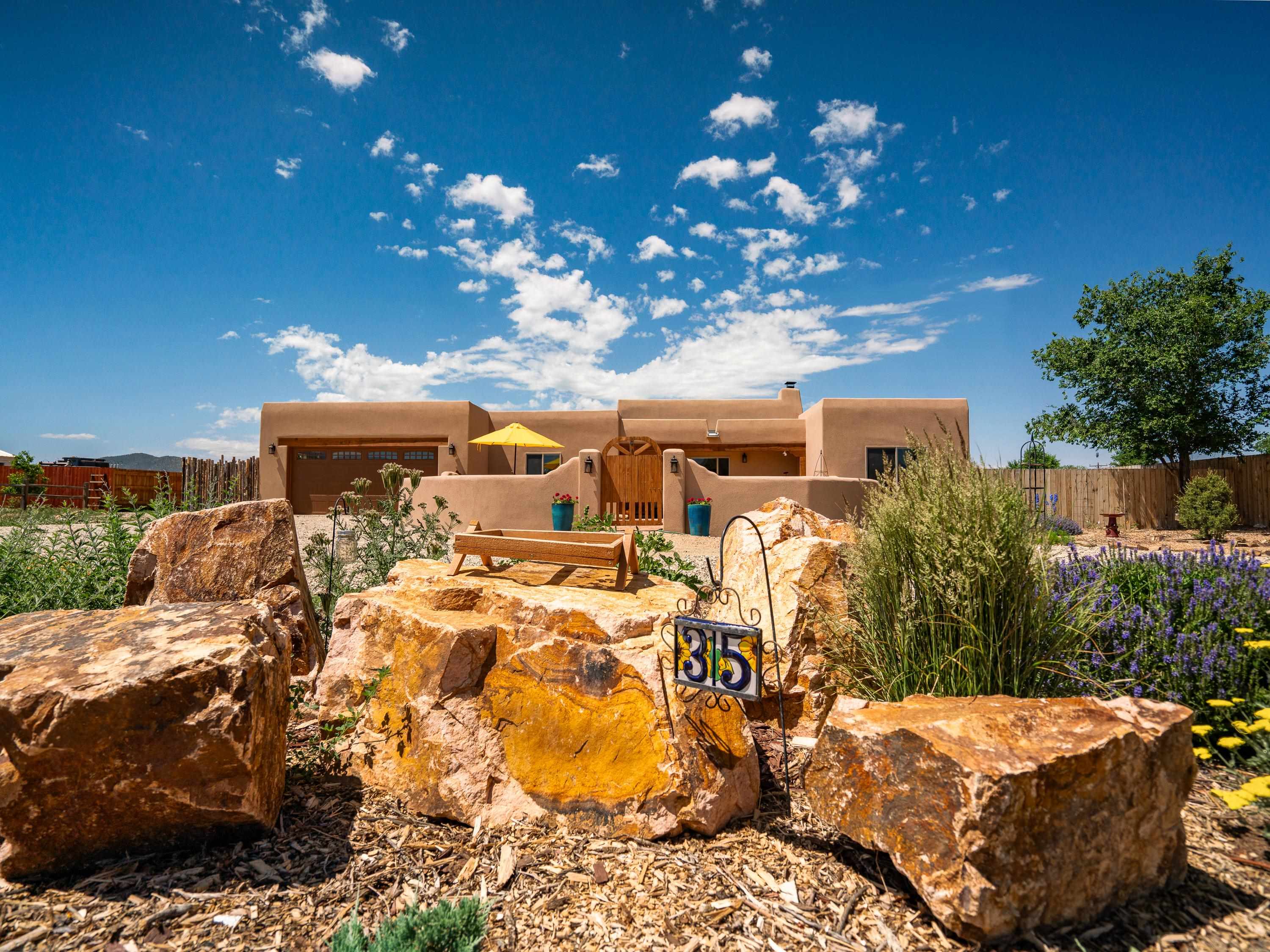 If privacy, comfort, and low maintenance are on your wish list, this is your spot. At the very end of a dead-end road, this home gives you that "away from it all" feeling--without actually being far from anything. No neighbors driving by. Just a well thought out property; start to finish! Inside, the kitchen is ready for serious cooking. We're talking oversized knotty alder cabinets, granite countertops, a huge breakfast bar, and a large walk-in-style pantry. The living room brings the Taos feel with a real wood-burning kiva fireplace finished with smooth plaster in a contrasting color, and a big window that frames the landscaped courtyard with the mountains behind it. Saltillo tile runs throughout the home; a must have here in Taos. Designed with smart separation in mind, the primary suite is on one side of the home while the two guest bedrooms (or bedroom + office) are on the other. The primary suite is BIG. Room for your king-size bed, dressers, and then some. The en-suite bathroom includes a walk-in shower with frameless glass, double sinks on a granite counter, custom alder cabinets, and even a built-in linen closet. The walk-in closet has room for your stuff AND your significant other. One of the two guest bedrooms is currently used as a home office with high-speed internet and the guest bathroom has all the beautiful finishes the primary has, including a frameless glass door. The whole house (yes, including the garage) is heated with radiant in-floor heat powered by an on-demand natural gas boiler. That same system also handles your hot water. If you ever felt like you needed more living space, the heated garage is an excellent outlet for your creativity. Extras? You've got them: natural gas hookup, shared well, water softener, radon mitigation system, and town sewer--so no septic headaches. Outside, you'll find a circular driveway, xeriscaping, trees, and privacy fencing in all the right places. The front courtyard is wrapped in a beautiful adobe wall with a nice wooden gate to let you out and keep your pets in! Tucked away in the back corner of the property you'll find a new Tough Shed for all the stuff you don't want to stuff into your garage. Built in 2022, the house is in great condition and is ready for you to move in, relax, and enjoy the reasons you are moving to Taos for!