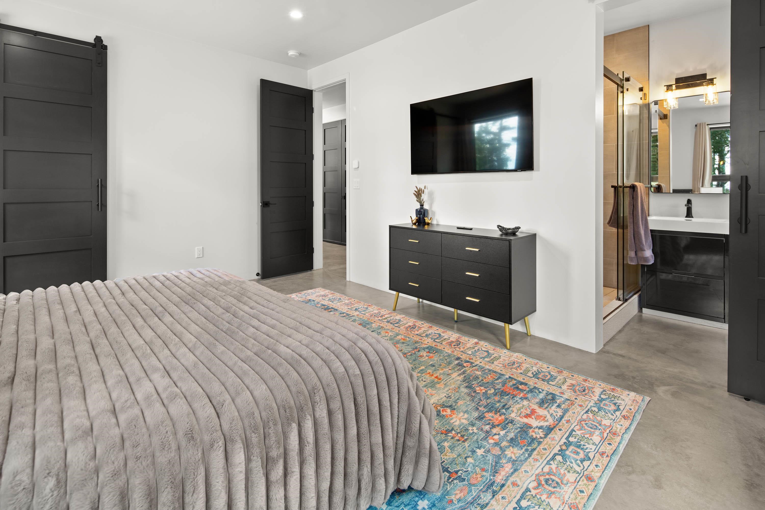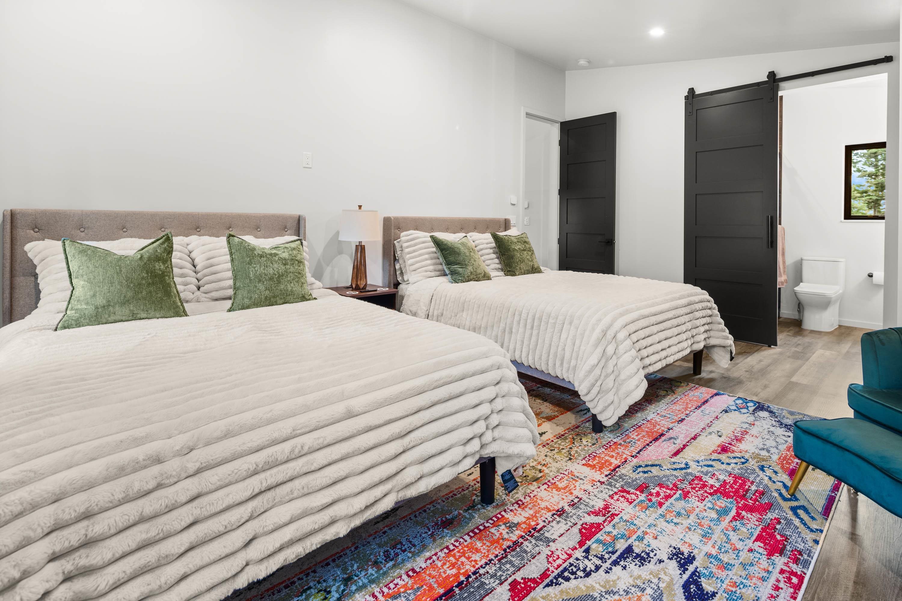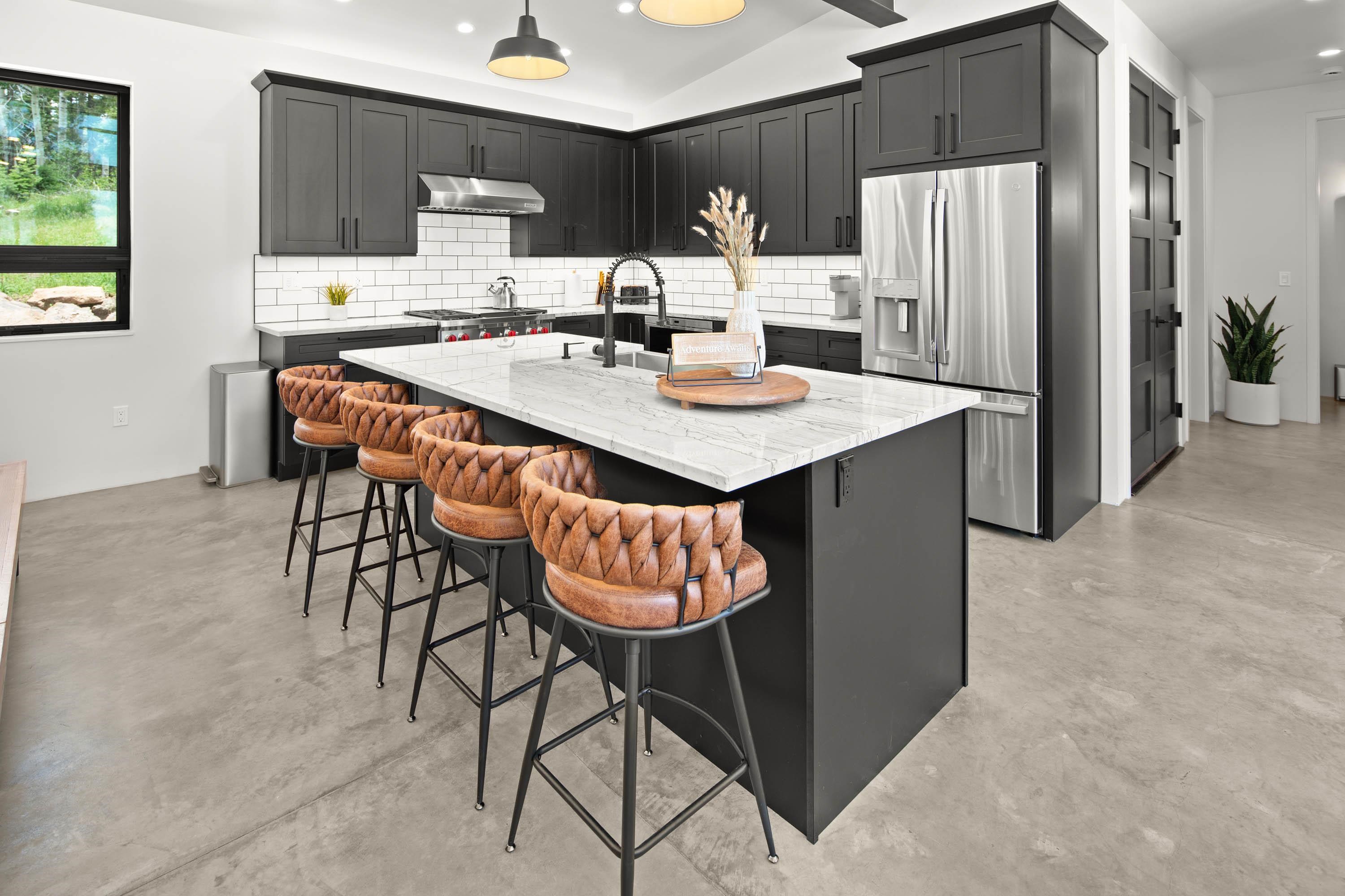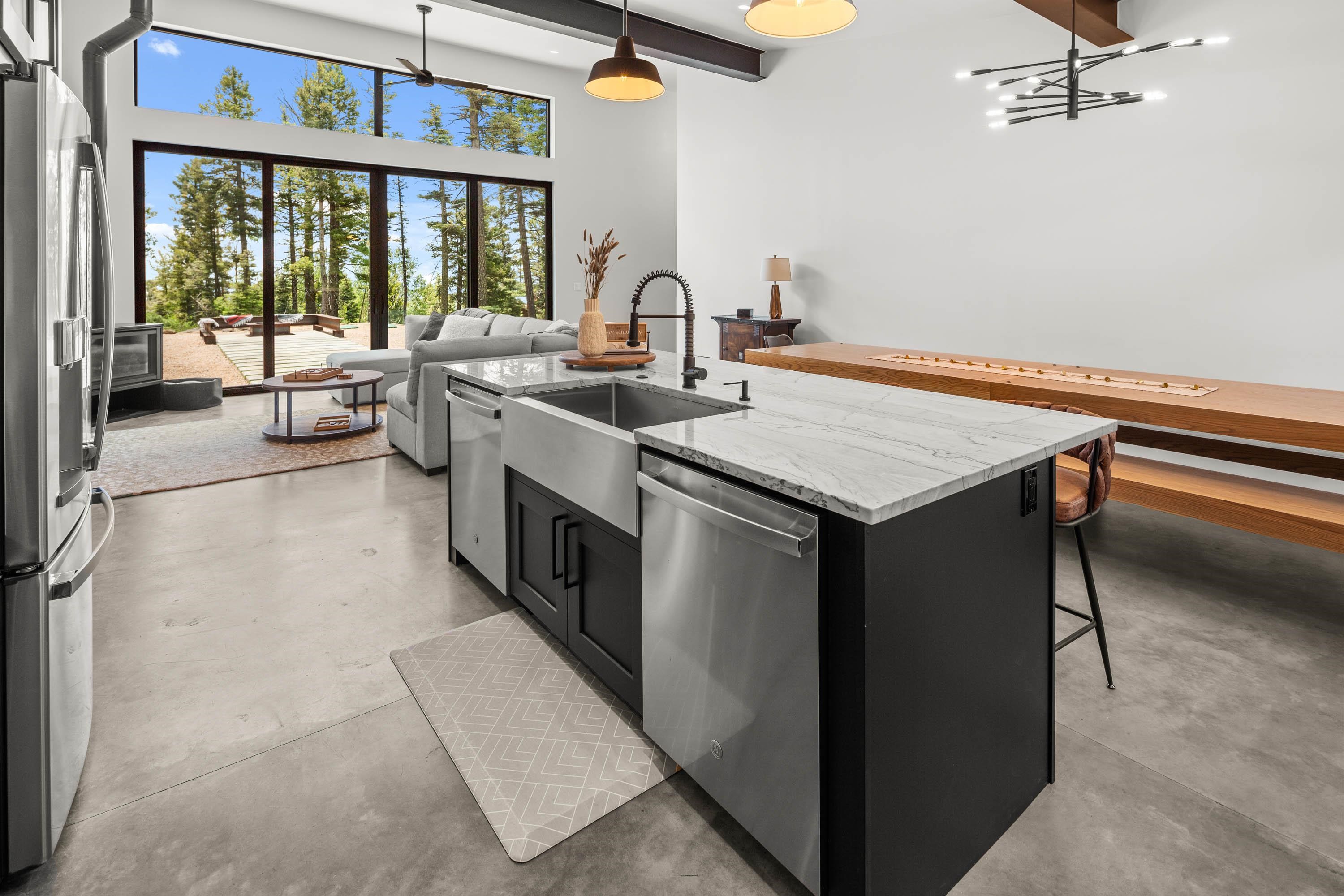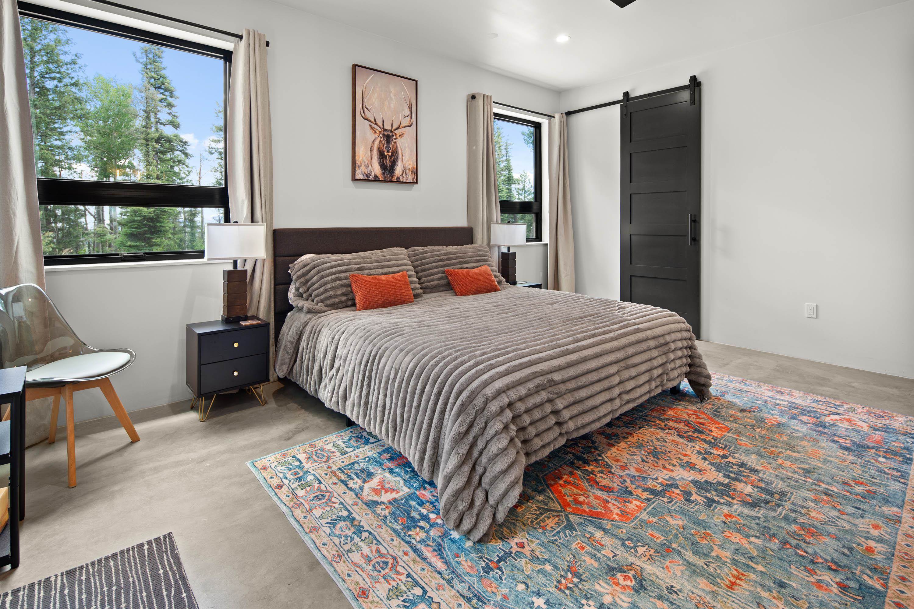 Stylish modern mountain retreat with luxe features & mountain views. This beautifully designed, 2024 built home offers luxury, comfort, and functionality in a stunning natural forest setting. Featuring 3 spacious primary suites including two on the main level plus an upstairs custom built bunk room/second living, this home is ideal for multi-generational living or high-end vacation rental use. The interior showcases polished concrete floors, tall custom doors throughout, a gourmet kitchen with top-of-the-line appliances including Wolf stove and two dishwashers for all the entertaining one could wish for. Large dining area with custom dining table and bench seating. The mudroom hallway contains custom cabinetry that adds practical storage and organization for active lifestyles. Enjoy the outdoors with a xeriscaped yard, a concrete walkway and a fire-pit seating area--perfect for entertaining under the stars. The outdoor area is completed with a hot tub. A 2-car garage provides ample storage and an extra bonus - an RV electric hookup on the side. Modern, efficient, and thoughtfully designed, this home is a rare find in today's market. Fully furnished, turn key home. Don't miss out--schedule your private tour today.