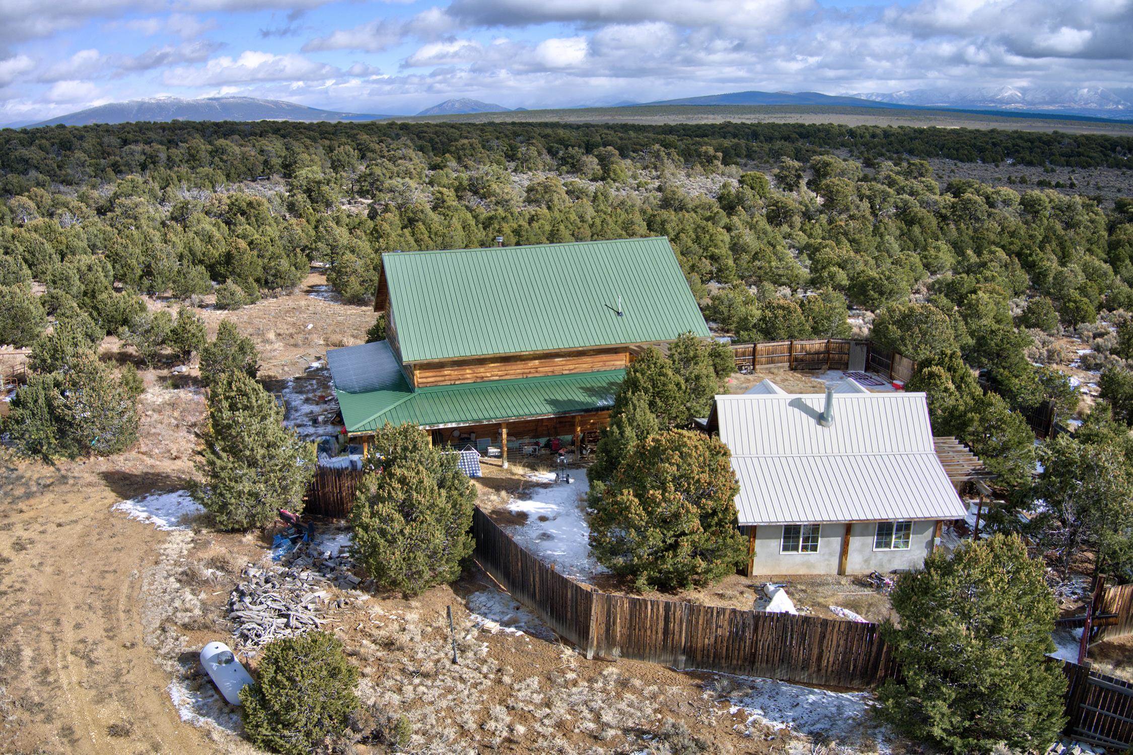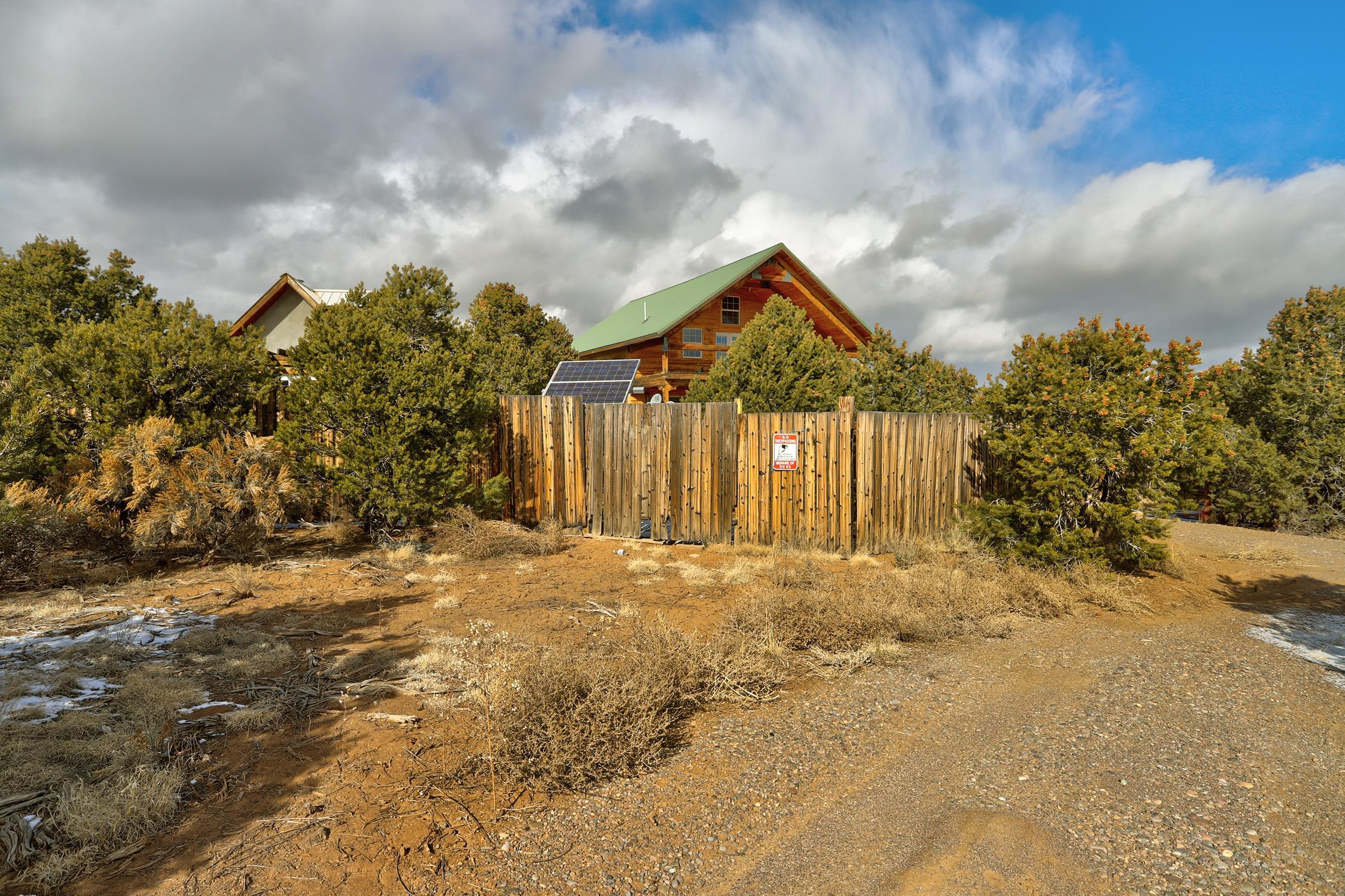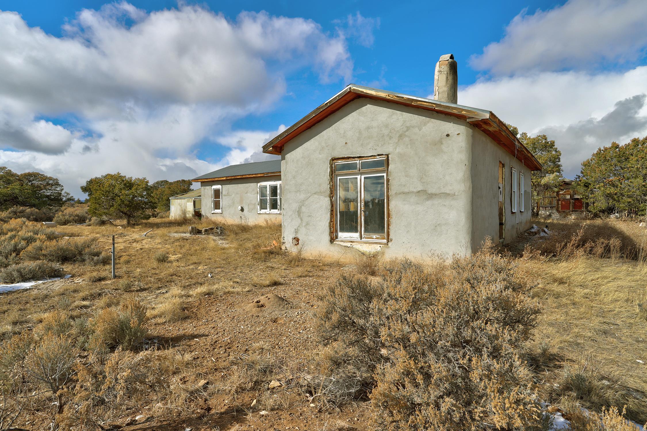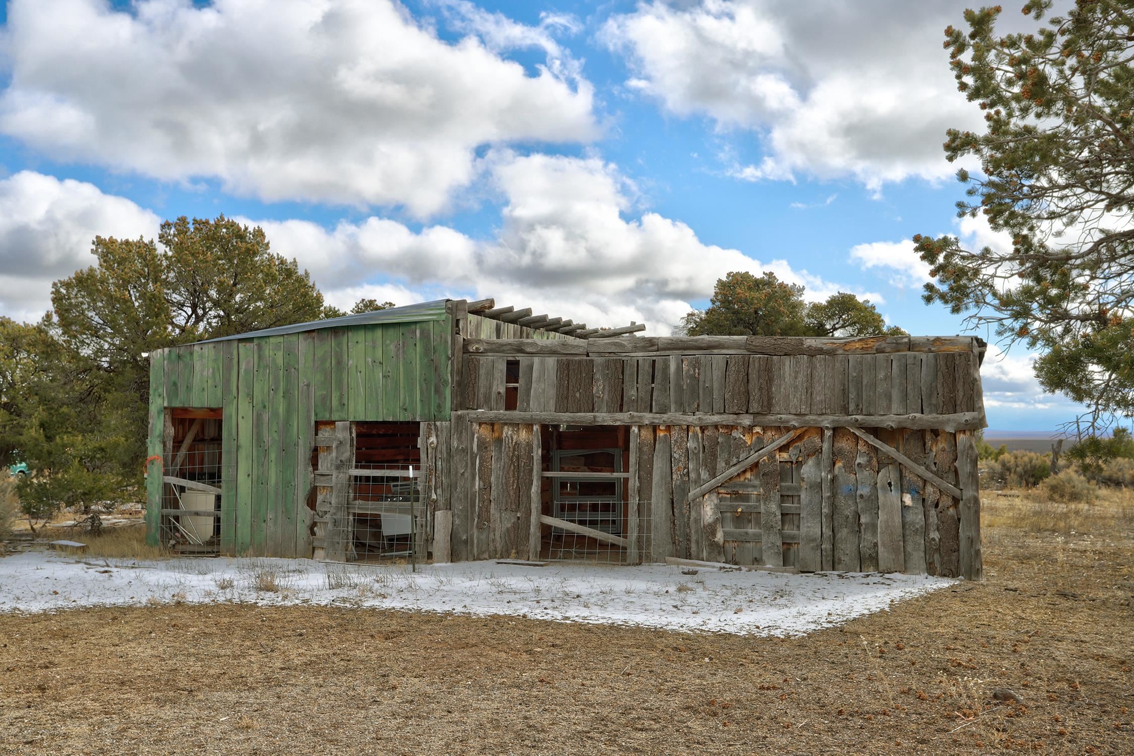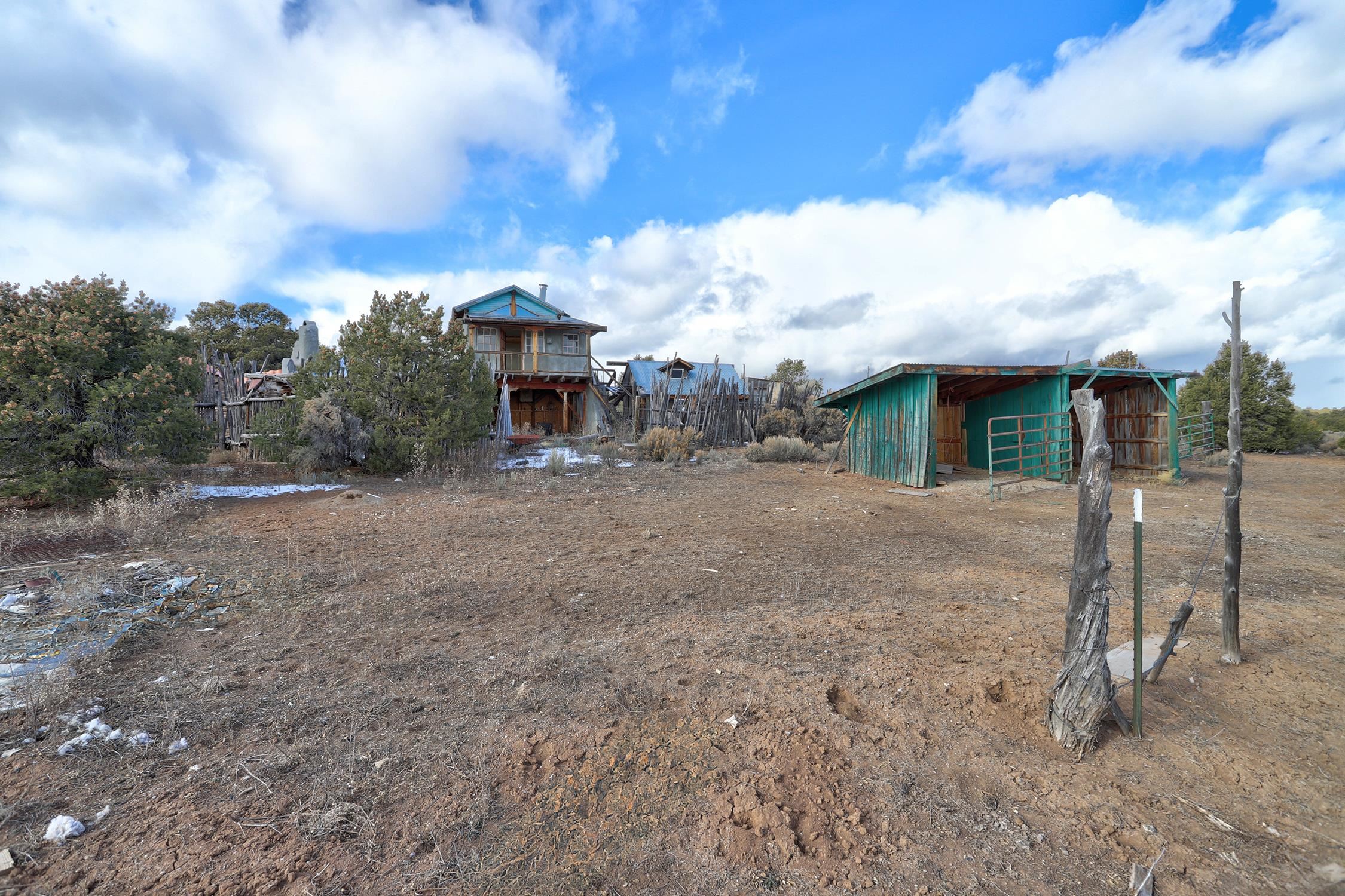 Welcome to Flying F Ranch, a rare 288.59-acre property where Southwestern charm meets sustainable living. With unobstructed views stretching 35 miles, this one-of-a-kind ranch is a rugged sanctuary awaiting your creative vision. Two primary residences provide plenty of space for everyone. Enjoy unmatched views from the second-floor primary suite and spacious covered balcony of the 2-bedroom, 1.5bath chalet. The classic adobe home features a sunken living room 2 Carmen Velarde fireplaces, a wood stove, and a galley kitchen with custom tile countertops and backsplash and brick flooring. Outbuildings include a 2-room cabin, your own turn of the century adobe chapel, two hay barns, a workshop, garage and more. Plenty of space to roam, raise, or ride. We'll provide the bones and bling, you bring your imagination. Whether you're seeking a retreat, a working ranch, or an inspiring canvas for your dreams, Flying F Ranch is an offering unlike any other. A place of wild, panoramic freedom, where sunrises and starlit skies become daily rituals.