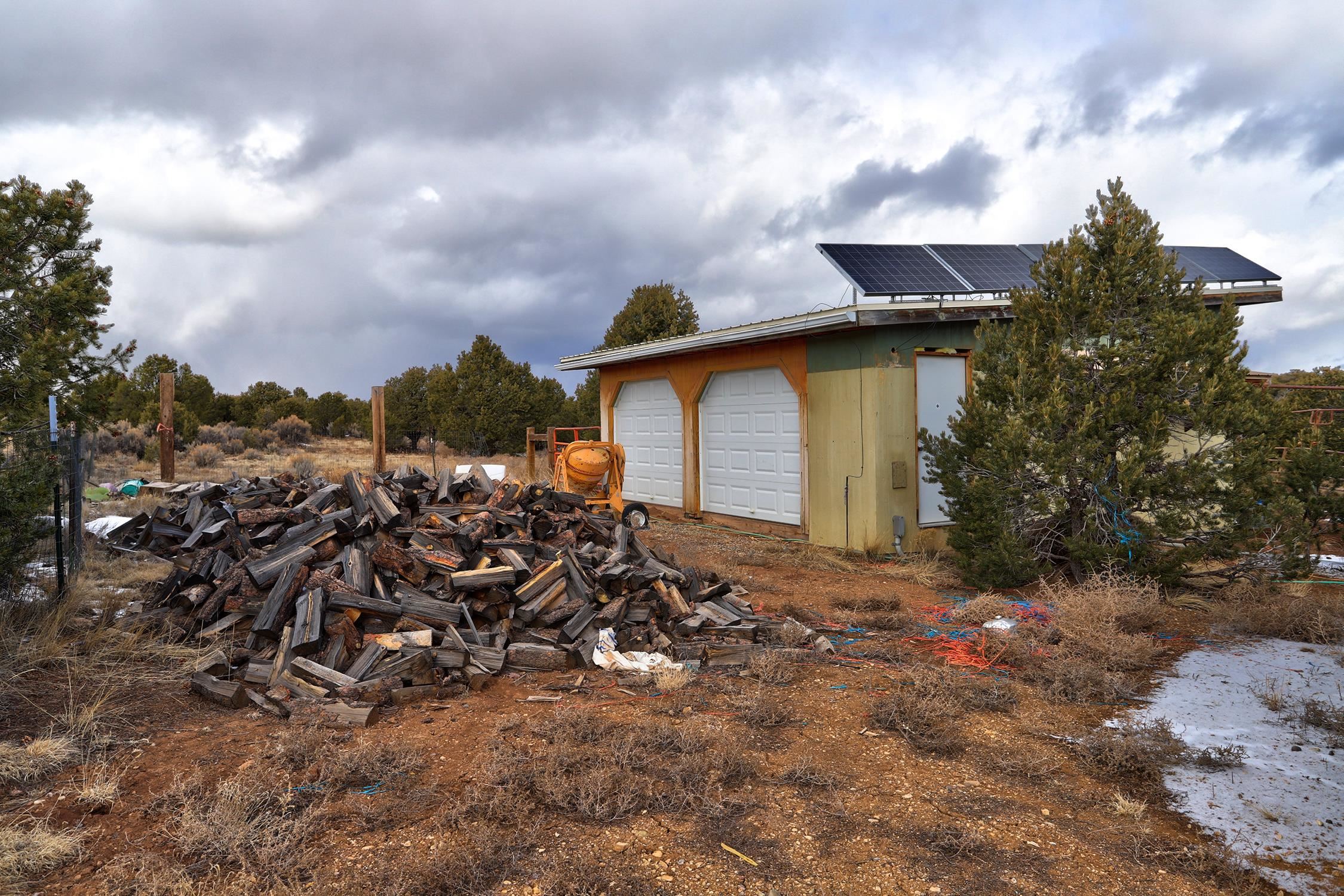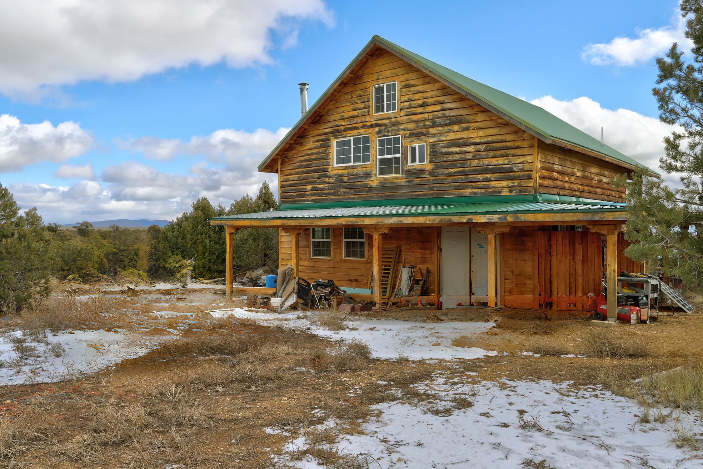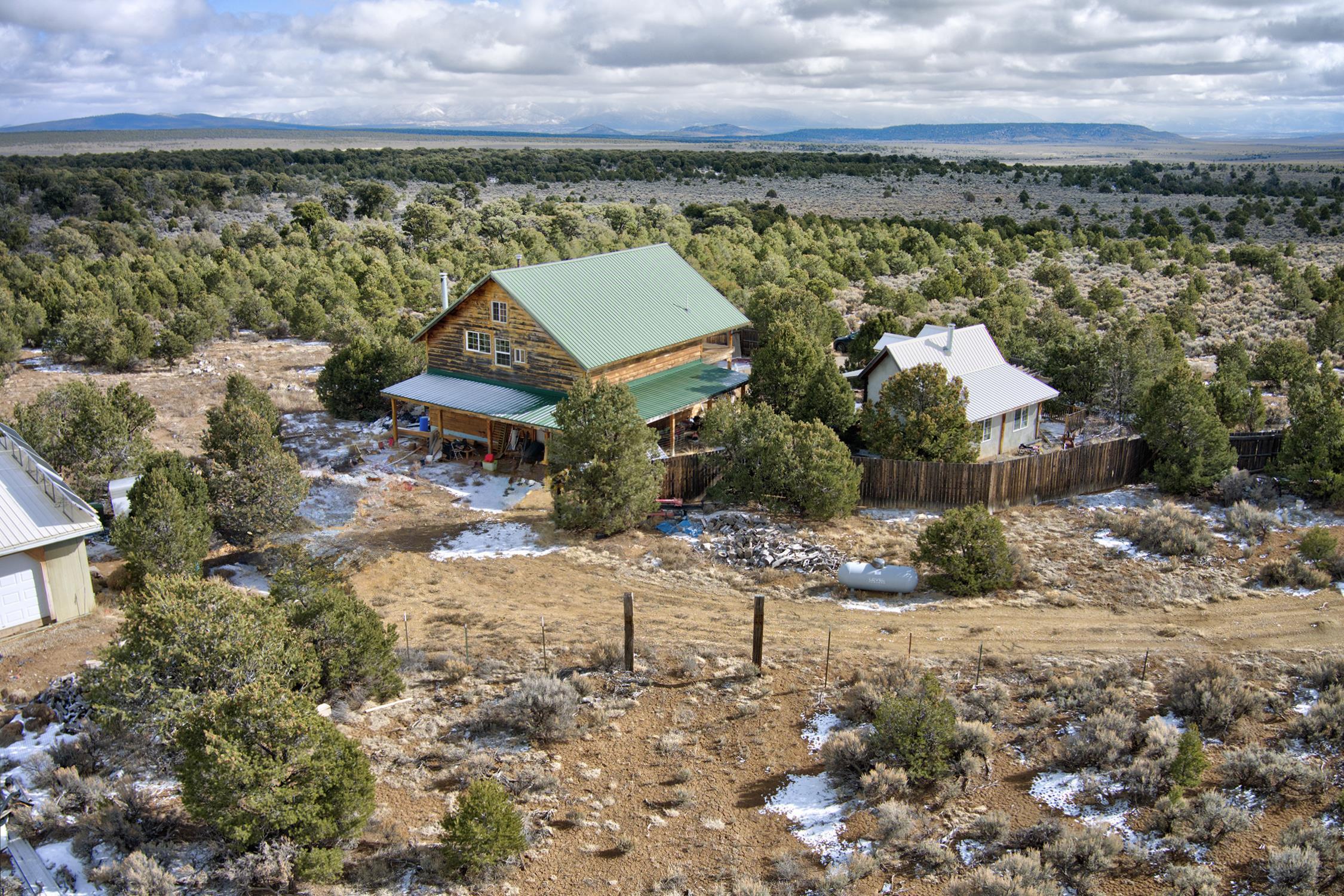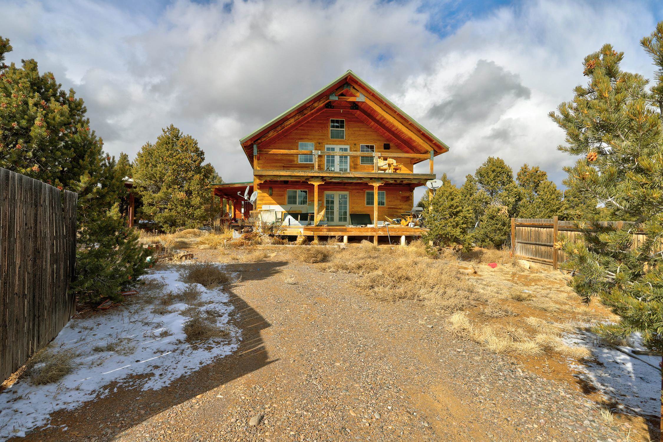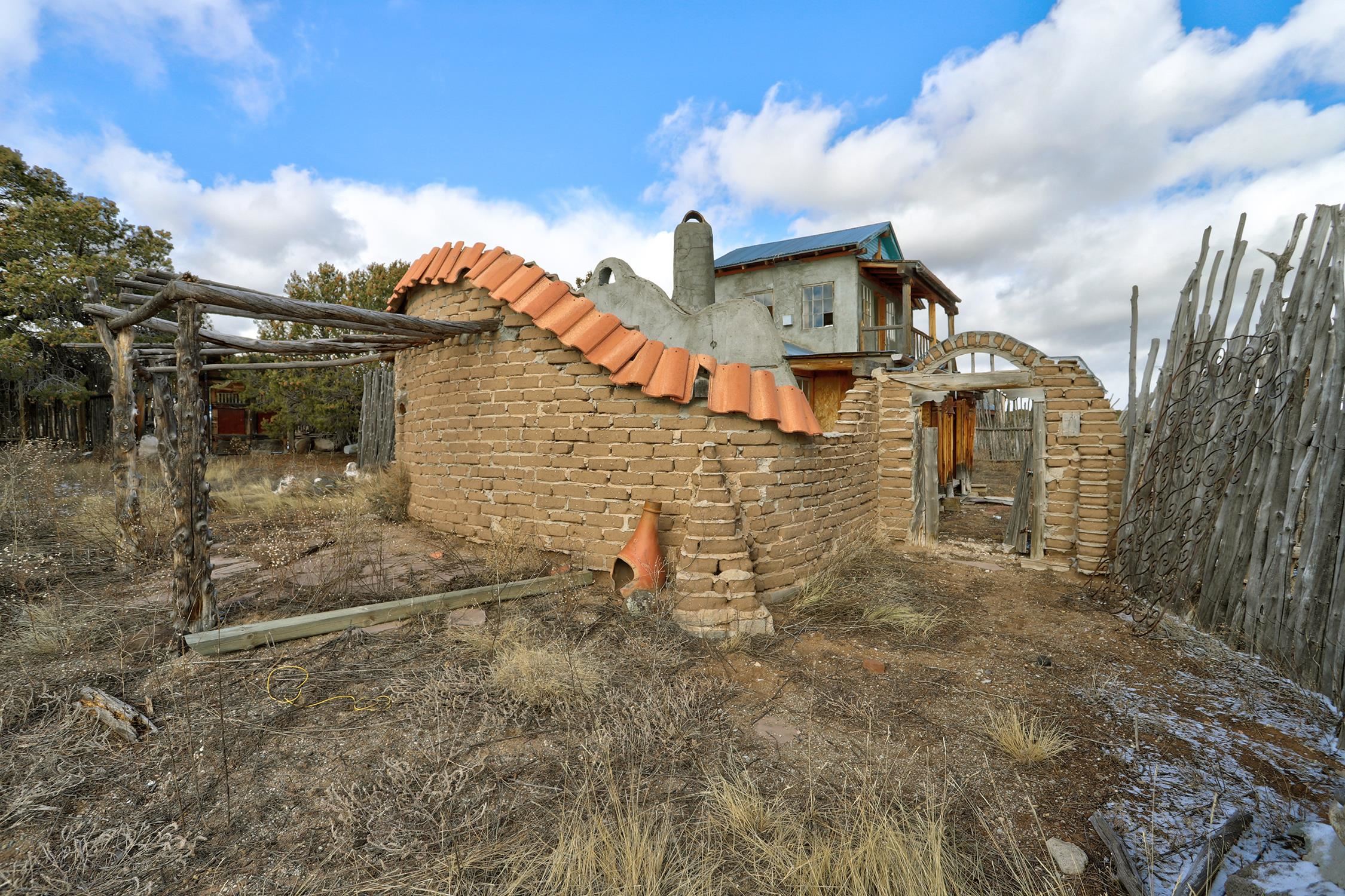 Welcome to Flying F Ranch, a rare 288.59-acre property where Southwestern charm meets sustainable living. With unobstructed views stretching 35 miles, this one-of-a-kind ranch is a rugged sanctuary awaiting your creative vision. Two primary residences provide plenty of space for everyone. Enjoy unmatched views from the second-floor primary suite and spacious covered balcony of the 2-bedroom, 1.5bath chalet. The classic adobe home features a sunken living room 2 Carmen Velarde fireplaces, a wood stove, and a galley kitchen with custom tile countertops and backsplash and brick flooring. Outbuildings include a 2-room cabin, your own turn of the century adobe chapel, two hay barns, a workshop, garage and more. Plenty of space to roam, raise, or ride. We'll provide the bones and bling, you bring your imagination. Whether you're seeking a retreat, a working ranch, or an inspiring canvas for your dreams, Flying F Ranch is an offering unlike any other. A place of wild, panoramic freedom, where sunrises and starlit skies become daily rituals.