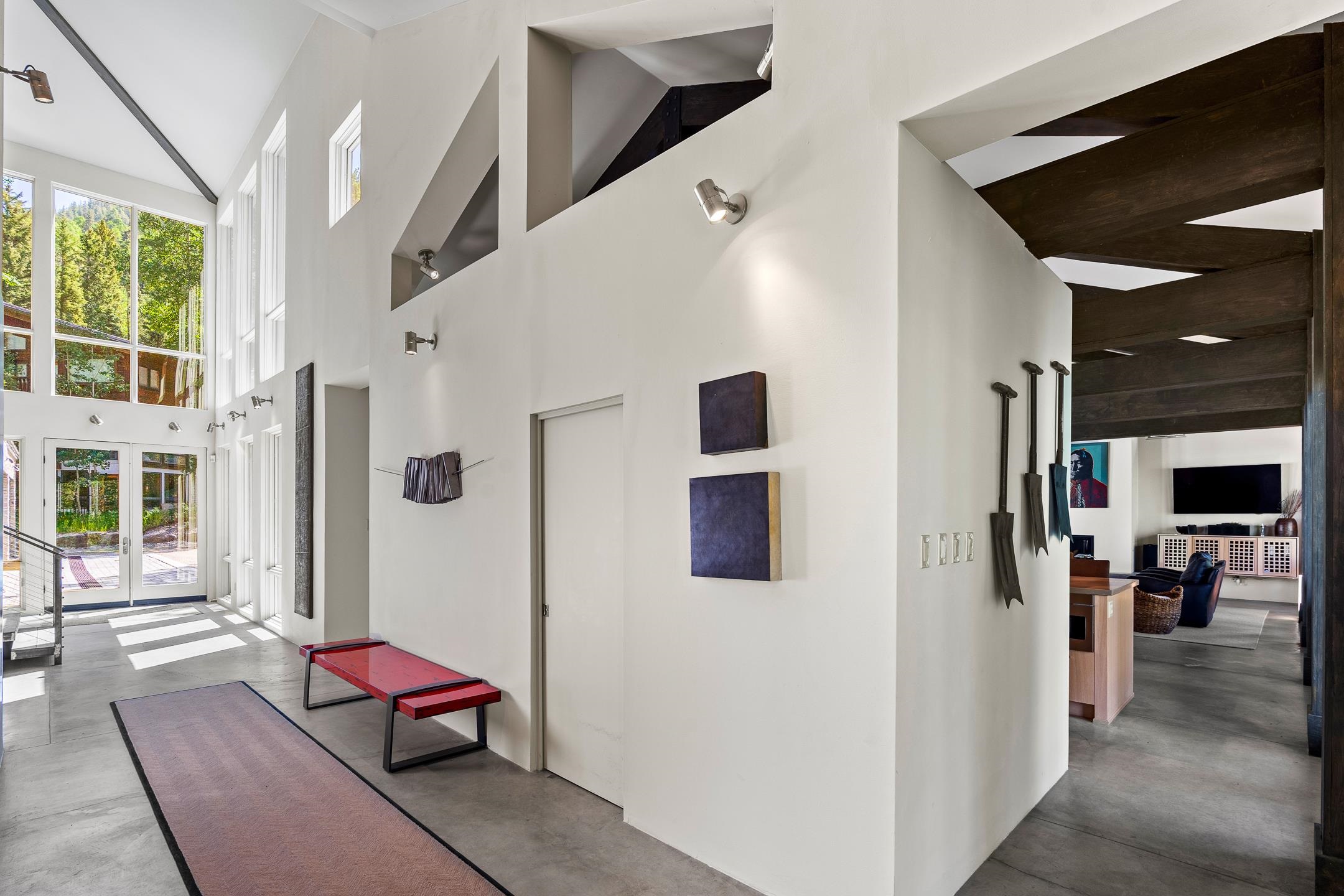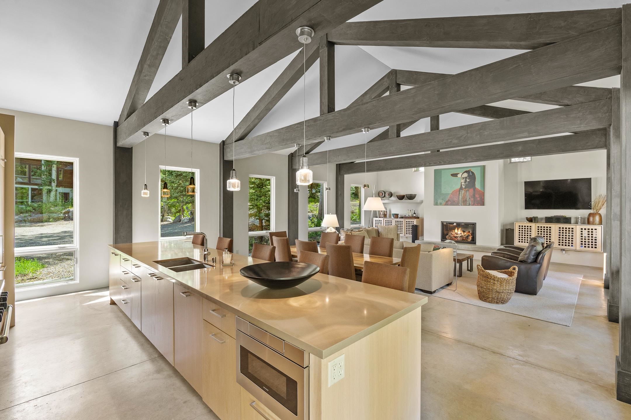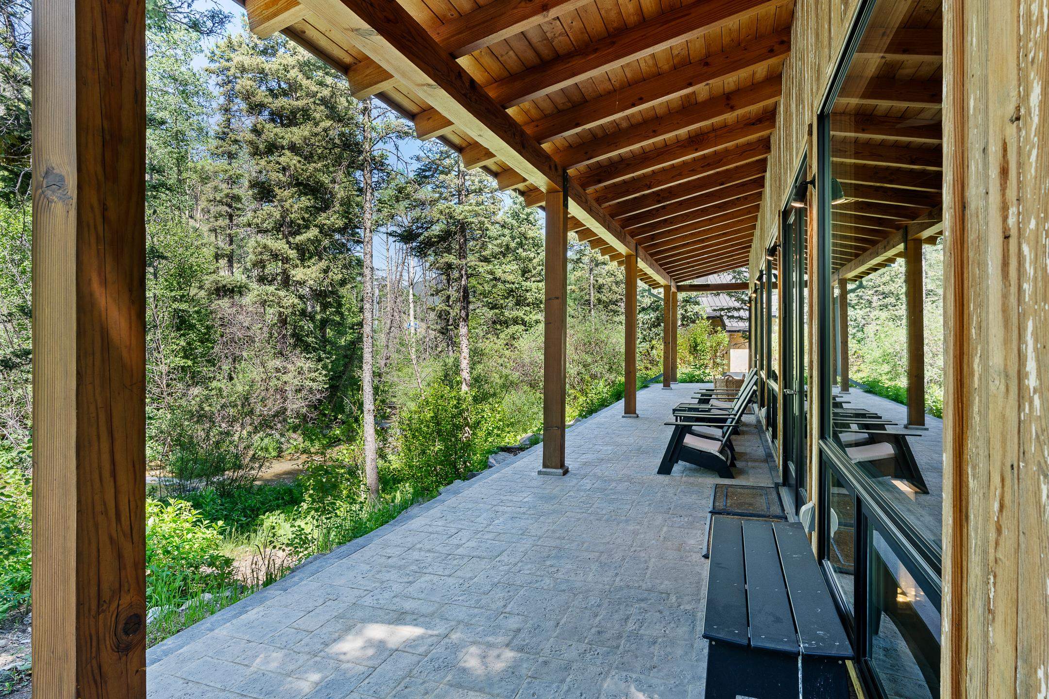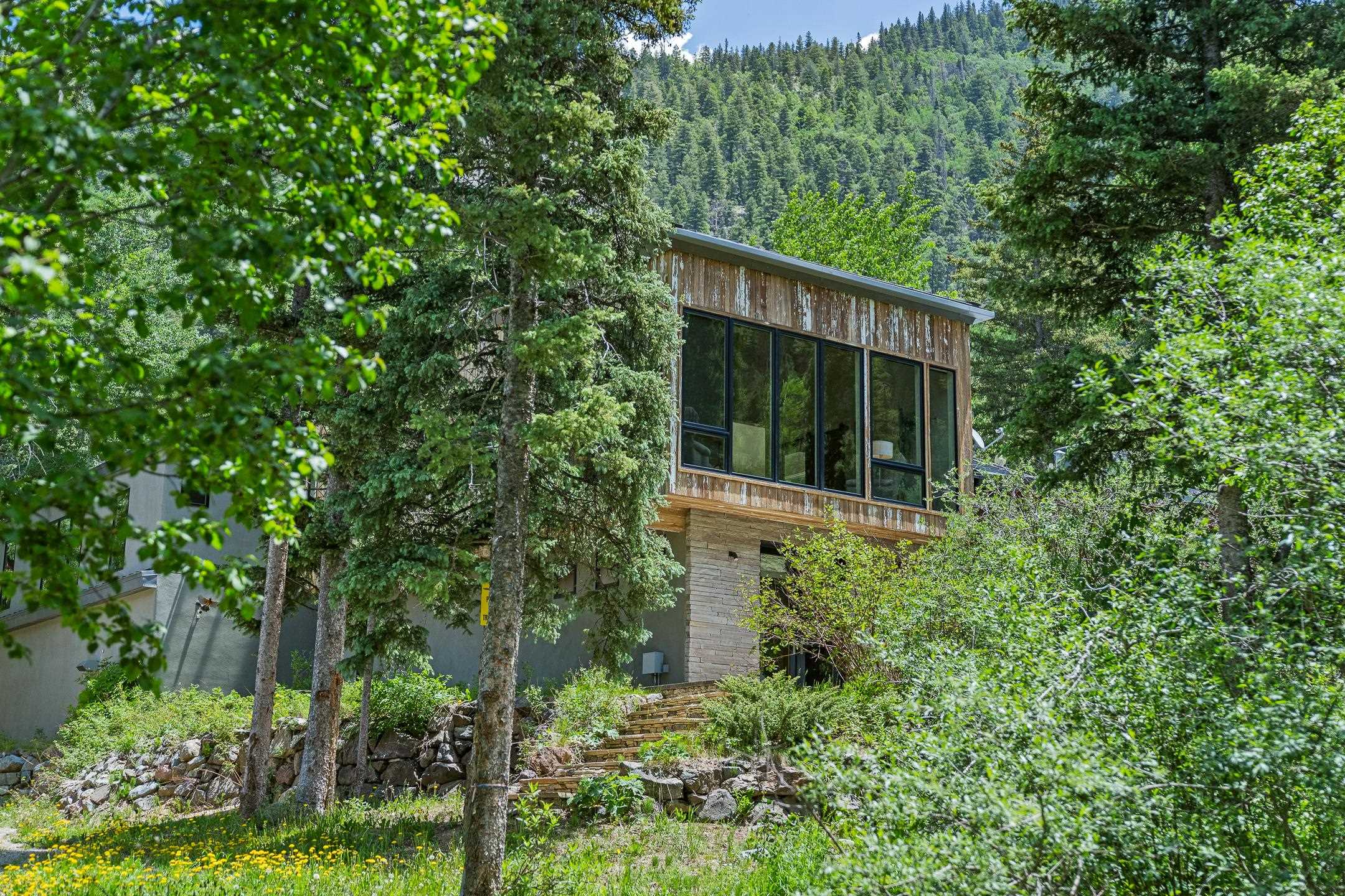 Situated in the heart of Taos Ski Valley, this one-of-a-kind Contemporary Modern Mountain Home redefines alpine luxury. Set on a rare corner lot spanning over one-third of an acre, the property is graced with more than 150 feet of the Rio Hondo River, flowing beneath two custom-built bridges that provide direct ski-in/ski-out access. Just a short walk to the base area's two main lifts, the location is simply unmatched. Every detail of this stunning home exudes sophistication and modern elegance. Designed for both comfort and performance, it features high-end finishes throughout, including automated sun shades, radiant in-floor heating, a chef's kitchen with premium appliances, and a luxurious steam shower in the primary suite. A dramatic zinc standing seam roof--engineered to last 80 to 100 years--crowns the home, while a natural gas standby generator ensures seamless year-round living. Step outside to the elevated hot tub perched above the river and enjoy serene mountain ambiance like no other. The heated driveway and stone paver walkways offer effortless winter access, while the oversized 3-car garage--with one bay currently transformed into a game room--adds versatility and comfort. A dedicated ski storage room with private locker space and a separate entrance completes the alpine lifestyle experience. Equipped with a natural gas generator, the property ensures uninterrupted power during winter storms and outages. The home's thoughtful floor plan offers exceptional privacy and flow. The primary suite features a private office, steam shower, and complete separation from the guest quarters, which are adjacent to a spacious family lounge. A guest suite on the lower level provides additional convenience and flexibility. From its unparalleled riverfront setting to its extraordinary finishes and amenities, there is simply no other home of this caliber in Taos Ski Valley. This is more than a residence--it's an elevated mountain sanctuary. Home is being sold fully furnished including most artwork.