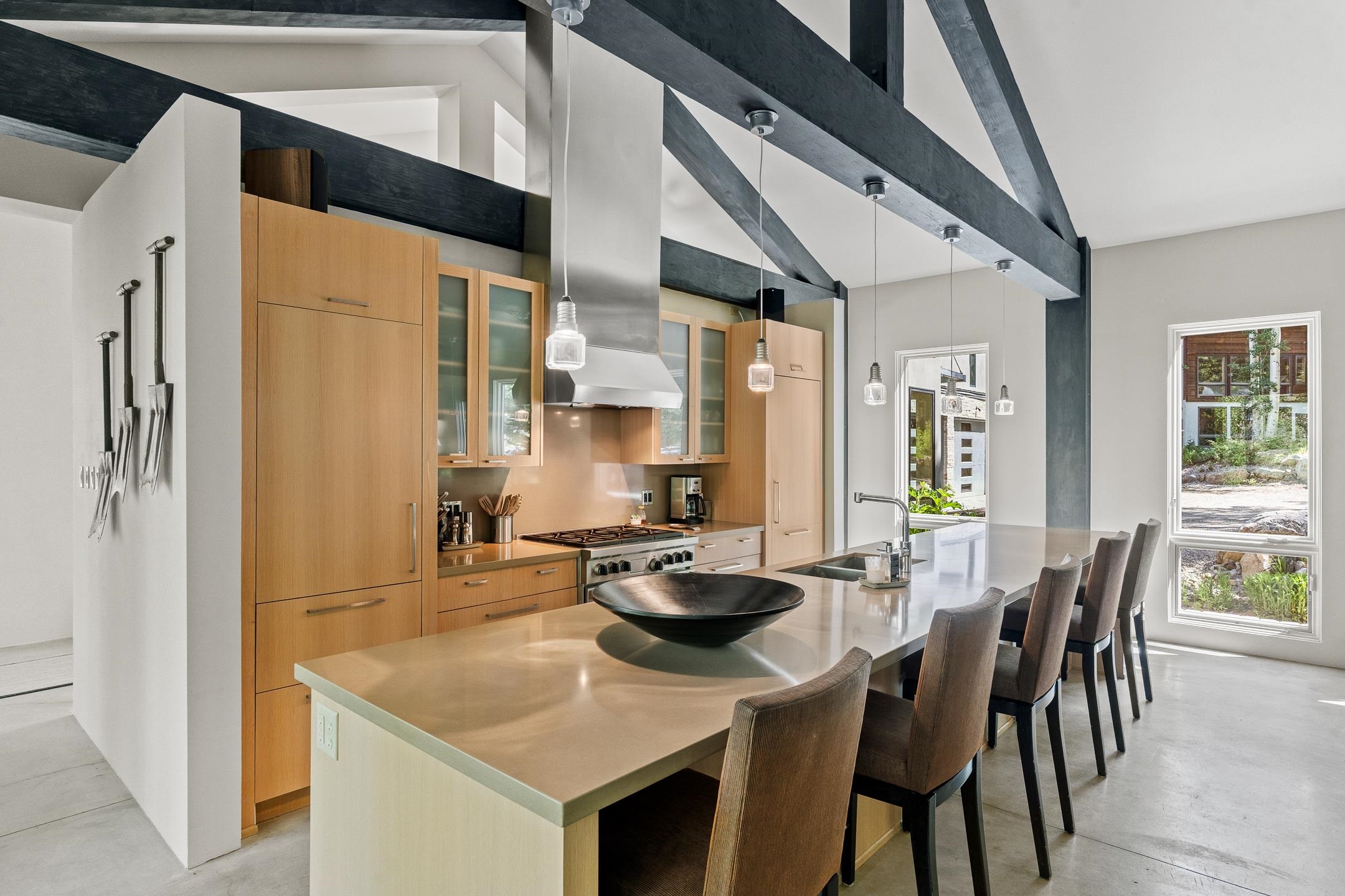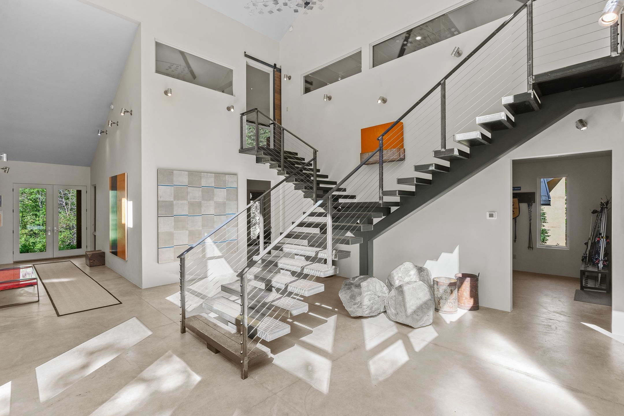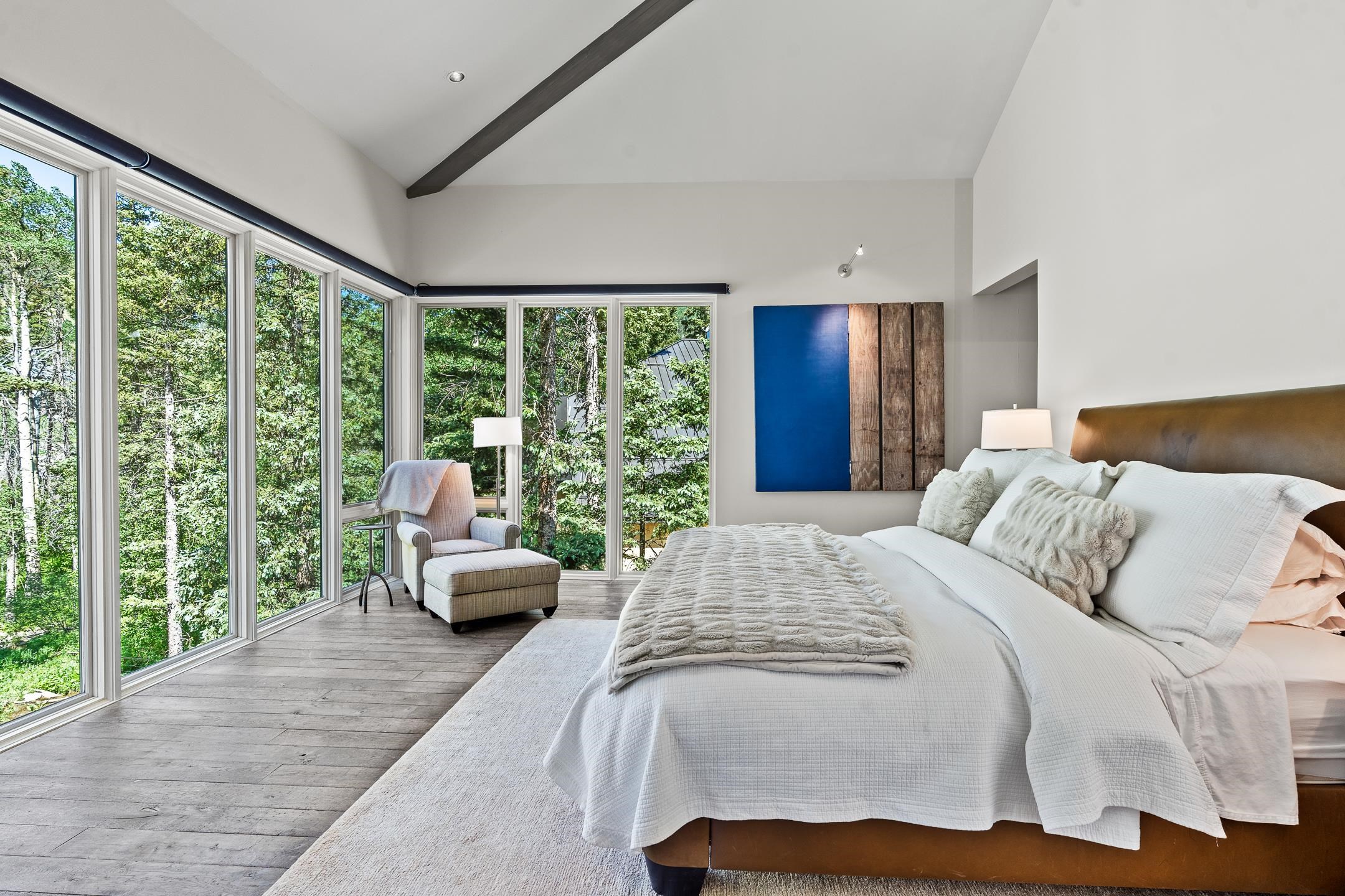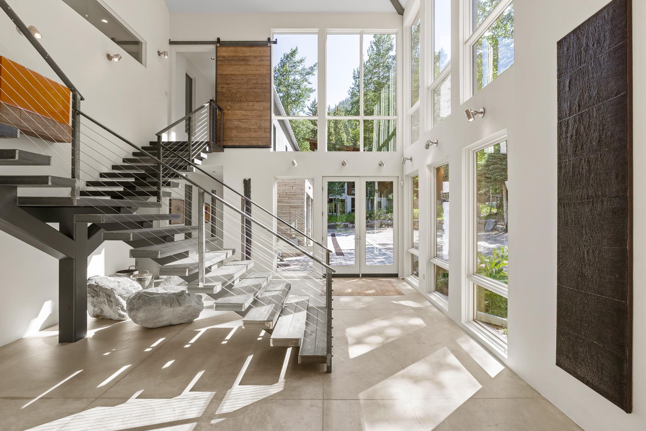 Situated in the heart of Taos Ski Valley, this one-of-a-kind Contemporary Modern Mountain Home redefines alpine luxury. Set on a rare corner lot spanning over one-third of an acre, the property is graced with more than 150 feet of the Rio Hondo River, flowing beneath two custom-built bridges that provide direct ski-in/ski-out access. Just a short walk to the base area's two main lifts, the location is simply unmatched. Every detail of this stunning home exudes sophistication and modern elegance. Designed for both comfort and performance, it features high-end finishes throughout, including automated sun shades, radiant in-floor heating, a chef's kitchen with premium appliances, and a luxurious steam shower in the primary suite. A dramatic zinc standing seam roof--engineered to last 80 to 100 years--crowns the home, while a natural gas standby generator ensures seamless year-round living. Step outside to the elevated hot tub perched above the river and enjoy serene mountain ambiance like no other. The heated driveway and stone paver walkways offer effortless winter access, while the oversized 3-car garage--with one bay currently transformed into a game room--adds versatility and comfort. A dedicated ski storage room with private locker space and a separate entrance completes the alpine lifestyle experience. Equipped with a natural gas generator, the property ensures uninterrupted power during winter storms and outages. The home's thoughtful floor plan offers exceptional privacy and flow. The primary suite features a private office, steam shower, and complete separation from the guest quarters, which are adjacent to a spacious family lounge. A guest suite on the lower level provides additional convenience and flexibility. From its unparalleled riverfront setting to its extraordinary finishes and amenities, there is simply no other home of this caliber in Taos Ski Valley. This is more than a residence--it's an elevated mountain sanctuary. Home is being sold fully furnished including most artwork.