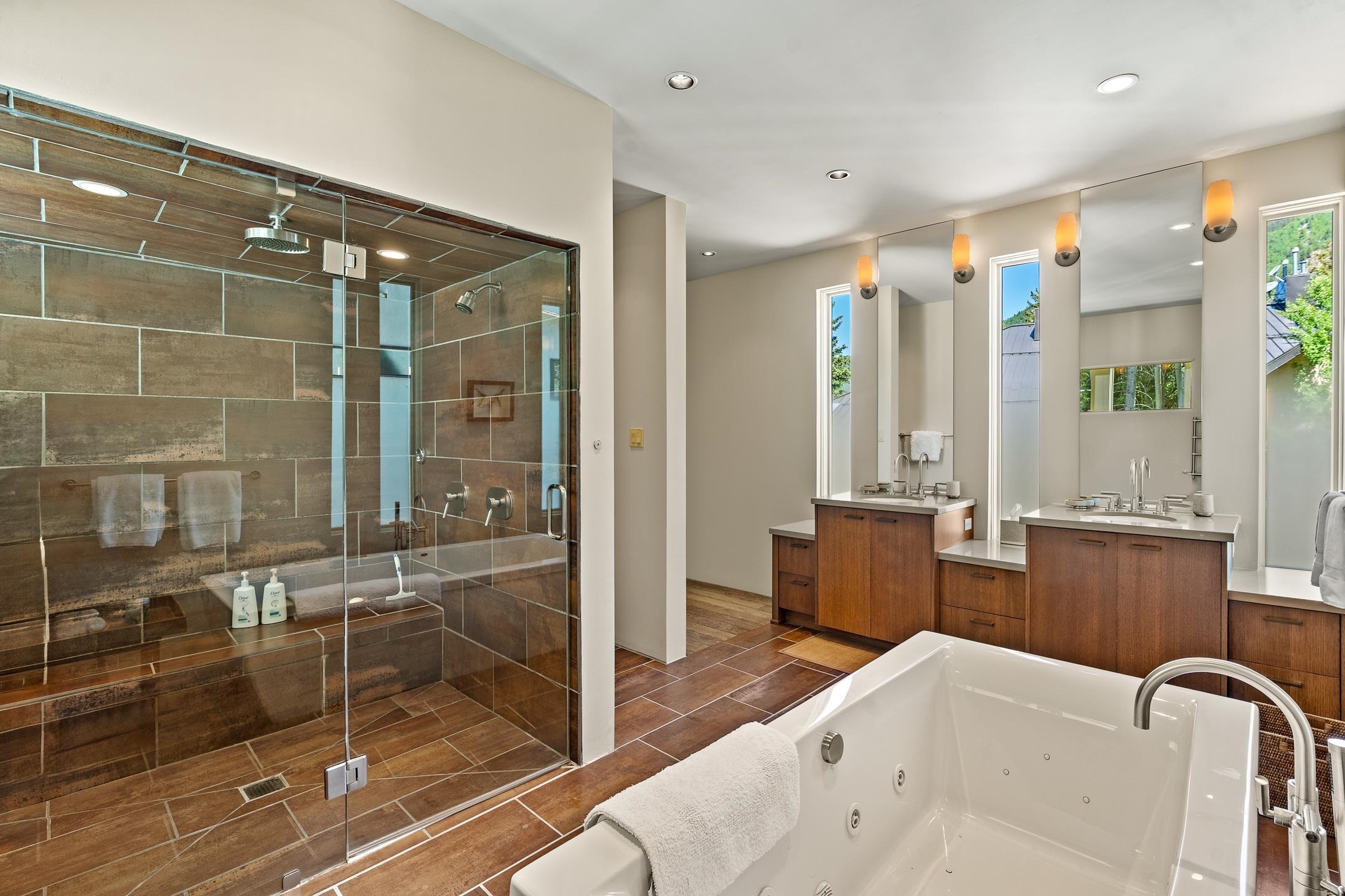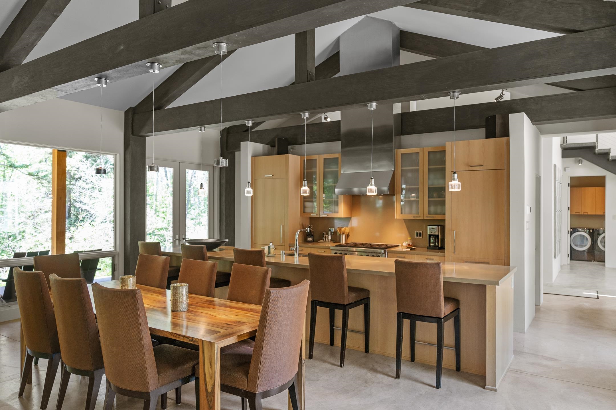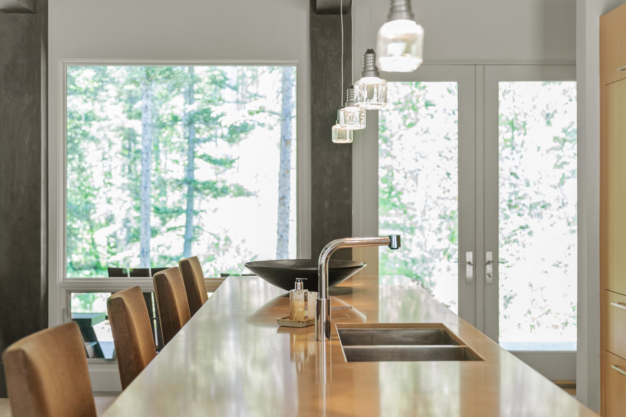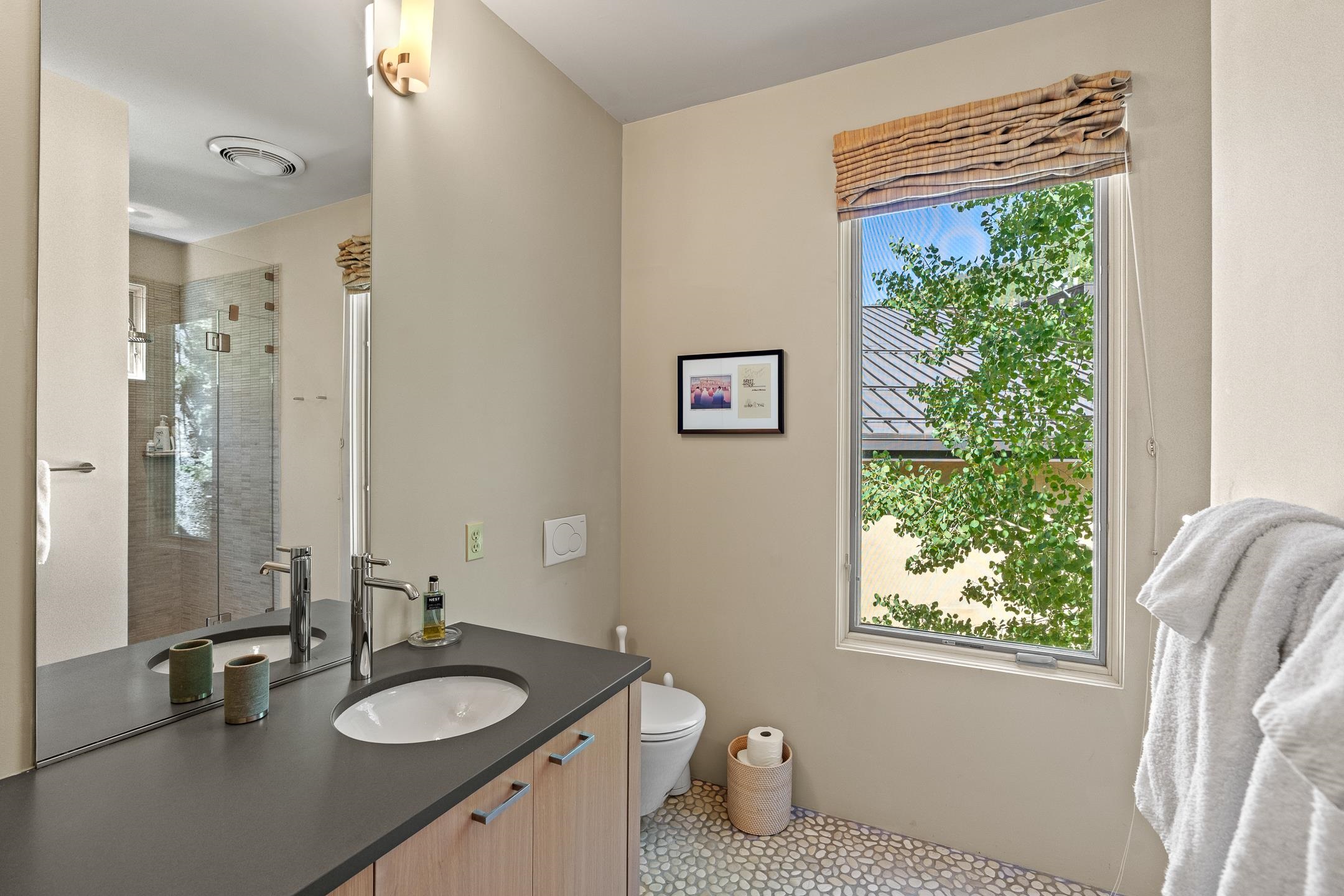 Situated in the heart of Taos Ski Valley, this one-of-a-kind Contemporary Modern Mountain Home redefines alpine luxury. Set on a rare corner lot spanning over one-third of an acre, the property is graced with more than 150 feet of the Rio Hondo River, flowing beneath two custom-built bridges that provide direct ski-in/ski-out access. Just a short walk to the base area's two main lifts, the location is simply unmatched. Every detail of this stunning home exudes sophistication and modern elegance. Designed for both comfort and performance, it features high-end finishes throughout, including automated sun shades, radiant in-floor heating, a chef's kitchen with premium appliances, and a luxurious steam shower in the primary suite. A dramatic zinc standing seam roof--engineered to last 80 to 100 years--crowns the home, while a natural gas standby generator ensures seamless year-round living. Step outside to the elevated hot tub perched above the river and enjoy serene mountain ambiance like no other. The heated driveway and stone paver walkways offer effortless winter access, while the oversized 3-car garage--with one bay currently transformed into a game room--adds versatility and comfort. A dedicated ski storage room with private locker space and a separate entrance completes the alpine lifestyle experience. Equipped with a natural gas generator, the property ensures uninterrupted power during winter storms and outages. The home's thoughtful floor plan offers exceptional privacy and flow. The primary suite features a private office, steam shower, and complete separation from the guest quarters, which are adjacent to a spacious family lounge. A guest suite on the lower level provides additional convenience and flexibility. From its unparalleled riverfront setting to its extraordinary finishes and amenities, there is simply no other home of this caliber in Taos Ski Valley. This is more than a residence--it's an elevated mountain sanctuary. Home is being sold fully furnished including most artwork.