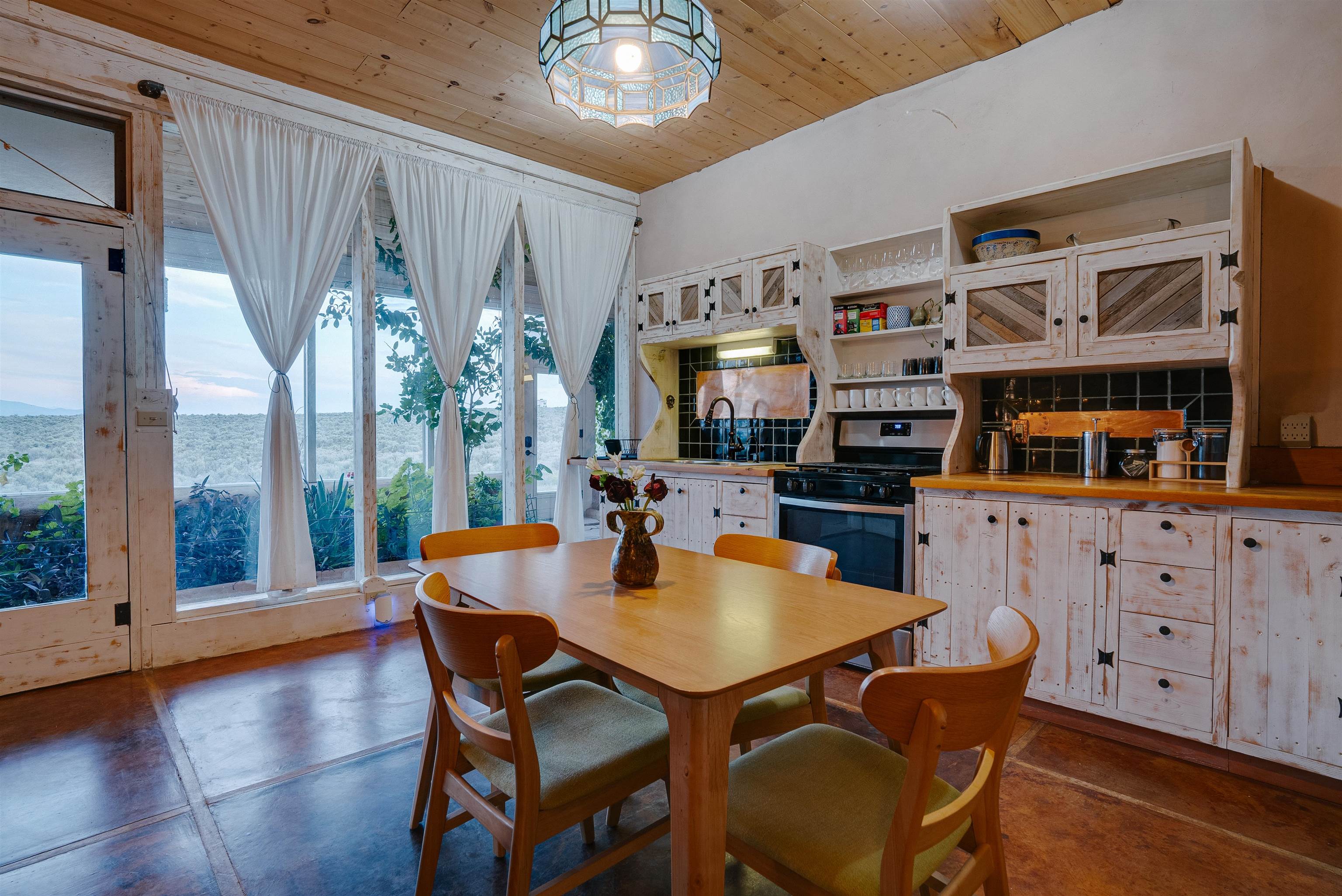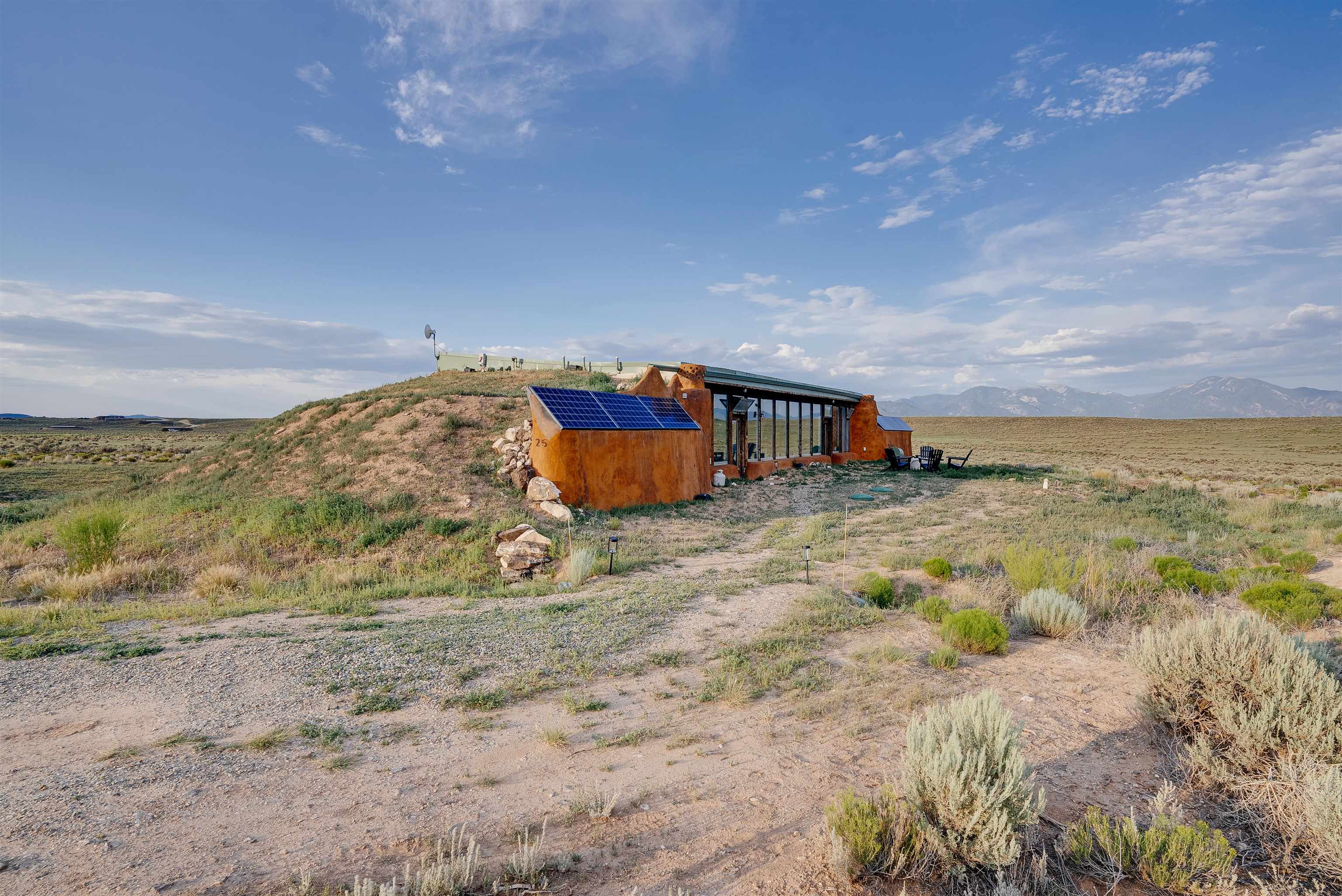 MODERN COMFORT MEETS SUSTAINABLE LIVING iN THIS STUNNING EARTHSHIP HOME Experience the best of off-grid living in this beautifully designed and meticulously maintained 5-year-old Earthship, located in the heart of the renowned Greater World Community. This 2-bedroom, 1-bathroom home features a thoughtful split-bath layout and blends sustainable architecture with modern comfort. The open-concept living/kitchen/dining area and two bedrooms are accented by tongue-and-groove ceilings and floor-to-ceiling windows that flood the space with natural light and frame panoramic views of the high desert mesa and majestic distant mountains. Step outside to your private fire pit and soak in the expansive night skies--where, on clear nights, the Milky Way feels almost within reach. Set back from the main road, this home offers privacy and serenity, yet remains conveniently located just 5 minutes from the Taos airport, 20 minutes from downtown Taos, and 30 minutes from world-class skiing in Taos Ski Valley. Whether you're looking for a full-time residence, a sustainable getaway, or a proven short-term rental investment, this Earth-friendly retreat offers a unique opportunity to live in harmony with nature--without sacrificing the modern amenities of conventional homes.