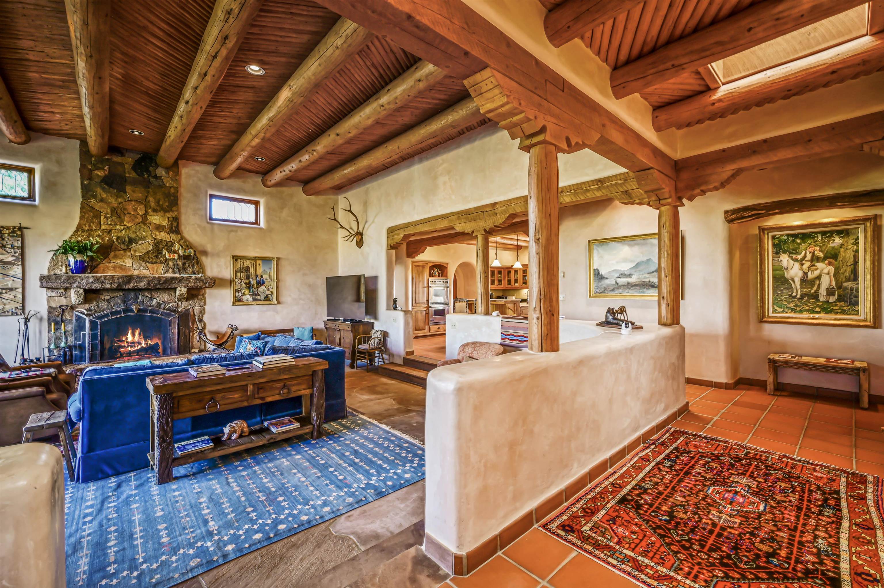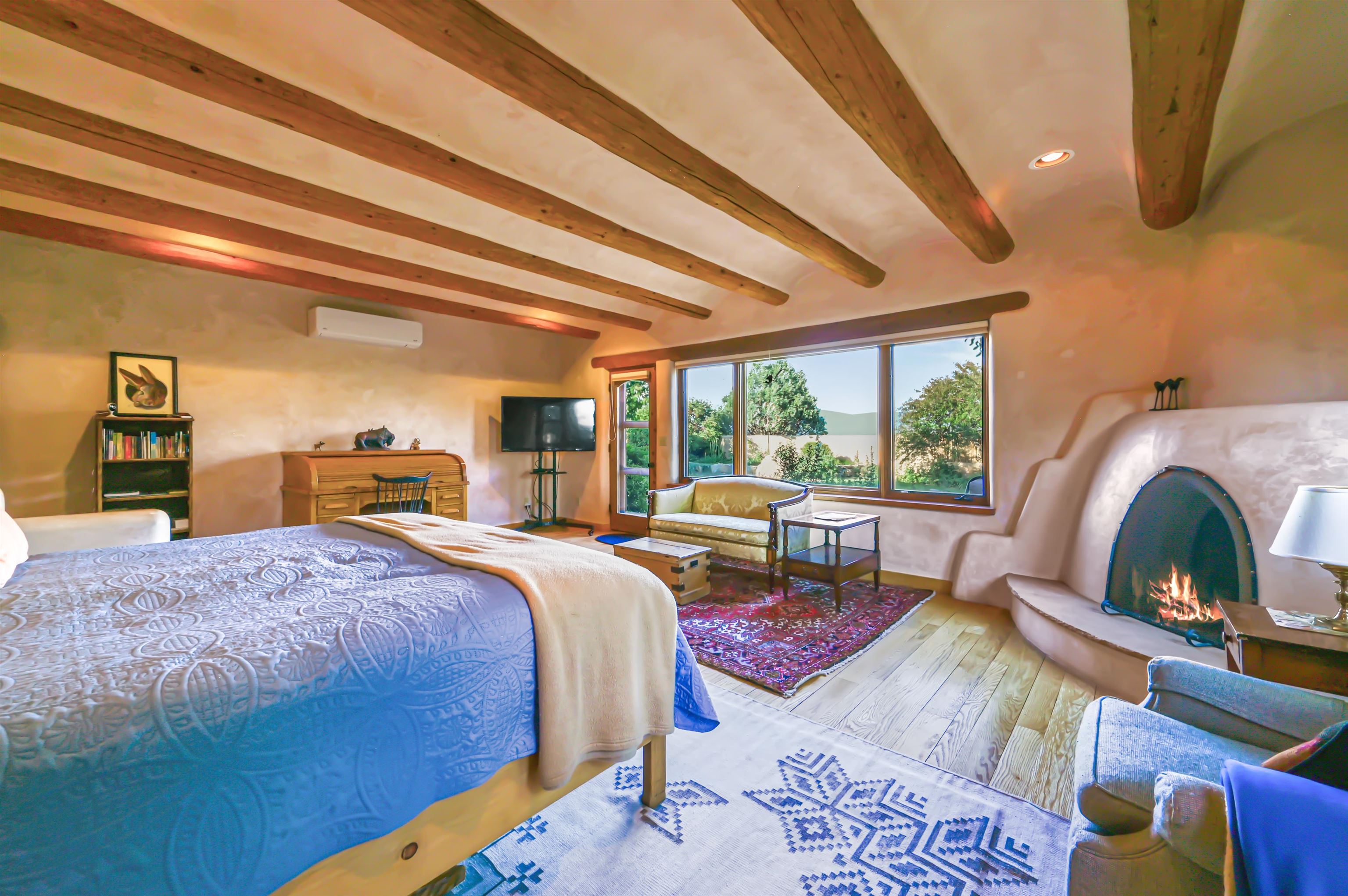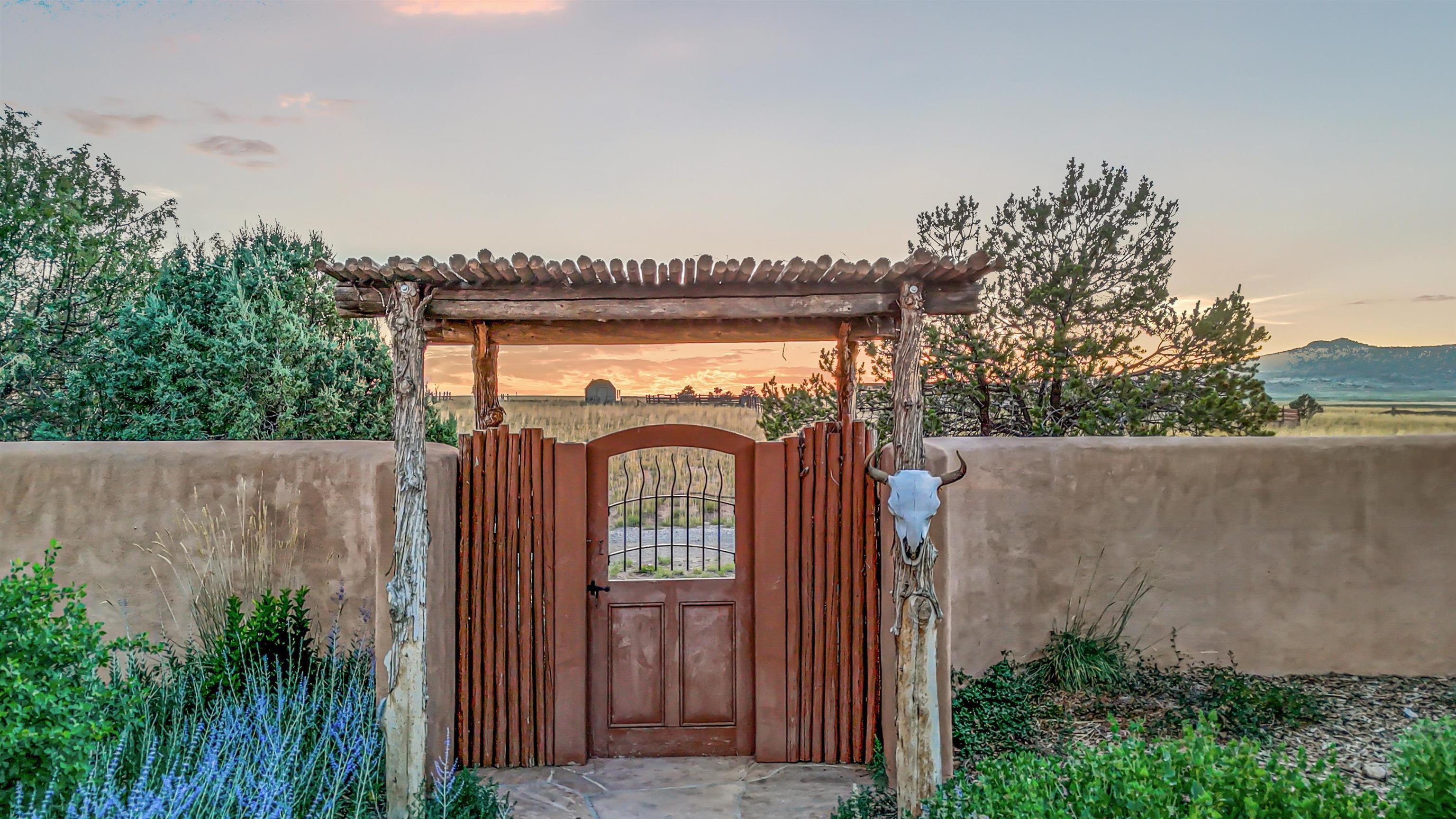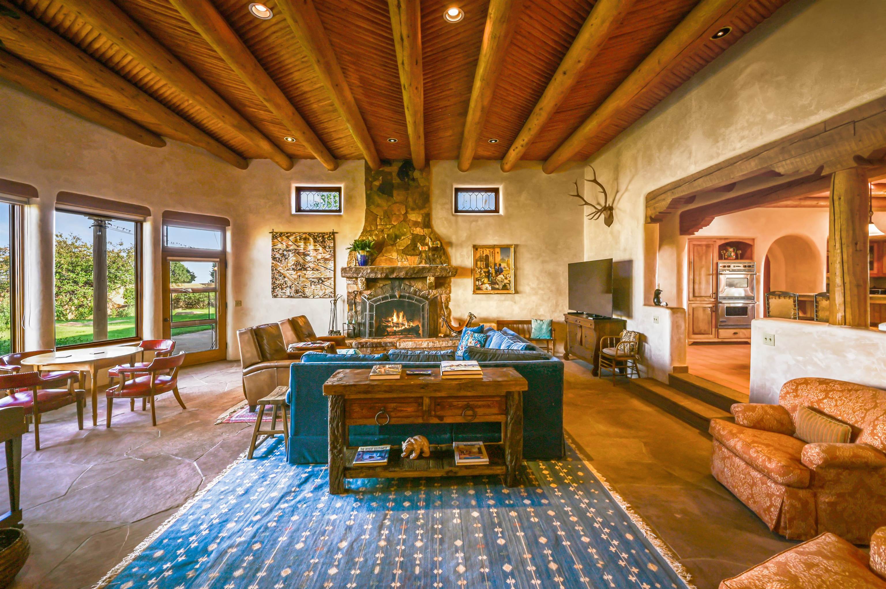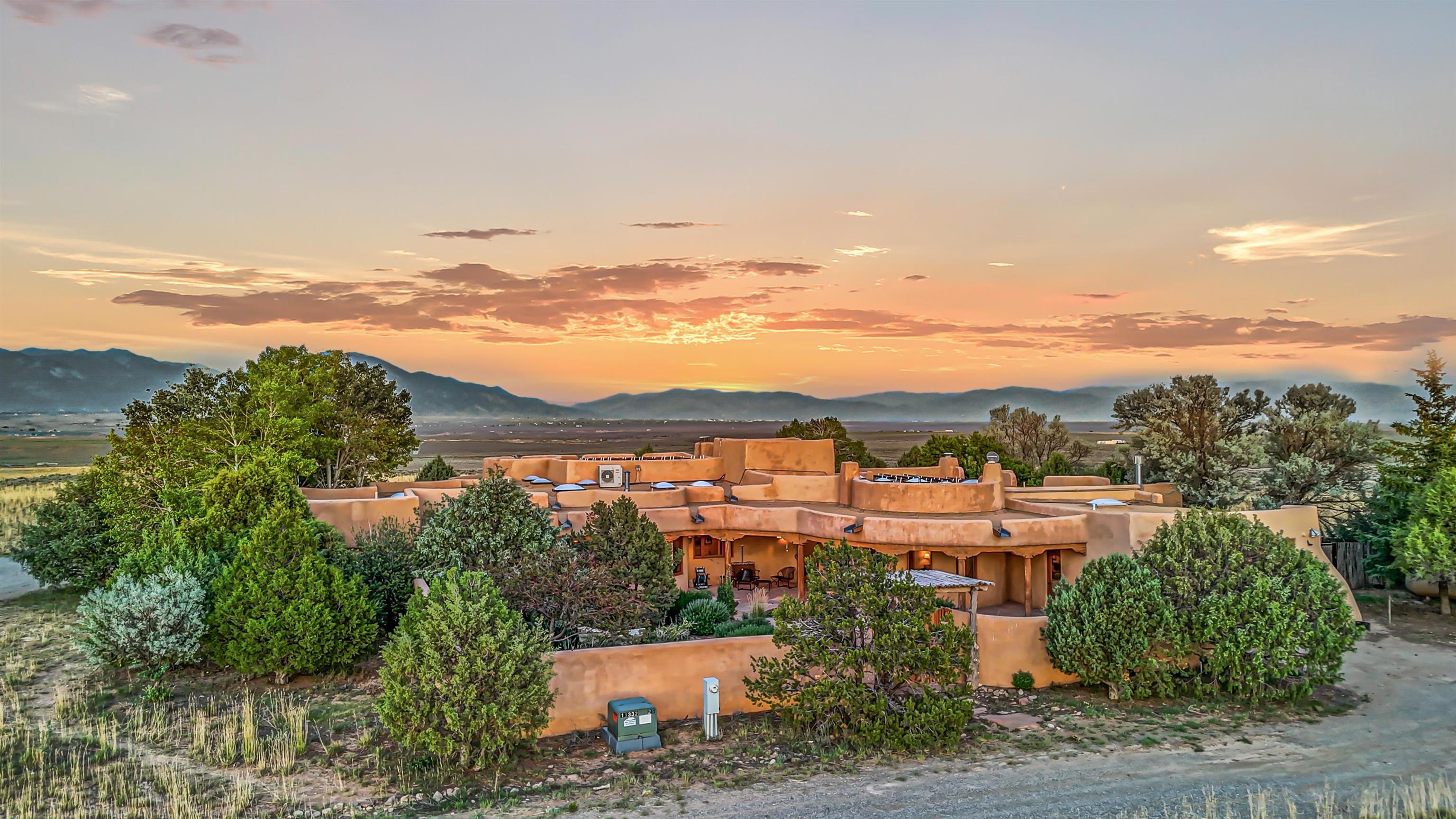 Welcome to a truly exceptional Northern New Mexico retreat--110 acres of serene beauty and luxurious living. This remarkable property features a stunning 4-bedroom, 3-bath primary residence once showcased in Enchanted Homes magazine, a testament to its timeless design, high-level craftsmanship, and one-of-a-kind charm. Inside, you'll find hand-carved beams, a magnificent stone fireplace, and warm, inviting spaces designed for comfort and elegance. The chef's kitchen is a dream for culinary enthusiasts, while multiple private patios and lush, thoughtfully landscaped gardens create a true oasis in the desert--perfect for quiet mornings, lively gatherings, and starlit evenings. Conveniently located just 10 quick minutes west of the Taos Regional Airport, this extraordinary estate is as functional as it is beautiful. A grid-tied solar system, private well, and high-speed fiber optic internet ensure modern sustainability and convenience. The land includes well-appointed outbuildings: storage, tack room, hay barn, and a 3-bedroom, 2-bath manufactured caretaker's home--ideal for guests, a ranch manager, or extended family. Take in breathtaking 360-degree views from every angle and enjoy the option for an elk hunting license, adding unique appeal for outdoor enthusiasts. Whether you dream of tending gardens, riding horses, or simply soaking up the peace and privacy under expansive skies, this property invites you to experience the very best of refined country living. If you've been searching for a luxurious private sanctuary that must be seen to be truly appreciated, this is the one.