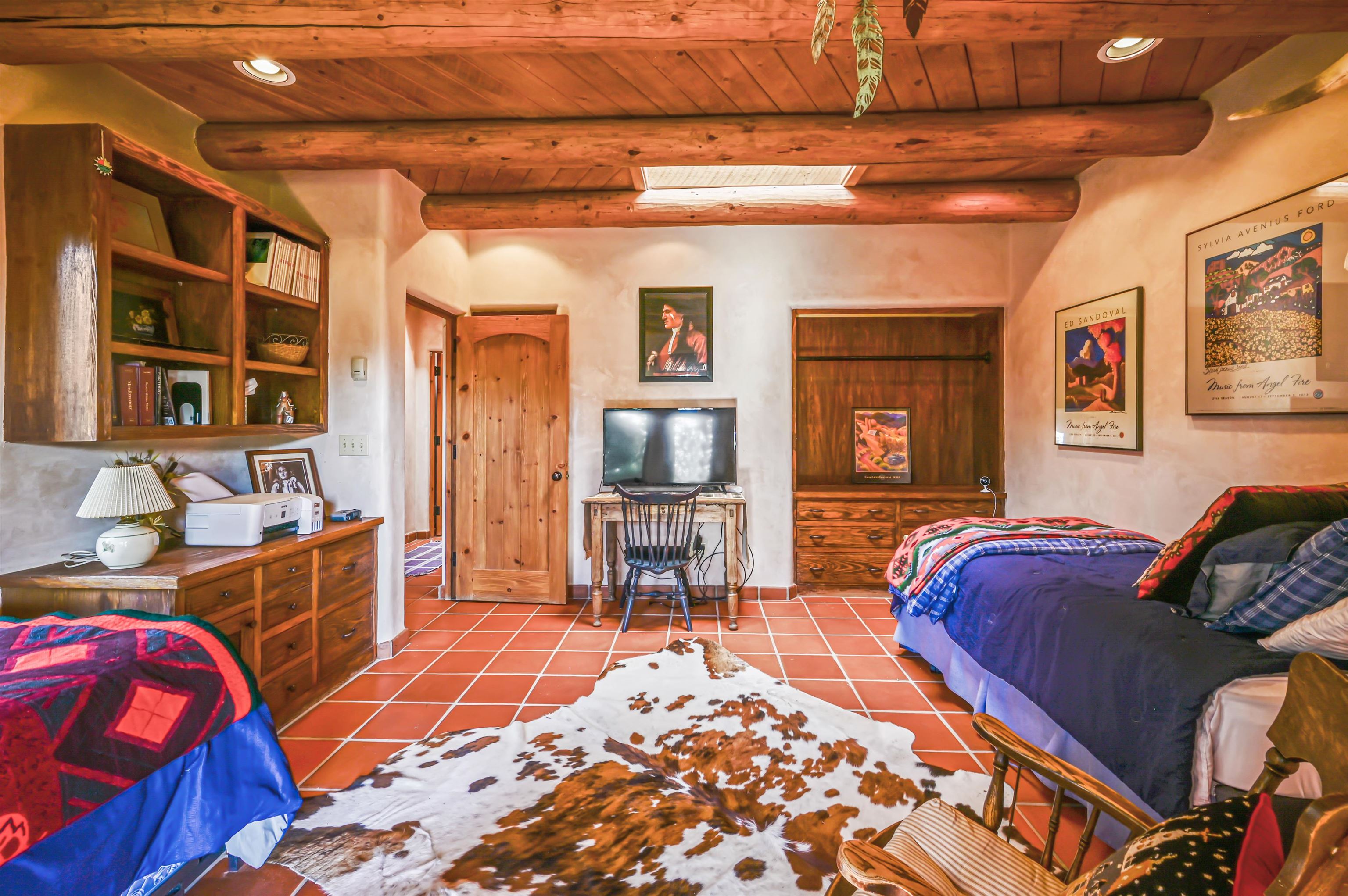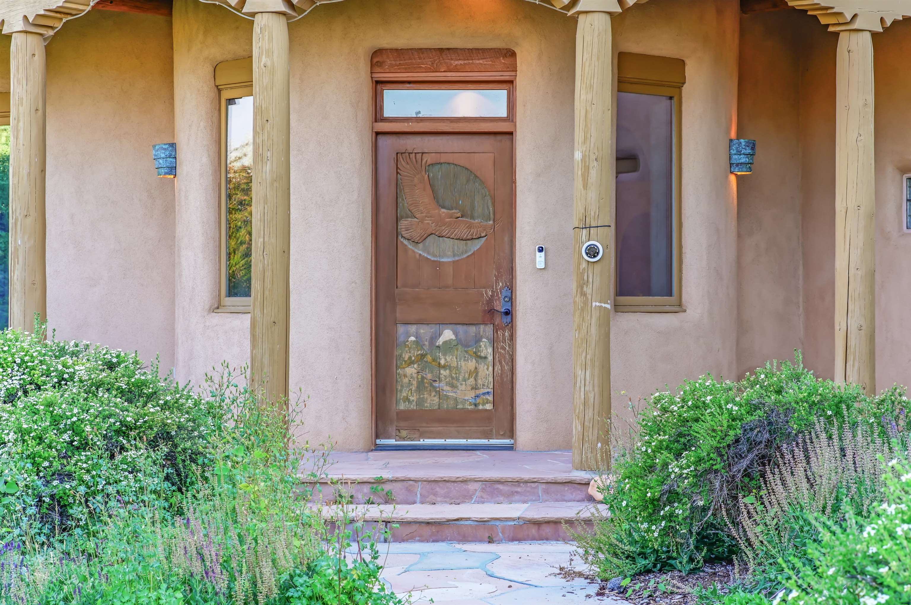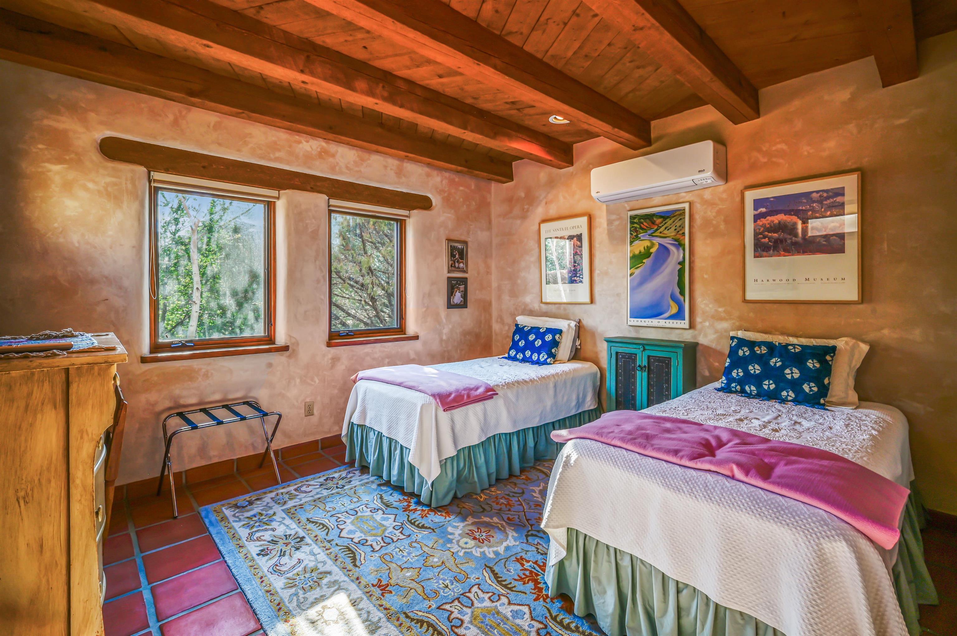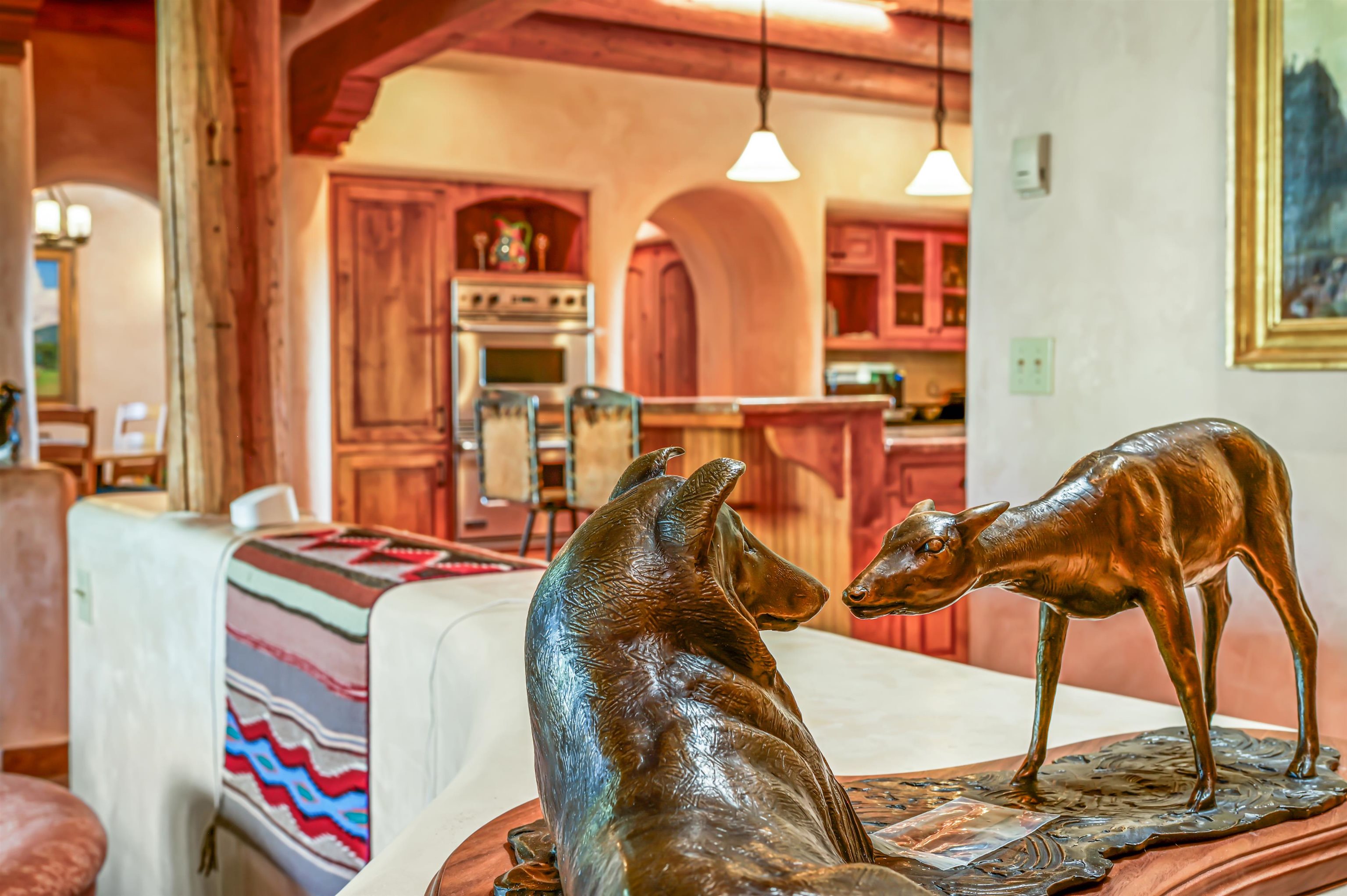 Welcome to a truly exceptional Northern New Mexico retreat--110 acres of serene beauty and luxurious living. This remarkable property features a stunning 4-bedroom, 3-bath primary residence once showcased in Enchanted Homes magazine, a testament to its timeless design, high-level craftsmanship, and one-of-a-kind charm. Inside, you'll find hand-carved beams, a magnificent stone fireplace, and warm, inviting spaces designed for comfort and elegance. The chef's kitchen is a dream for culinary enthusiasts, while multiple private patios and lush, thoughtfully landscaped gardens create a true oasis in the desert--perfect for quiet mornings, lively gatherings, and starlit evenings. Conveniently located just 10 quick minutes west of the Taos Regional Airport, this extraordinary estate is as functional as it is beautiful. A grid-tied solar system, private well, and high-speed fiber optic internet ensure modern sustainability and convenience. The land includes well-appointed outbuildings: storage, tack room, hay barn, and a 3-bedroom, 2-bath manufactured caretaker's home--ideal for guests, a ranch manager, or extended family. Take in breathtaking 360-degree views from every angle and enjoy the option for an elk hunting license, adding unique appeal for outdoor enthusiasts. Whether you dream of tending gardens, riding horses, or simply soaking up the peace and privacy under expansive skies, this property invites you to experience the very best of refined country living. If you've been searching for a luxurious private sanctuary that must be seen to be truly appreciated, this is the one.