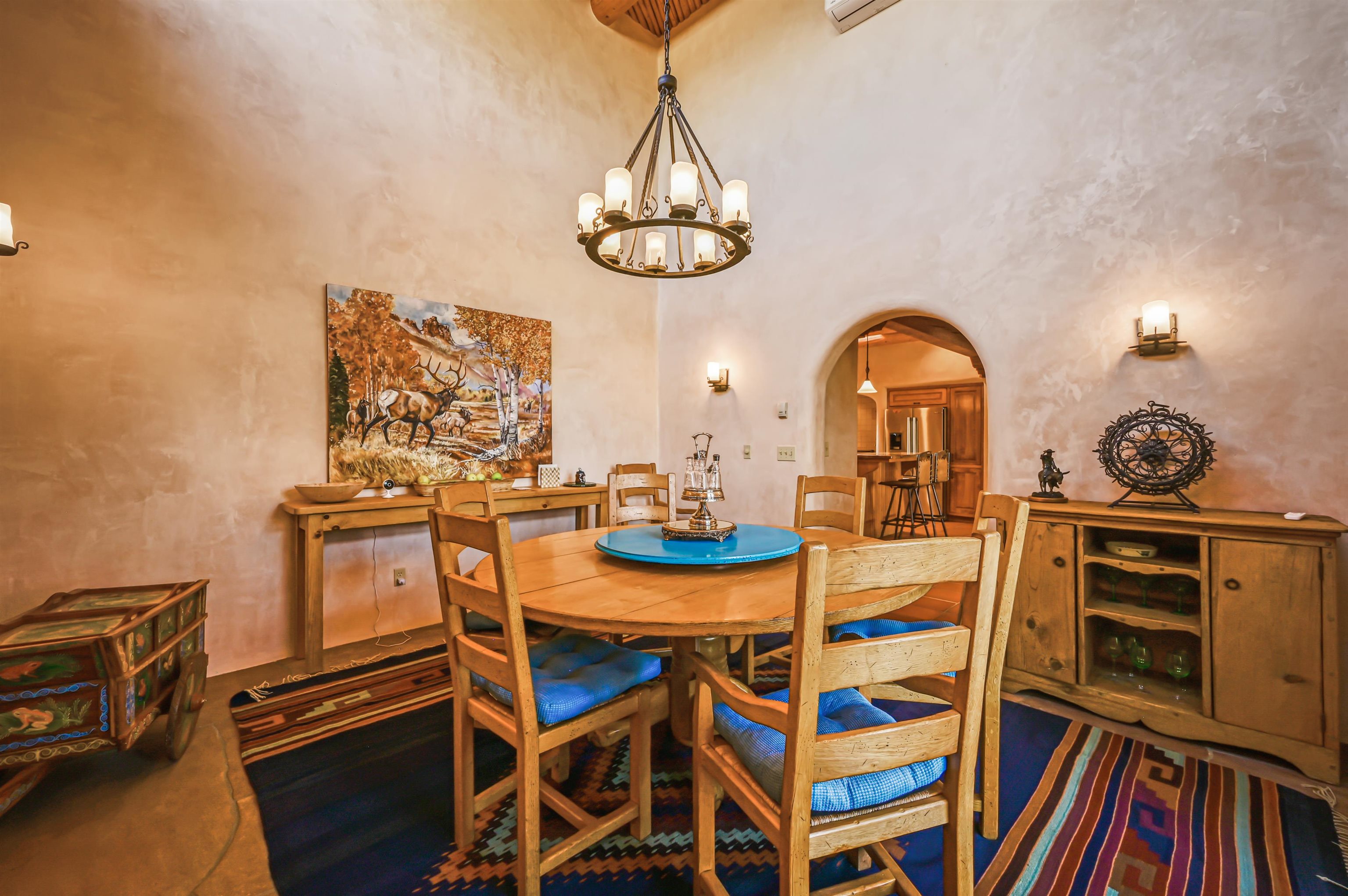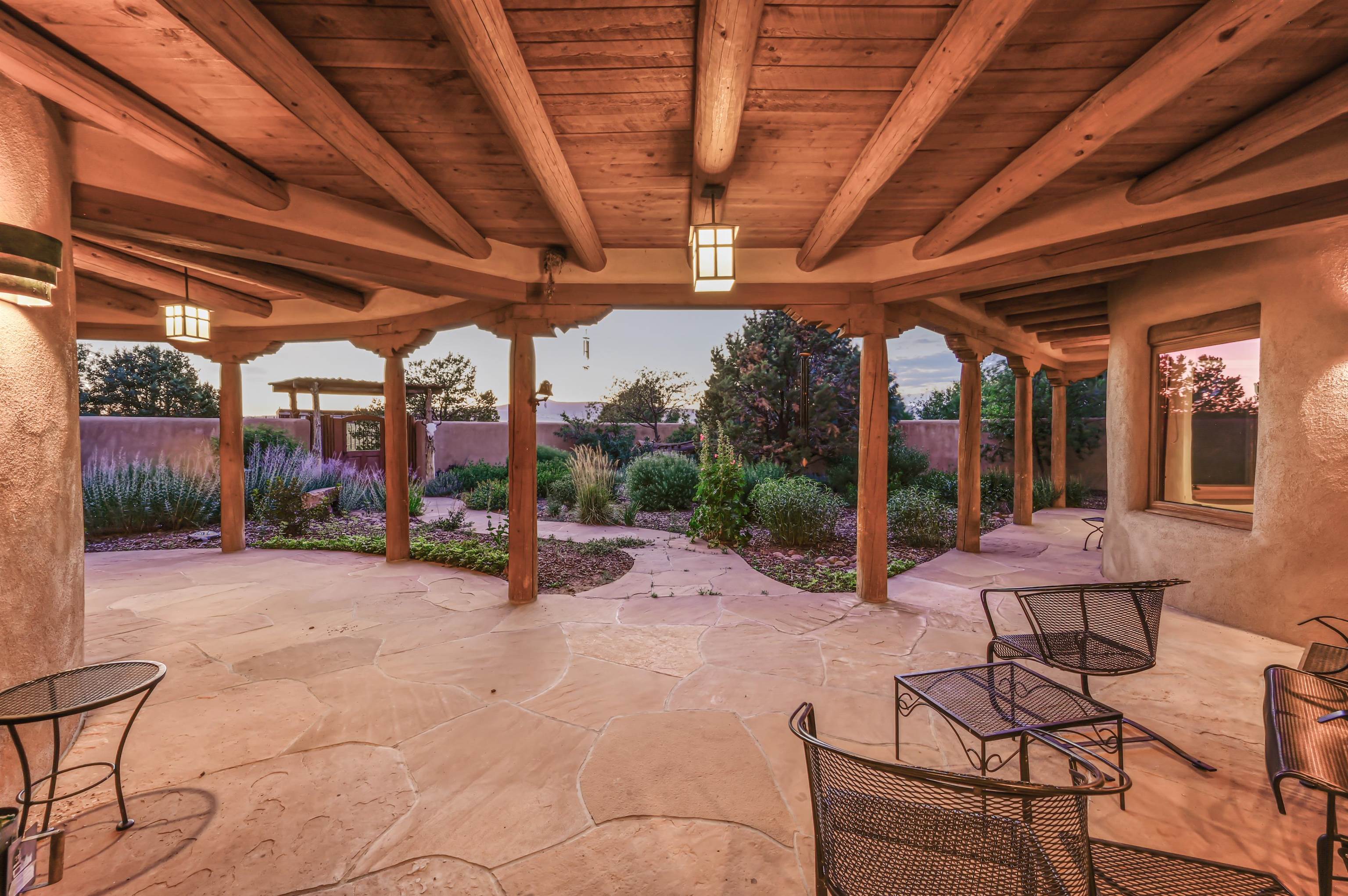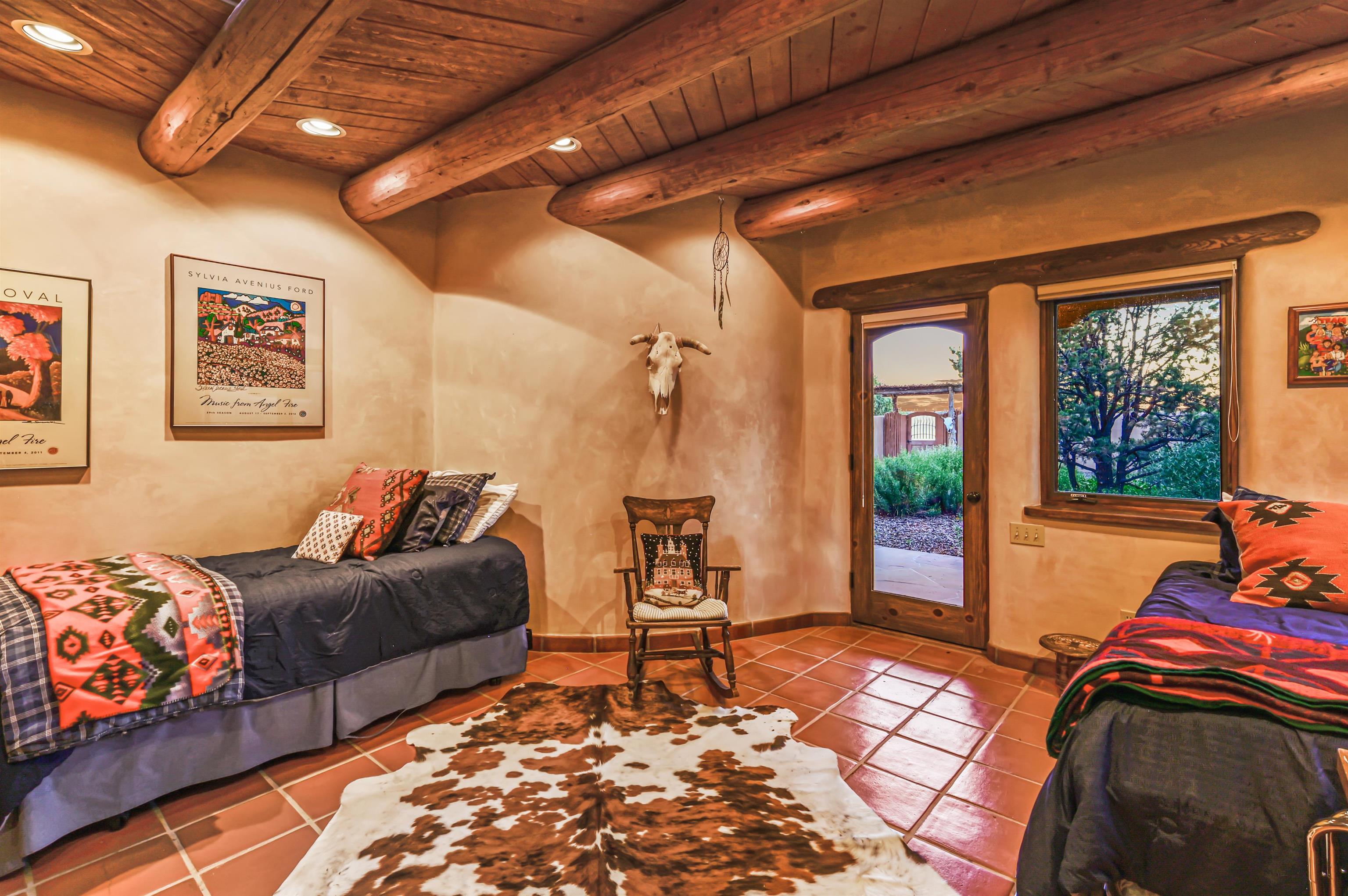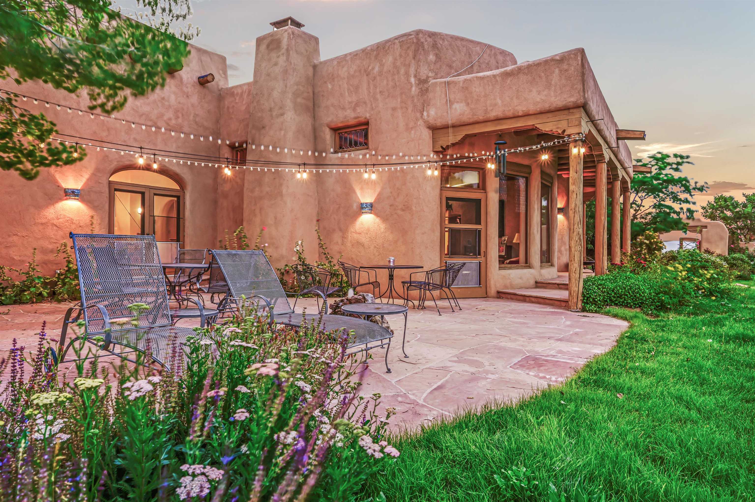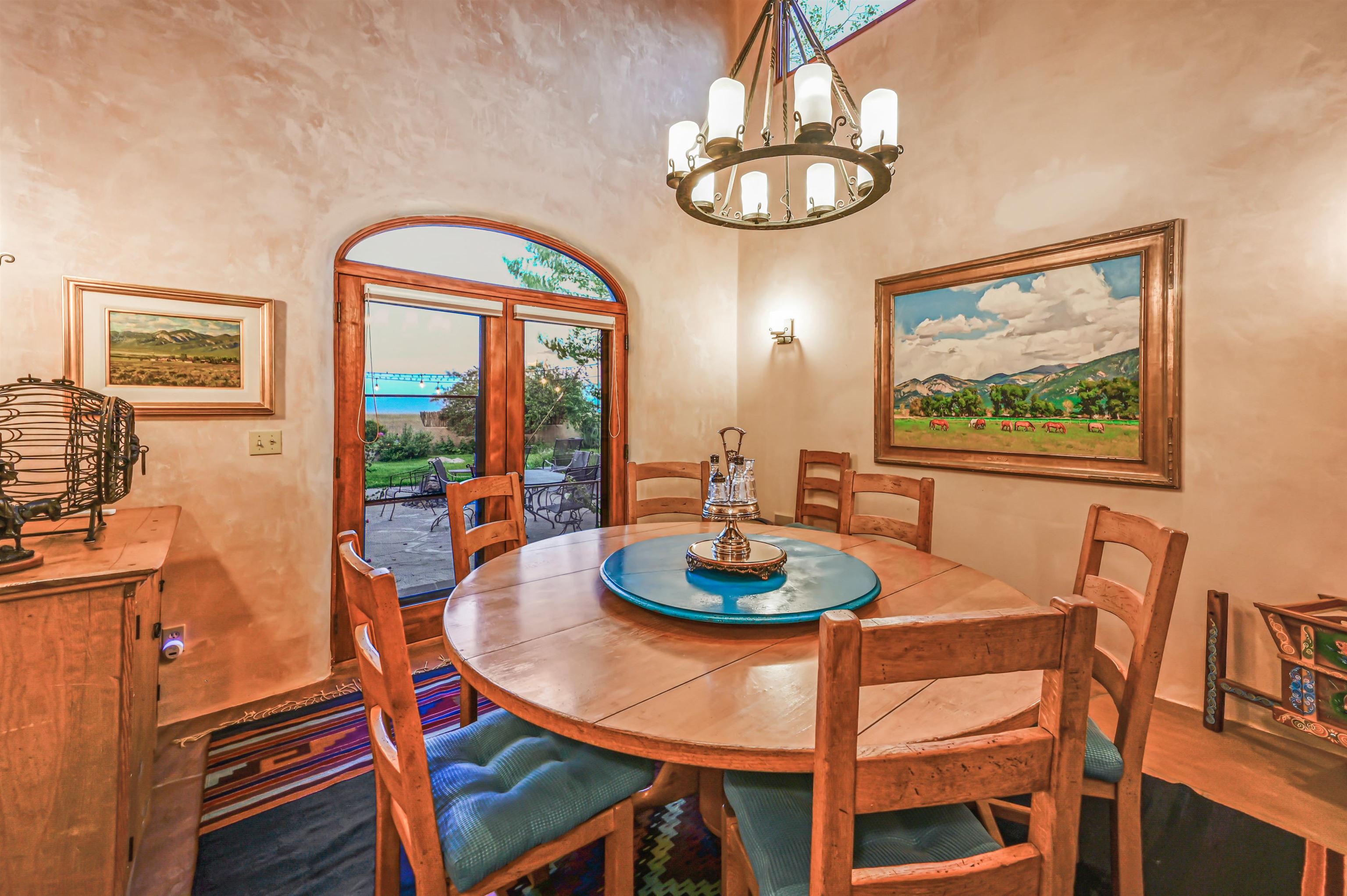 Welcome to a truly exceptional Northern New Mexico retreat--110 acres of serene beauty and luxurious living. This remarkable property features a stunning 4-bedroom, 3-bath primary residence once showcased in Enchanted Homes magazine, a testament to its timeless design, high-level craftsmanship, and one-of-a-kind charm. Inside, you'll find hand-carved beams, a magnificent stone fireplace, and warm, inviting spaces designed for comfort and elegance. The chef's kitchen is a dream for culinary enthusiasts, while multiple private patios and lush, thoughtfully landscaped gardens create a true oasis in the desert--perfect for quiet mornings, lively gatherings, and starlit evenings. Conveniently located just 10 quick minutes west of the Taos Regional Airport, this extraordinary estate is as functional as it is beautiful. A grid-tied solar system, private well, and high-speed fiber optic internet ensure modern sustainability and convenience. The land includes well-appointed outbuildings: storage, tack room, hay barn, and a 3-bedroom, 2-bath manufactured caretaker's home--ideal for guests, a ranch manager, or extended family. Take in breathtaking 360-degree views from every angle and enjoy the option for an elk hunting license, adding unique appeal for outdoor enthusiasts. Whether you dream of tending gardens, riding horses, or simply soaking up the peace and privacy under expansive skies, this property invites you to experience the very best of refined country living. If you've been searching for a luxurious private sanctuary that must be seen to be truly appreciated, this is the one.