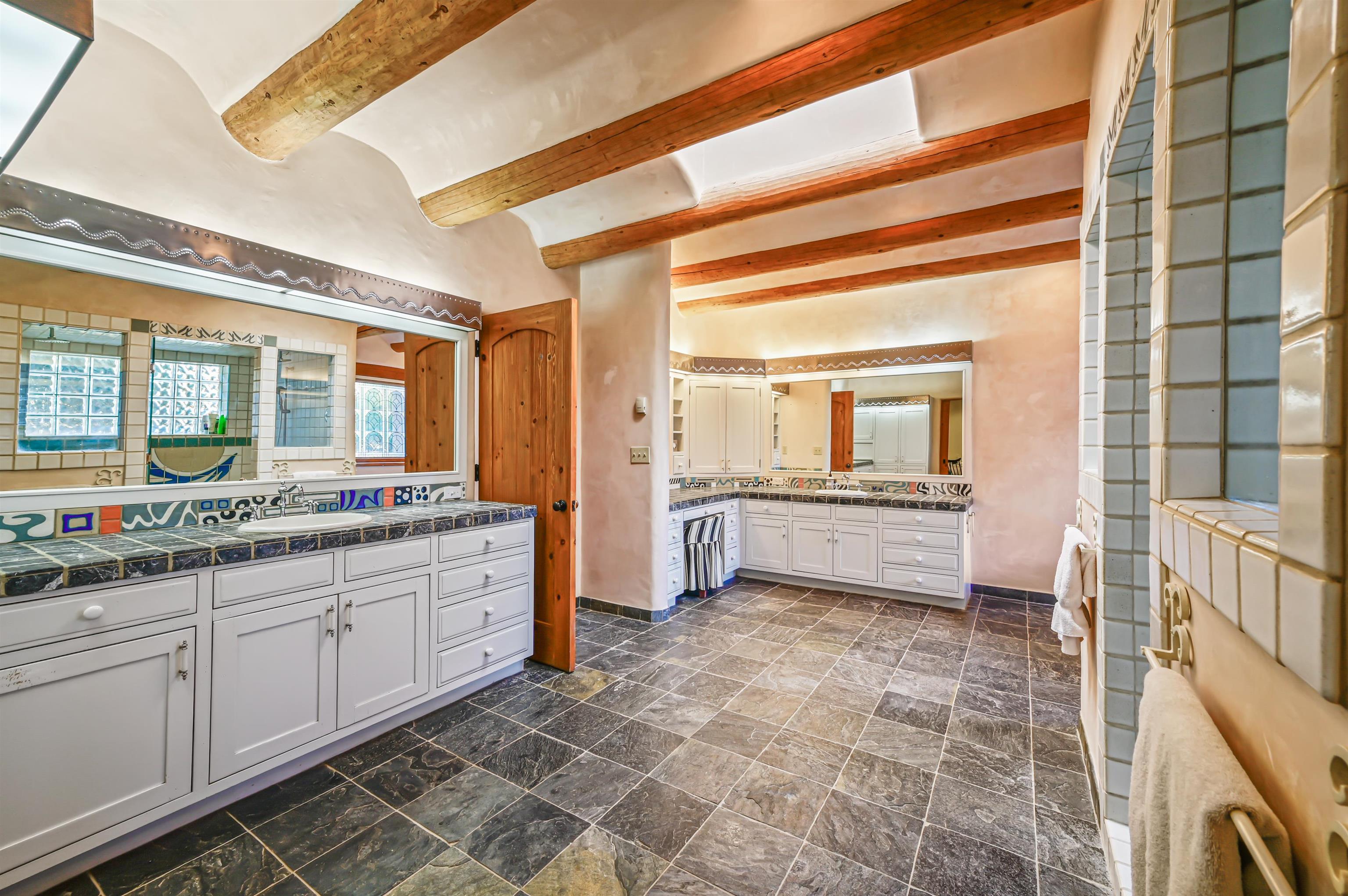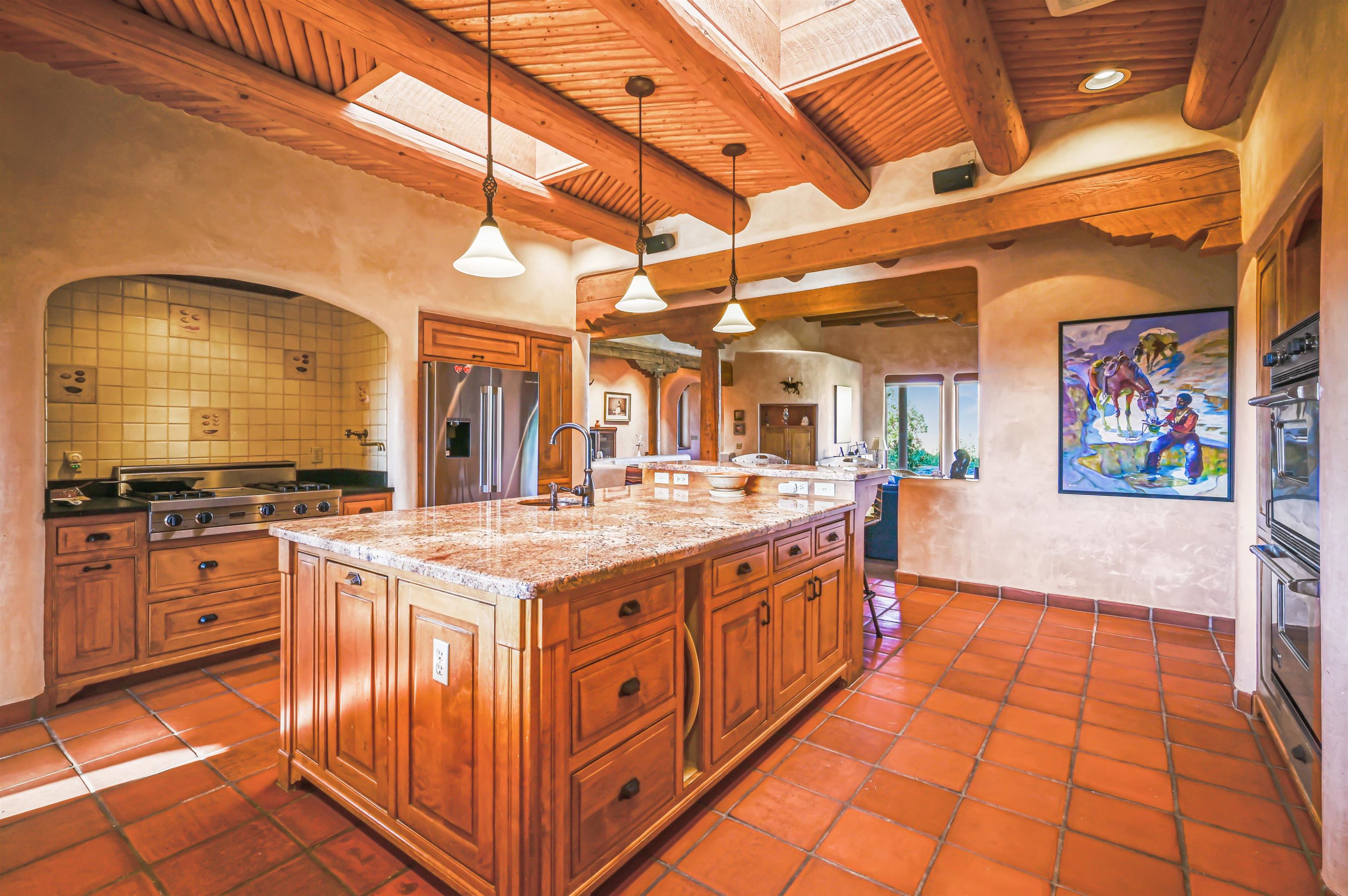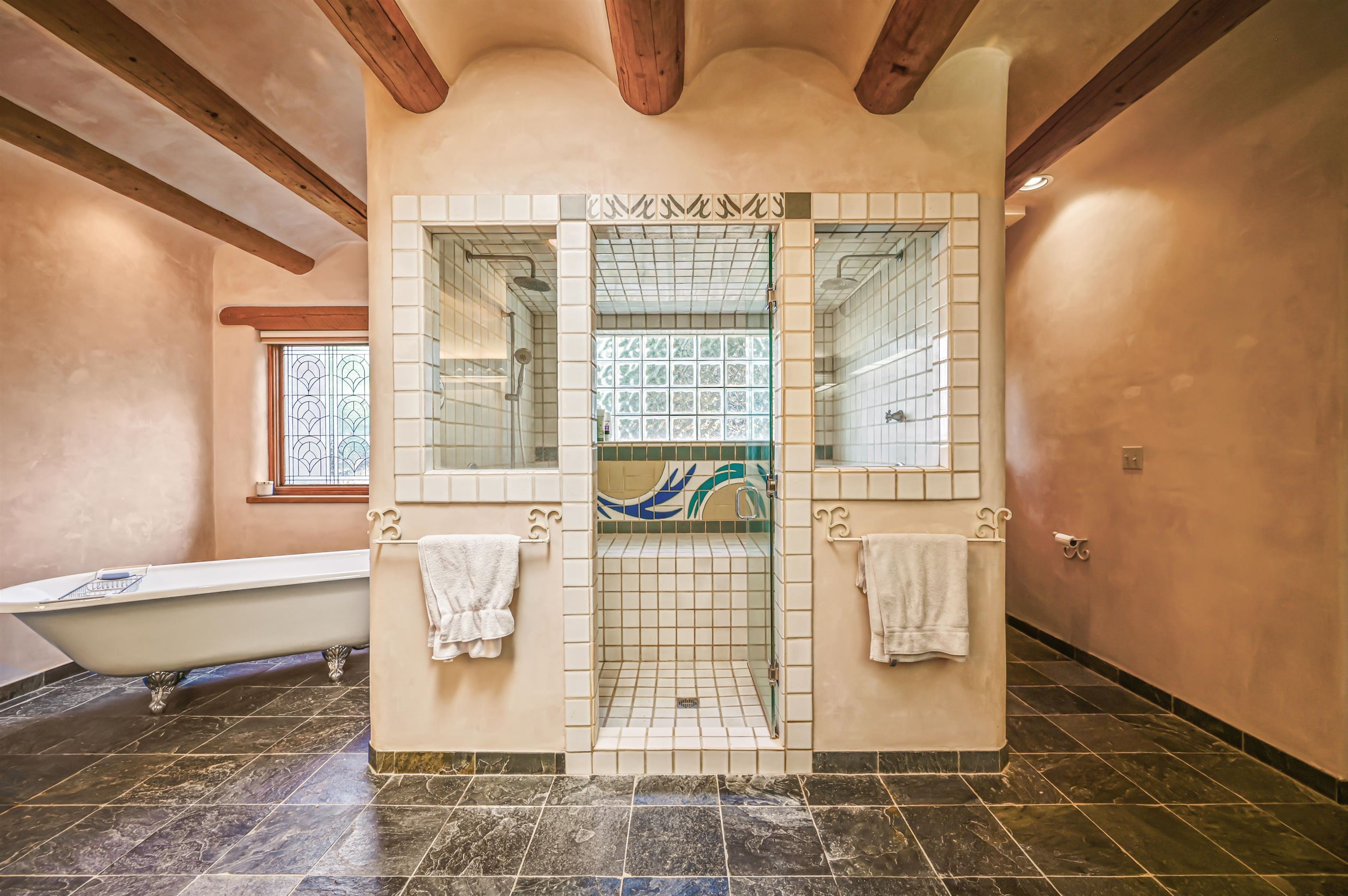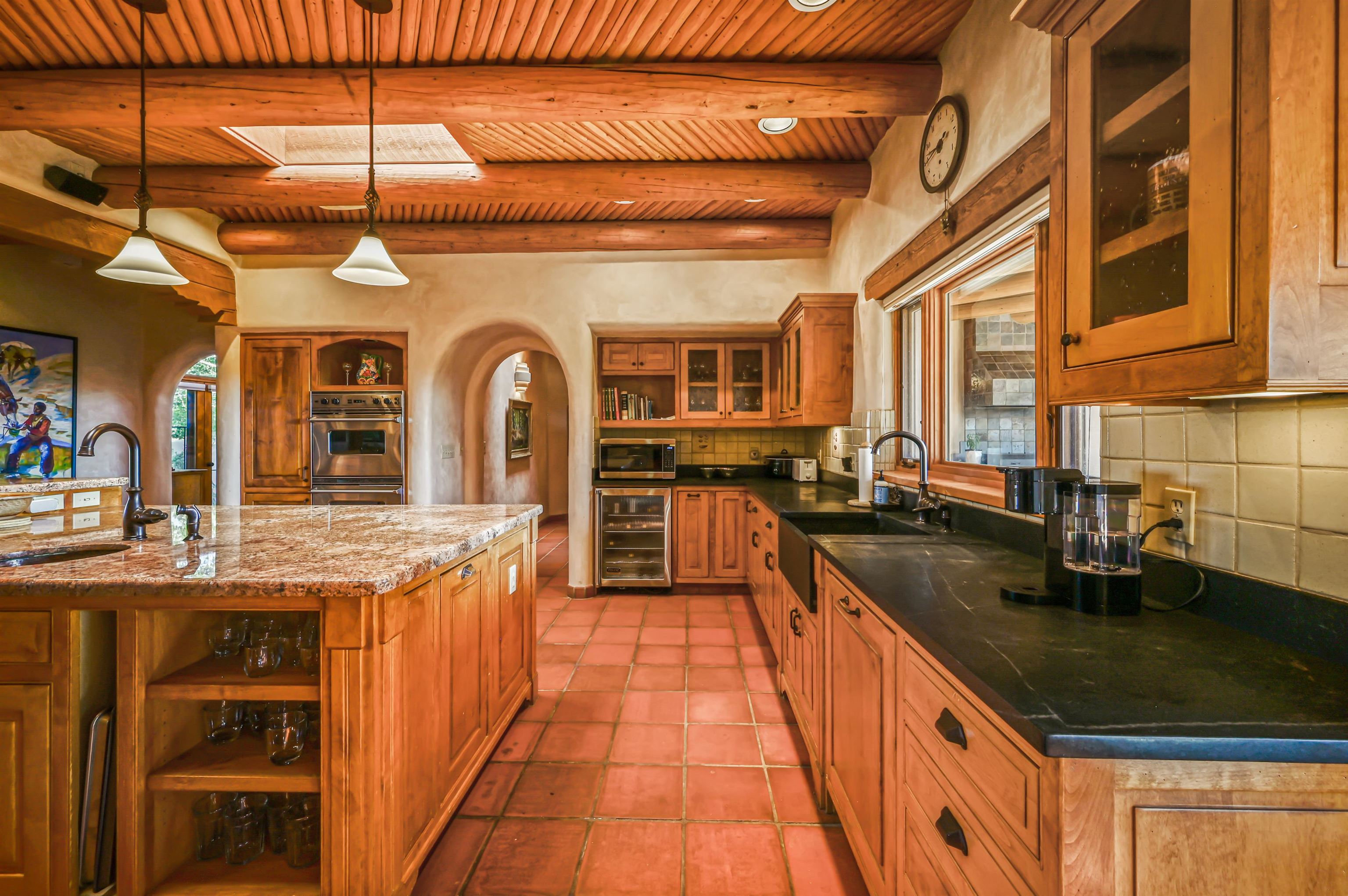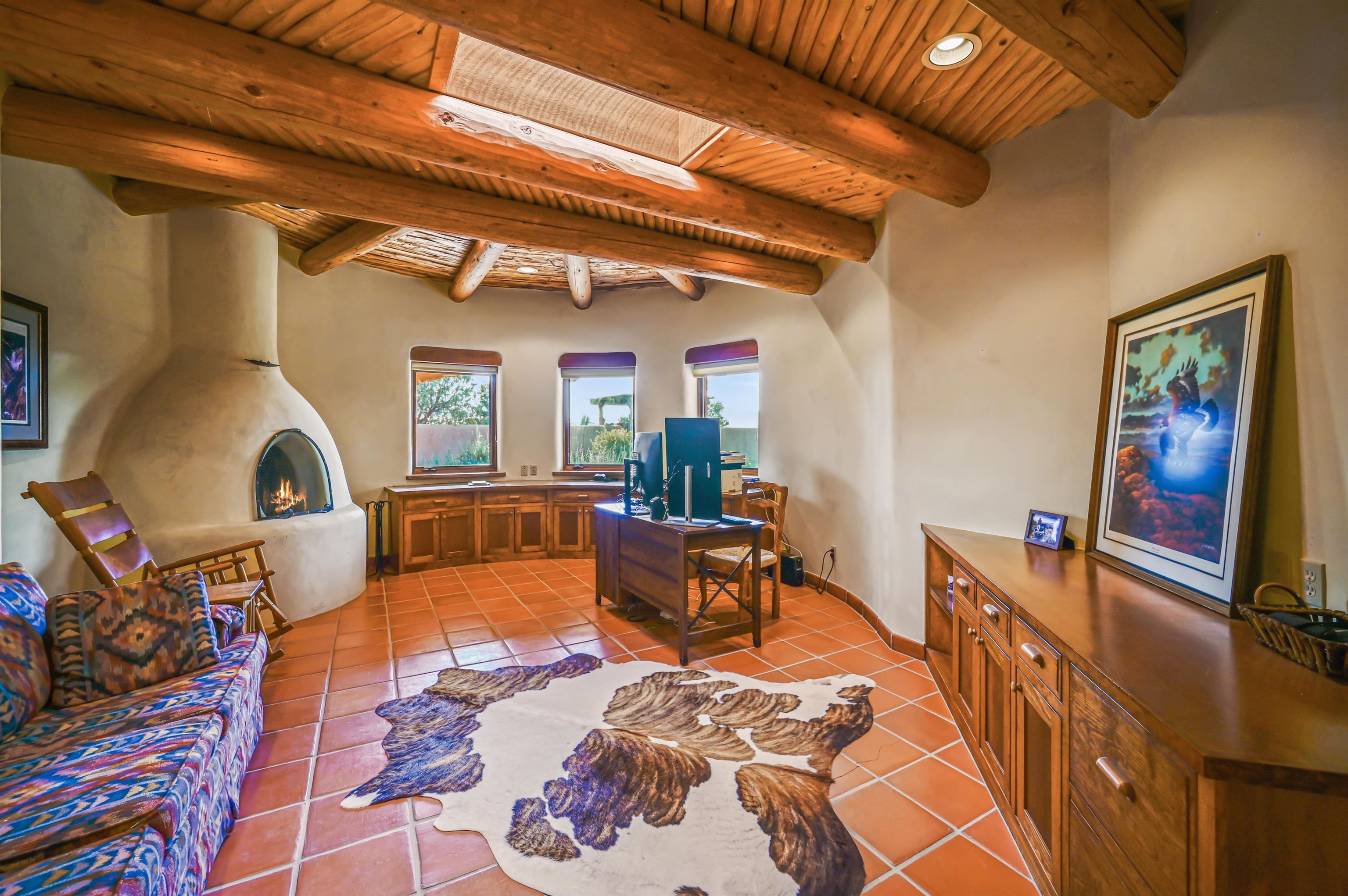 Welcome to a truly exceptional Northern New Mexico retreat--110 acres of serene beauty and luxurious living. This remarkable property features a stunning 4-bedroom, 3-bath primary residence once showcased in Enchanted Homes magazine, a testament to its timeless design, high-level craftsmanship, and one-of-a-kind charm. Inside, you'll find hand-carved beams, a magnificent stone fireplace, and warm, inviting spaces designed for comfort and elegance. The chef's kitchen is a dream for culinary enthusiasts, while multiple private patios and lush, thoughtfully landscaped gardens create a true oasis in the desert--perfect for quiet mornings, lively gatherings, and starlit evenings. Conveniently located just 10 quick minutes west of the Taos Regional Airport, this extraordinary estate is as functional as it is beautiful. A grid-tied solar system, private well, and high-speed fiber optic internet ensure modern sustainability and convenience. The land includes well-appointed outbuildings: storage, tack room, hay barn, and a 3-bedroom, 2-bath manufactured caretaker's home--ideal for guests, a ranch manager, or extended family. Take in breathtaking 360-degree views from every angle and enjoy the option for an elk hunting license, adding unique appeal for outdoor enthusiasts. Whether you dream of tending gardens, riding horses, or simply soaking up the peace and privacy under expansive skies, this property invites you to experience the very best of refined country living. If you've been searching for a luxurious private sanctuary that must be seen to be truly appreciated, this is the one.