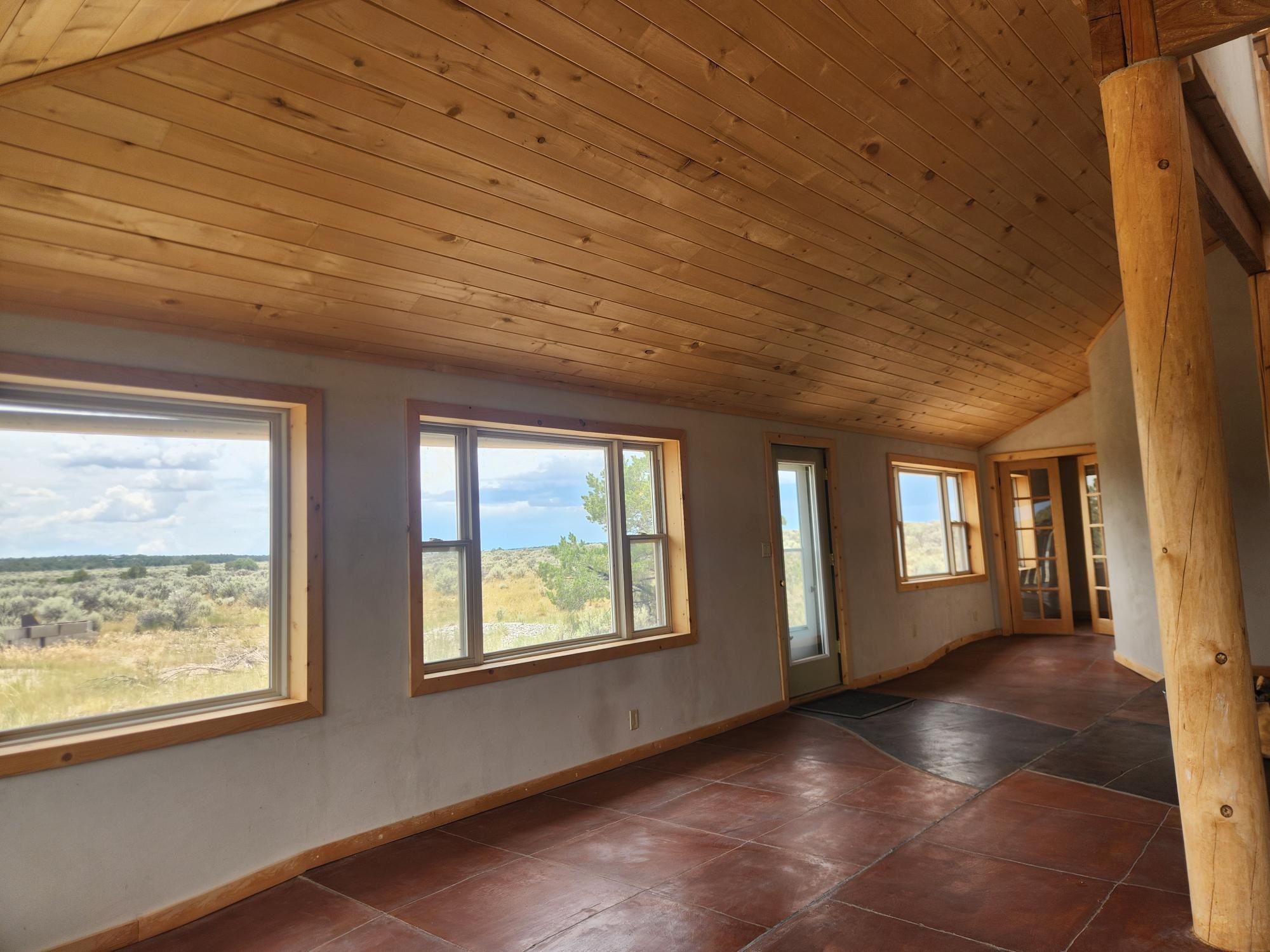 This efficient custom designed solar home will offer room to roam along with inspiring sunrises, sunsets and starry night skies. Enjoy spacious, secluded, off-grid living near Taos, NM. Straw bale/frame/stucco constructed home is on 38.9 acres that borders Carson National Forest in a private gated community. Stunning pinon framed views of the Sangre de Cristo Range extend from Santa Fe to Colorado. The home is cozy and inviting, featuring an open floor plan for ease of movement and views. Stylish earth and artisanal natural plaster walls along with attention to wooden design create an earthy and grounded environment in this passive and active solar-powered home. Green utilities include a self-supplied water catchment/cistern system and an efficient solar energy system. Make this a permanent home, artist's or writer's retreat just enough off the beaten path, yet an easy scenic ride will take you to colorful Taos for entertainment, skiing and great food. Abundant hiking, biking, scenery and wildlife are at your front door awaiting your adventures. Rio Grande del Norte National Monument, Wheeler Peak Wilderness and Carson Nation Forest are only a partial list of nearby public lands to enjoy.