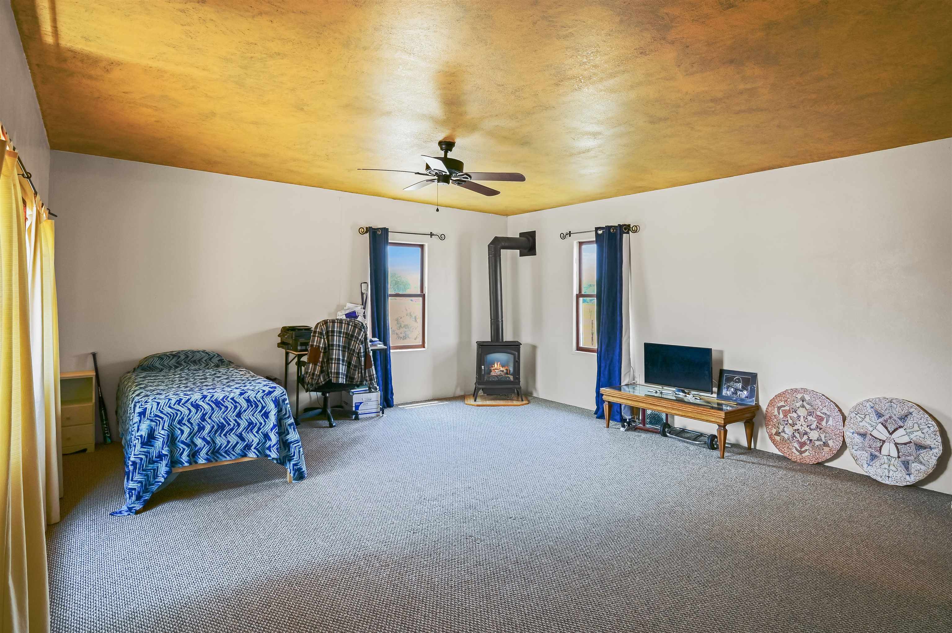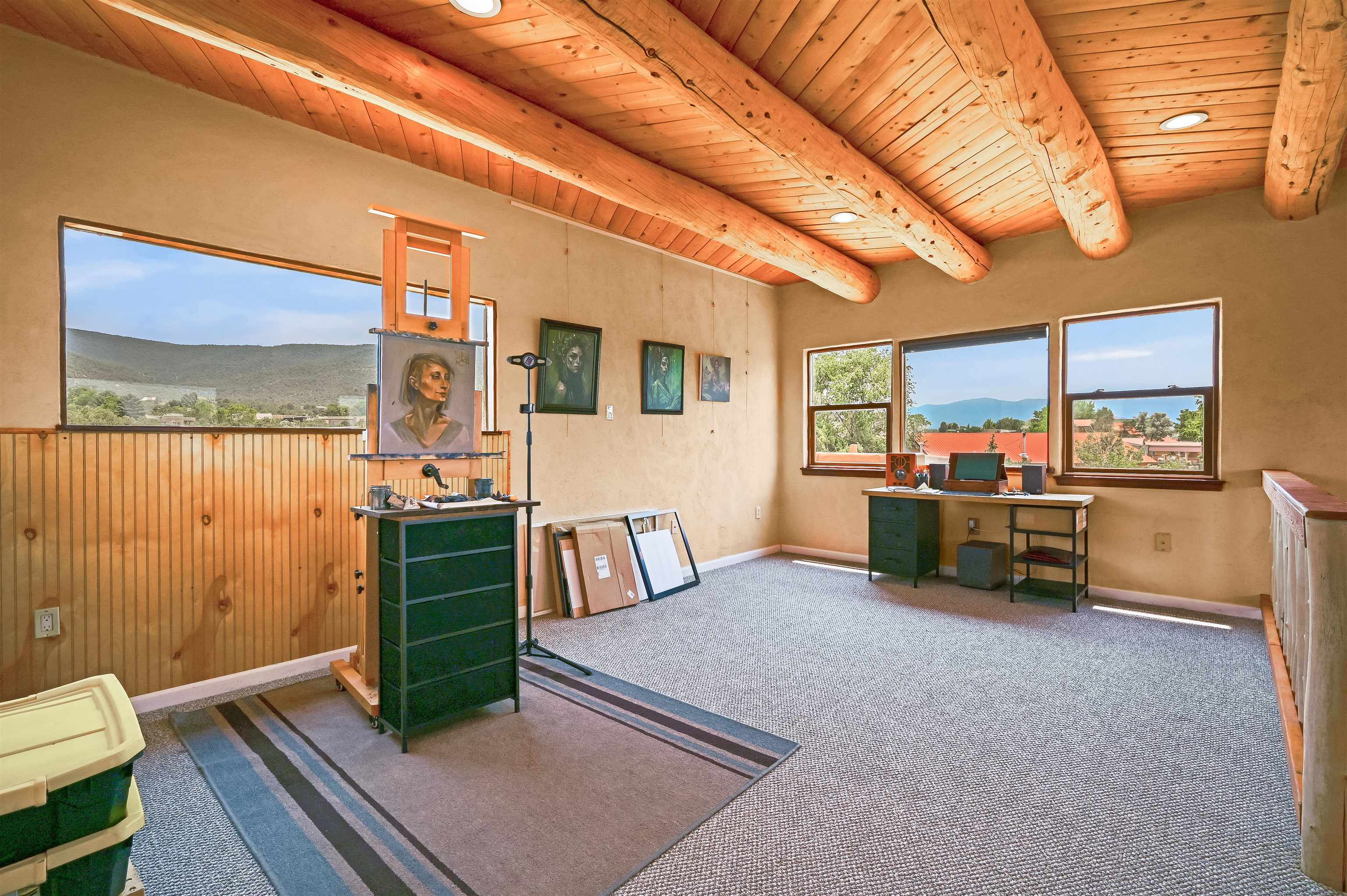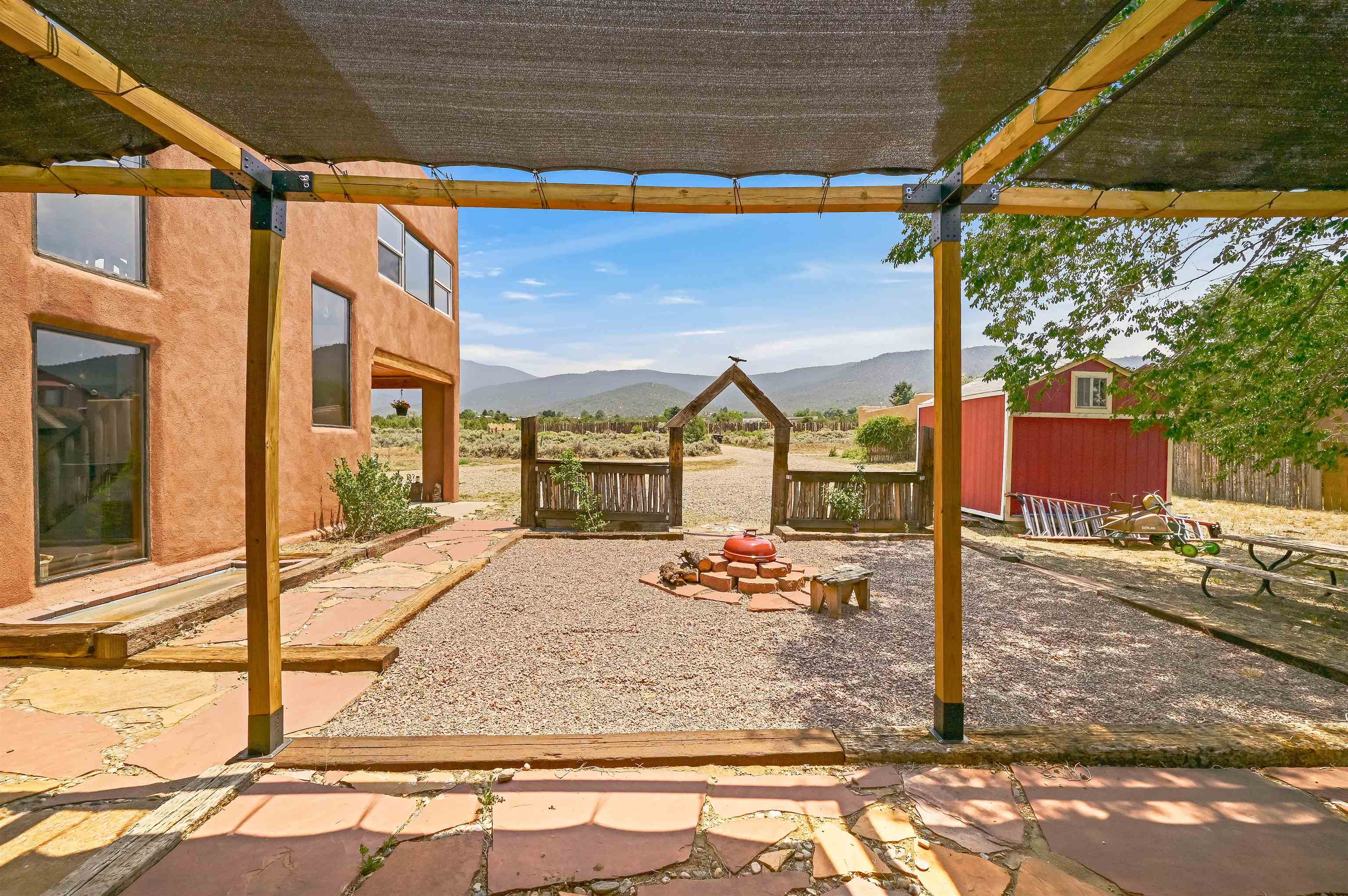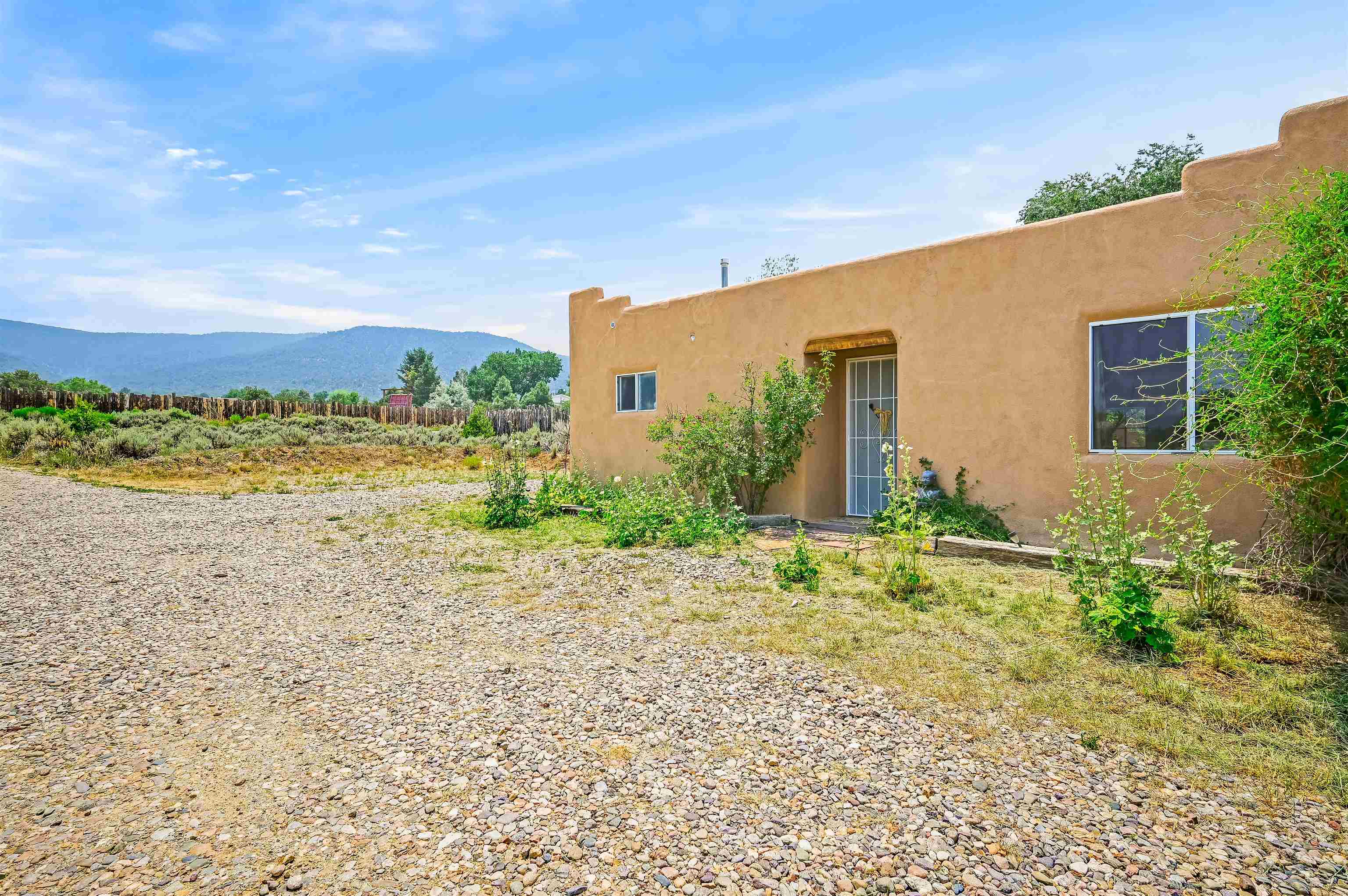 Discover a Unique Taos Living and Investment Opportunity! Nestled in Ranchos de Taos, just outside town limits, this exceptional property offers a serene lifestyle combined with a positive, steady rental income. You'll be living in a peaceful neighborhood, yet just 4 miles from Taos Plaza, a half-mile from Holy Cross Hospital, and moments from the Weimer Foothills trails. This unique offering includes four total units. The owner-occupied main home features an open living, dining, and kitchen area with clerestory windows and a loft. The cozy kiva fireplace, a two-story chimney before a sunken living area, was crafted by renowned artisan Carmen Velarde and inspired by the iconic Taos Inn. Enjoy abundant natural light and an upstairs loft/studio with a large second-story viewing deck offering breathtaking mountain views, including Taos Mountain, and stretching all the way to Colorado - perfect for watching spectacular sunsets and stargazing. The main home was beautifully remodeled in 2018, with upgraded bathroom, kitchen flooring, and cabinets, and the outdoor area was enhanced in 2023. Beyond the main residence, you'll find an extended owner's suite that has been partitioned as a studio rental, a separate 1-bedroom, 1-bathroom guest house, and a truly special adobe studio/chapel. This studio, a replica of a church chancel, was originally built for artist Fr. William Hart McNichols by master adobe builder Trini Velarde. Constructed with traditional adobes, mud floors, and vigas painted with natural plant dyes, this studio remains cool in summer and remarkably warm in winter. This is more than just a home; it's an incredible investment opportunity to own a piece of Taos's rich artistic and building heritage with established rental income.