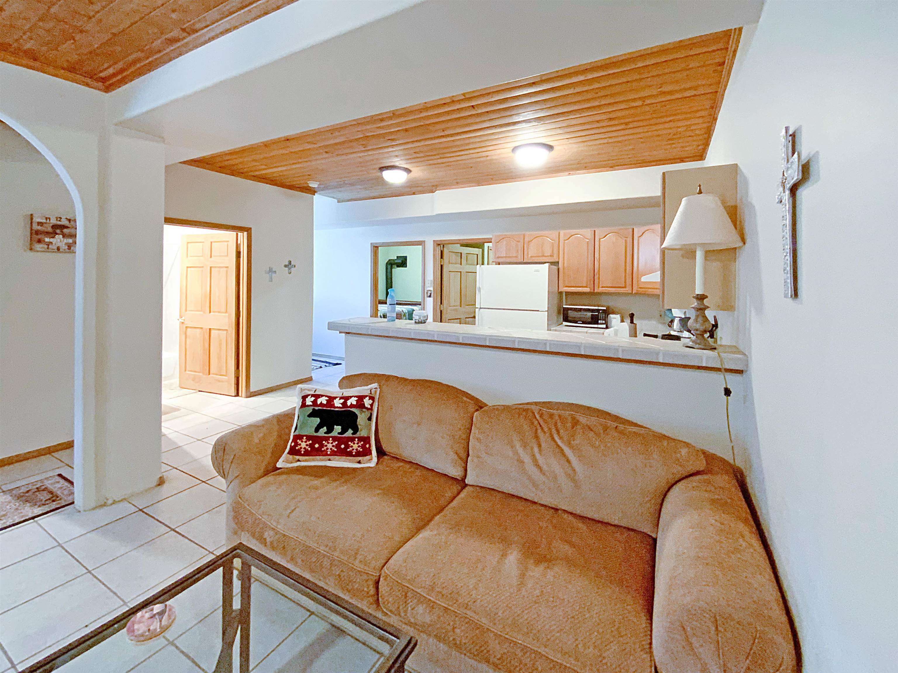 Welcome to your alpine retreat! This 4 bedroom, 4 bathroom, plus a large bunk room offers over 2,600 sq ft of rustic charm and comfort. Tucked among aspens, this home offers the perfect blend of comfort and convenience for your mountain adventures. The lower level is an ideal private suite, featuring a spacious bunk room, a convenient kitchenette, 2 full baths and an additional bedroom. This versatile space is perfect for accommodating friends, extended family, or even serving as a dedicated guest area. The oversized deck is wonderful for entertaining guests or simply unwinding. Imagine sipping your morning coffee surrounded by the beauty of the aspens and surrounding mountains or stargazing under the clear New Mexico sky. This home is perfectly situated just moments away from Angel Fire Resort's PGA-rated 18-hole golf course and a short drive to the world-class ski mountain and bike park. With a flat driveway for easy access, and a spacious 2-car garage for all your outdoor gear, you'll be ready for any adventure. From fishing and hiking to biking and snowshoeing, the best of Angel Fire's outdoor activities are right at your fingertips. This home is a dream for large families or short-term rental investors, offering space, privacy, and a truly tranquil setting. Call us today to schedule a showing!