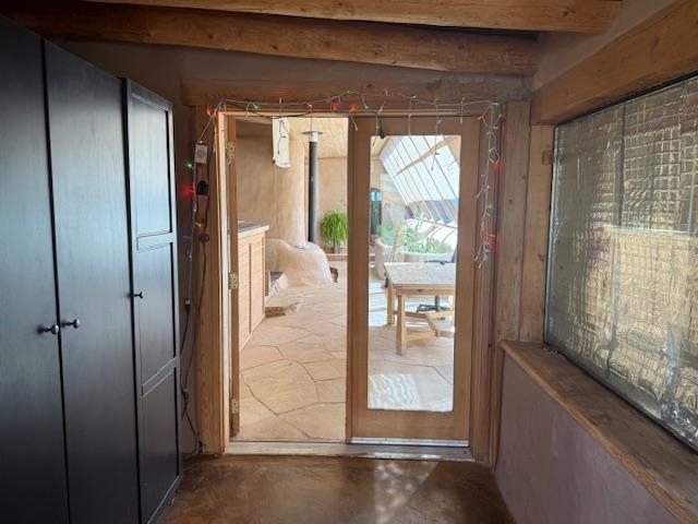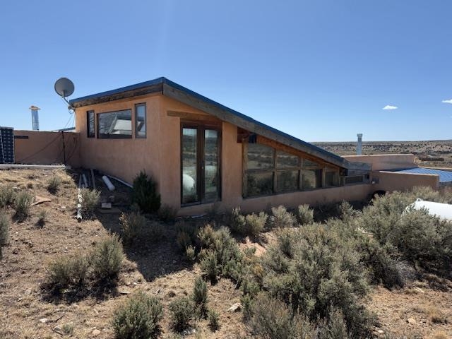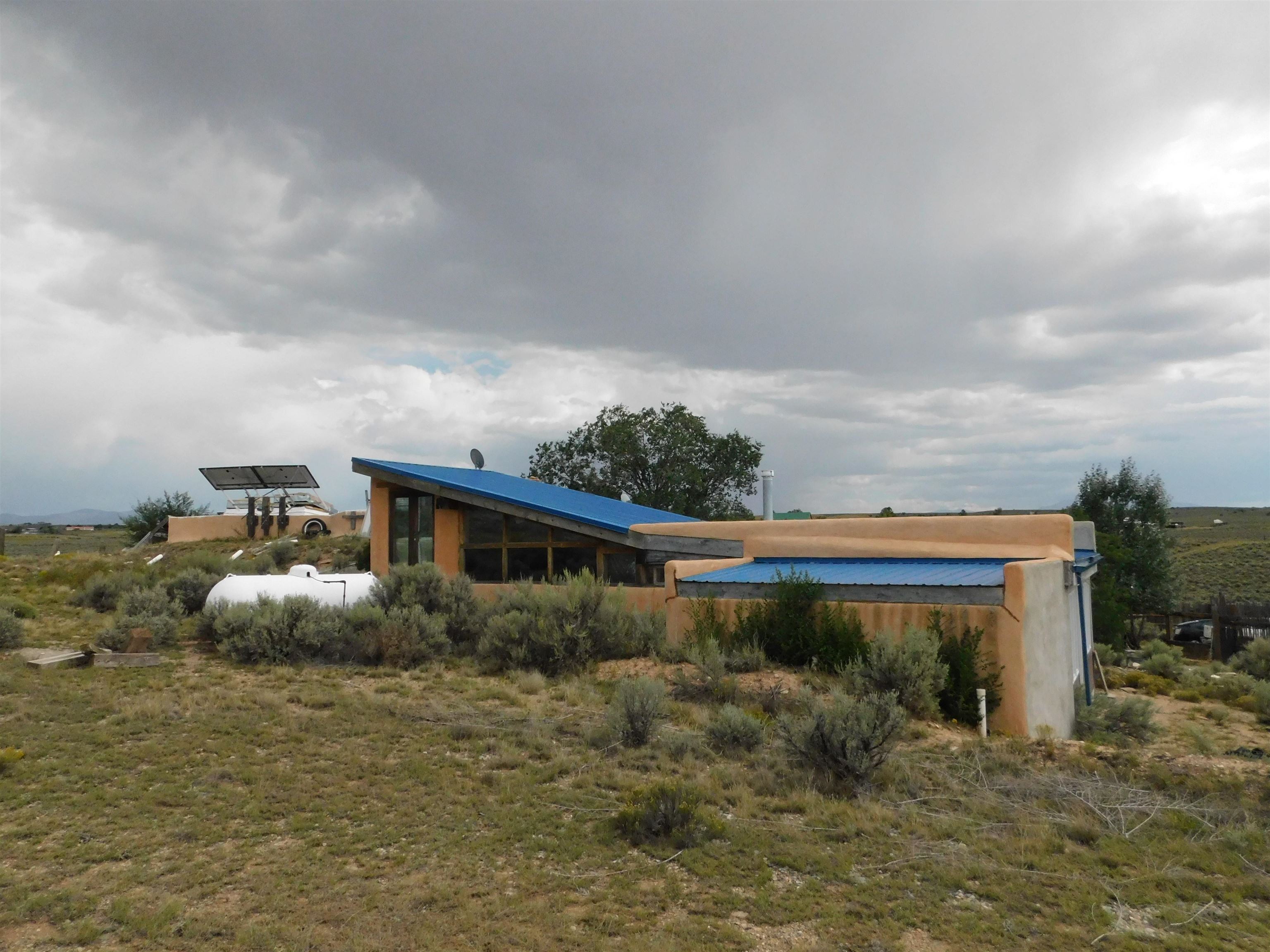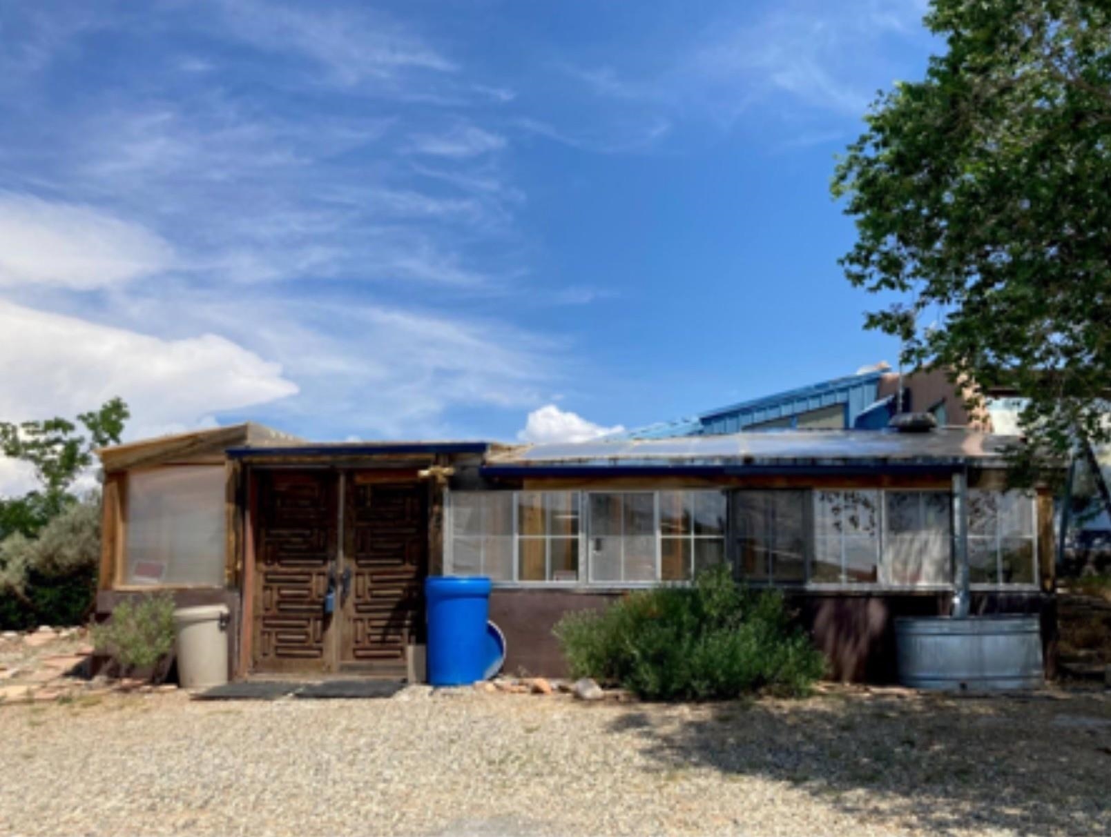 This authentic Taos home originated as an Earthship in 1995, hand-built with rammed earth tire walls on the north, west and east, and a wall of slanted glass on the south. Over time, it expanded with additional greenhouses, workshop, and a studio creating approximately 4000 square feet of interior space. Outdoor latilla fences, gardens, and mature trees create a welcoming atmosphere. Sustainable living guides the heart of the home. The home is a hybrid, using both an off-grid solar electric system This and electricity from Kit Carson Electric. Hardwire is in place for internet (TaosNet) and telephone landline. A water catchment system includes three cisterns with a total capacity of 6000 gallons; rain water is collected from the roofs and gray water is collected separately from the bathroom sink and shower. A new three-bedroom-capacity septic system was placed in spring of 2025, at a cost of $15,800. (See associated document.) Enter the home from the south through the West Greenhouse. This light-filled room has an organic close-to-the-earth feel with outdoor carpet on the ground and translucent ceiling above. To the right is the South Greenhouse with a built-in planter and shelves for more plants--an ideal sitting room to soak in warmth of the sun on cold winter days. Through the West Green House, to the north, are glass doors to an outdoor area and a wide hallway leading to the studio. A metal screen door with locking wood door at the front of the hall leads into the Earthship. Earthship: Through a mudroom with a freestanding closet system, you step on to the flagstone floor of the Earthship and into open area large enough for a family sized dining table and chairs. The room continues along the bank of windows with built-in planters below. To the left, step up to the spacious open kitchen with granite countertops, open shelving, an island with stove, and more open shelving. To the north of the planters is the sunken living room with a wood stove and high ceiling. Behind the living room is a small room under a loft that could be used as an office, library, walk-in closet. Up the open staircase is the large sleeping loft with skylights to let in fresh air and light. Back on the ground floor, at the end of the wall of windows, step up into a large bathroom area with a mirrored closet, vanity sink, walk-in shower, and hot tub and the toilet is in its own little room next to the vanity. Hallway: Down the hallway, before reaching the studio, is a door to the workshop with ample storage space and the solar voltaic components. The wide hall has windows on the top half of the western wall. Studio: At the end of the hallway, also with an entrance from the outside, is a 1200 square foot studio with radiant floor heat. The rectangular room has a vaulted ceiling with a loft at the eastern end. High windows let in northern light. Within the studio is half-bathroom with shower, sink, toilet, and washer hook-up. At the northern end of the studio is a cool storage room and the utility closet that houses the propane radiant floor heating system and on-demand water heater. Additional information: Square footage of the property should be regarded as estimated. Buyer is advised to take measurements and conduct inspection(s) of the home and its systems to assure accuracy and condition. There is no domestic well on this property; neighboring wells are reported to be 400-450' deep. The current owners augment their drinking water by importing water during dry years and use a Berkey filter for drinking and cooking water. The property survey was updated in the spring of 2025 (see documents). Broker and Brokerage take no responsibility with regard to the size or condition of the property.