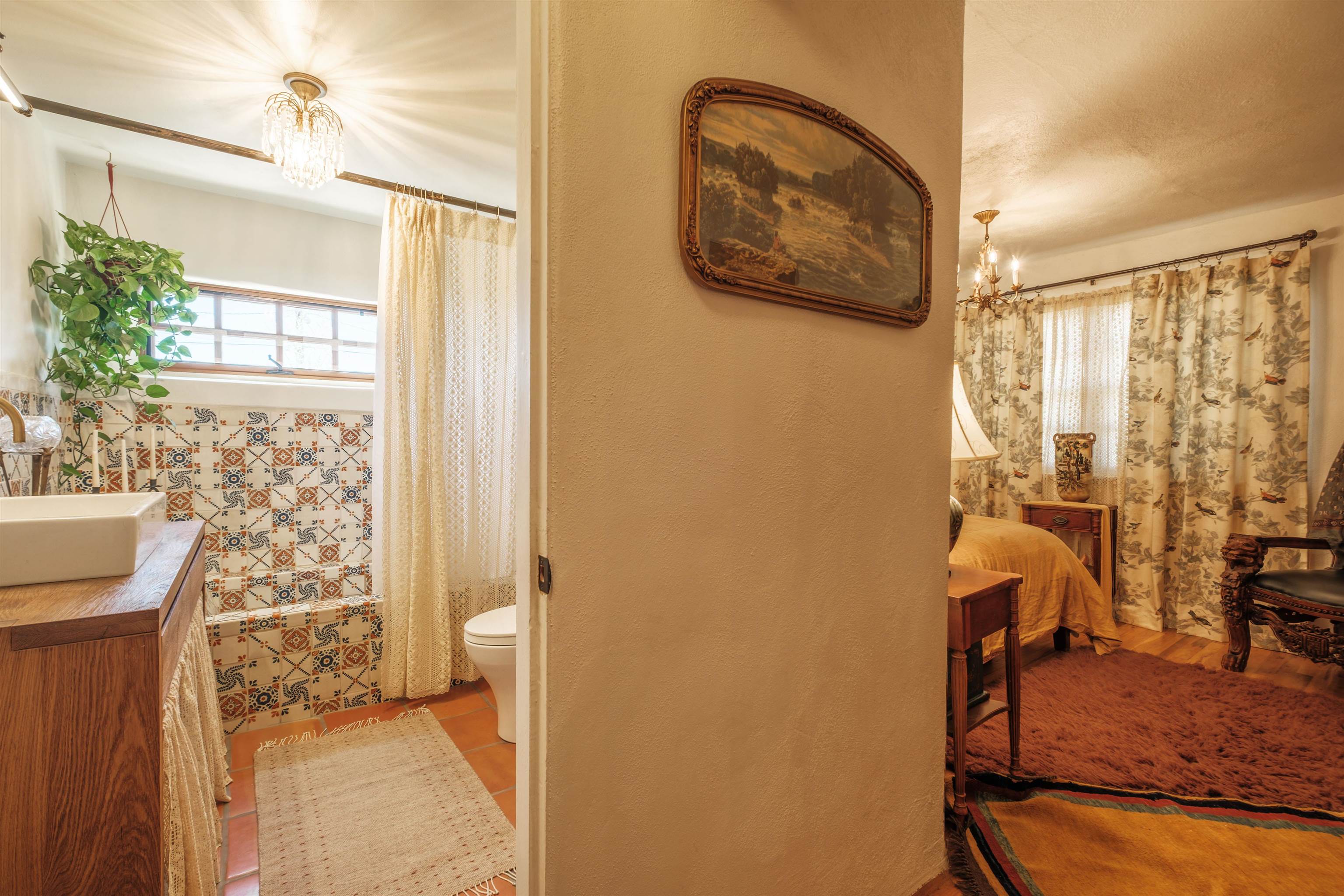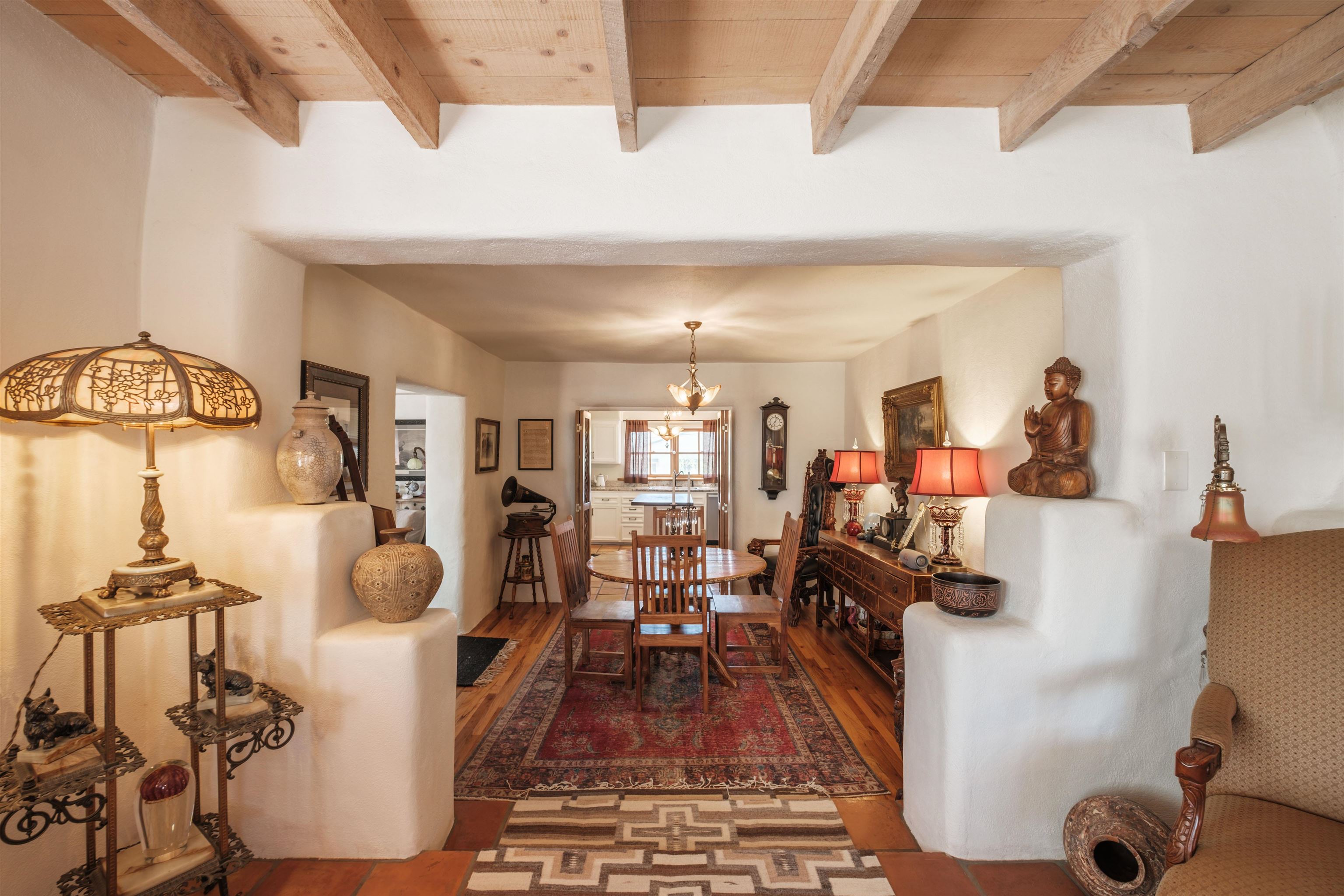 Charming Adobe Home with Guest House - Just Steps from Taos Plaza This beautifully remodeled adobe residence blends classic Southwestern charm with modern comfort, all within walking distance to the historic Taos Plaza. The main home offers 2 Kiva fireplaces, 3 spacious bedrooms, 3 elegantly designed bathrooms, and a newly added second living area--ideal for relaxation or entertaining. A private, detached guest house featuring 1 Kiva fireplace provides the perfect retreat for visiting friends and family, or an excellent opportunity for rental income. Renovated in 2023, the home features a stunning kitchen with granite and butcher block countertops, stainless steel appliances, and soft-close cabinetry. Throughout the home, antique light fixtures add warmth and character, complementing the timeless adobe aesthetic. Don't miss this rare opportunity to own a beautifully updated property in one of Taos's most sought-after locations.