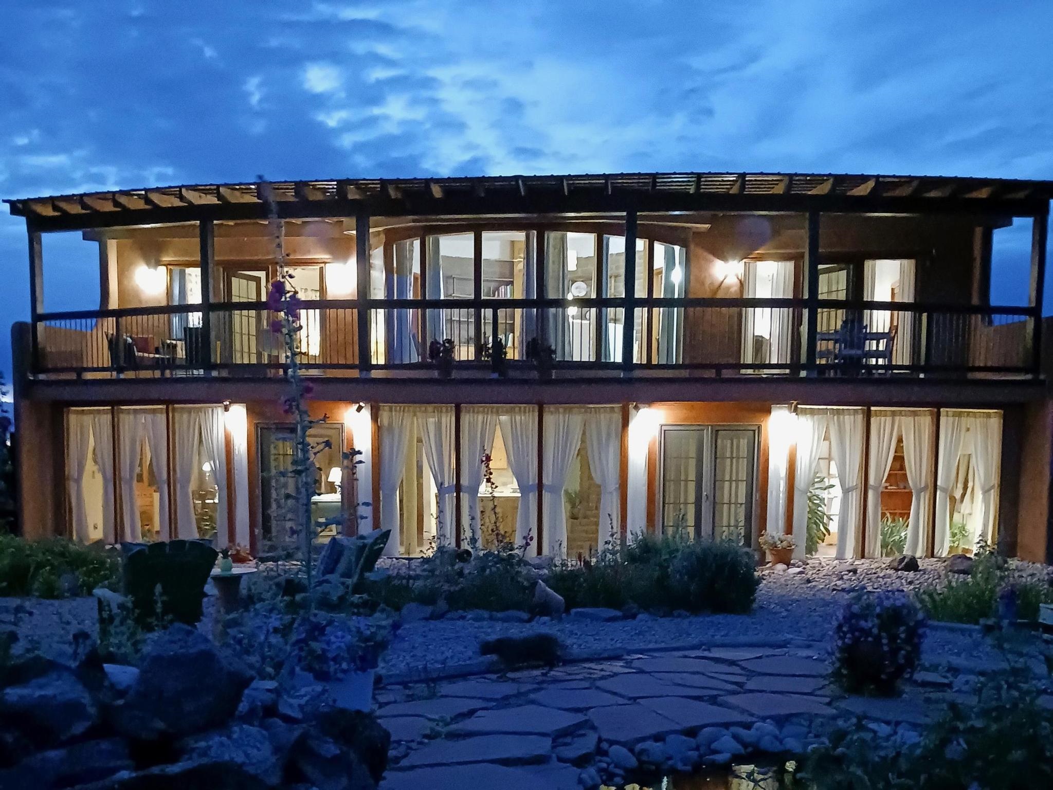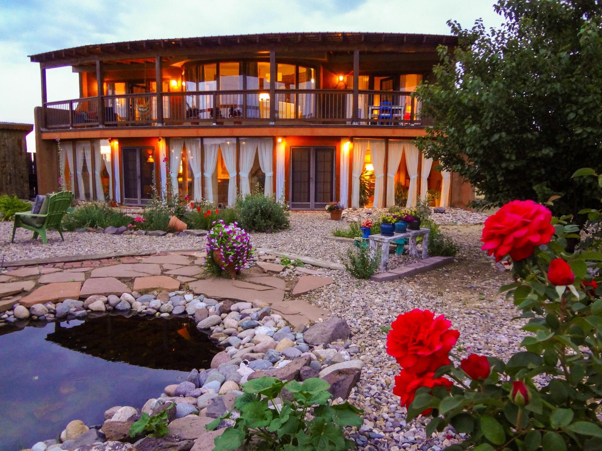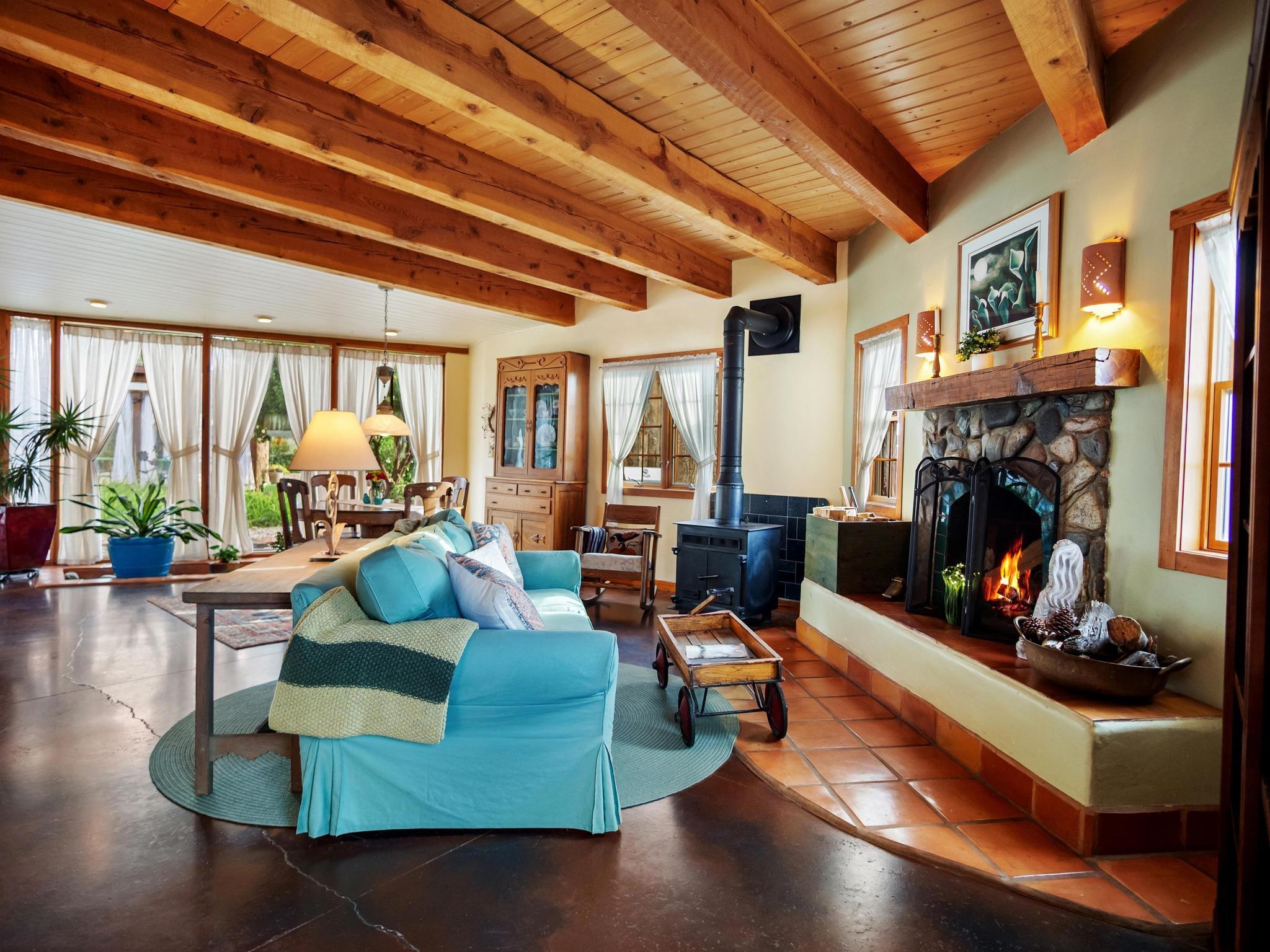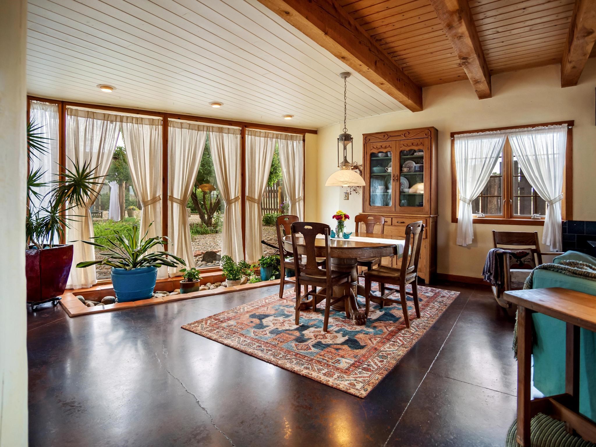 47B is located on The Poleo, the most desirable place in Costilla. One may walk down the road to trout fishing, or hunt elk and mule deer in the pasture. The 2484 square foot, two-story home is a well-functioning passive solar design, featuring a south-facing wall of floor-to-ceiling windows. The built-in planters, dark cement floors, and center adobe core collect heat during the day and release it at night. The windows are calibrated to facilitate solar gain through the seasons. This one-of-a-kind home features tongue and groove ceilings with exposed beams that add warmth and character throughout. The layout is part open-plan, with everything radiating from the circular kitchen at the heart of the home. The kitchen includes a newly updated gas range and stainless steel appliances. There are three bedrooms and two full bathrooms. The main floor includes a bedroom conveniently located next to the downstairs bath. Upstairs, a Jack and Jill bathroom with beautiful tile work and a jetted tub connects two additional bedrooms, along with a bright sunroom that opens to a full-length covered balcony with stunning views. Comfort is ensured year-round with two mini-split systems, as well as a wood-burning fireplace for cozy winter nights. The outdoor living area is just as special, featuring a fenced-in garden and yard space with a pergola-covered dining area--perfect for enjoying the fresh mountain air. The views from this property are truly outstanding in every direction. This property includes an expansive 18.47-acre parcel of lush pastureland bordering the Rio Costilla Cooperative Livestock Association (RCCLA), offering direct access to prime elk habitat. This unique property conveys with an existing elk hunting tag, making it an exceptional opportunity for sportsmen, ranchers, and conservation-minded buyers alike.
