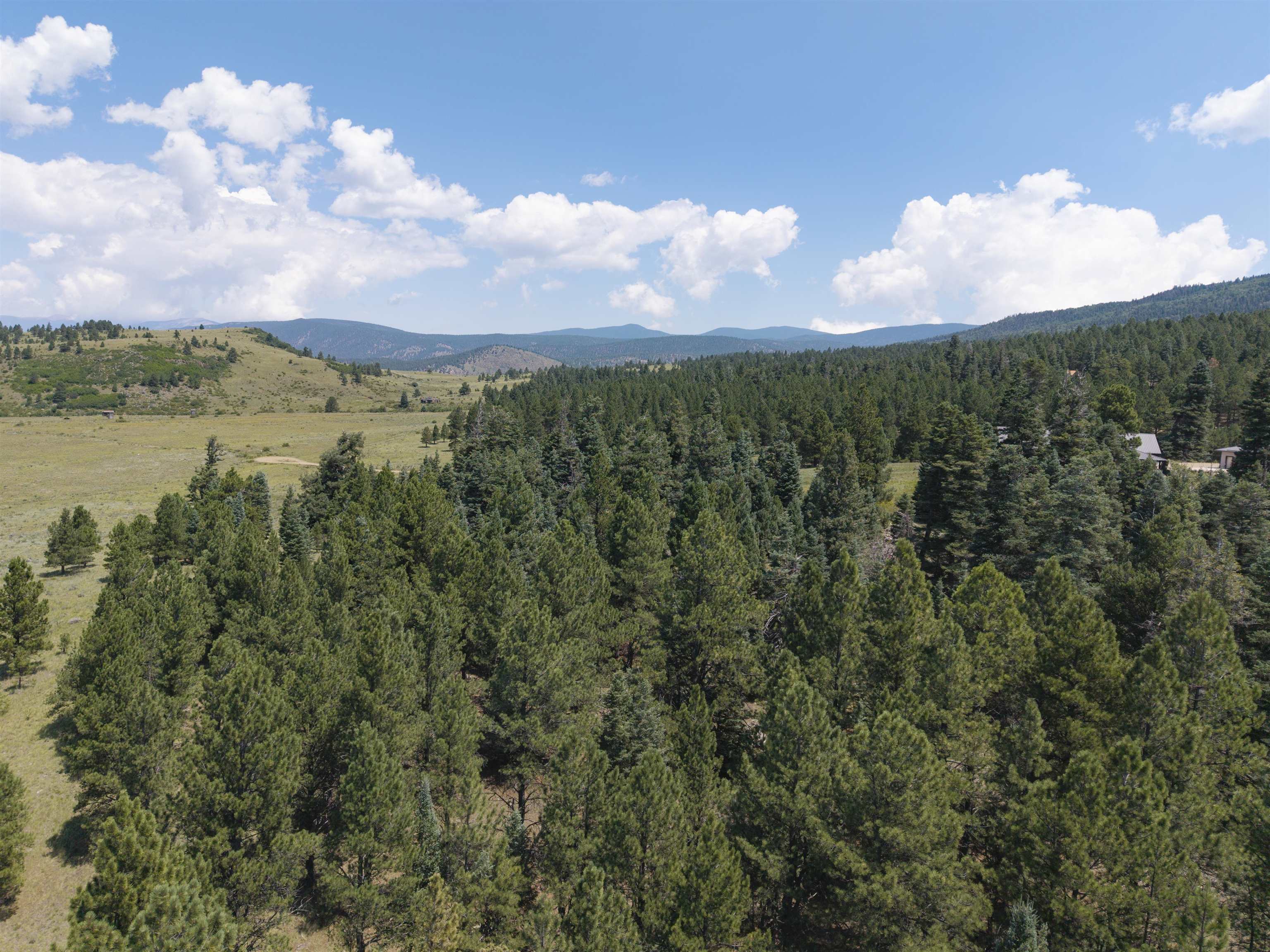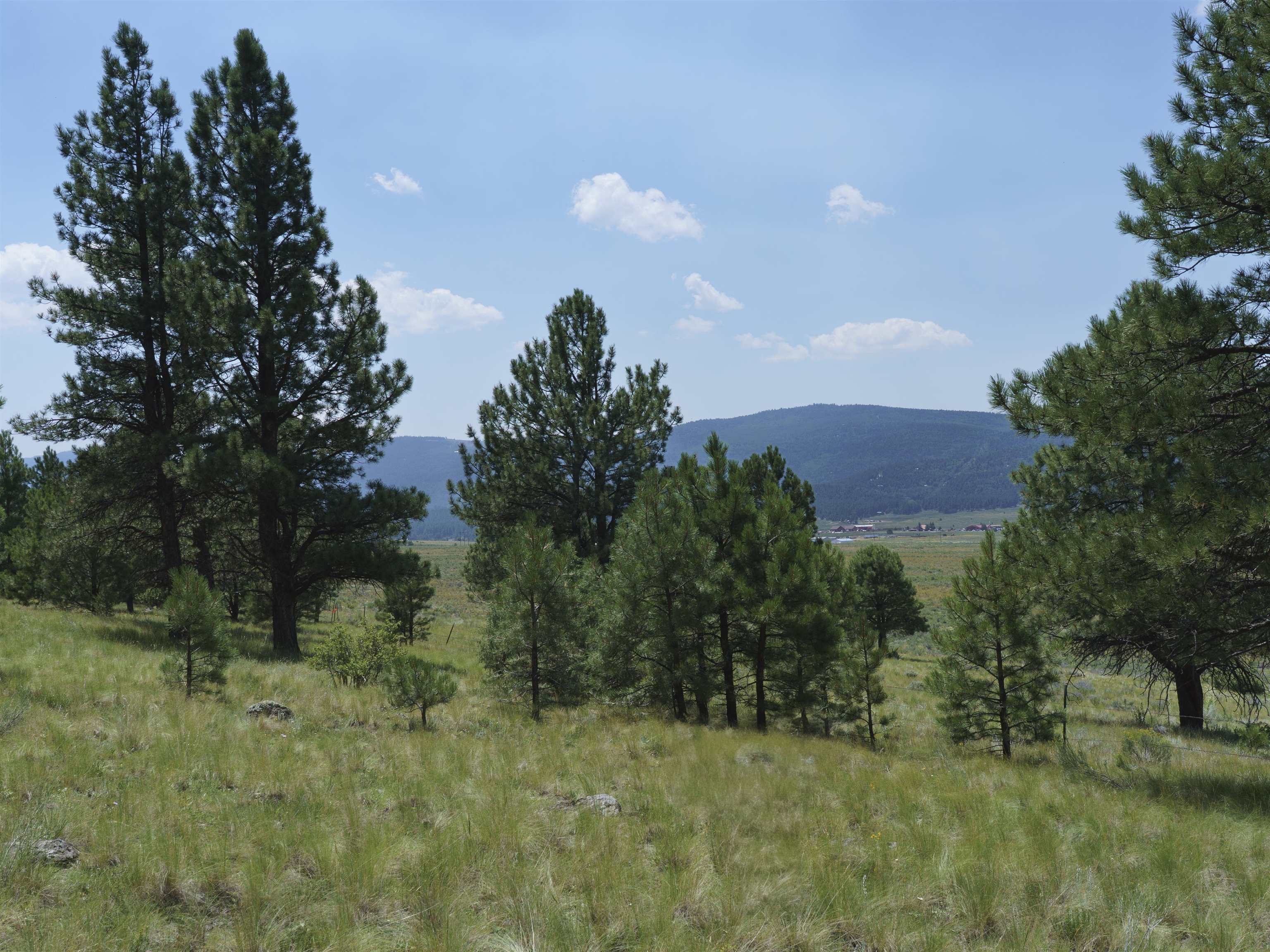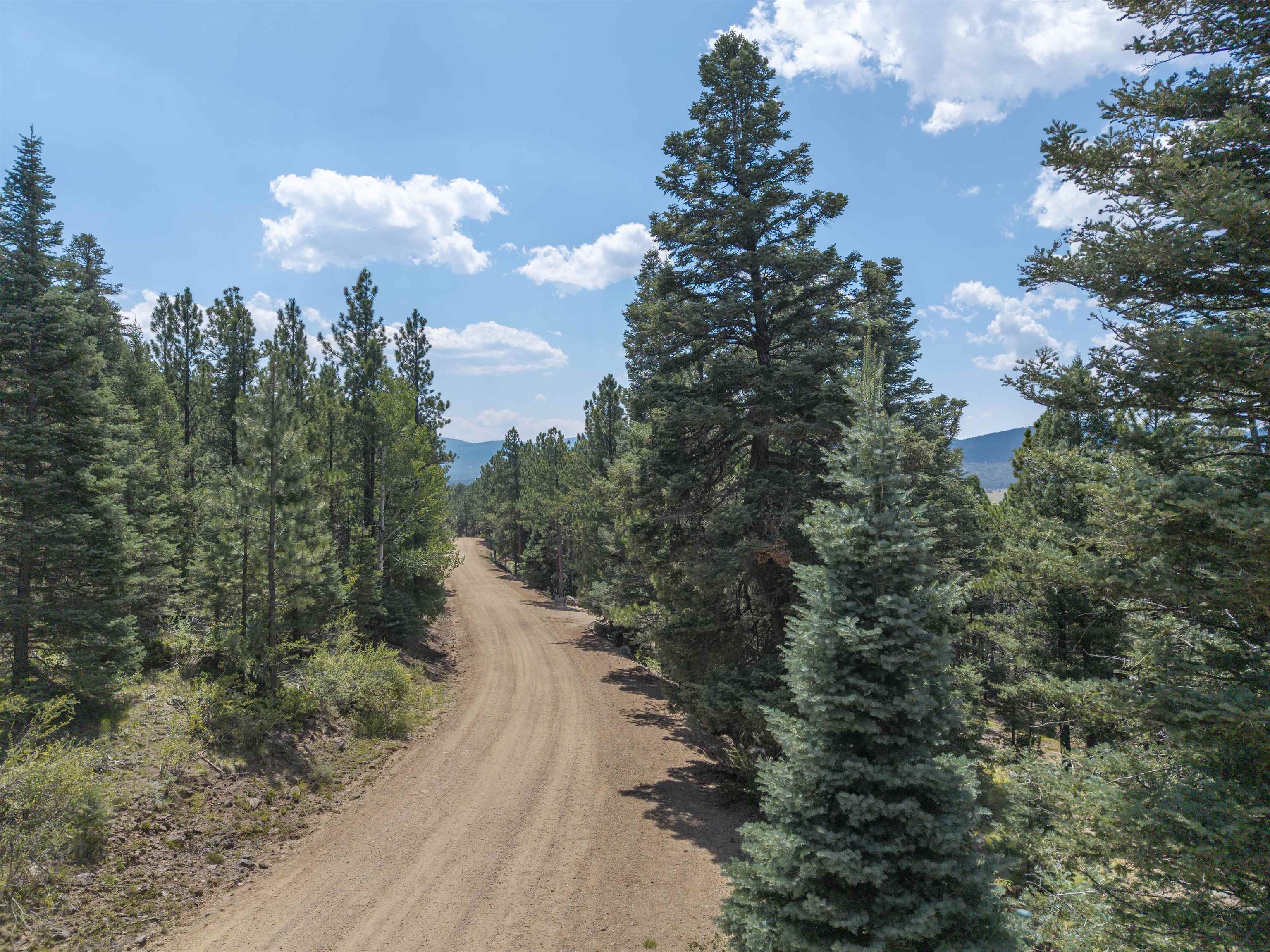 Discover your dream homesite nestled among the towering Ponderosa pines on this stunning 5.37 acre parcel. Improvements include a beautifully cut $24,000. driveway winding through the trees. Leading to a stunning building site, the home can be perfectly positioned to capture panoramic views of Wheeler Peak, the highest mountain peak in New Mexico. This rare gem offers dramatic moss rock outcroppings that add character and natural artistry to the landscape. Whether you're envisioning a cozy mountain retreat or a luxurious estate, this land's gentle topography and existing access make it an ideal canvas. Enjoy the serenity of true seclusion without sacrificing convenience. This private haven is just minutes from the village, Angel Fire Resort, the ski slopes and the Angel Fire Resort Country Club and championship golf course. The best of locations ...Wildlife, whispering pines , and endless skies await. ELECTRICITY IN PLACE........FIBER OPTIC IN PLACE....DRIVEWAY IN PLACE ....and NO RESORT MEMBERSHIP REQUIRED ON THIS PROPERTY.