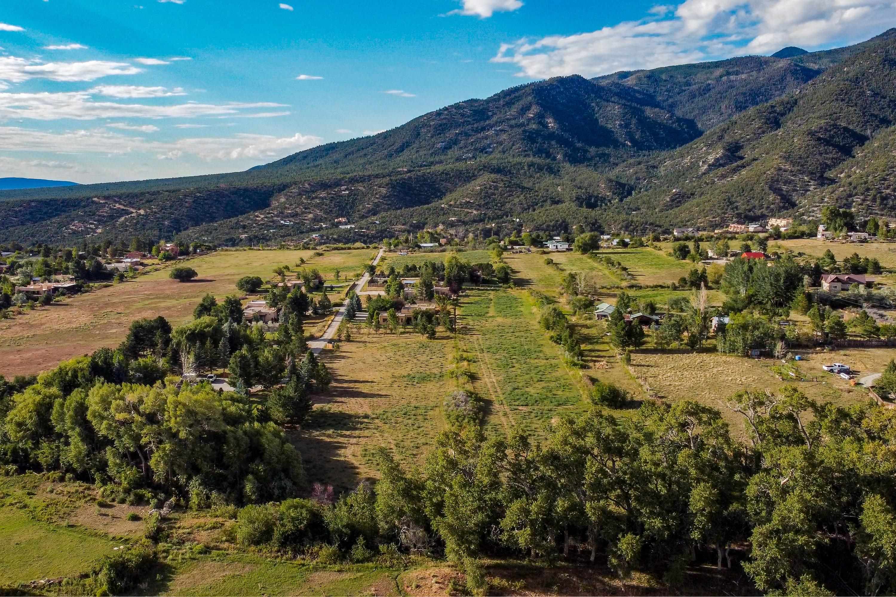 Nestled at the base of the Sangre de Cristo Mountains, this rare 3.068-acre property offers the perfect balance of privacy, natural beauty, and convenience. Fed year-round by the historic Acequia Madre and El Salto Creek, the land is richly irrigated, creating a sanctuary of towering cottonwoods, vibrant vegetation, and fertile soil. A private road leads you into this peaceful retreat, where expansive mountain views surround you in every direction. The property feels worlds away, yet is ideally located--just minutes from Taos Ski Valley and a short drive down the road to the charm of Arroyo Seco. Whether you envision a serene homestead, a mountain getaway, or a retreat immersed in nature, this property provides the canvas. With its combination of water, lush landscape, and unbeatable location on the north side of Taos, this is one of the most desirable offerings in the area.