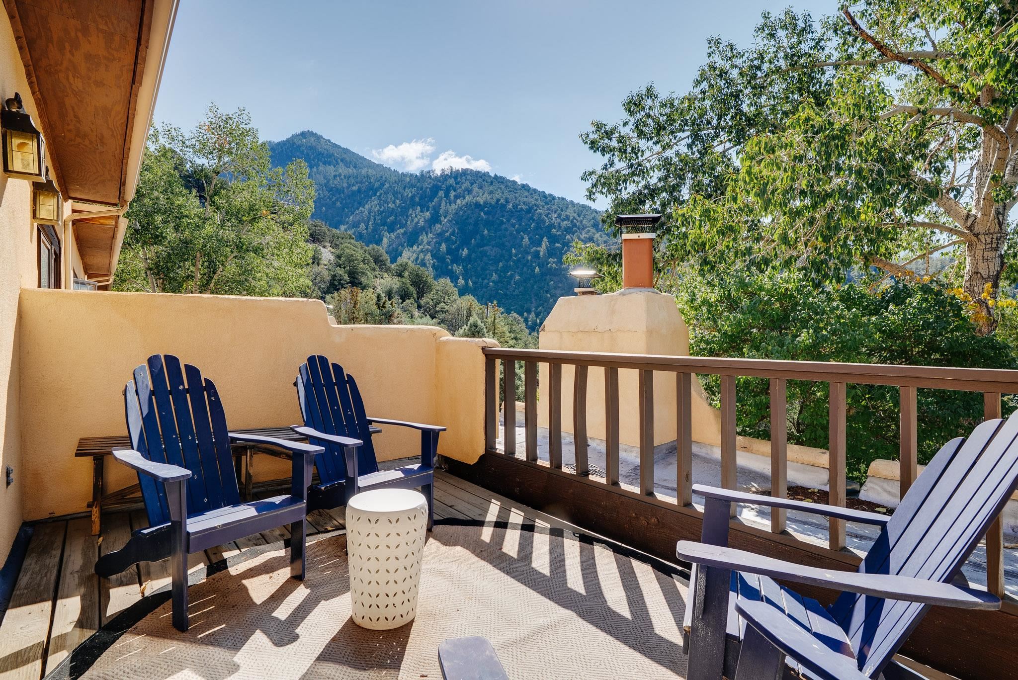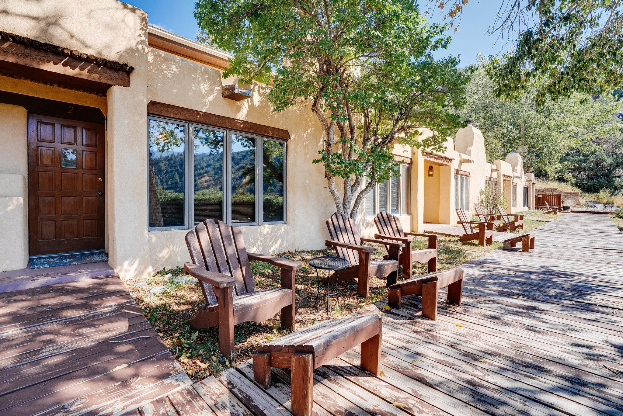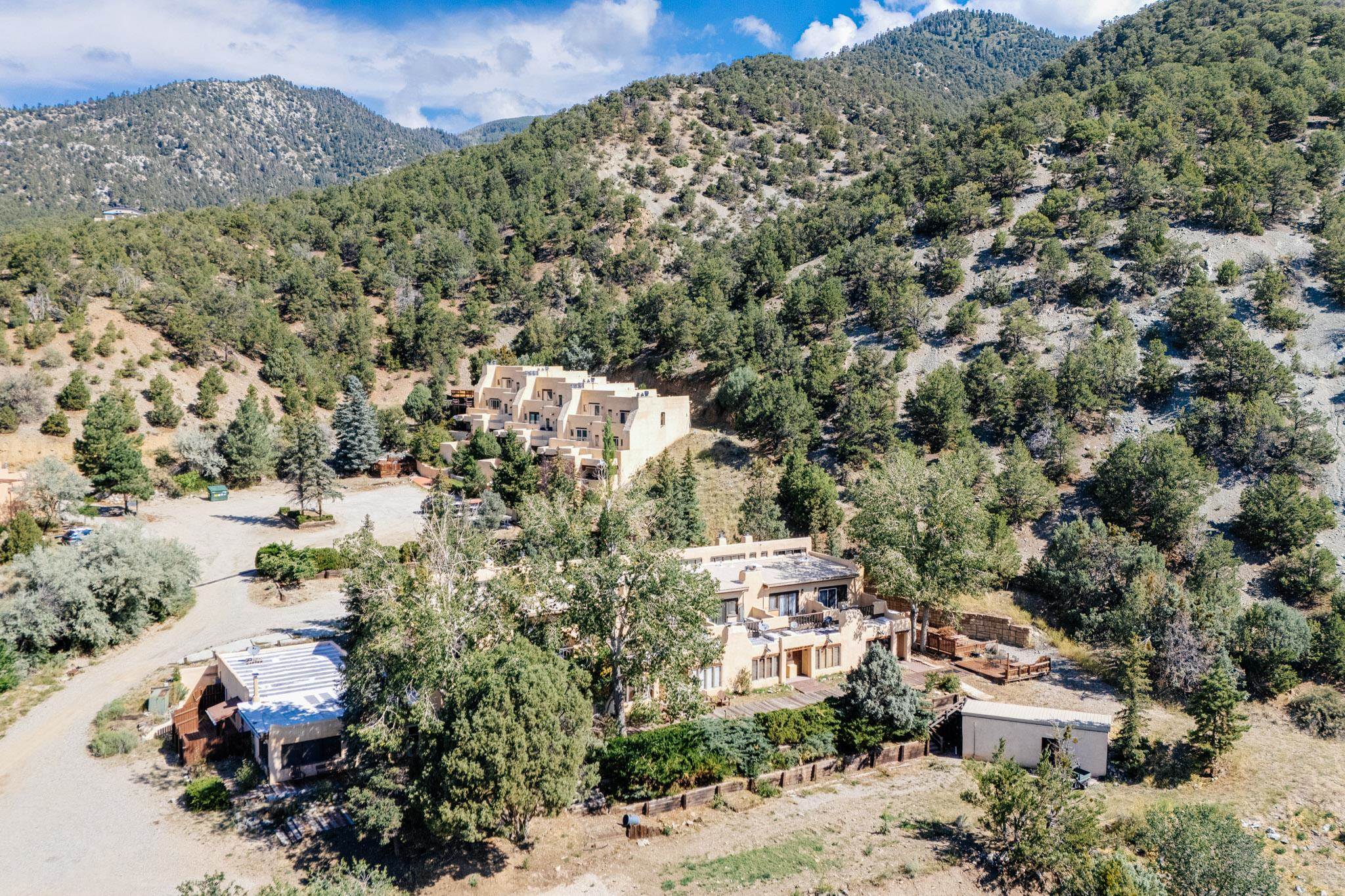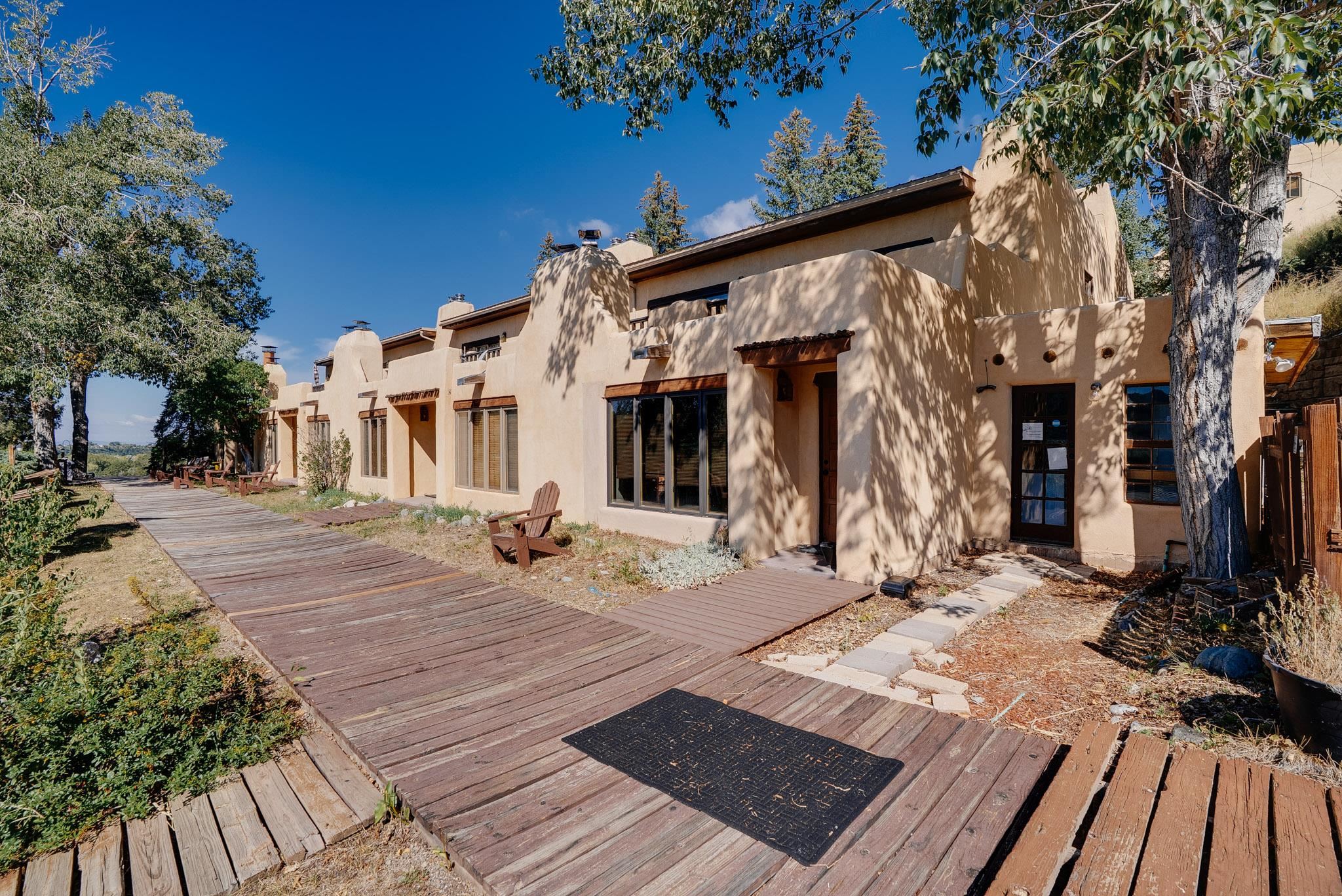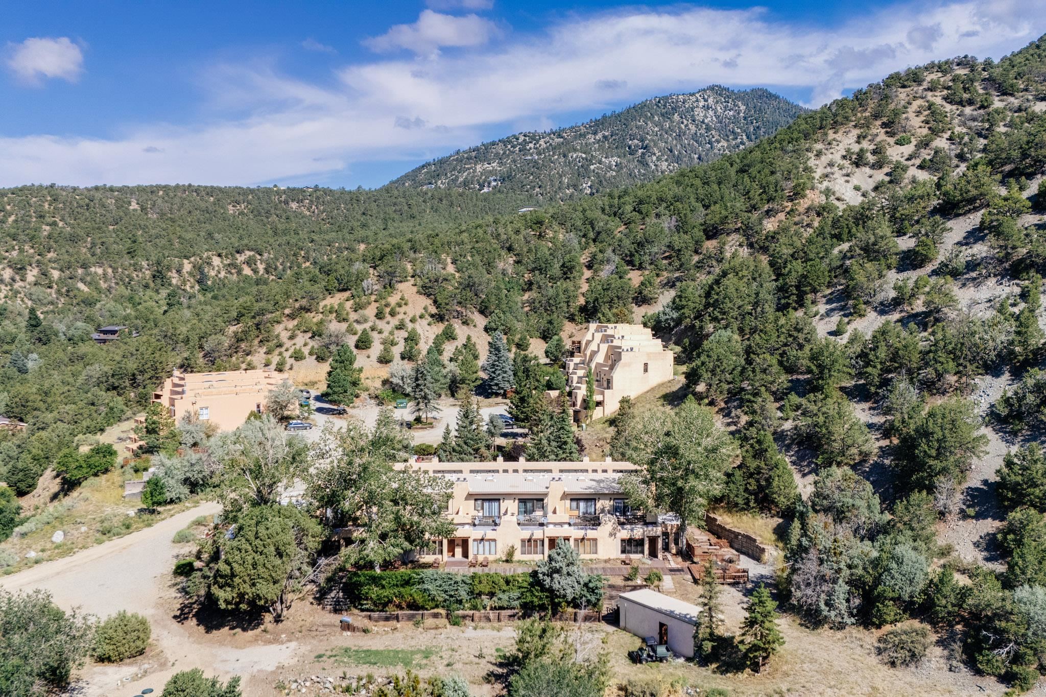 Welcome to Hacienda de Valdez, a charming condo nestled in the Sangre de Cristo Mountains with stunning western views from the second-story deck--perfect for soaking in sunsets and enjoying the peaceful natural surroundings. Ideally located just minutes from the entrance to Taos Ski Valley and five minutes from the vibrant village of Arroyo Seco, this home offers both tranquility and convenience. The condo features two spacious upstairs bedrooms, each with an en suite bathroom. One bedroom opens onto a private deck that provides a relaxing retreat with beautiful mountain and sunset views. Downstairs, you'll find a charming, open-concept living and dining area framed by large windows, a well-appointed kitchen, and a full bathroom. Part of the original Hacienda de Valdez structure, this unit is rich in Southwestern character, including three traditional kiva fireplaces, exposed vigas, tile floors, and hand-troweled plaster walls. A perfect blend of rustic charm and modern comfort--don't miss the opportunity to make this mountain retreat your own.