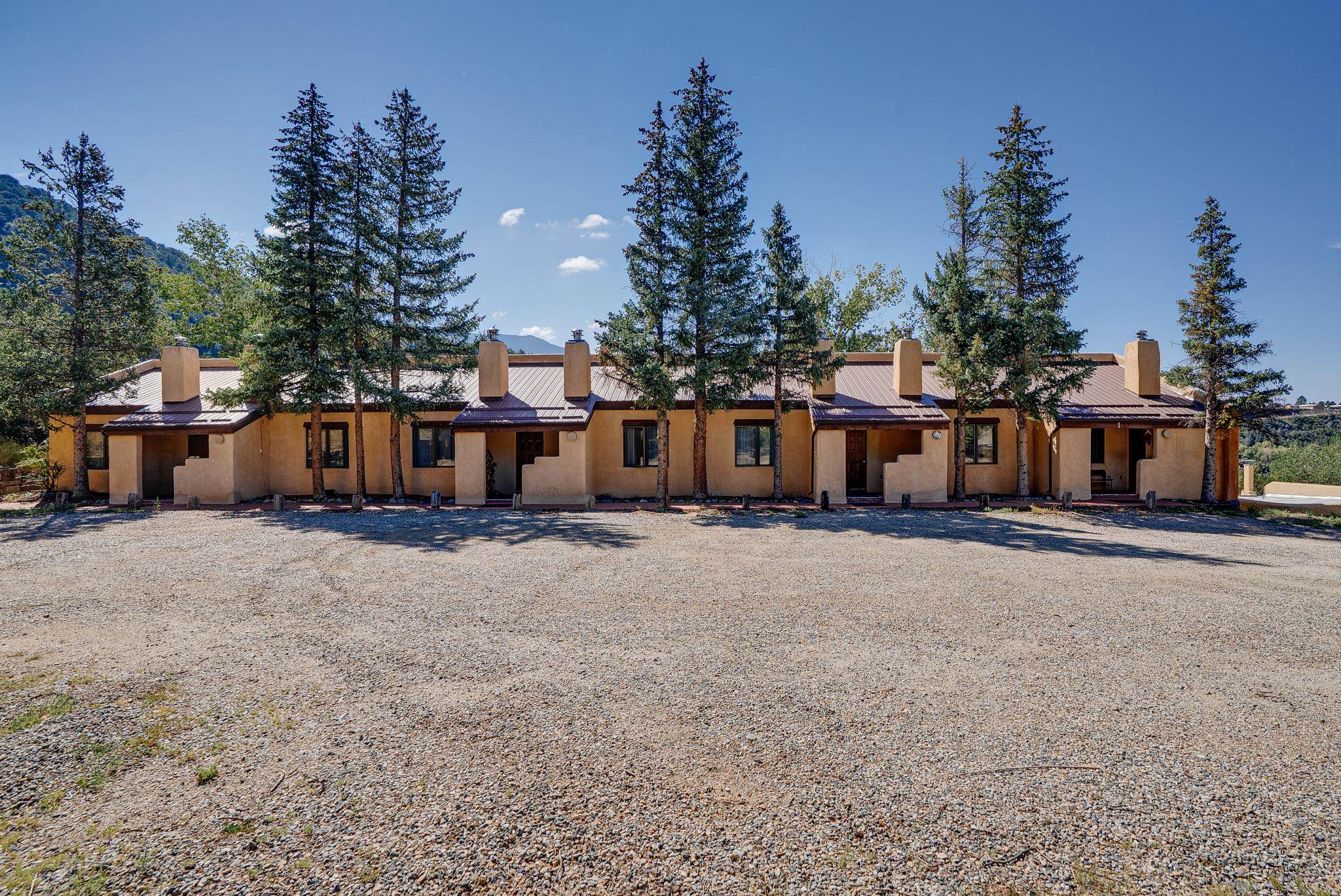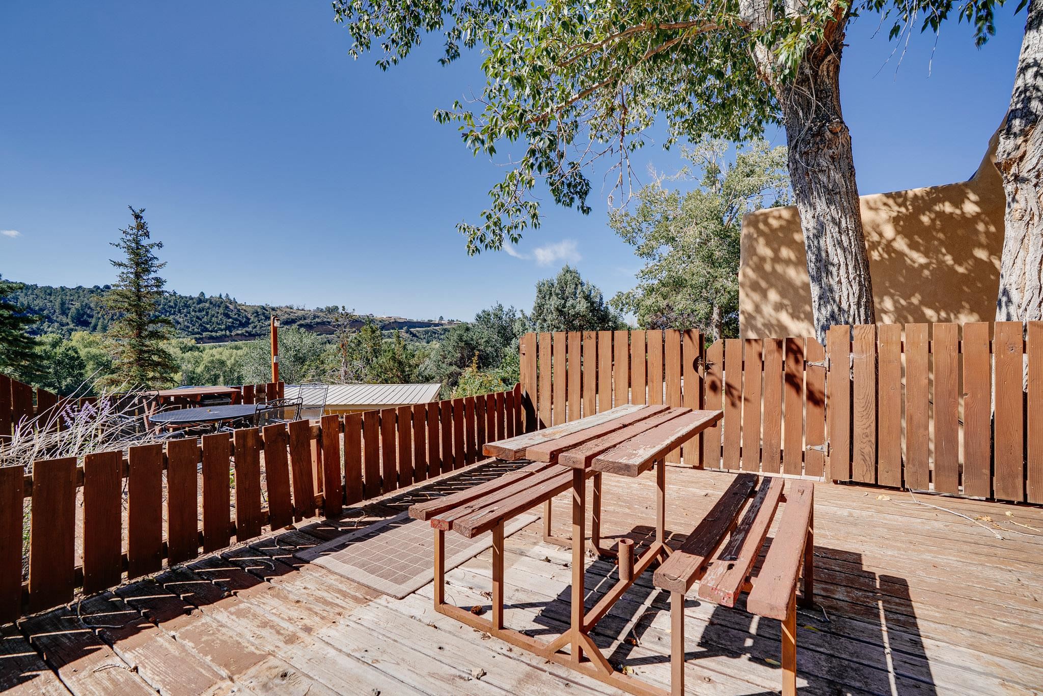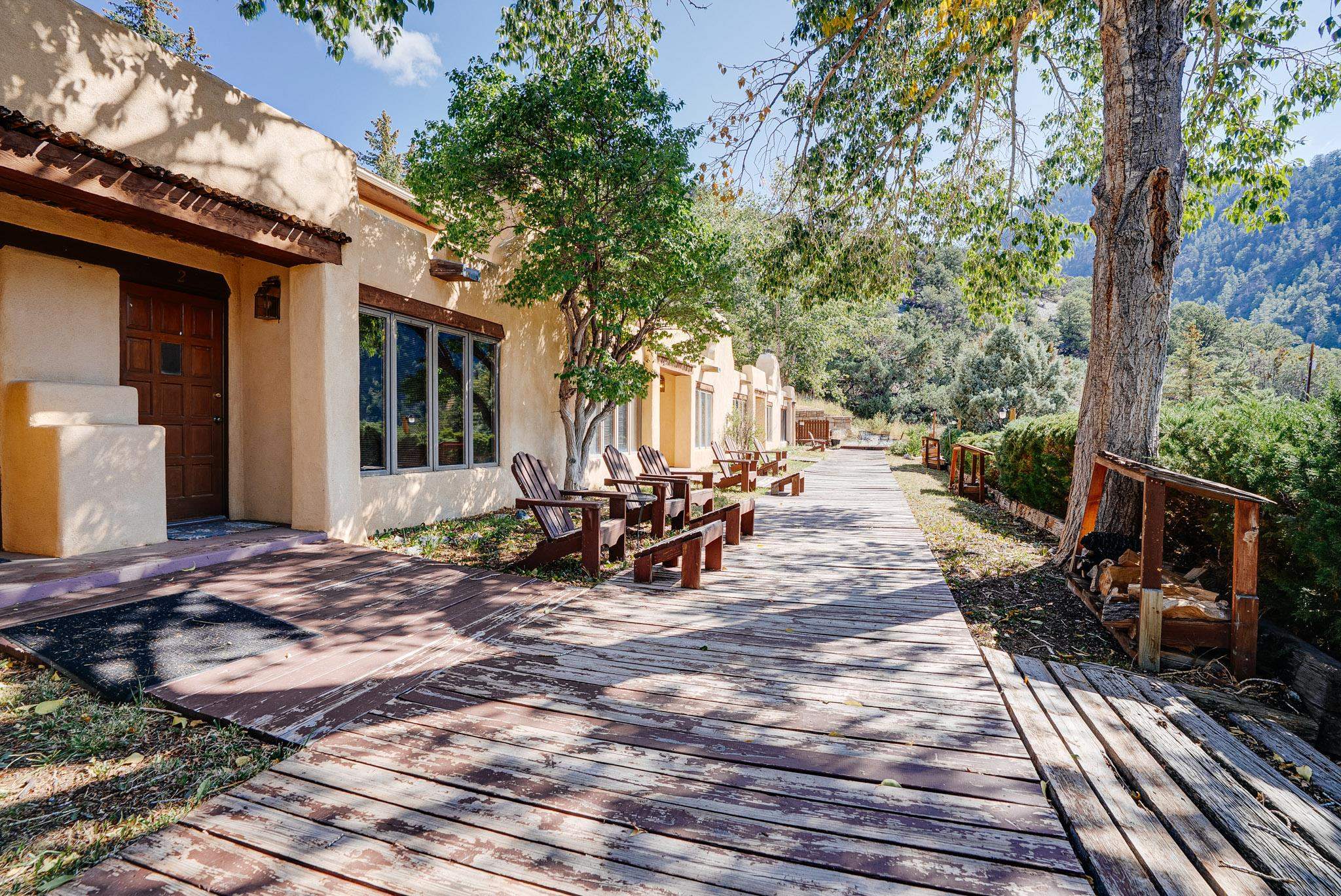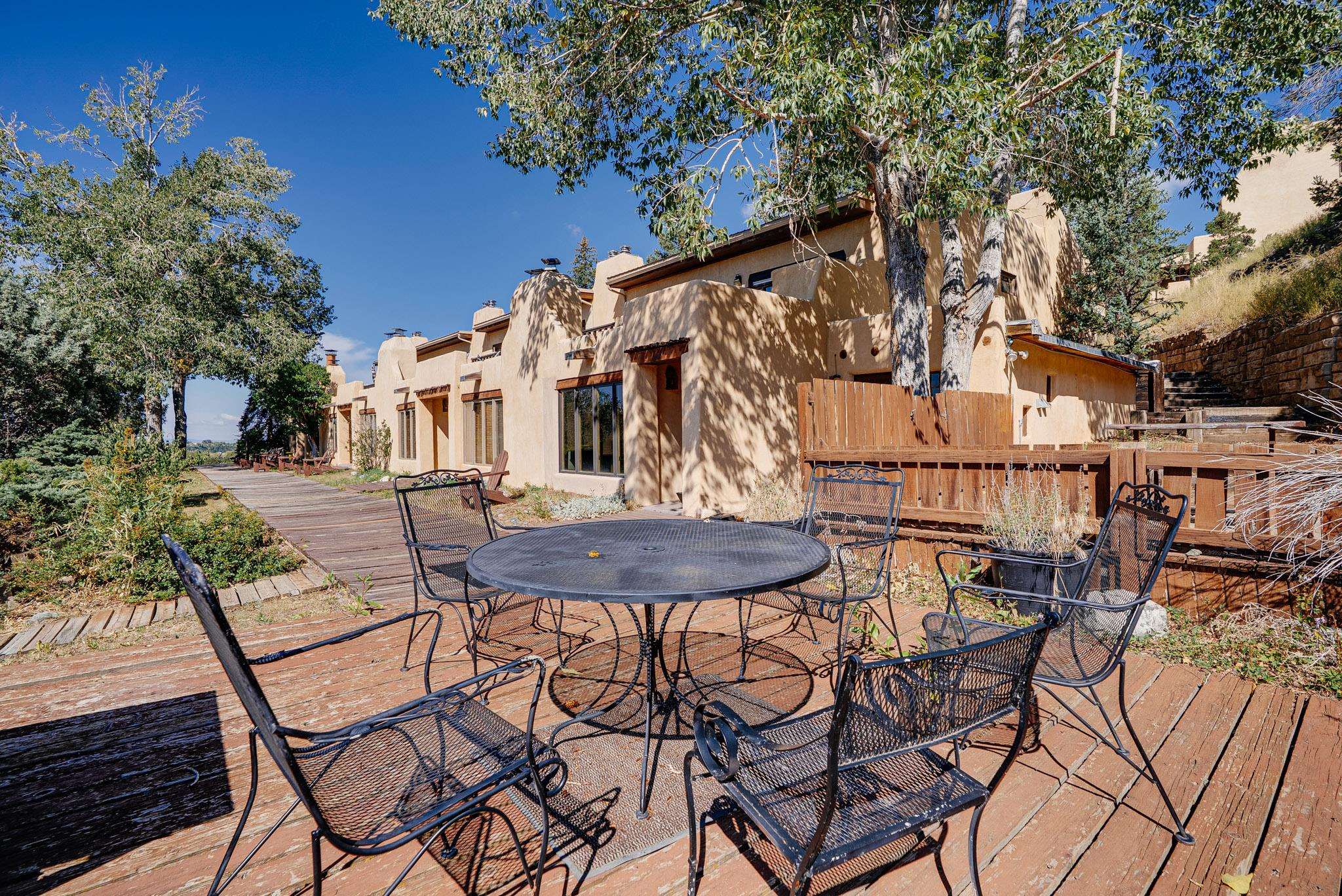 Welcome to Hacienda de Valdez, a charming condo nestled in the Sangre de Cristo Mountains with stunning western views from the second-story deck--perfect for soaking in sunsets and enjoying the peaceful natural surroundings. Ideally located just minutes from the entrance to Taos Ski Valley and five minutes from the vibrant village of Arroyo Seco, this home offers both tranquility and convenience. The condo features two spacious upstairs bedrooms, each with an en suite bathroom. One bedroom opens onto a private deck that provides a relaxing retreat with beautiful mountain and sunset views. Downstairs, you'll find a charming, open-concept living and dining area framed by large windows, a well-appointed kitchen, and a full bathroom. Part of the original Hacienda de Valdez structure, this unit is rich in Southwestern character, including three traditional kiva fireplaces, exposed vigas, tile floors, and hand-troweled plaster walls. A perfect blend of rustic charm and modern comfort--don't miss the opportunity to make this mountain retreat your own.