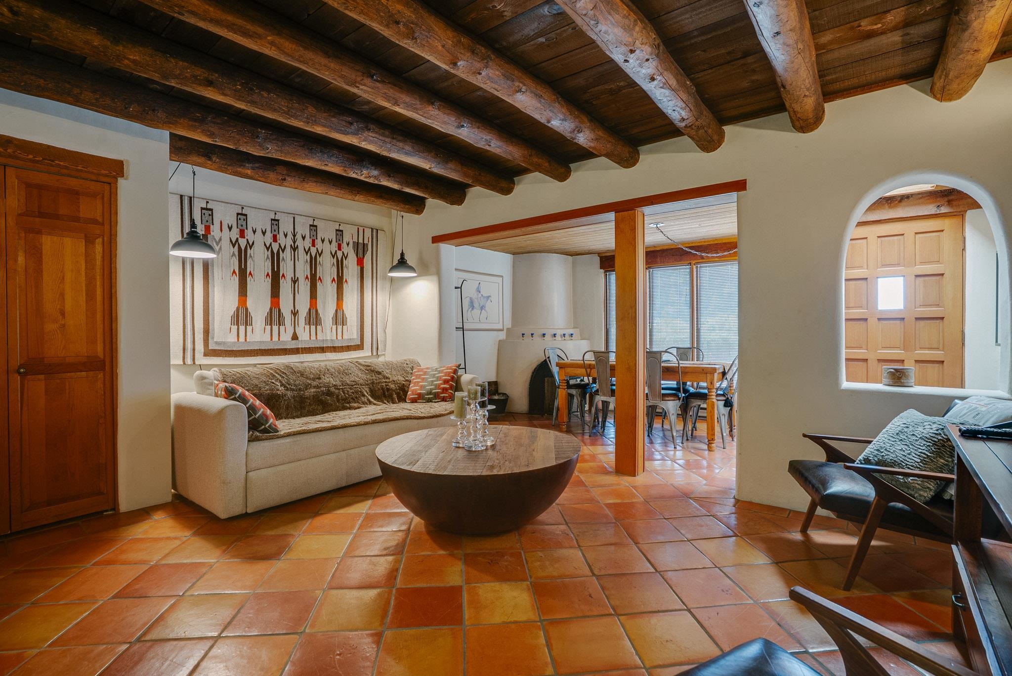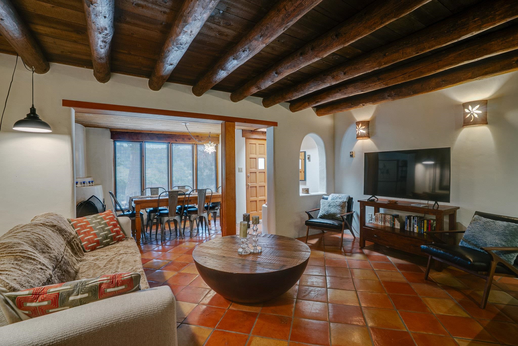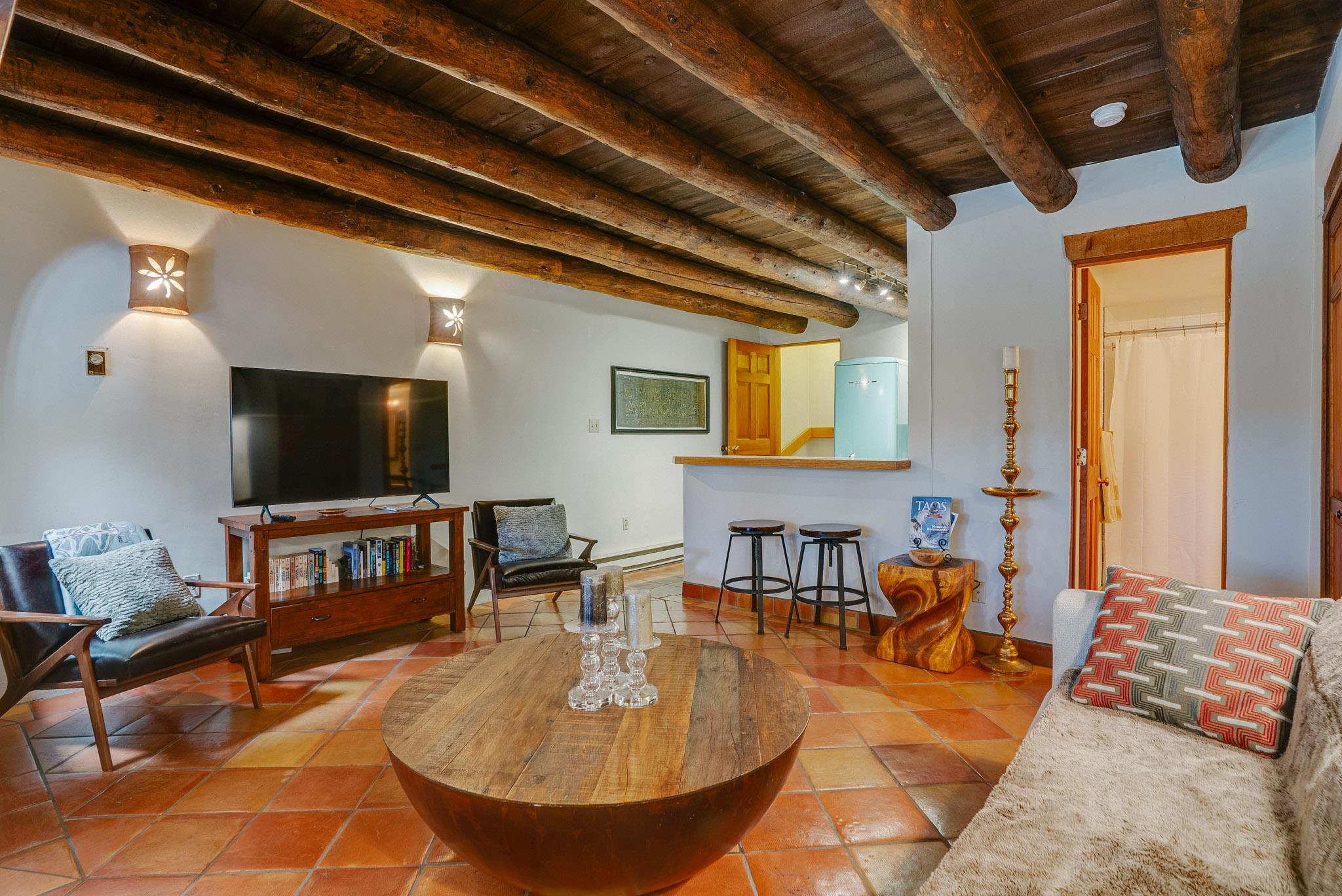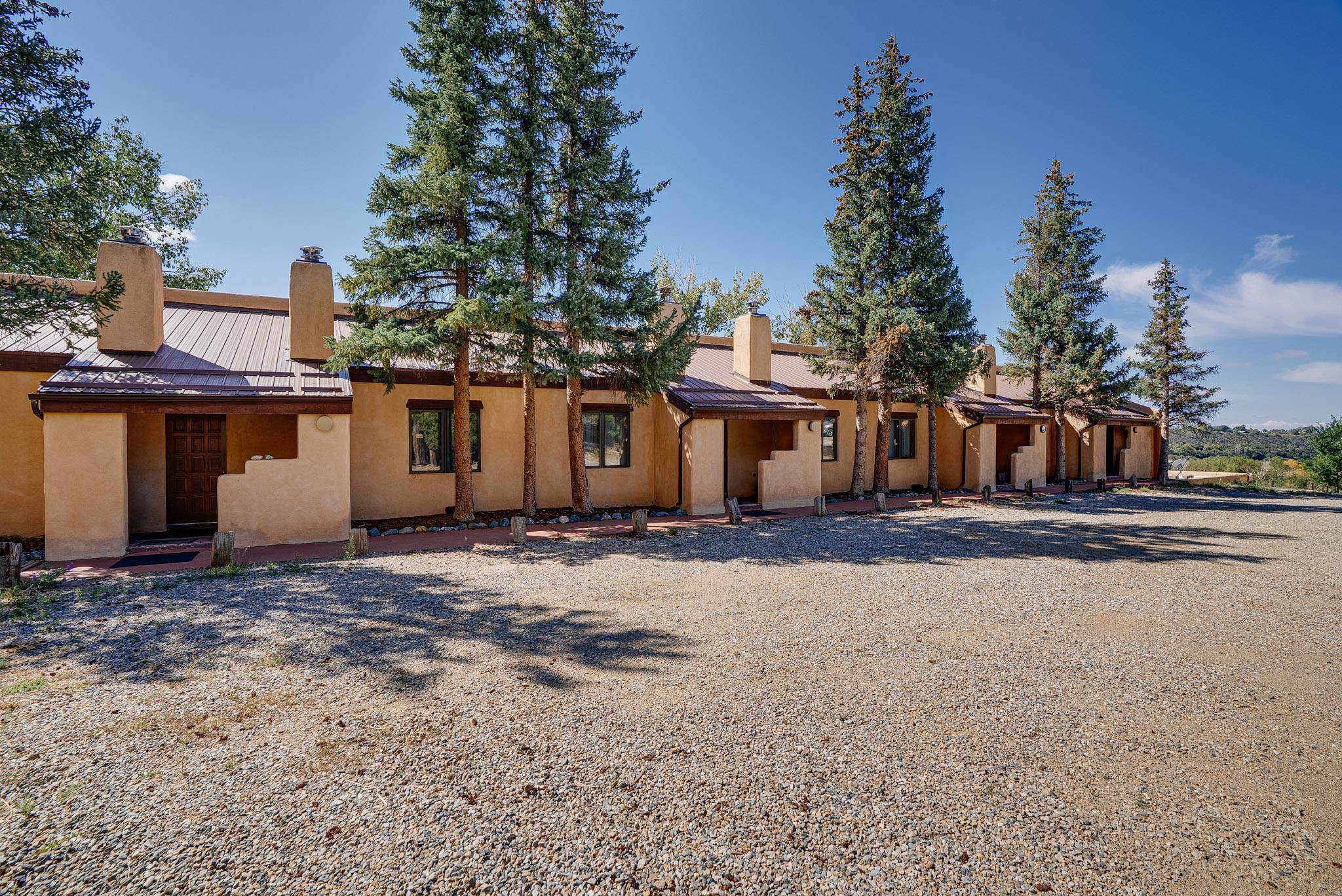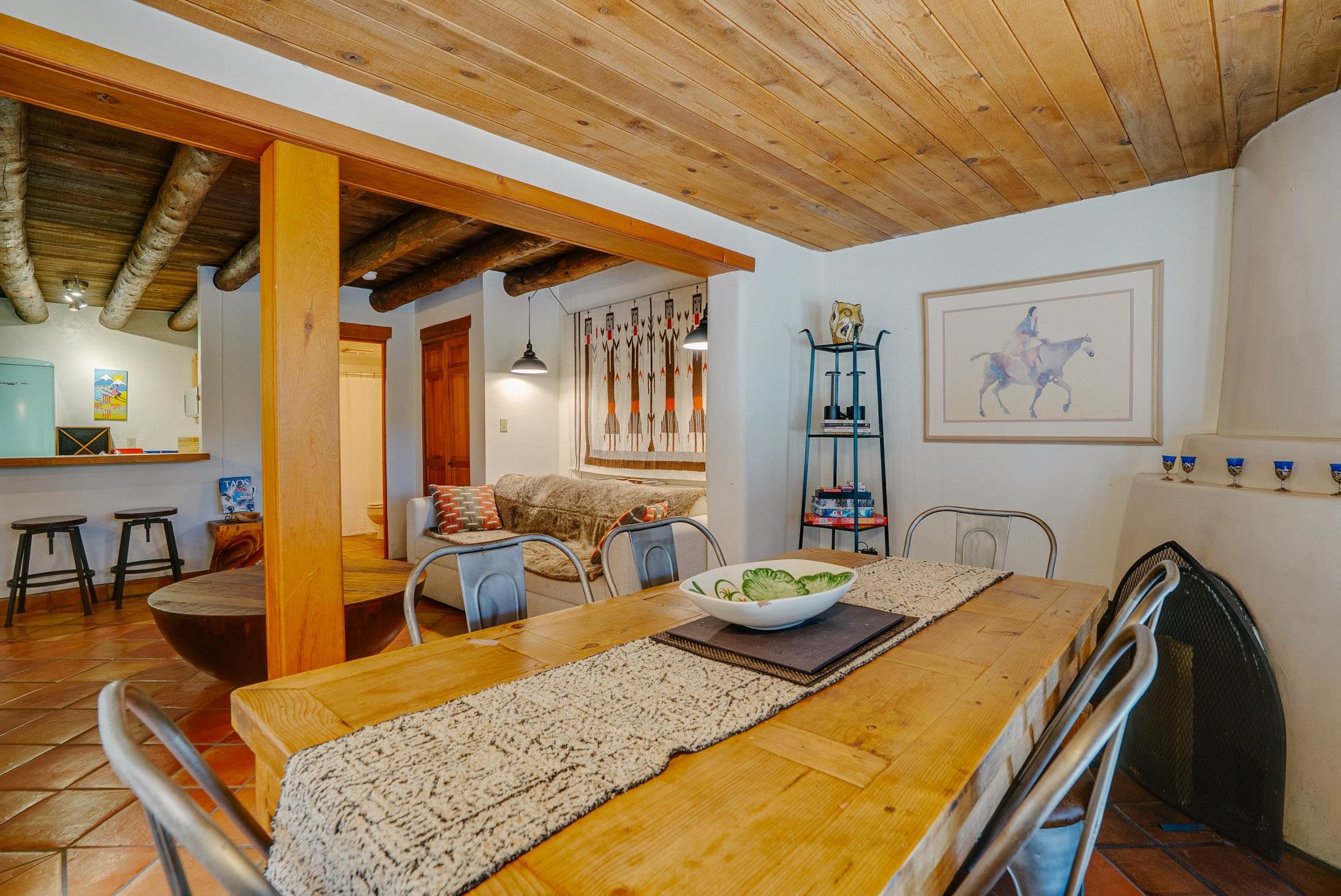 Welcome to Hacienda de Valdez, a charming condo nestled in the Sangre de Cristo Mountains with stunning western views from the second-story deck--perfect for soaking in sunsets and enjoying the peaceful natural surroundings. Ideally located just minutes from the entrance to Taos Ski Valley and five minutes from the vibrant village of Arroyo Seco, this home offers both tranquility and convenience. The condo features two spacious upstairs bedrooms, each with an en suite bathroom. One bedroom opens onto a private deck that provides a relaxing retreat with beautiful mountain and sunset views. Downstairs, you'll find a charming, open-concept living and dining area framed by large windows, a well-appointed kitchen, and a full bathroom. Part of the original Hacienda de Valdez structure, this unit is rich in Southwestern character, including three traditional kiva fireplaces, exposed vigas, tile floors, and hand-troweled plaster walls. A perfect blend of rustic charm and modern comfort--don't miss the opportunity to make this mountain retreat your own.