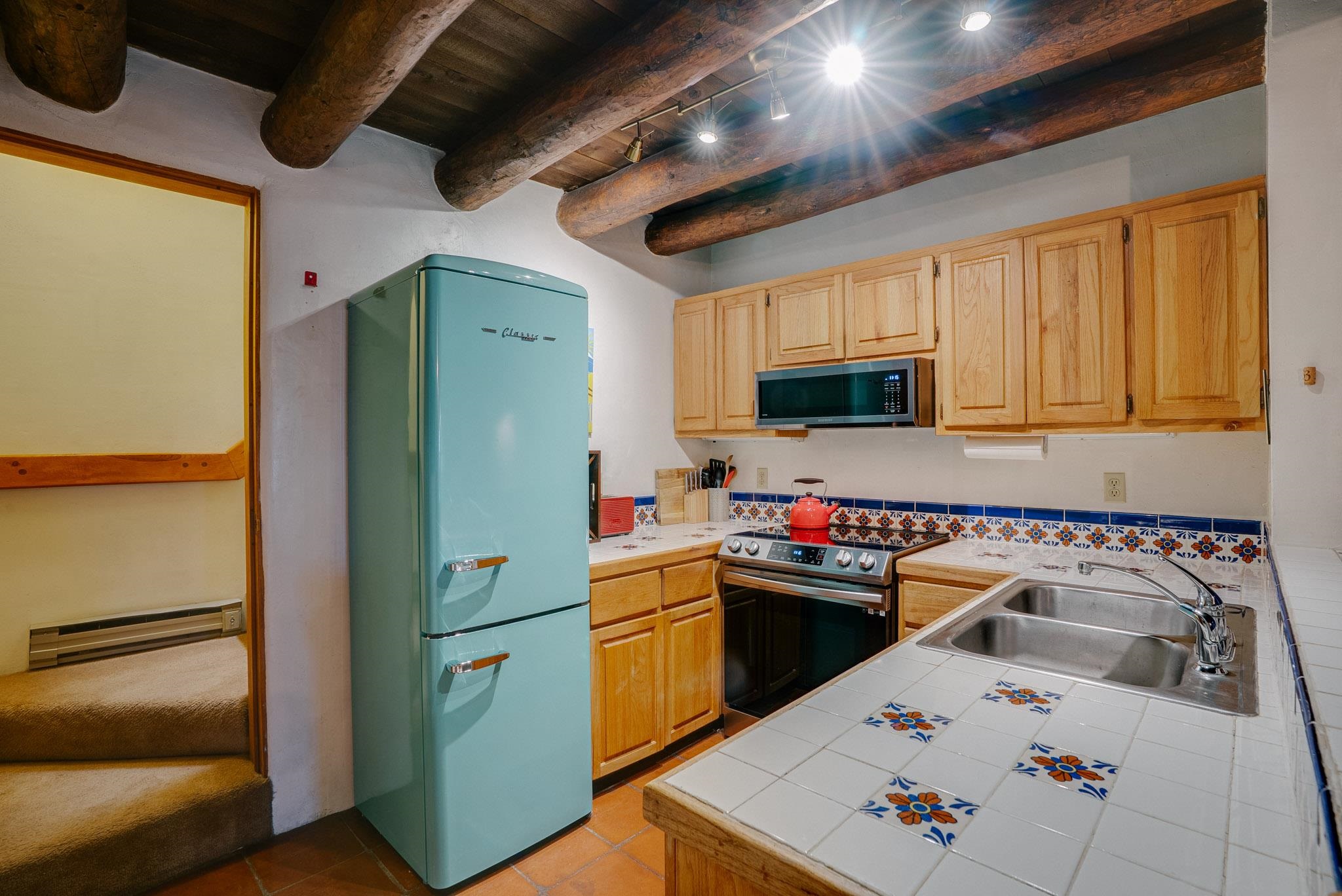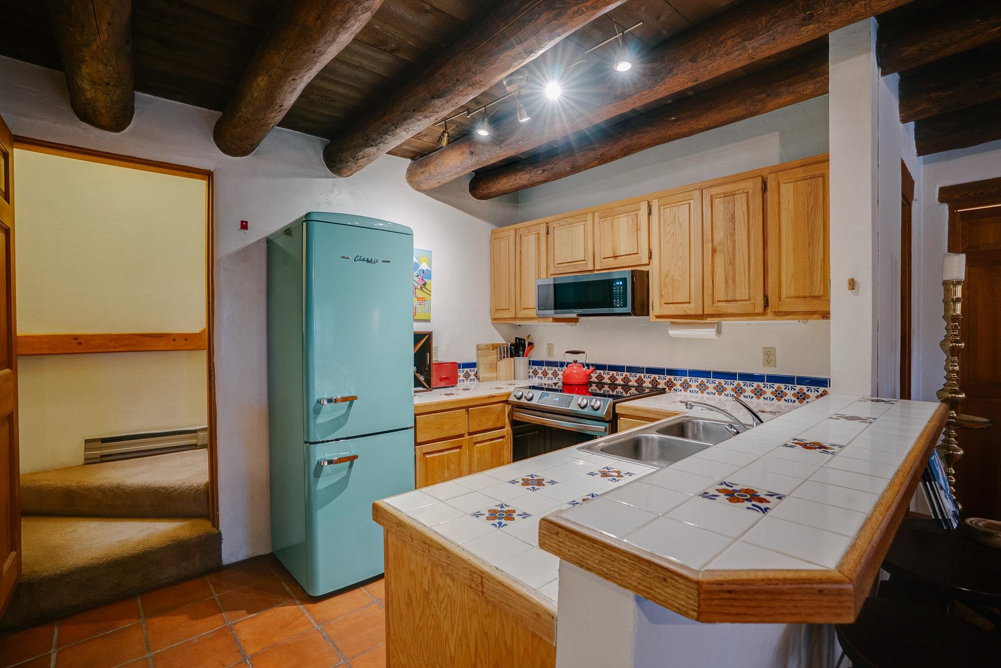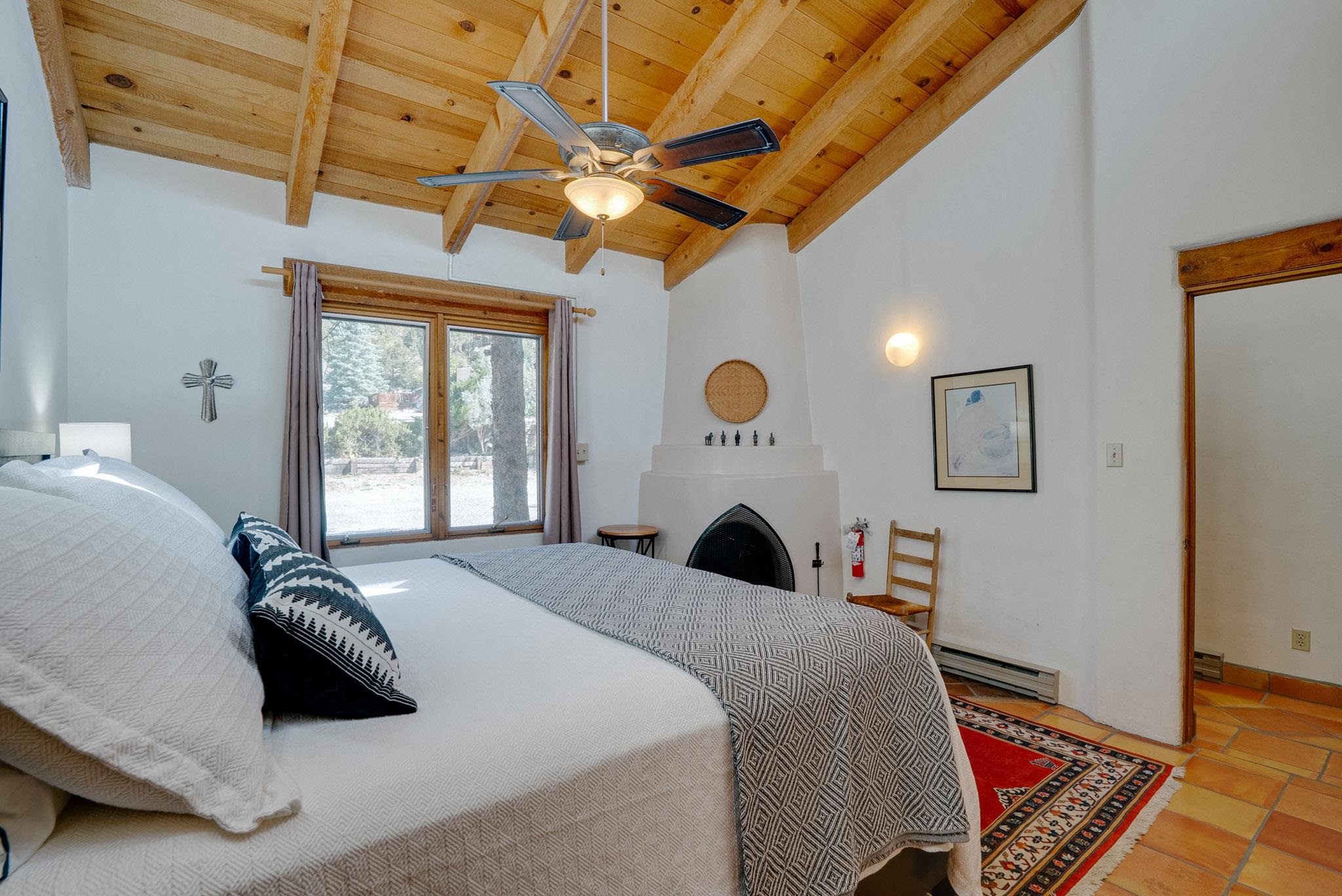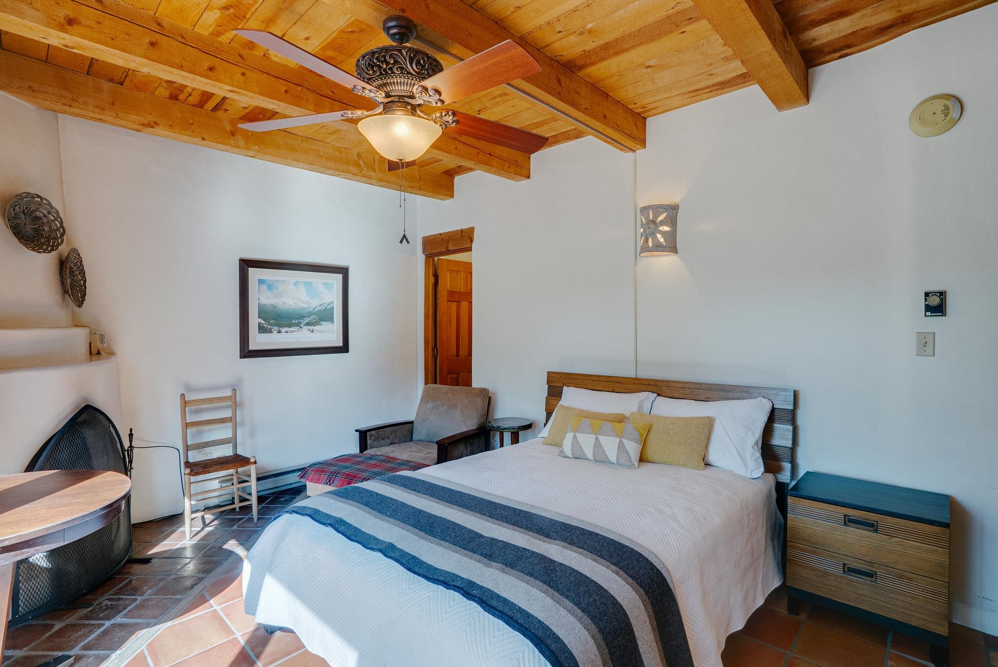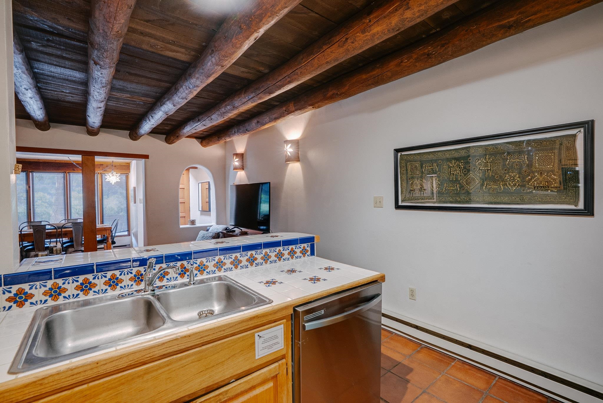 Welcome to Hacienda de Valdez, a charming condo nestled in the Sangre de Cristo Mountains with stunning western views from the second-story deck--perfect for soaking in sunsets and enjoying the peaceful natural surroundings. Ideally located just minutes from the entrance to Taos Ski Valley and five minutes from the vibrant village of Arroyo Seco, this home offers both tranquility and convenience. The condo features two spacious upstairs bedrooms, each with an en suite bathroom. One bedroom opens onto a private deck that provides a relaxing retreat with beautiful mountain and sunset views. Downstairs, you'll find a charming, open-concept living and dining area framed by large windows, a well-appointed kitchen, and a full bathroom. Part of the original Hacienda de Valdez structure, this unit is rich in Southwestern character, including three traditional kiva fireplaces, exposed vigas, tile floors, and hand-troweled plaster walls. A perfect blend of rustic charm and modern comfort--don't miss the opportunity to make this mountain retreat your own.