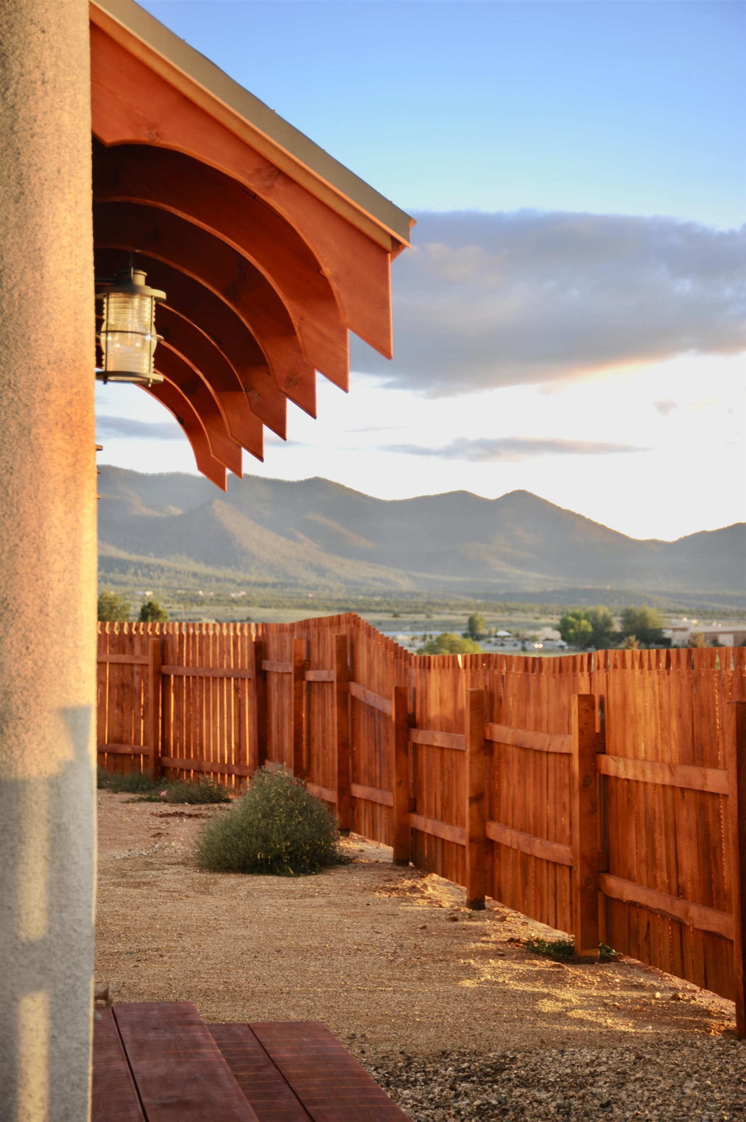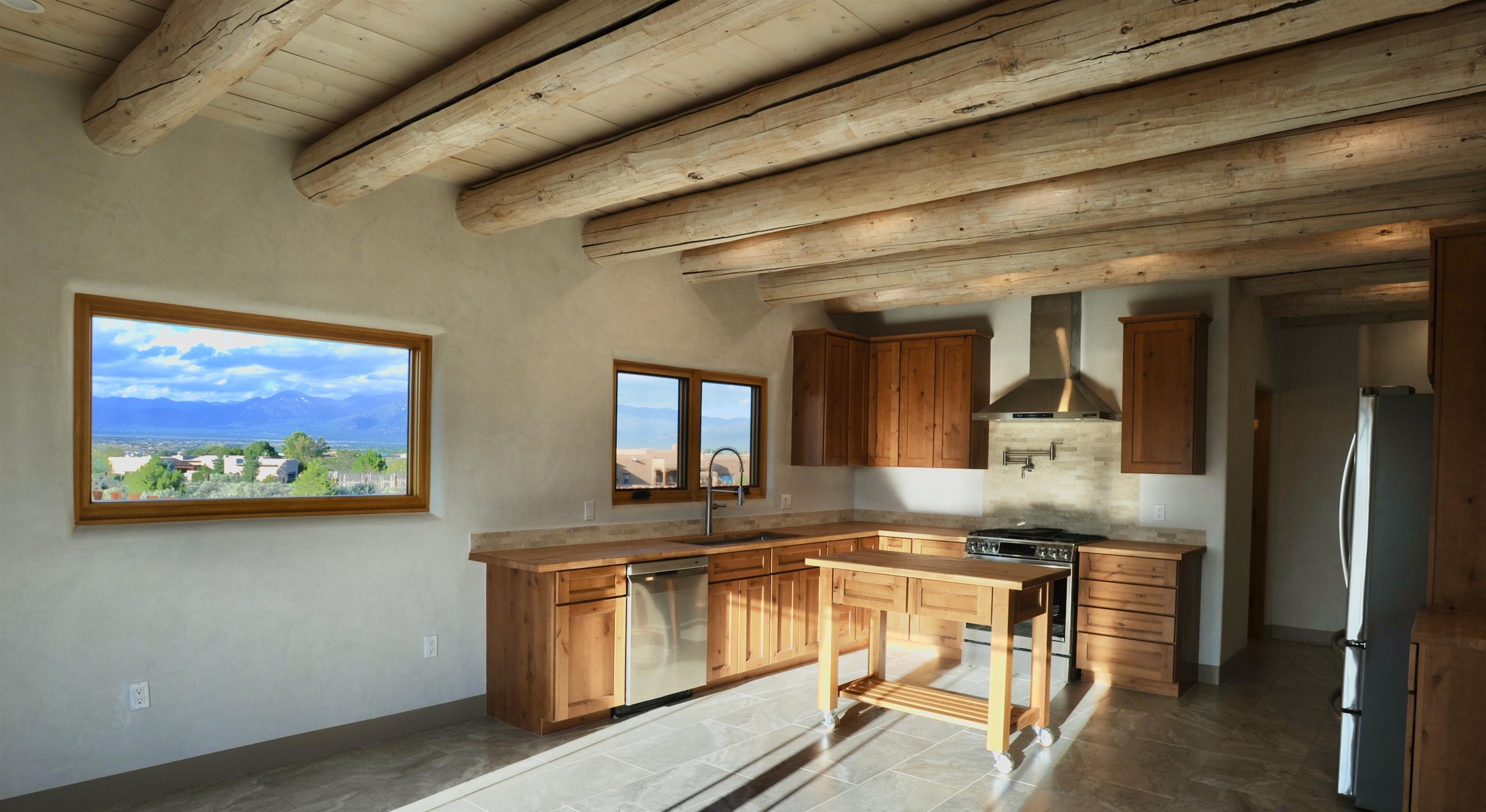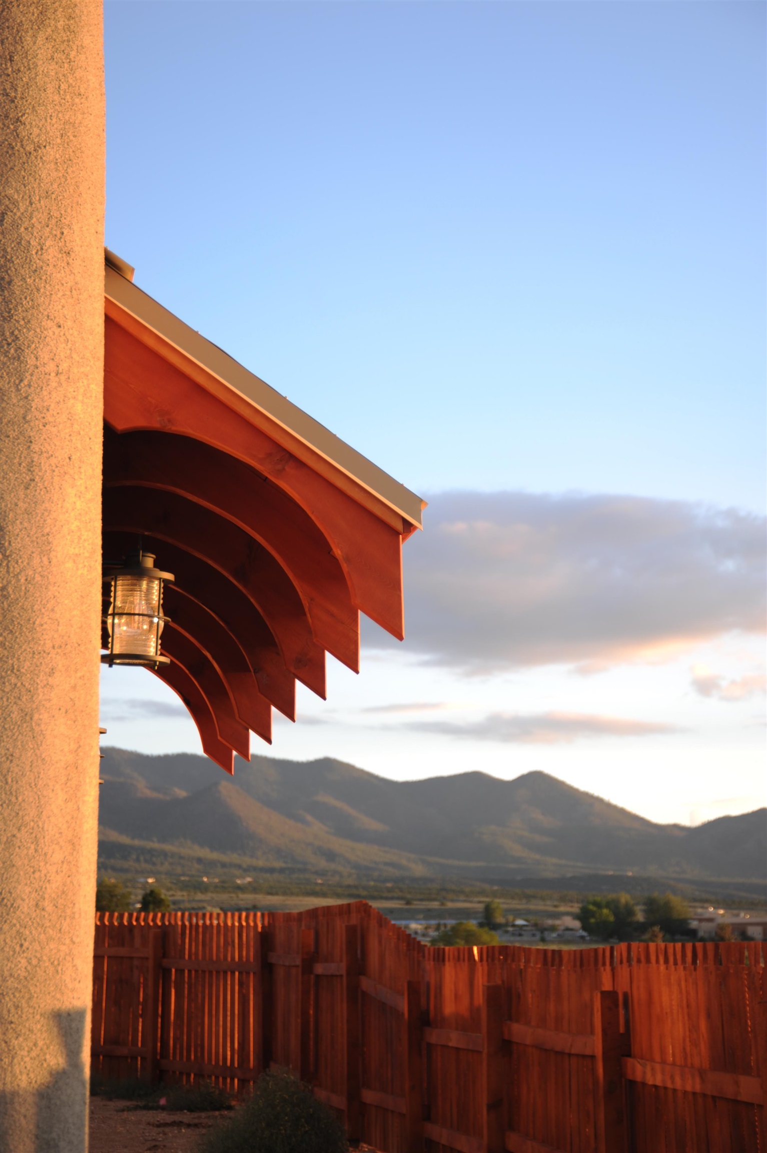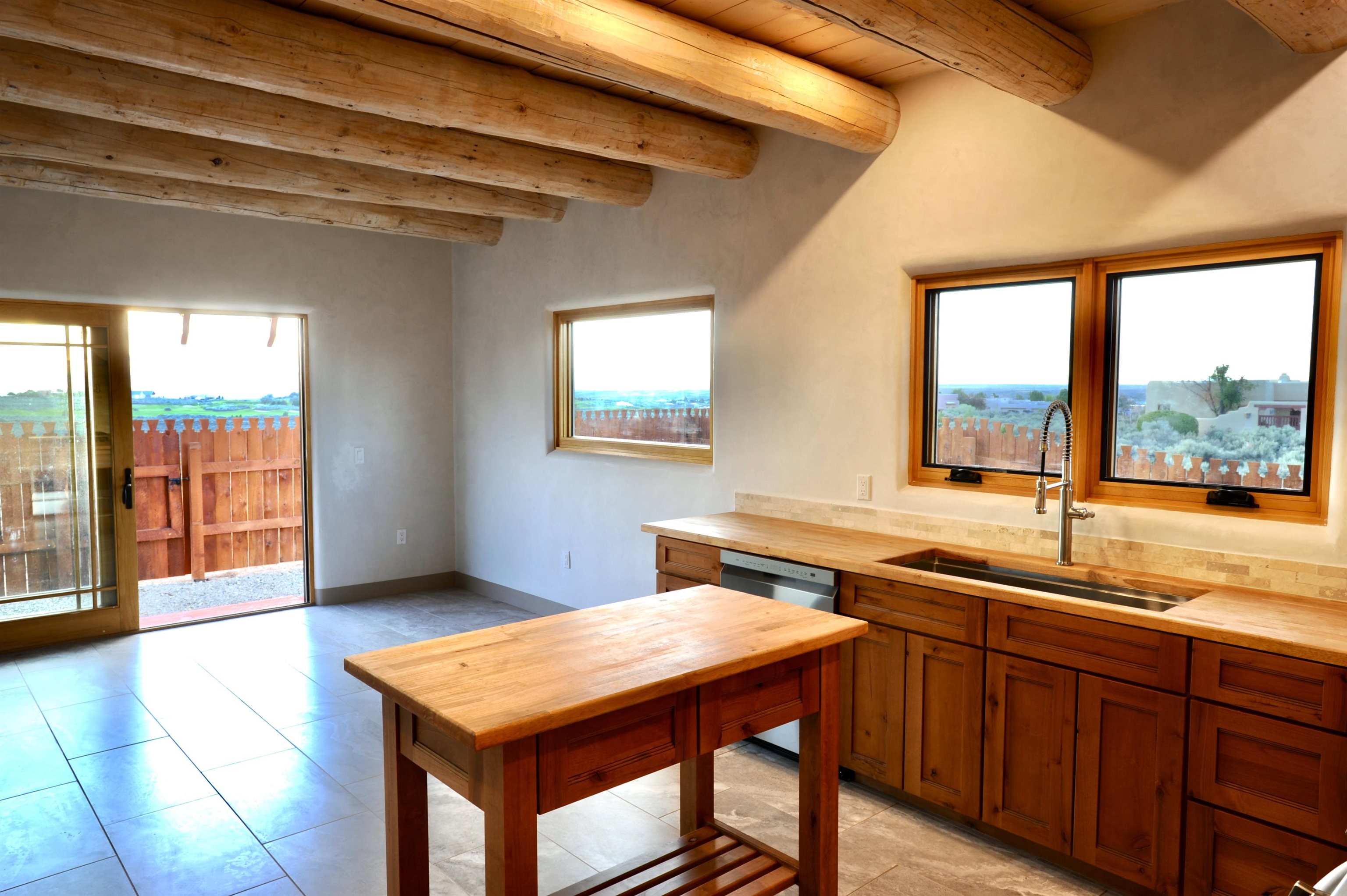 This is a remarkable custom home built in 2025 by renowned local builder Douglas Custom Homes. This property is situated on a hill adjacent to Taos Country Club with 360 degree panoramic views, sitting on 1.25 acres. Amenities include: 36" deep foundation (24" is norm.). 6 mil black plastic with 2" sub grade foam insulation = frost and radon barrier. 2x8 construction. R 43 insulated walls. R 60 insulated ceilings. Draw knifed "vigas" throughout. 16" x 32" Italian Porcelain throughout. Hard trowel plaster finish throughout. Sierra Pacific Designer low E double pane windows. LG 5 burner gas stove with pot filler. LG "side by side" 36" refrigerator. Nivean "on demand" domestic and radiant heating. Crack isolation / radon barrier underlayment for tile. 42" under counter stainless kitchen sink. enclosed fenced yard. 2 car carport, prepped for potential enclosure. pion trees on property. 45 minute drive to world renown Taos Ski Valley. 2 minutes to Taos Country Club golf course. 2 hr. 45 min. to ABQ Int'l airport. 10 min. from Taos Plaza. Single track mtn. biking along The Rio Grande Gorge, 5 min. away. Unobstructed scenic views abound, Must see Property!! Incredibly built!