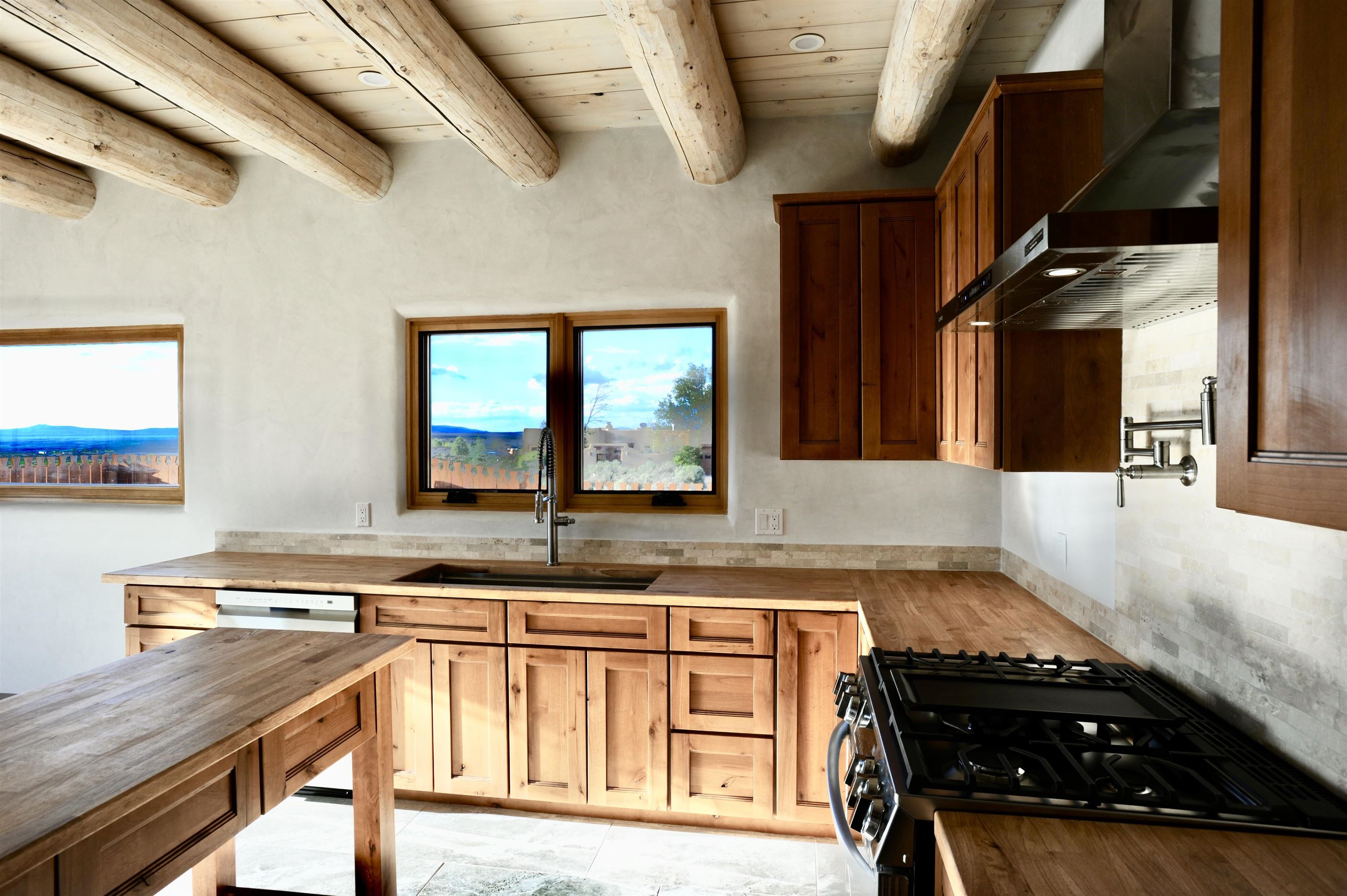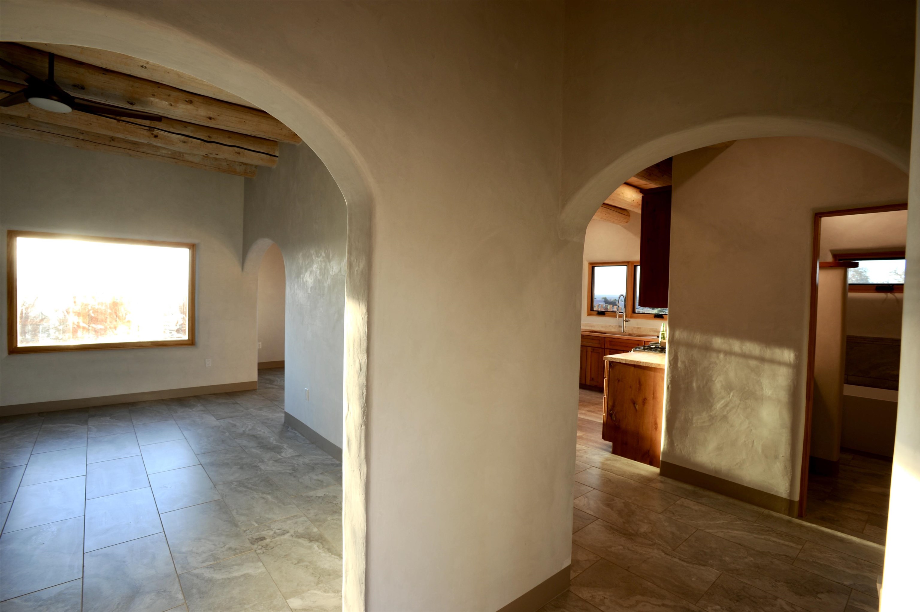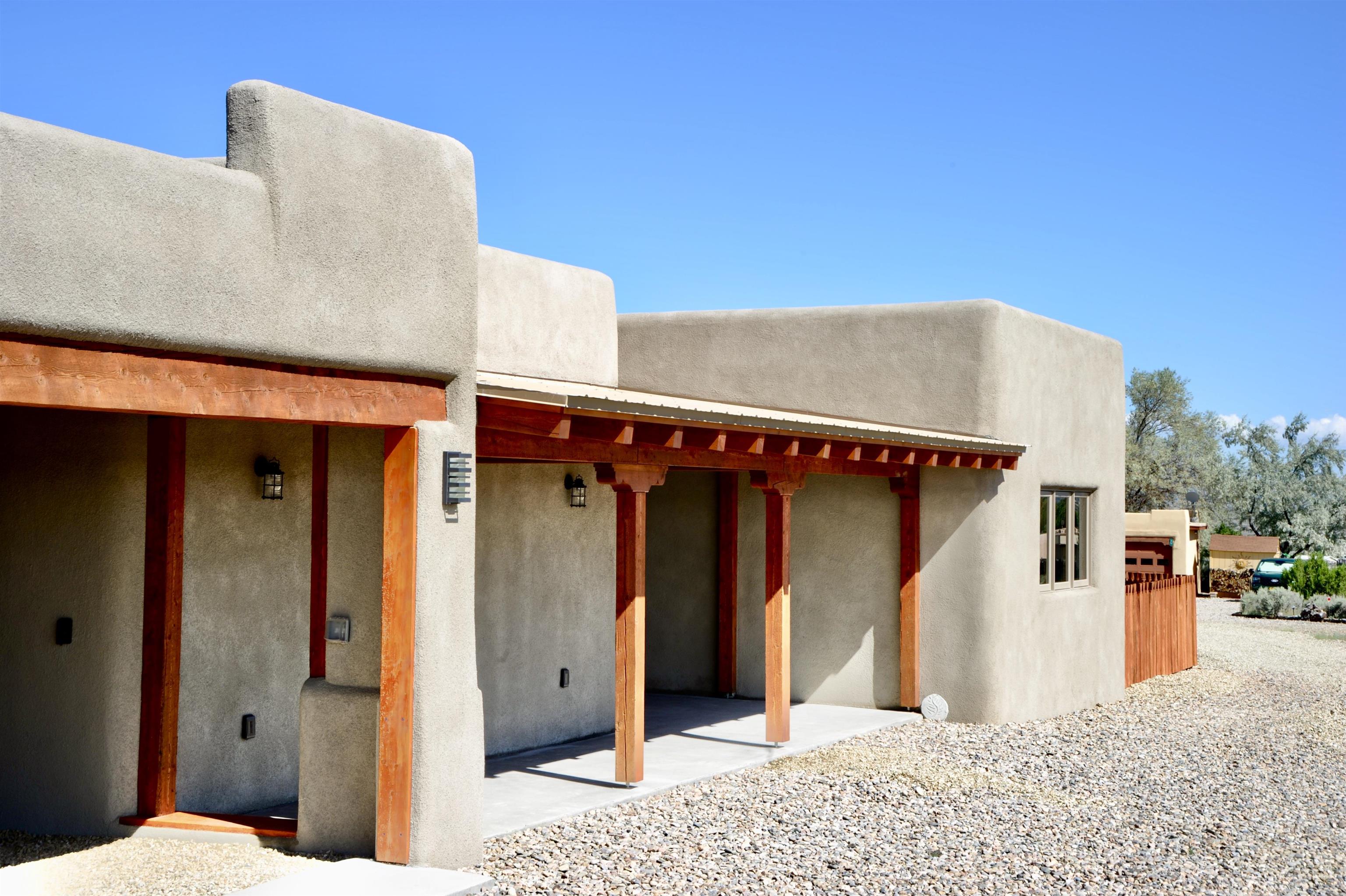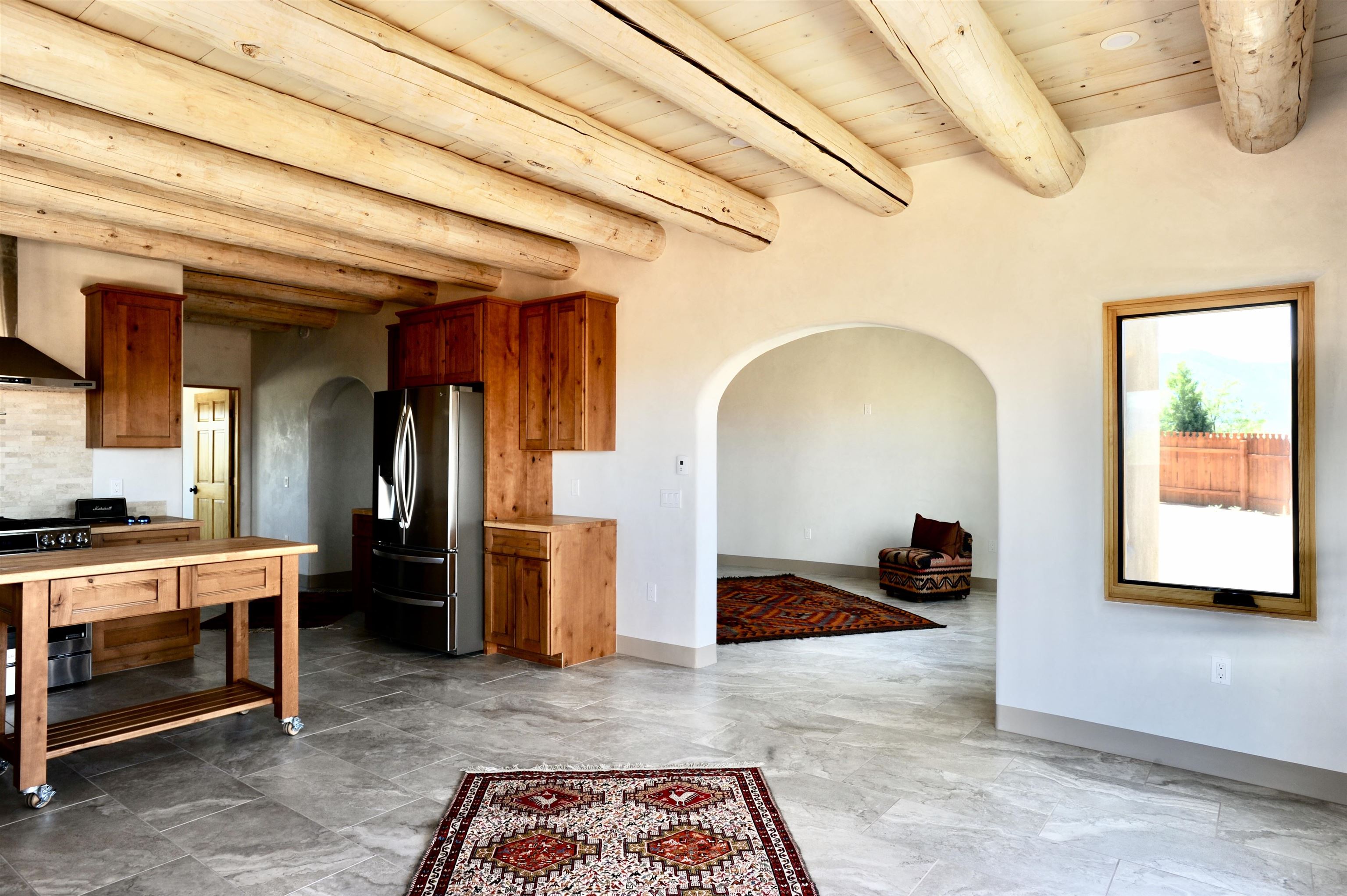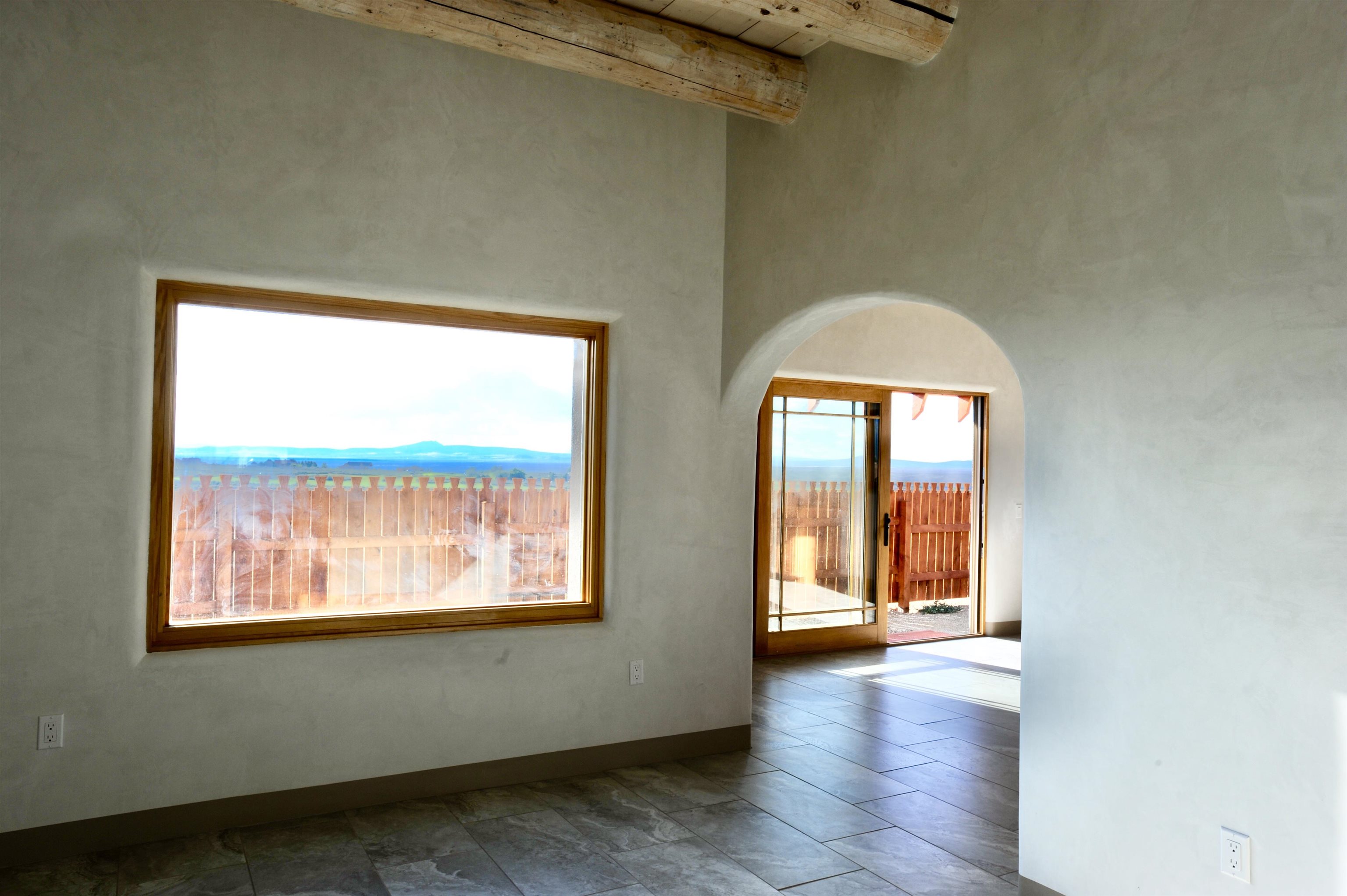 This is a remarkable custom home built in 2025 by renowned local builder Douglas Custom Homes. This property is situated on a hill adjacent to Taos Country Club with 360 degree panoramic views, sitting on 1.25 acres. Amenities include: 36" deep foundation (24" is norm.). 6 mil black plastic with 2" sub grade foam insulation = frost and radon barrier. 2x8 construction. R 43 insulated walls. R 60 insulated ceilings. Draw knifed "vigas" throughout. 16" x 32" Italian Porcelain throughout. Hard trowel plaster finish throughout. Sierra Pacific Designer low E double pane windows. LG 5 burner gas stove with pot filler. LG "side by side" 36" refrigerator. Nivean "on demand" domestic and radiant heating. Crack isolation / radon barrier underlayment for tile. 42" under counter stainless kitchen sink. enclosed fenced yard. 2 car carport, prepped for potential enclosure. pion trees on property. 45 minute drive to world renown Taos Ski Valley. 2 minutes to Taos Country Club golf course. 2 hr. 45 min. to ABQ Int'l airport. 10 min. from Taos Plaza. Single track mtn. biking along The Rio Grande Gorge, 5 min. away. Unobstructed scenic views abound, Must see Property!! Incredibly built!