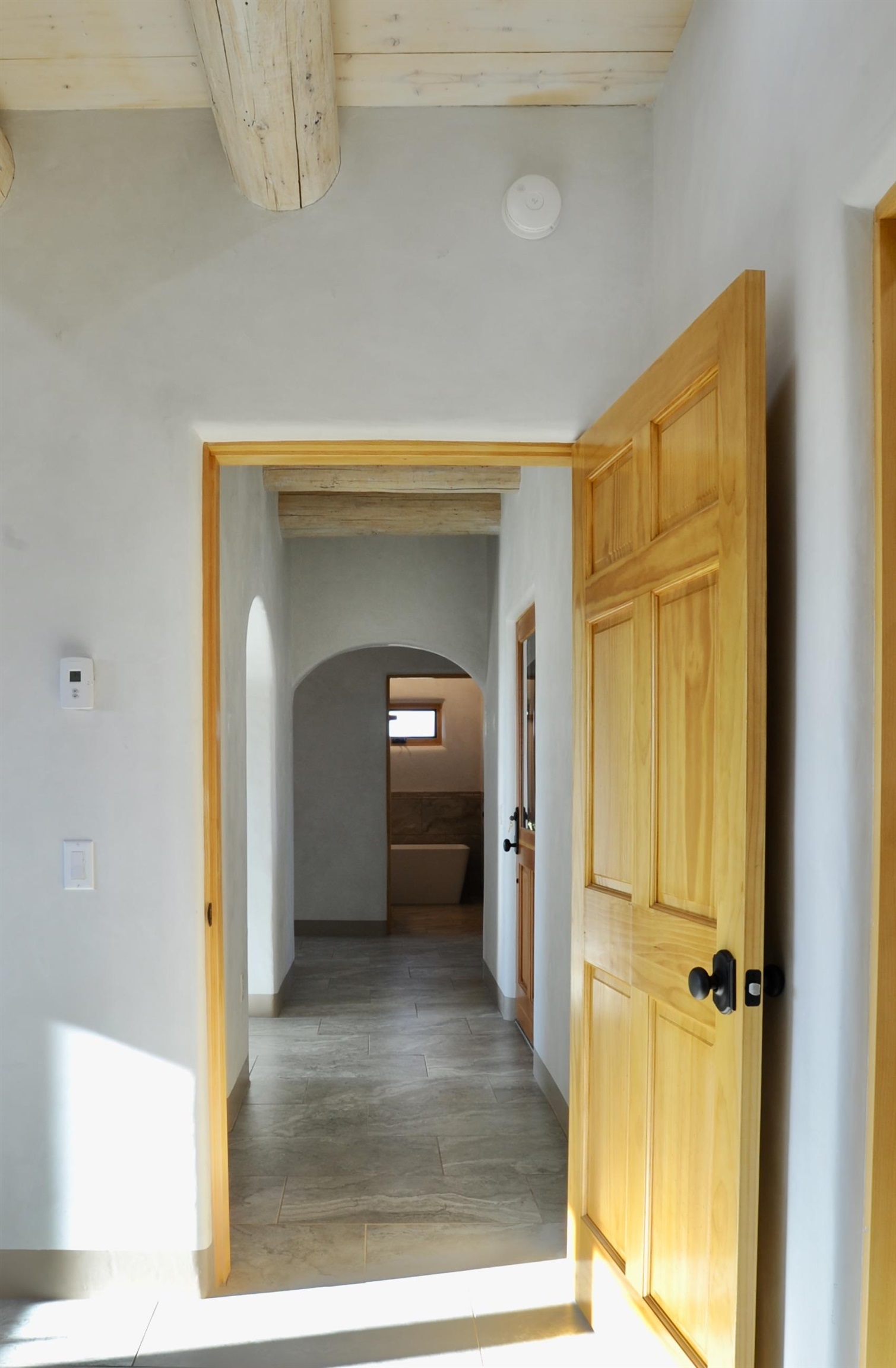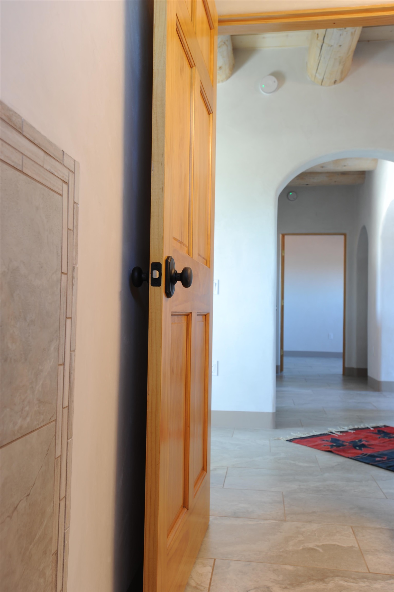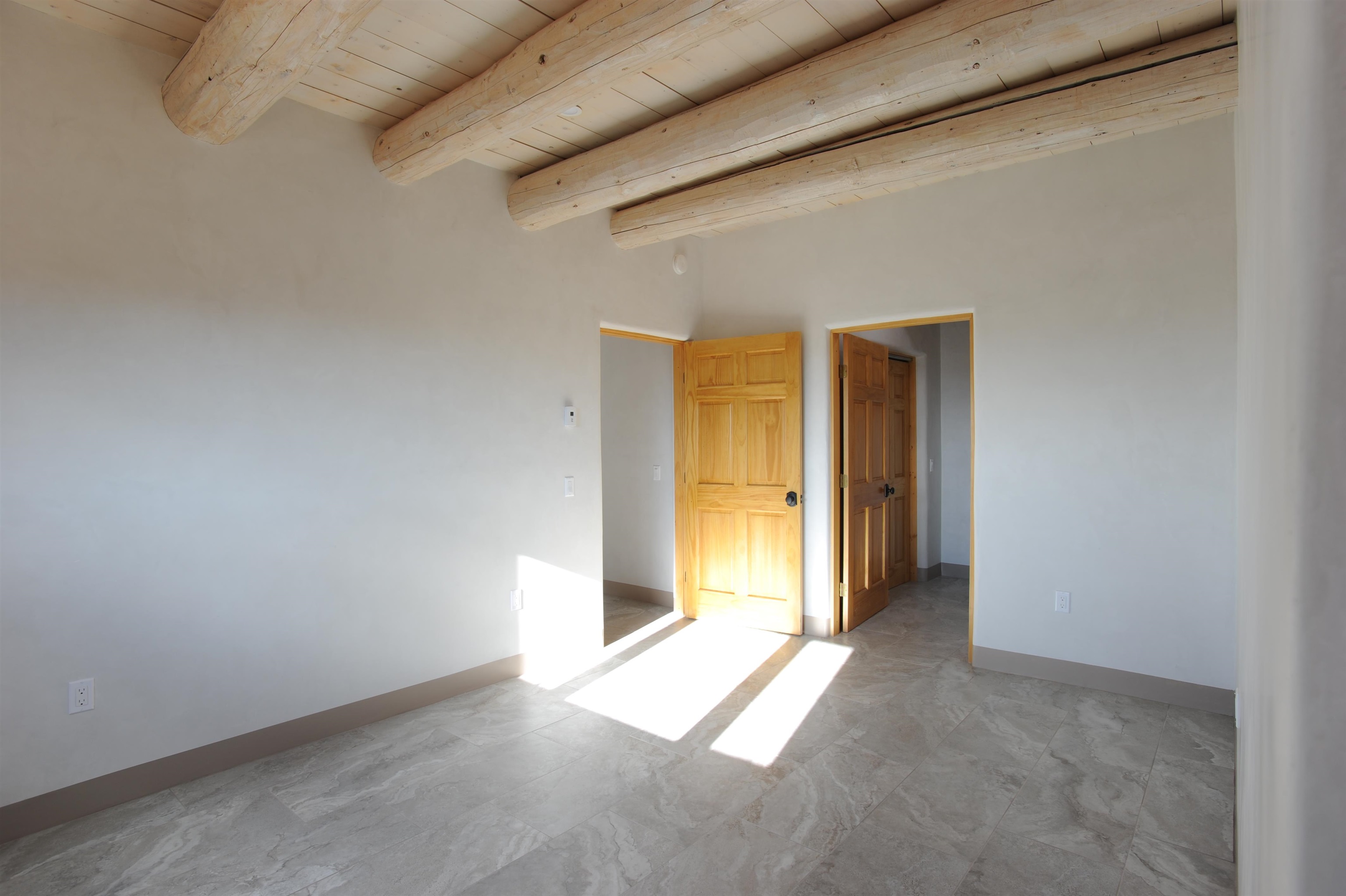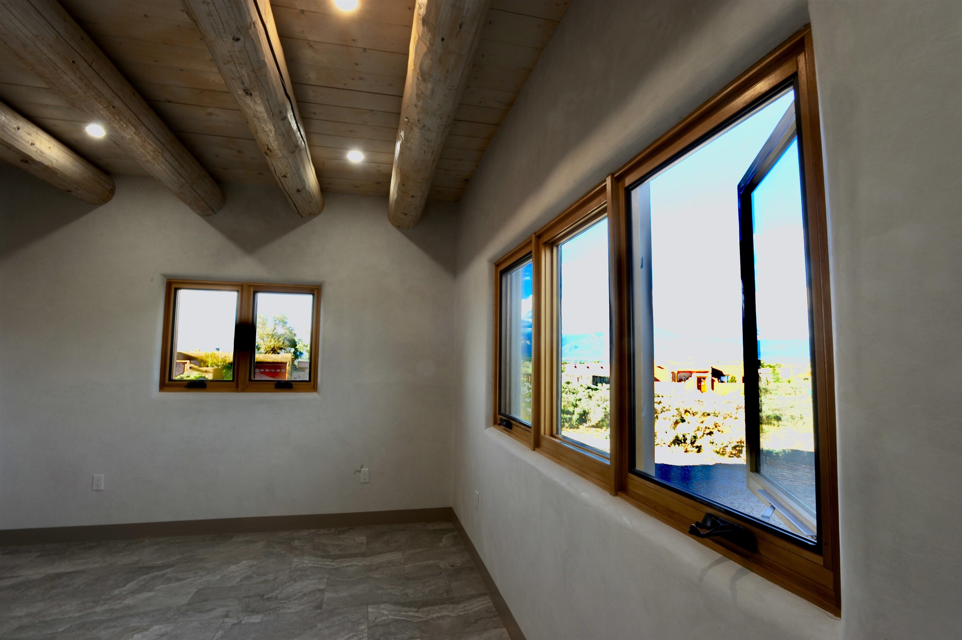 This is a remarkable custom home built in 2025 by renowned local builder Douglas Custom Homes. This property is situated on a hill adjacent to Taos Country Club with 360 degree panoramic views, sitting on 1.25 acres. Amenities include: 36" deep foundation (24" is norm.). 6 mil black plastic with 2" sub grade foam insulation = frost and radon barrier. 2x8 construction. R 43 insulated walls. R 60 insulated ceilings. Draw knifed "vigas" throughout. 16" x 32" Italian Porcelain throughout. Hard trowel plaster finish throughout. Sierra Pacific Designer low E double pane windows. LG 5 burner gas stove with pot filler. LG "side by side" 36" refrigerator. Nivean "on demand" domestic and radiant heating. Crack isolation / radon barrier underlayment for tile. 42" under counter stainless kitchen sink. enclosed fenced yard. 2 car carport, prepped for potential enclosure. pion trees on property. 45 minute drive to world renown Taos Ski Valley. 2 minutes to Taos Country Club golf course. 2 hr. 45 min. to ABQ Int'l airport. 10 min. from Taos Plaza. Single track mtn. biking along The Rio Grande Gorge, 5 min. away. Unobstructed scenic views abound, Must see Property!! Incredibly built!