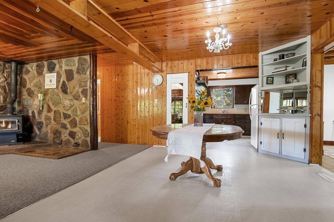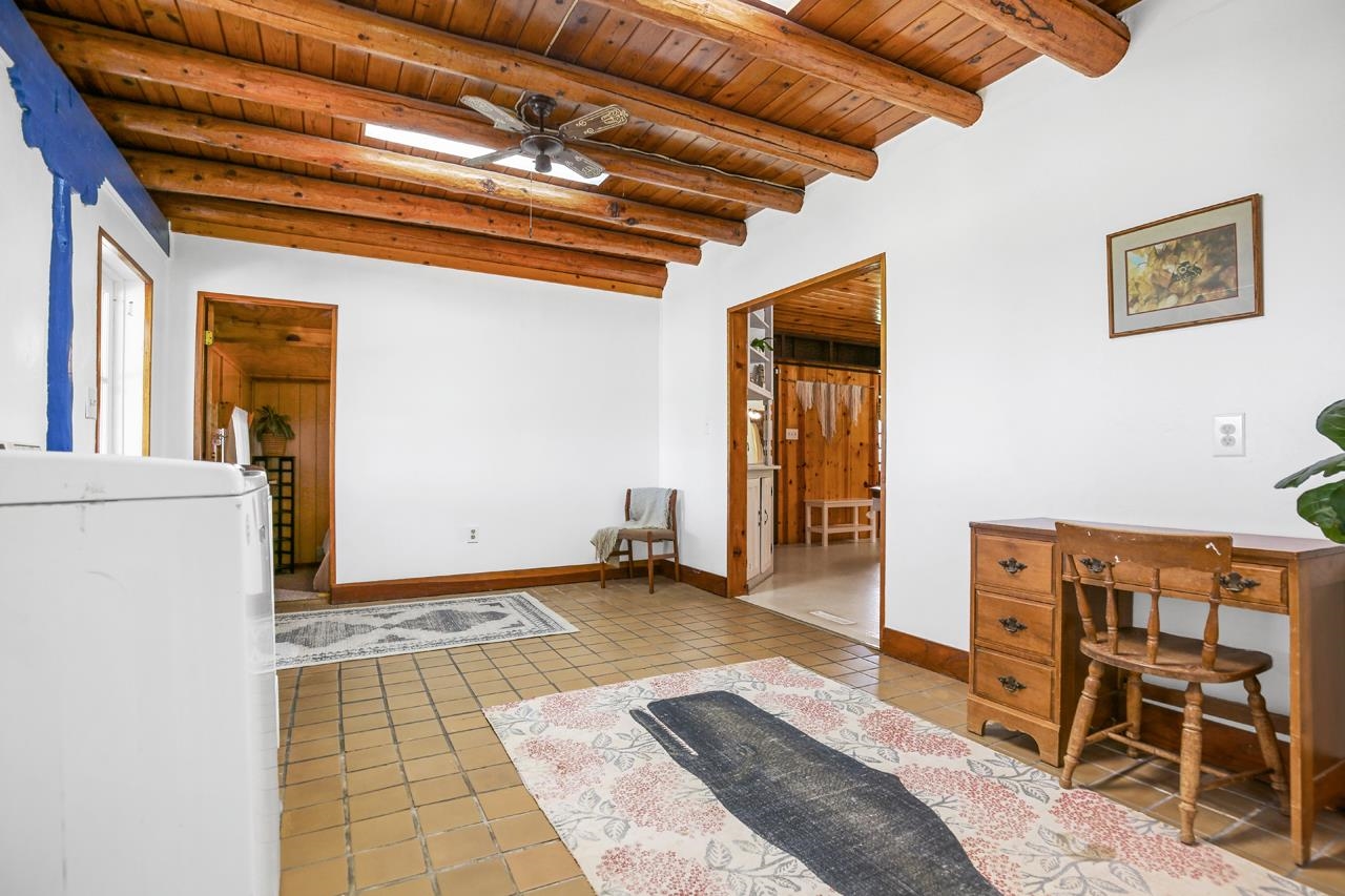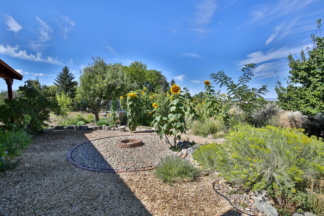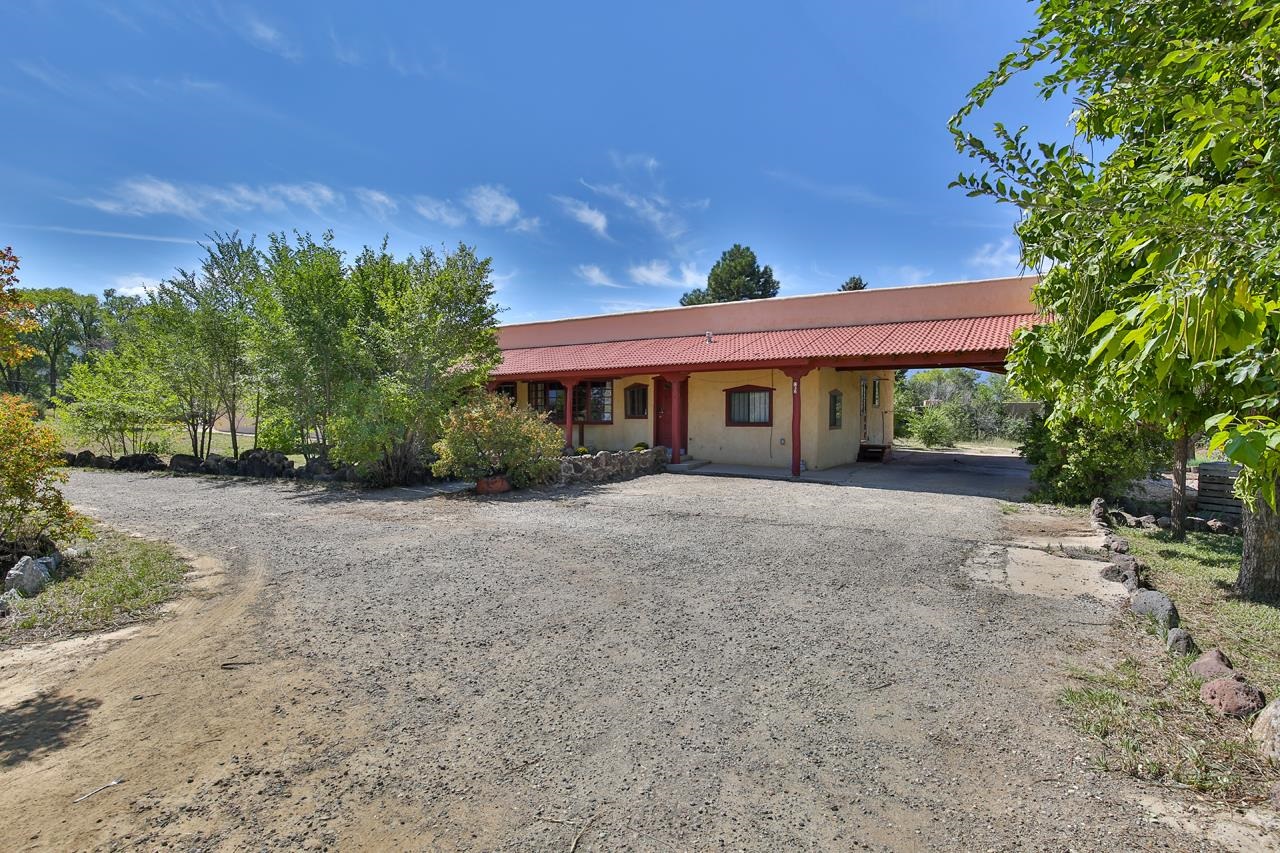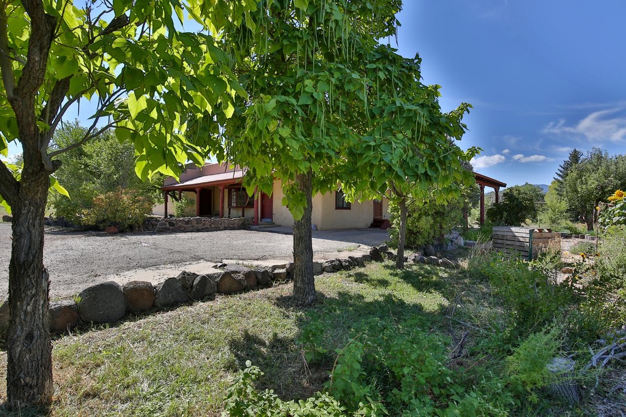 1 Acre of Fun, Function & Fantastic Garage Space! Looking for a place that's got character, comfort, and a whole lot of wow factor? This one-acre property delivers big time. Just minutes from shopping, the hospital, and trails, it's the perfect blend of convenience and elbow room. Step inside and you'll find cozy vibes galore, think charming viga ceilings, warm hand painted doors, and a stone-wrapped fireplace that practically begs for game night or a hot cocoa moment. The kitchen comes with its own walk-in pantry and flows right into a super-sized laundry/utility/craft room, ideal for projects, hobbies, or just staying organized. Garage Goals: If you love cars, toys, or tinkering, you'll be in heaven. The rare oversized garage fits 5+ vehicles, has soaring ceilings, a giant storage closet, and an extra-tall automatic door made for RVs. Bonus points: a heated workshop with a wood stove for year-round projects. Plus, the circular driveway and dual entrances make pulling in and out a breeze. Your Mini Homestead Awaits: Outside, enjoy mature apricot, apple, pinon and ponderosa pine trees, berry bushes, veggie gardens, and even a rock fire ring, perfect for starry nights and story swapping. Add in an RV dump hookup, and you've got the ultimate combo of comfort, convenience, and possibilities. Ask for a list to give you an idea of the variety of plants on the property. This isn't just a home, it's a lifestyle playground waiting for its next adventure-loving owner. For more views: https://youtu.be/vZvjChkUK2k