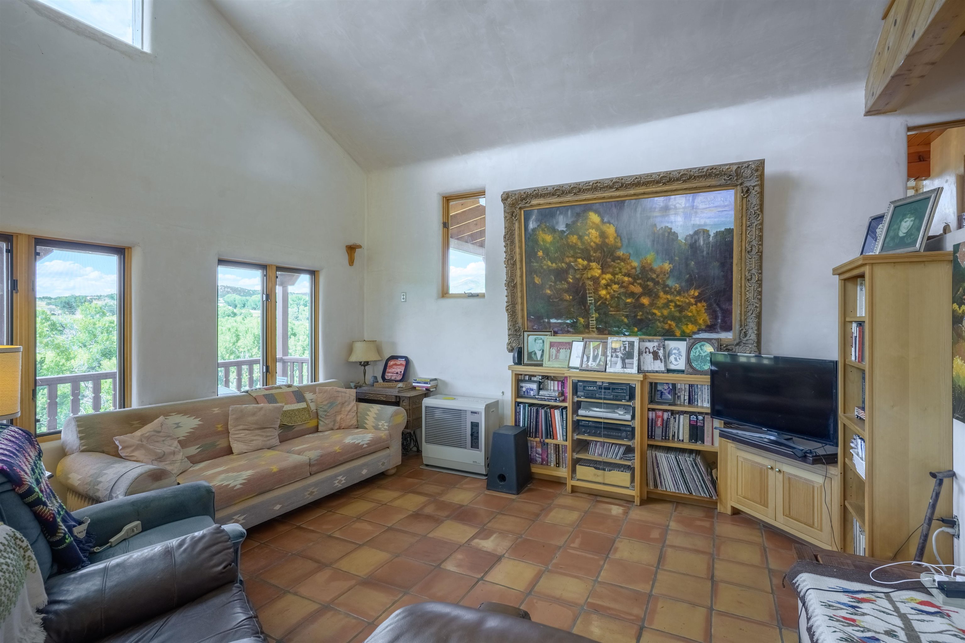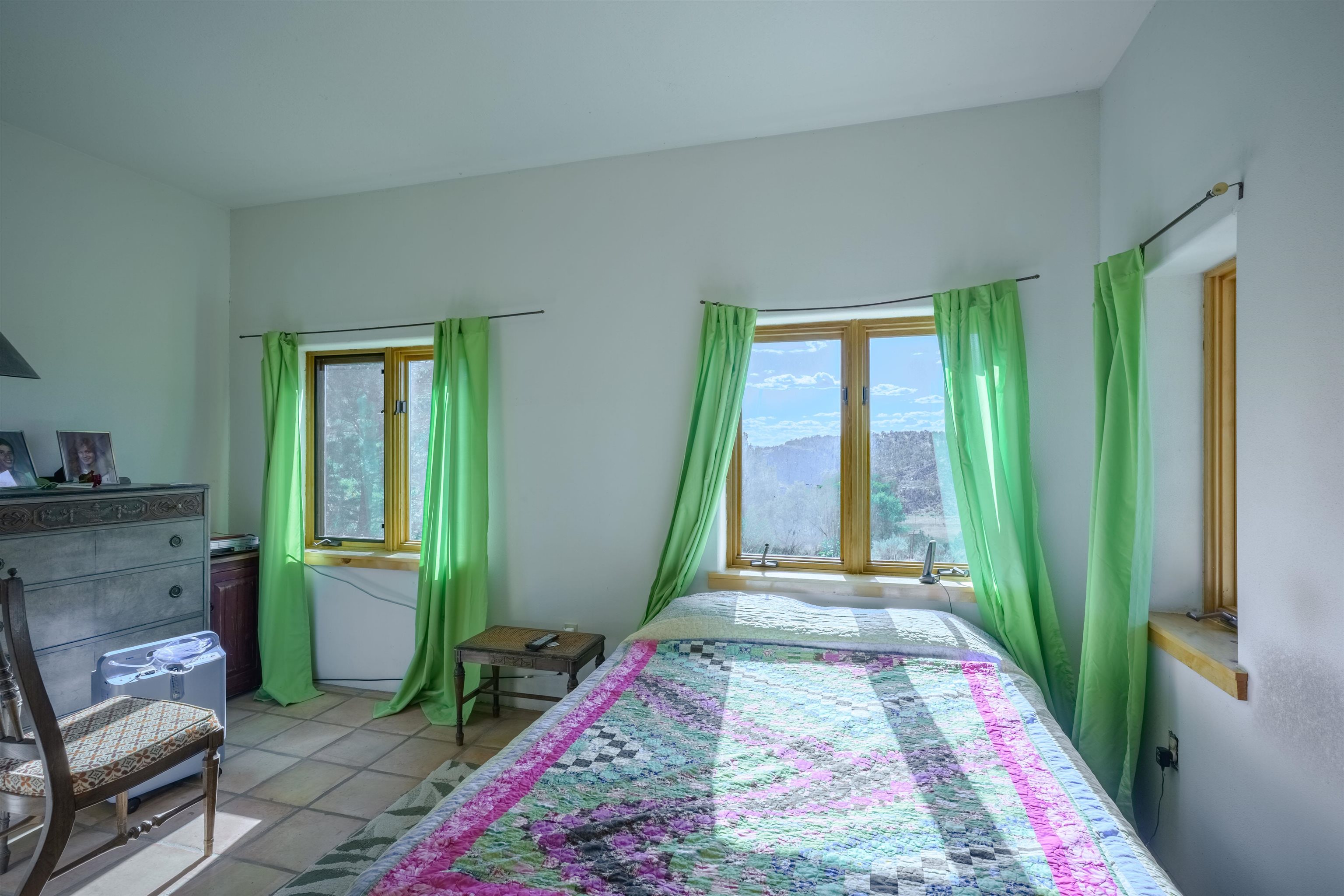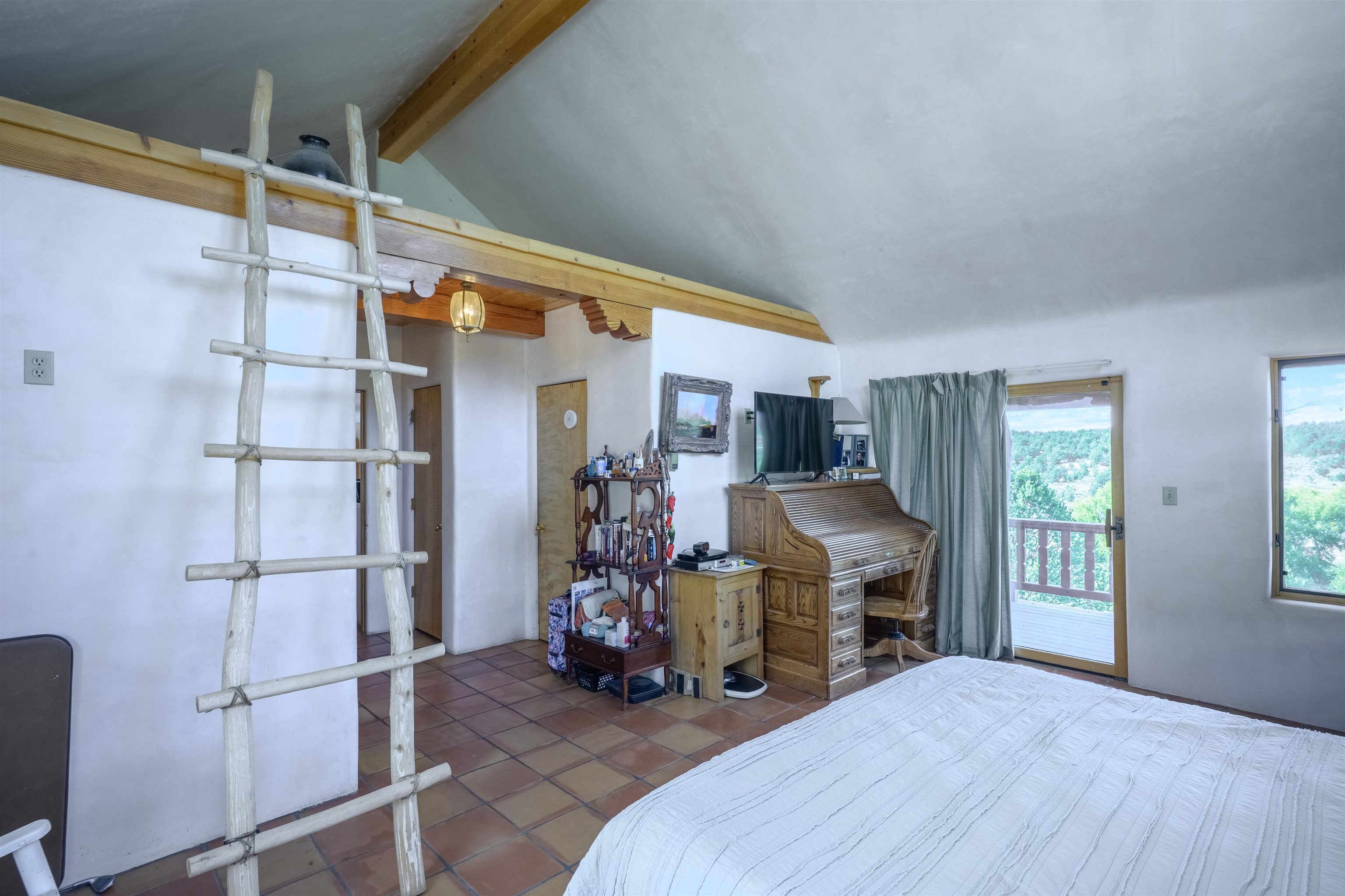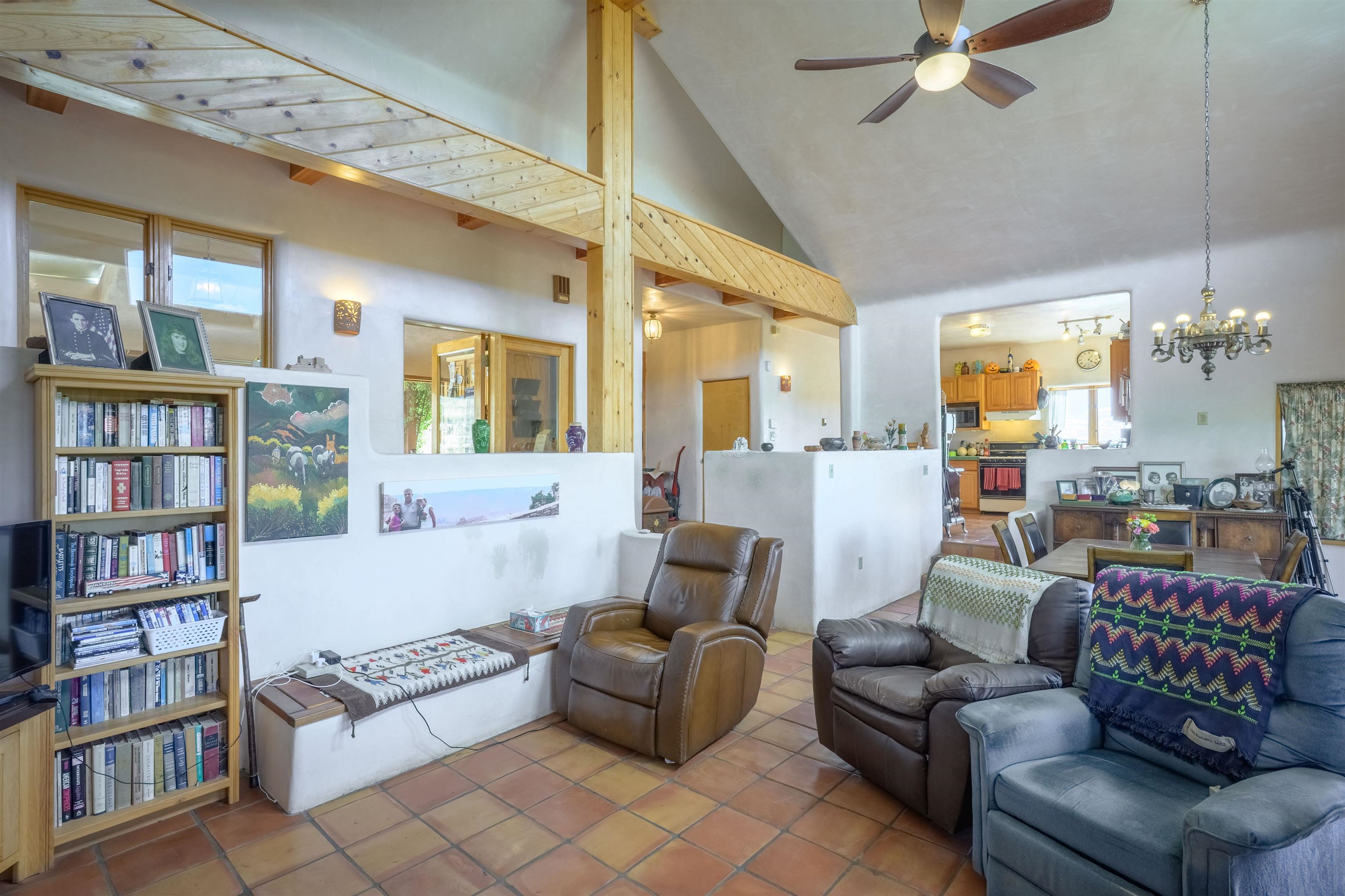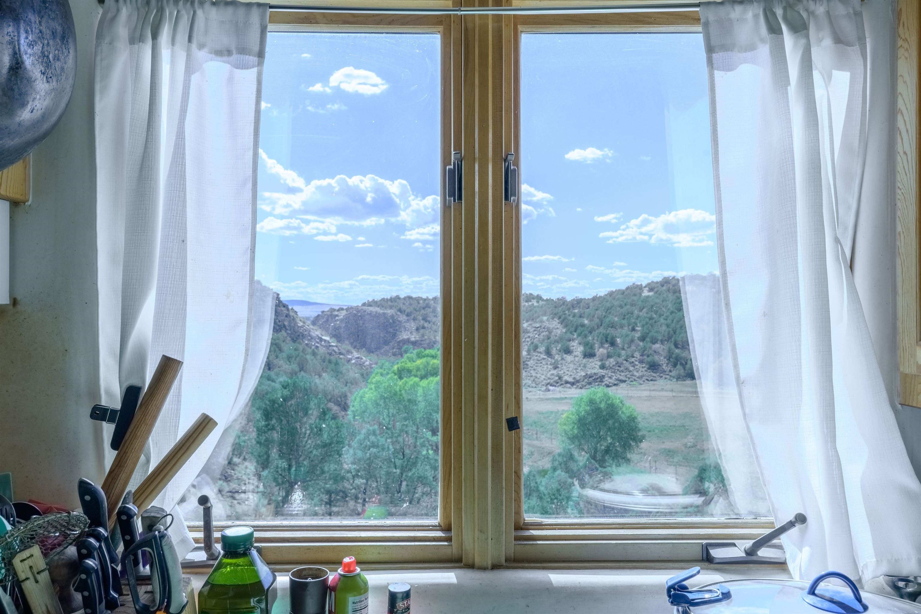 Incredible One-of-a-Kind Residence on the San Cristobal Hillside ~ Let me introduce you to this private and perfectly situated property on 3.5 plus acres overlooking the lush San Cristobal Valley. This meticulously overbuilt, contemporary Southwestern style home offers a truly unparalleled living experience, surrounded by tranquil ponds and a picturesque canyon. The property is a haven for wildlife, with a neighboring water source attracting a variety of animals that can be observed from the expansive, three-quarter wrap-around deck. Step inside through hand-carved doors salvaged from the historic Our Lady of Guadalupe Church in downtown Taos from the 1800s. The interior blends traditional Southwestern touches like Saltillo tile and diamond-finish walls with elegant wood accents. The home's efficient construction boasts a high R-value with 2-inch thick rigid fiberglass insulated walls and 20-inch blown-in ceiling insulation--keeping the space comfortable year-round. Passive solar windows and number one diesel wall heaters provide additional warmth, creating a perfectly inviting atmosphere. The antique wood stove in the kitchen is a great back-up, and can even be used for cooking like they did in the good ol' days. The true highlight of the homes is the ability to carry out true Indoor-Outdoor living, with multiple egress points leading to the grand deck and its awe-inspiring daily views. The primary ensuite, complete with a loft, walk-in closets, and high ceilings, offers a serene retreat. The residence is also ADA compliant, featuring an installed wheelchair lift. The lower level provides a second bedroom, a large living area, and two bonus rooms perfect for a gym, office, den, or perhaps a second separate living space. Back upstairs you will find a sunroom currently being used as an office, but certainly a place to house all your indoor greener.y The property also includes a detached studio space, currently utilized as a sewing room but easily adaptable as an art studio or guest casita equipped electric. A spacious storage room and a south-facing greenhouse for year-round gardening complete the grounds attached to the studio.This exceptional home is conveniently located on the north side of town, offering quick access to Taos Ski Valley, the Rio Grande River, and a variety of trails for hiking, biking, hunting, and fishing galore. Properties of this caliber are a rare find; don't miss the chance to make this extraordinary residence your own.