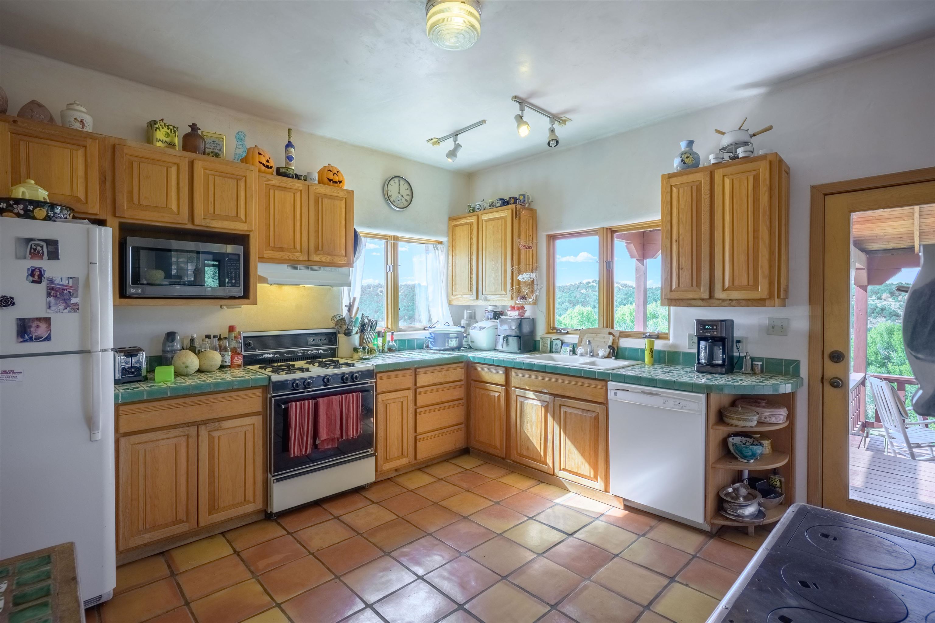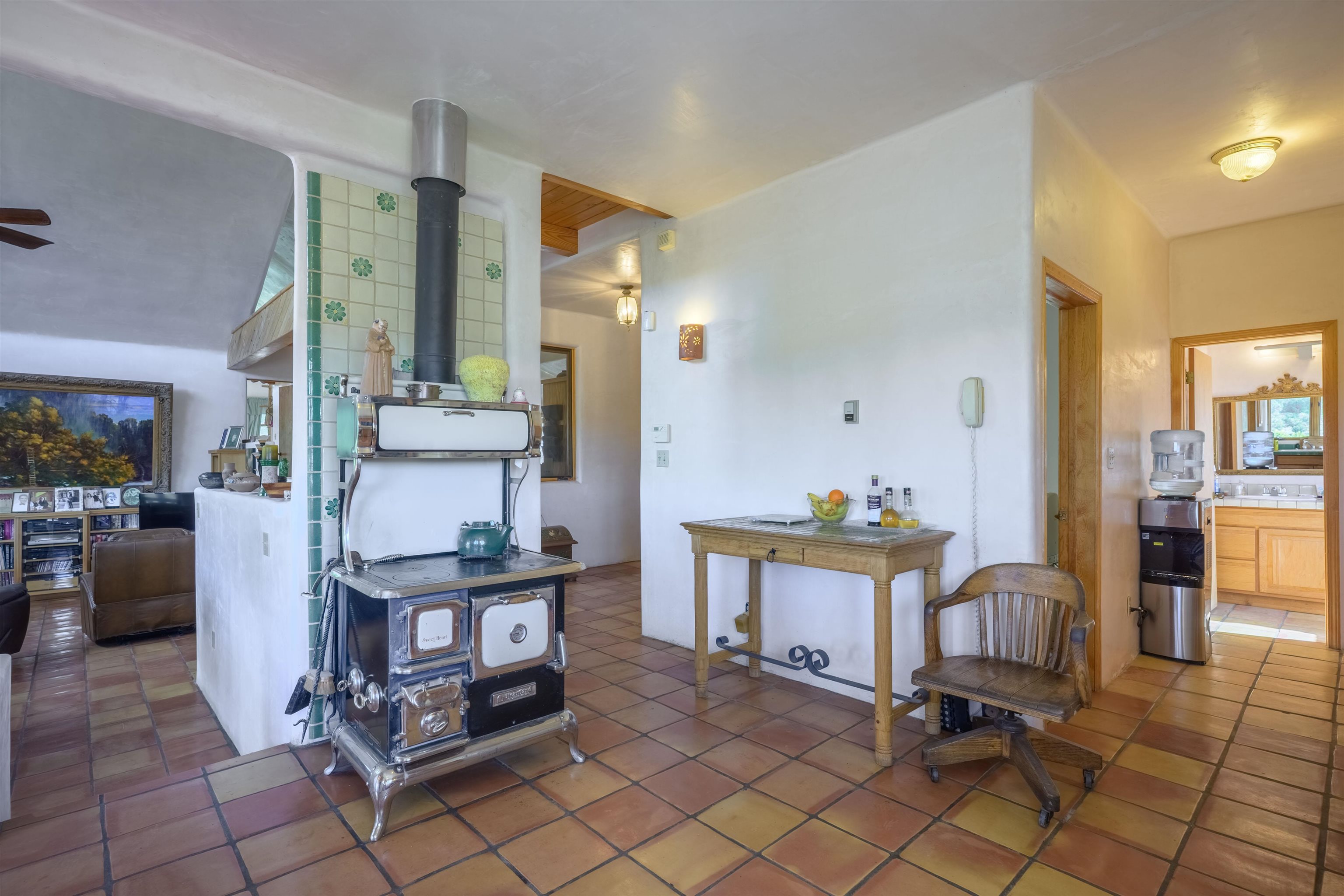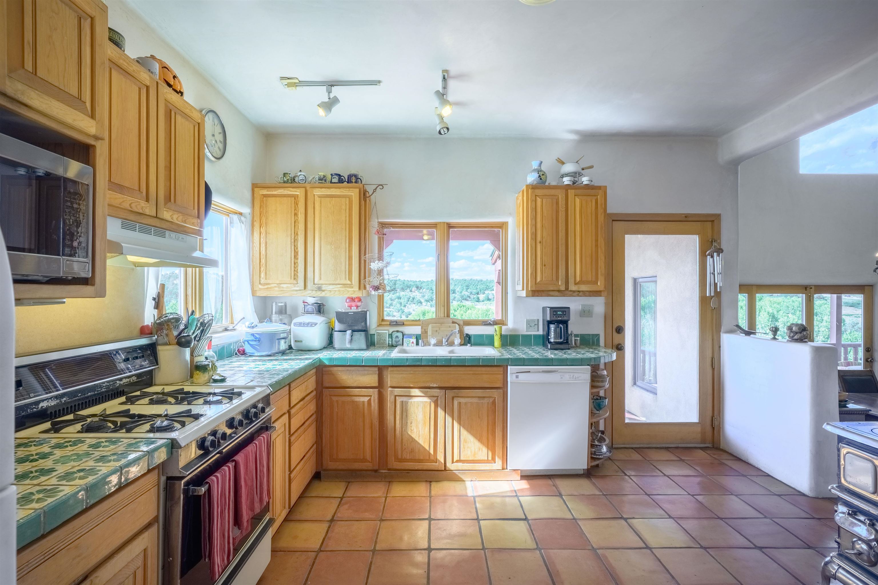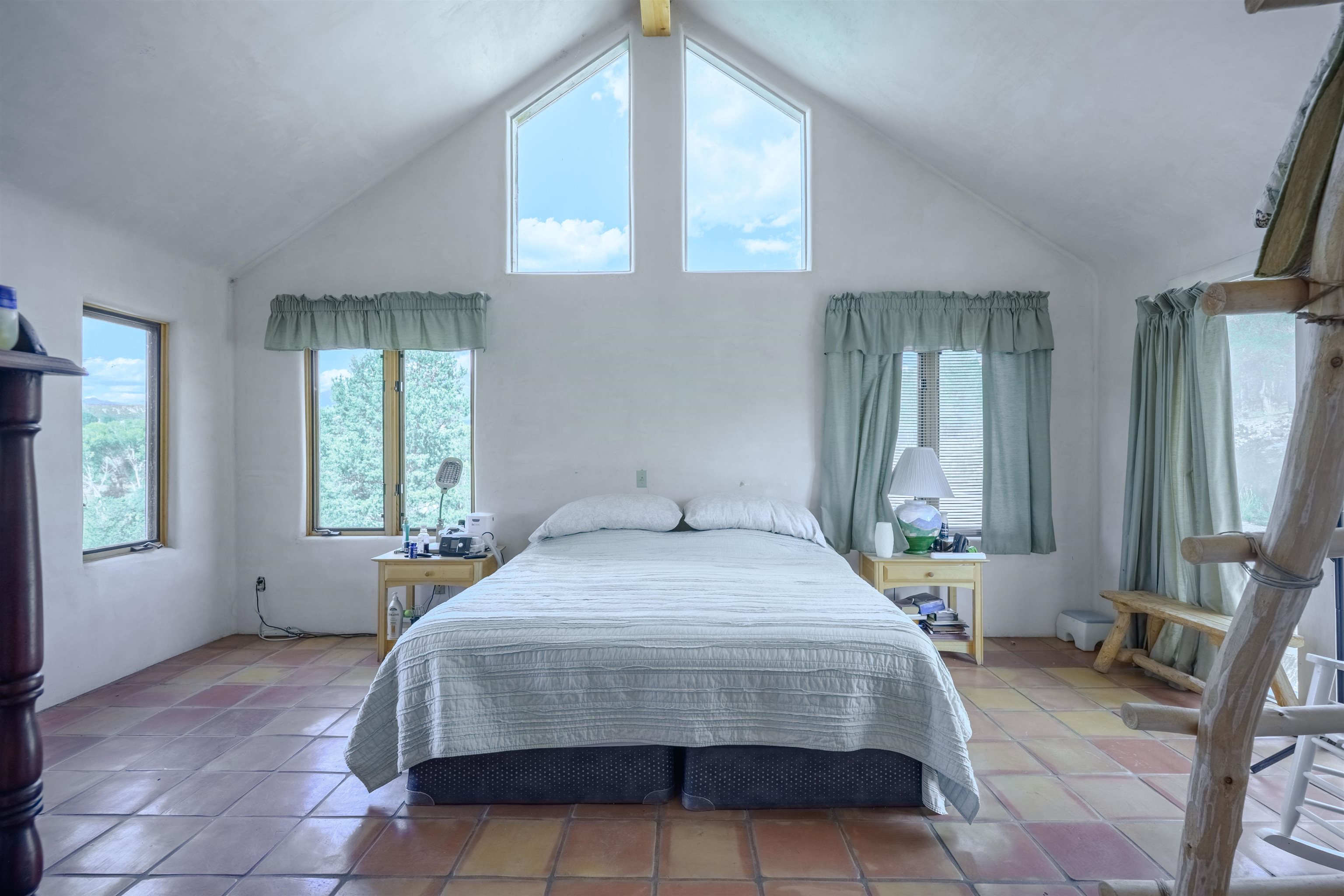 Incredible One-of-a-Kind Residence on the San Cristobal Hillside ~ Let me introduce you to this private and perfectly situated property on 3.5 plus acres overlooking the lush San Cristobal Valley. This meticulously overbuilt, contemporary Southwestern style home offers a truly unparalleled living experience, surrounded by tranquil ponds and a picturesque canyon. The property is a haven for wildlife, with a neighboring water source attracting a variety of animals that can be observed from the expansive, three-quarter wrap-around deck. Step inside through hand-carved doors salvaged from the historic Our Lady of Guadalupe Church in downtown Taos from the 1800s. The interior blends traditional Southwestern touches like Saltillo tile and diamond-finish walls with elegant wood accents. The home's efficient construction boasts a high R-value with 2-inch thick rigid fiberglass insulated walls and 20-inch blown-in ceiling insulation--keeping the space comfortable year-round. Passive solar windows and number one diesel wall heaters provide additional warmth, creating a perfectly inviting atmosphere. The antique wood stove in the kitchen is a great back-up, and can even be used for cooking like they did in the good ol' days. The true highlight of the homes is the ability to carry out true Indoor-Outdoor living, with multiple egress points leading to the grand deck and its awe-inspiring daily views. The primary ensuite, complete with a loft, walk-in closets, and high ceilings, offers a serene retreat. The residence is also ADA compliant, featuring an installed wheelchair lift. The lower level provides a second bedroom, a large living area, and two bonus rooms perfect for a gym, office, den, or perhaps a second separate living space. Back upstairs you will find a sunroom currently being used as an office, but certainly a place to house all your indoor greener.y The property also includes a detached studio space, currently utilized as a sewing room but easily adaptable as an art studio or guest casita equipped electric. A spacious storage room and a south-facing greenhouse for year-round gardening complete the grounds attached to the studio.This exceptional home is conveniently located on the north side of town, offering quick access to Taos Ski Valley, the Rio Grande River, and a variety of trails for hiking, biking, hunting, and fishing galore. Properties of this caliber are a rare find; don't miss the chance to make this extraordinary residence your own.
