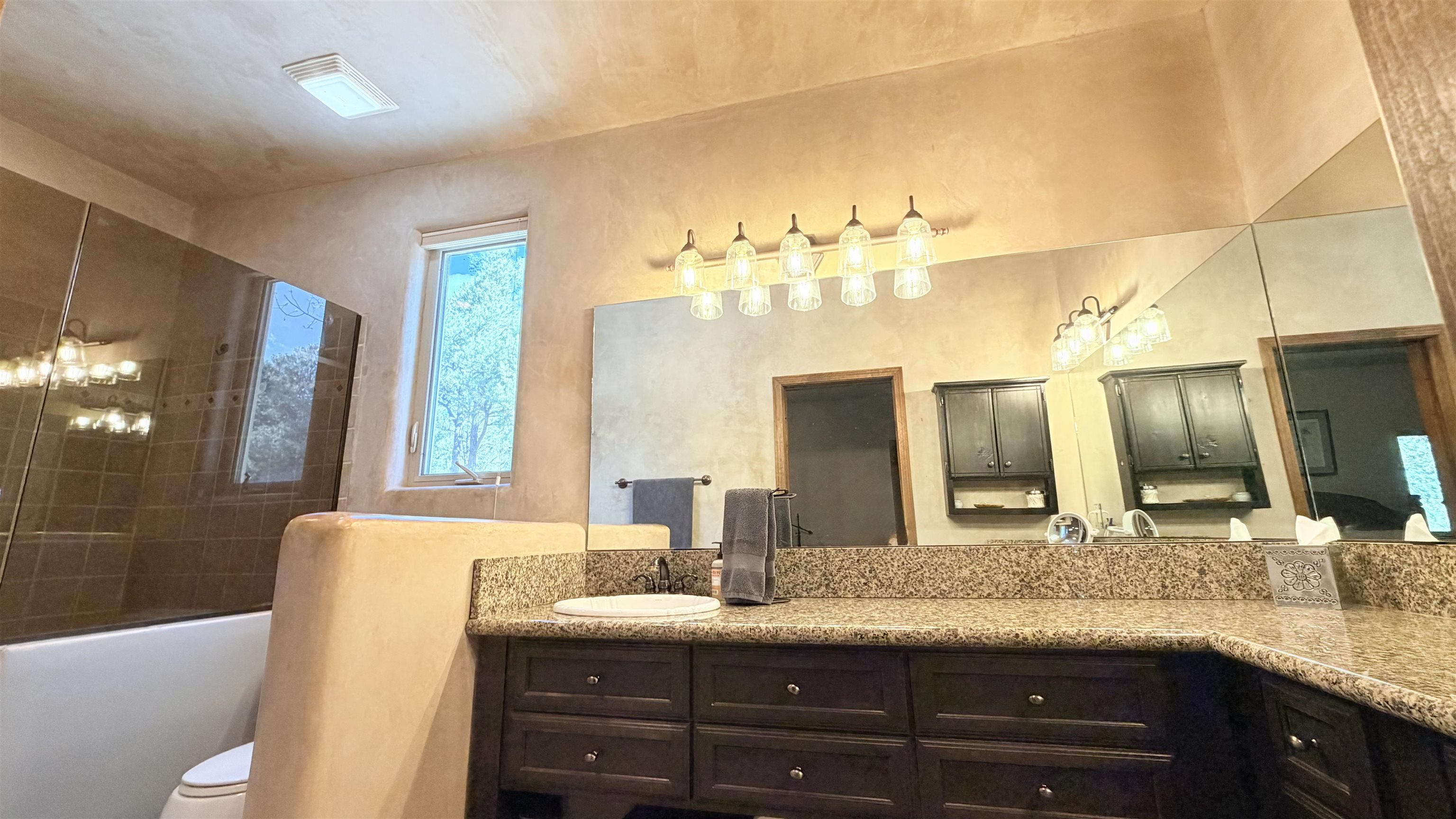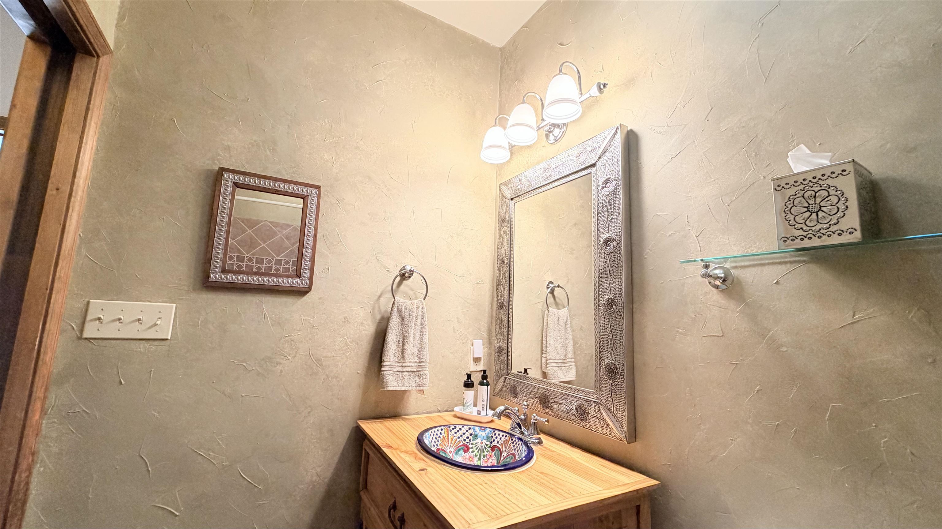154 Gallina Canyon Road is a unique property situated within the Sangre de Cristo Mountains of the Northern Taos Valley. This remarkable residence is perched high among the pine, juniper, and pion trees on two acres of serene mountainous land. This exquisite pueblo-style home is approximately 2,475 square feet, and consists of three-bedrooms, and three-bathrooms. Conveniently, there is a bonus room that can be utilized for various purposes. You decide how this space best suits your needs. This home boasts spacious living, comfort and luxury all in one. Soak in the beautiful diamond finished walls, granite counter tops, stained concrete floors, tall ceilings and beautiful wood beams and vigas which create a beautiful and inviting ambiance. Enjoy family meals from the formal dining area or from the more intimate dining space located off the kitchen. Windows can be found throughout the home bringing in an abundance of natural light and nature. The home features two kivas. One is located in the living room. The second can be found in the master bedroom. Both are perfectly located for those cold winter nights. Outside the home, you are welcomed with nicely manicured landscape as well as a large driveway and yard creating ample space to move around. Notably, this property is the sole Gallina Canyon area property available for sale, featuring a detached two-bay, 45'x45' garage/workshop. The garage is laid upon a concrete foundation and includes a 15'x45' covered parking area, one roll up 12 foot tall door and one single automatic door. One wall within the garage has a built-in workbench with storage and a built-in mini fridge. Additional storage space, shelving and countertops can be found throughout which adds to the conveniences needed. Additionally, there is a sink with a 10 gallon hot water heater and an exterior gutter system that feeds into two water tanks for watering as well as for emergency fire extinguishing purposes. The home benefits from a private domestic well as well as an above ground sprinkler system. This incredible neighborhood brings tranquility, accessibility and exterior beauty to any outdoor enthusiast, with so many amenities surrounding this property. This house is located only 23 minutes from the Taos Ski Valley, 24 minutes from the Rio Grande Gorge Bridge, 13 minutes from the village or Arroyo Seco, 24 minutes from the Taos Plaza and 23 minutes from the Taos Pueblo. We invite you to schedule your showing today to experience in person what this exquisite property has to offer.