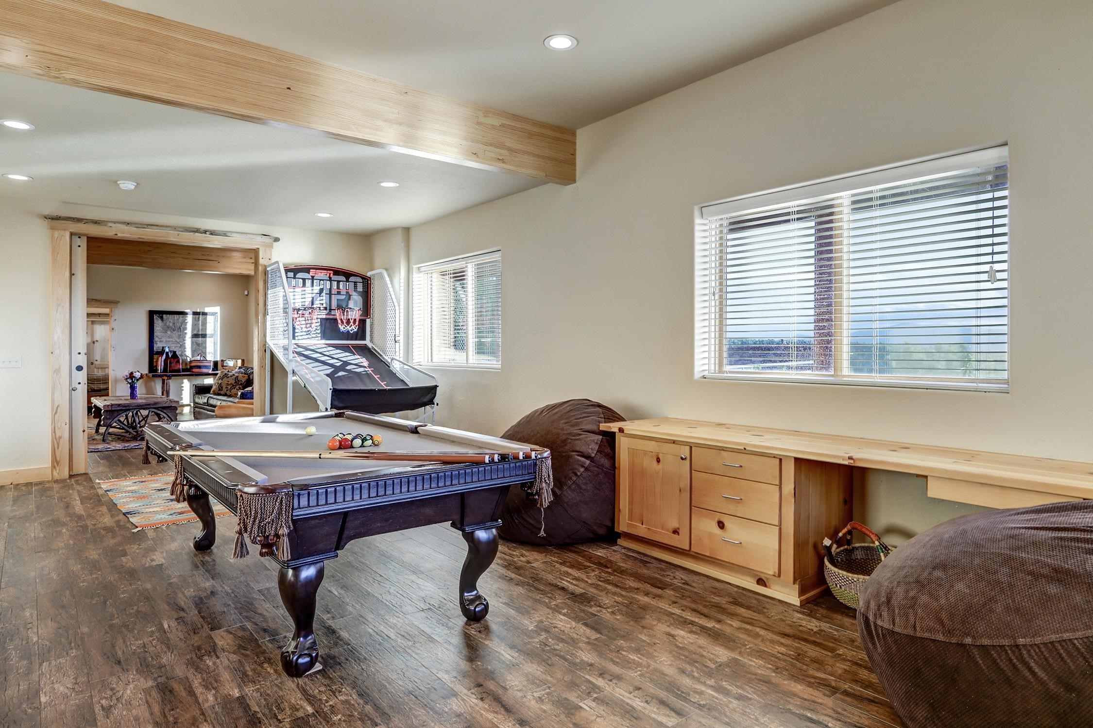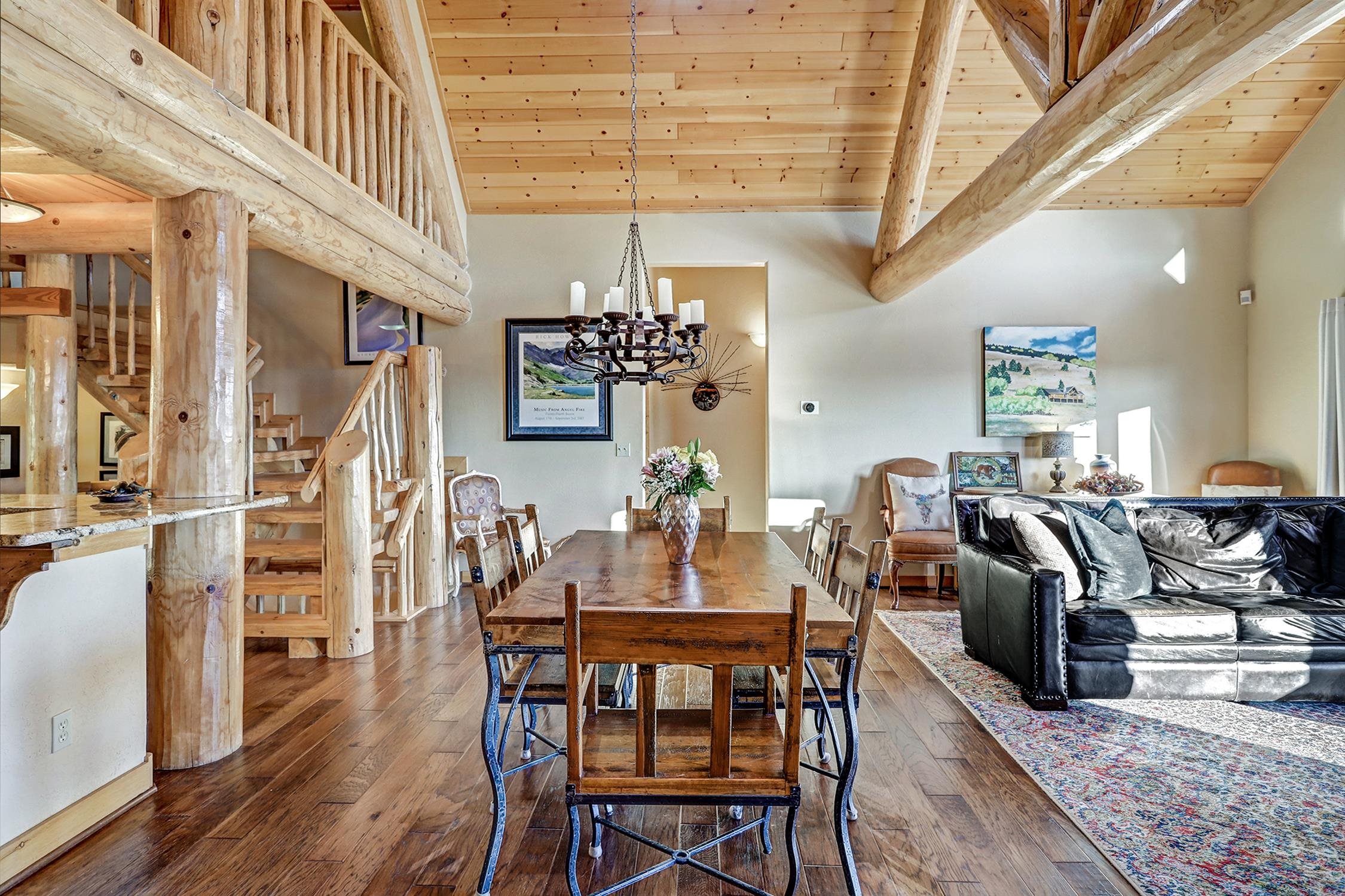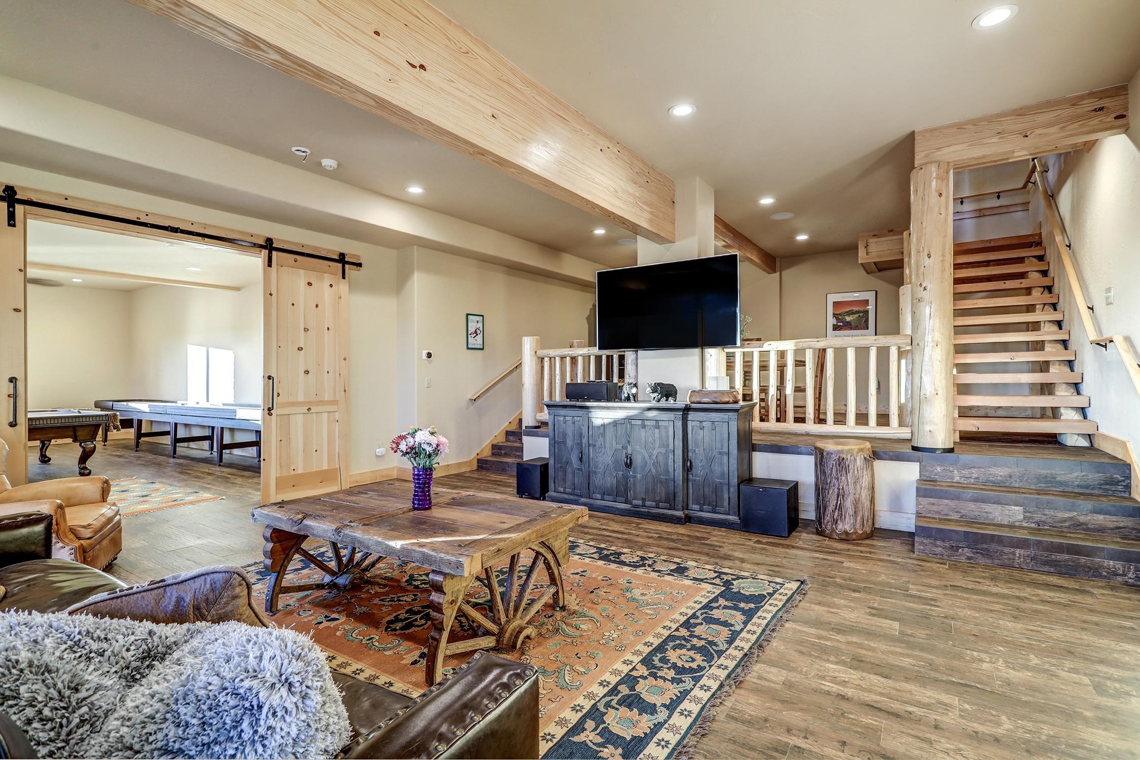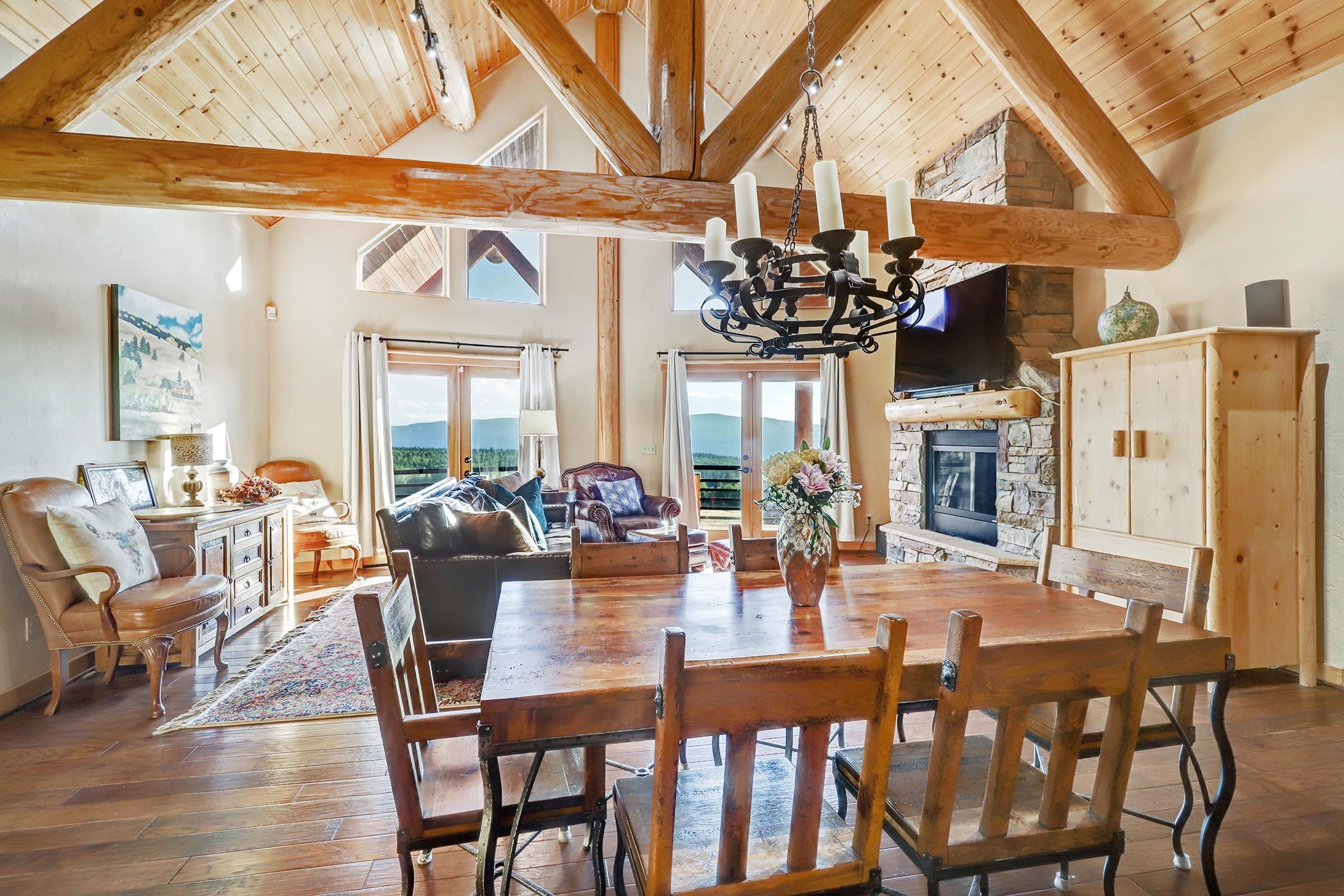 Stunning Custom Log Home with Panoramic Views in the Rocky Mountains! Experience year-round beauty in this exceptional 1.54-acre Rocky Mountain retreat, offering panoramic vistas and meadow views that transform with the seasons. This custom-built log home blends rustic charm with modern luxury, featuring stainless steel appliances, granite countertops, and in-floor radiant heat throughout. Designed for multi-family entertaining, the home includes three primary suites--strategically located for privacy--plus a large lower-level bedroom and a sleeping loft the kids will love. The open-concept living area flows seamlessly onto a spacious deck through two sets of French doors, offering direct access from both the living room and the main-level primary and guest suites. Downstairs, the unparalleled game room is a true showstopper--complete with a shuffleboard table, pool table and electronic basketball game. Adjacent to this entertaining space is a cozy den ideal for watching the game. The lower-level bathroom is a spa-like retreat featuring a freestanding copper tub and a large tile and glass shower--an unforgettable space that blends rustic elegance with luxury. Step outside to your own private oasis: a sunken, round-rock fire pit with circular seating, perfect for evening gatherings under the stars. This is more than a home--it's a destination. Take a moment as you walk through the outdoor living space to truly appreciate how special this property is. AAFPO Membership is $1,695 paid annually (valid May 2025-April 2026)