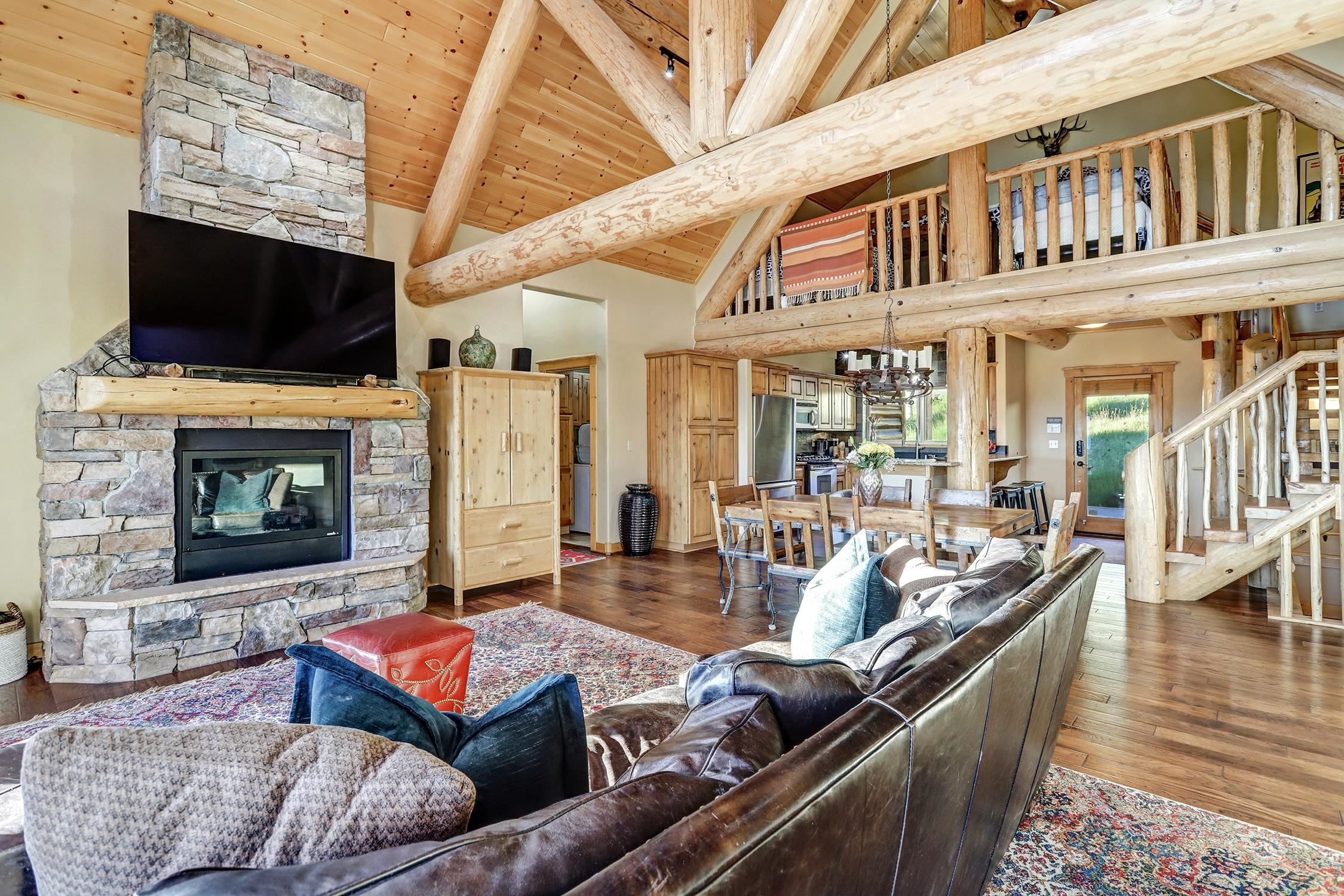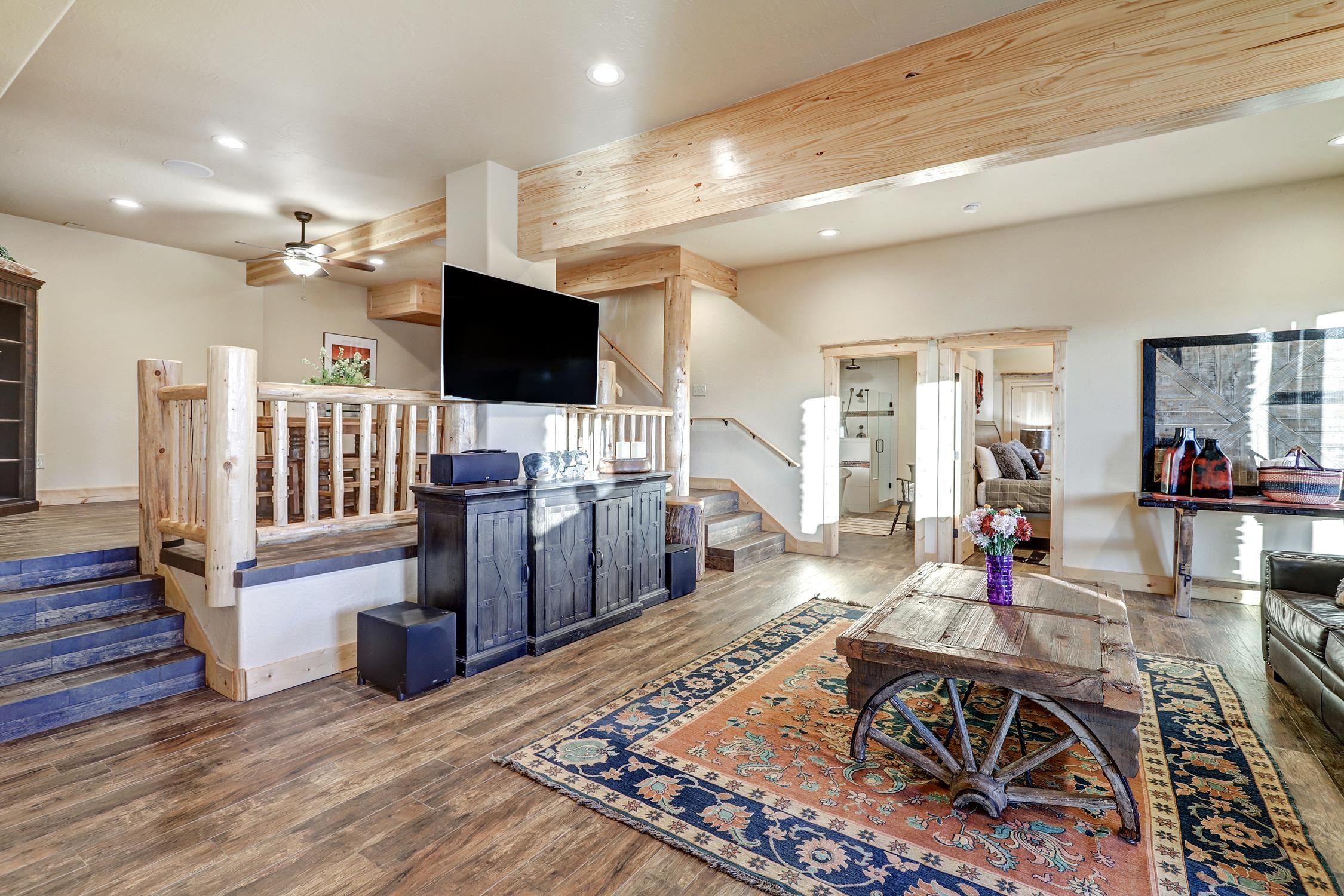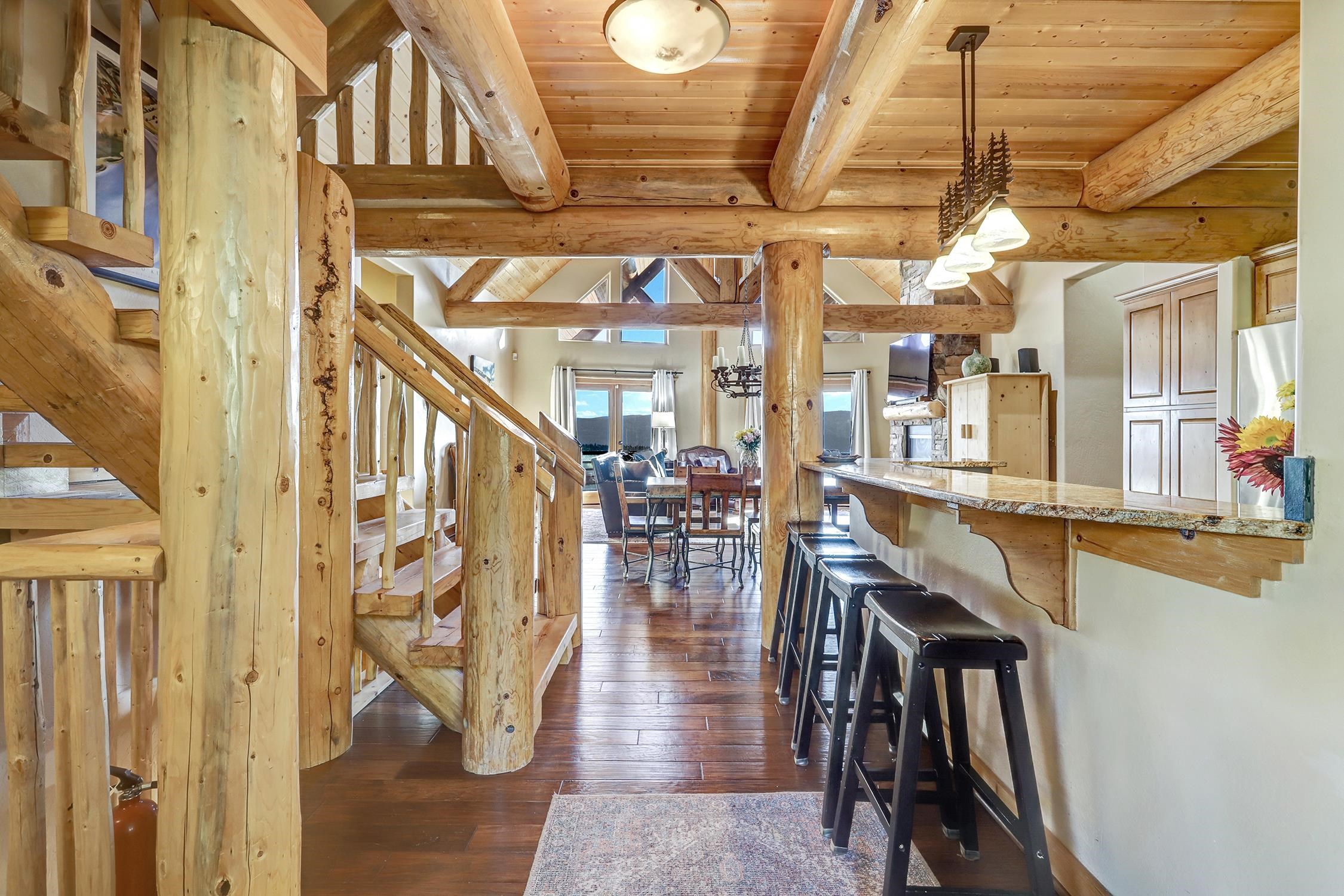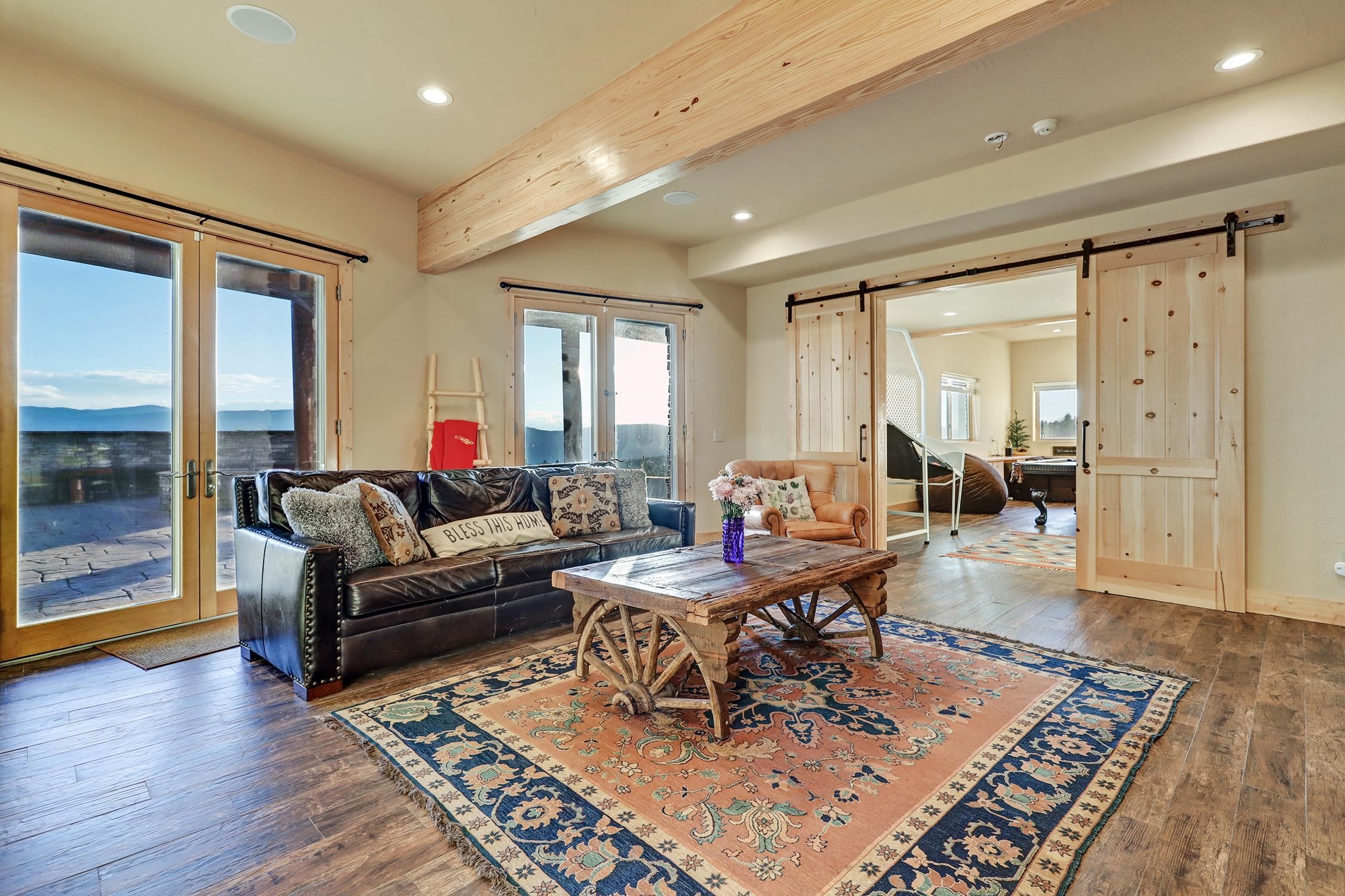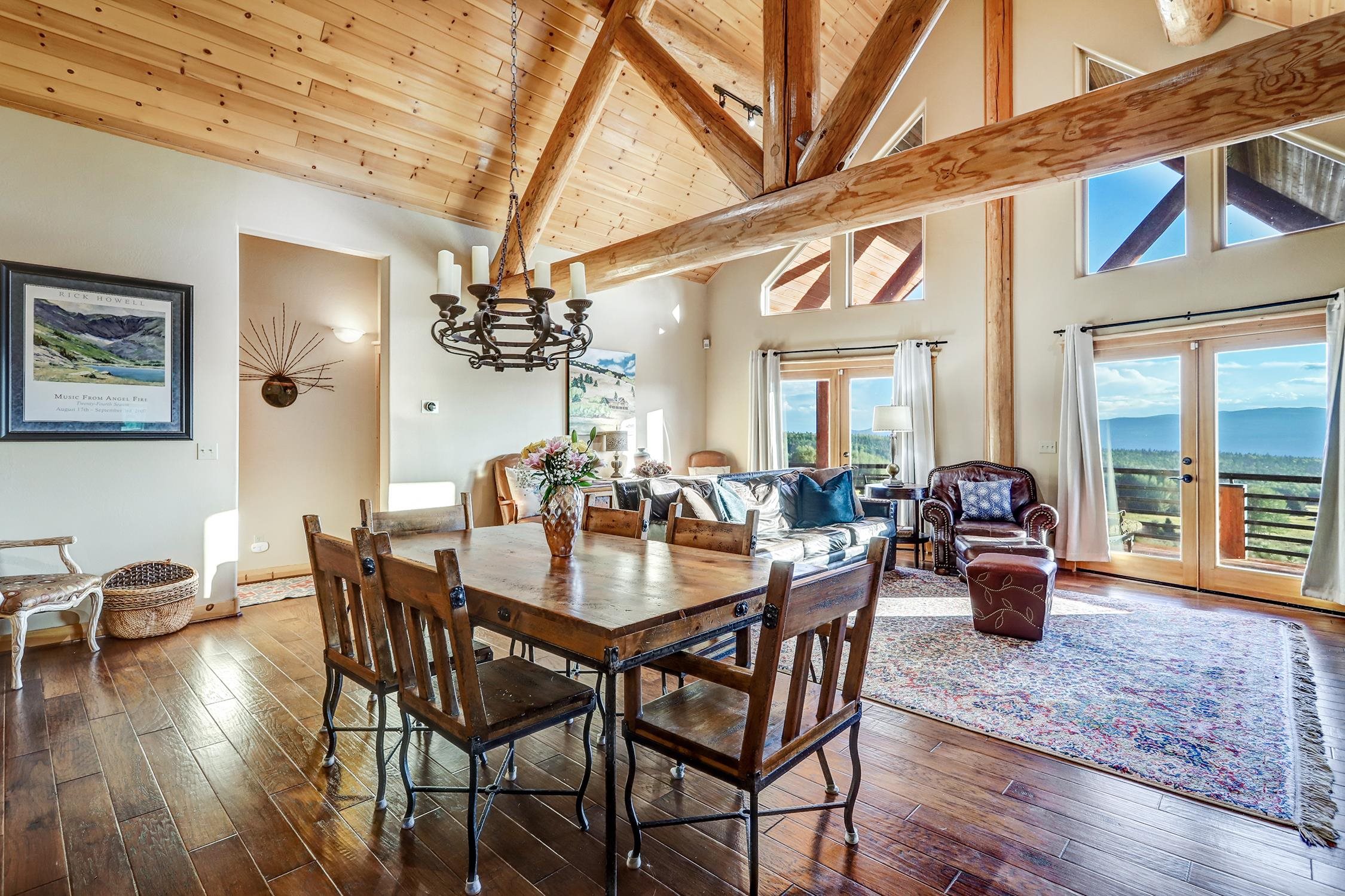 Stunning Custom Log Home with Panoramic Views in the Rocky Mountains! Experience year-round beauty in this exceptional 1.54-acre Rocky Mountain retreat, offering panoramic vistas and meadow views that transform with the seasons. This custom-built log home blends rustic charm with modern luxury, featuring stainless steel appliances, granite countertops, and in-floor radiant heat throughout. Designed for multi-family entertaining, the home includes three primary suites--strategically located for privacy--plus a large lower-level bedroom and a sleeping loft the kids will love. The open-concept living area flows seamlessly onto a spacious deck through two sets of French doors, offering direct access from both the living room and the main-level primary and guest suites. Downstairs, the unparalleled game room is a true showstopper--complete with a shuffleboard table, pool table and electronic basketball game. Adjacent to this entertaining space is a cozy den ideal for watching the game. The lower-level bathroom is a spa-like retreat featuring a freestanding copper tub and a large tile and glass shower--an unforgettable space that blends rustic elegance with luxury. Step outside to your own private oasis: a sunken, round-rock fire pit with circular seating, perfect for evening gatherings under the stars. This is more than a home--it's a destination. Take a moment as you walk through the outdoor living space to truly appreciate how special this property is. AAFPO Membership is $1,695 paid annually (valid May 2025-April 2026)