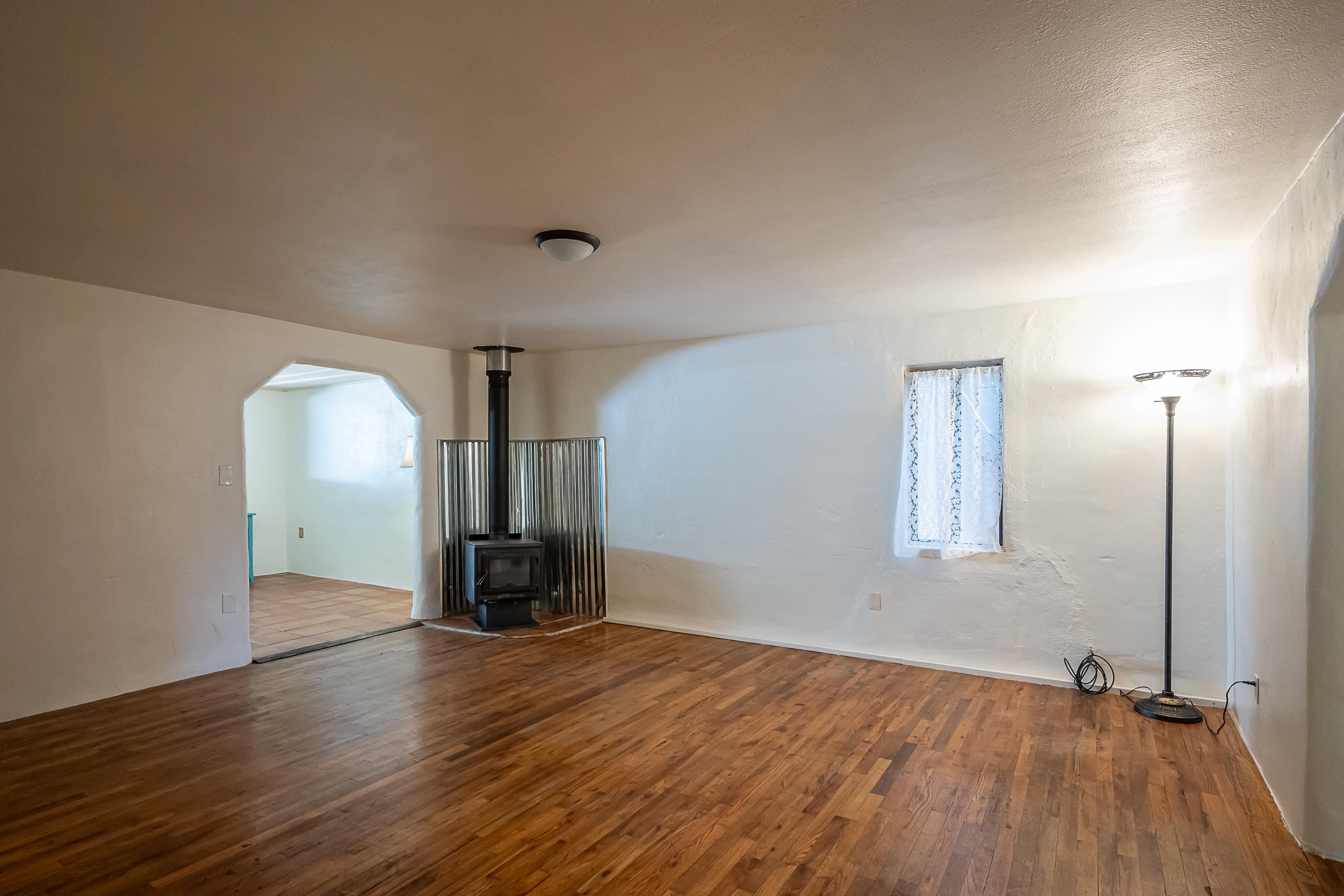Sweet little Bungalow in a lush setting close to the center of town. Located off of Ranchitos on Conrad Lane, this house is move-in ready. There is lots of flexibility in the floorplan- we are marketing it as a 2 bedroom, but there are 2 additional bonus rooms that could be an office, a dining room, a craft/studio room, an extra bedroom , home gym, library, meditation room, whatever suits your needs and wants! Step into a sunny entry room that leads into a large living room with hardwood floors and a cozy woodstove. Beyond that is a bright and cheerful kitchen with butcherblock countertops and a nice amount of storage. There is a laundry room at the back of the house with a washer and dryer and windows that let in natural light. A hallway off the living room leads to the bedrooms and bathroom. The bathroom has a walk-in shower and a copper sink in the vanity. The shower and vanity have colorful Talavera tile. Recent upgrades include new paint, redone sewer line and electrical improvements.