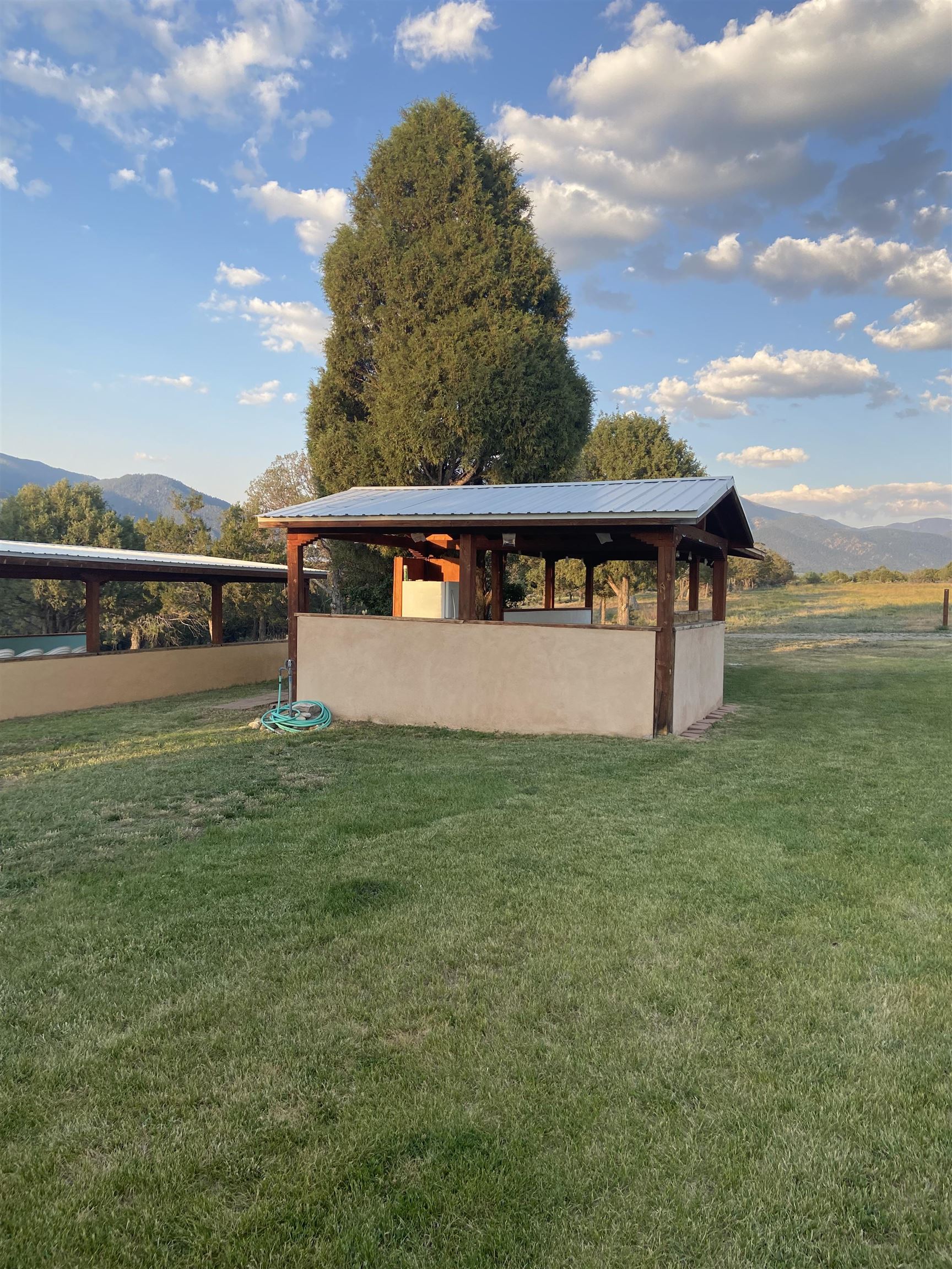 Magic Exists at Los Pino's Park in Northern New Mexico ~ If you're from Northern New Mexico, you likely know ALL about this truly one-of-a-kind property. If you don't know aboutthe magic of Los Pino's, you will when you lay first eyes or first step foot on the Land. Nestled in the shadow of Taos Mountains in Northern New Mexico near Taos Ski Valley, minutes from iconic DowntownTaos, near the Rio Grande river, and close to Taos Ski Valley, you will discover this lush and primarily flat 4.33 acre parcel with a Water Well and Acequia Surface Water Rights with an impeccable outdoor event space infrastructure. Comes with it, an astounding reputation, and plenty of potential. Los Pino's Park is special, and for decades has served as a lively, and vibrant event space, in Nature, for guests to celebrate all of life's importantmoments under bright stars and well lit gazebos, around the custom bar, that sit atop solid concrete pads all powered by buried electric and water lines surroundedby five (5) hydrants. All of this may be left as is while continuing to host Special Events, such as, weddings, family reunions, anniversaries, graduations, birthdays, and so on... Perhaps you take it up a notch to entertain clients and host corporate functions with plenty of space for parking, or building multiple units for retreats. Better yet, you make this your own private sanctuary in the NM High desert, design your dream home to incorporate the already developed infrastructure in place, with a giant yard for pet's to roam freely, and the children to play on nearly four and a half acres. It doesn't get much better than this, don't miss the opportunity!