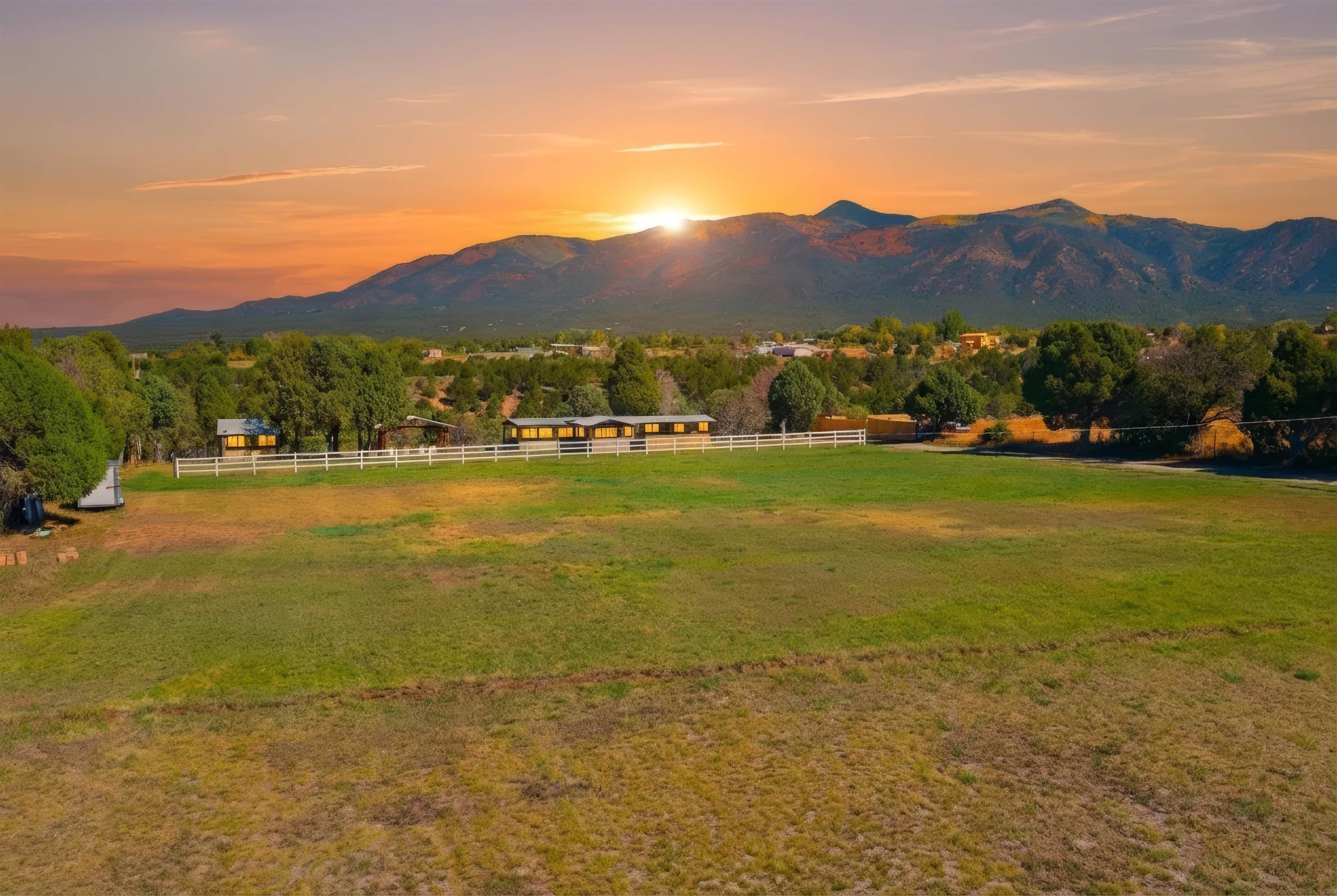Magic Exists at Los Pino's Park in Northern New Mexico ~ If you're from Northern New Mexico, you likely know ALL about this truly one-of-a-kind property. If you don't know aboutthe magic of Los Pino's, you will when you lay first eyes or first step foot on the Land. Nestled in the shadow of Taos Mountains in Northern New Mexico near Taos Ski Valley, minutes from iconic DowntownTaos, near the Rio Grande river, and close to Taos Ski Valley, you will discover this lush and primarily flat 4.33 acre parcel with a Water Well and Acequia Surface Water Rights with an impeccable outdoor event space infrastructure. Comes with it, an astounding reputation, and plenty of potential. Los Pino's Park is special, and for decades has served as a lively, and vibrant event space, in Nature, for guests to celebrate all of life's importantmoments under bright stars and well lit gazebos, around the custom bar, that sit atop solid concrete pads all powered by buried electric and water lines surroundedby five (5) hydrants. All of this may be left as is while continuing to host Special Events, such as, weddings, family reunions, anniversaries, graduations, birthdays, and so on... Perhaps you take it up a notch to entertain clients and host corporate functions with plenty of space for parking, or building multiple units for retreats. Better yet, you make this your own private sanctuary in the NM High desert, design your dream home to incorporate the already developed infrastructure in place, with a giant yard for pet's to roam freely, and the children to play on nearly four and a half acres. A virtual home is in the photos to spark your creativity. It doesn't get much better than this, don't miss the opportunity!
