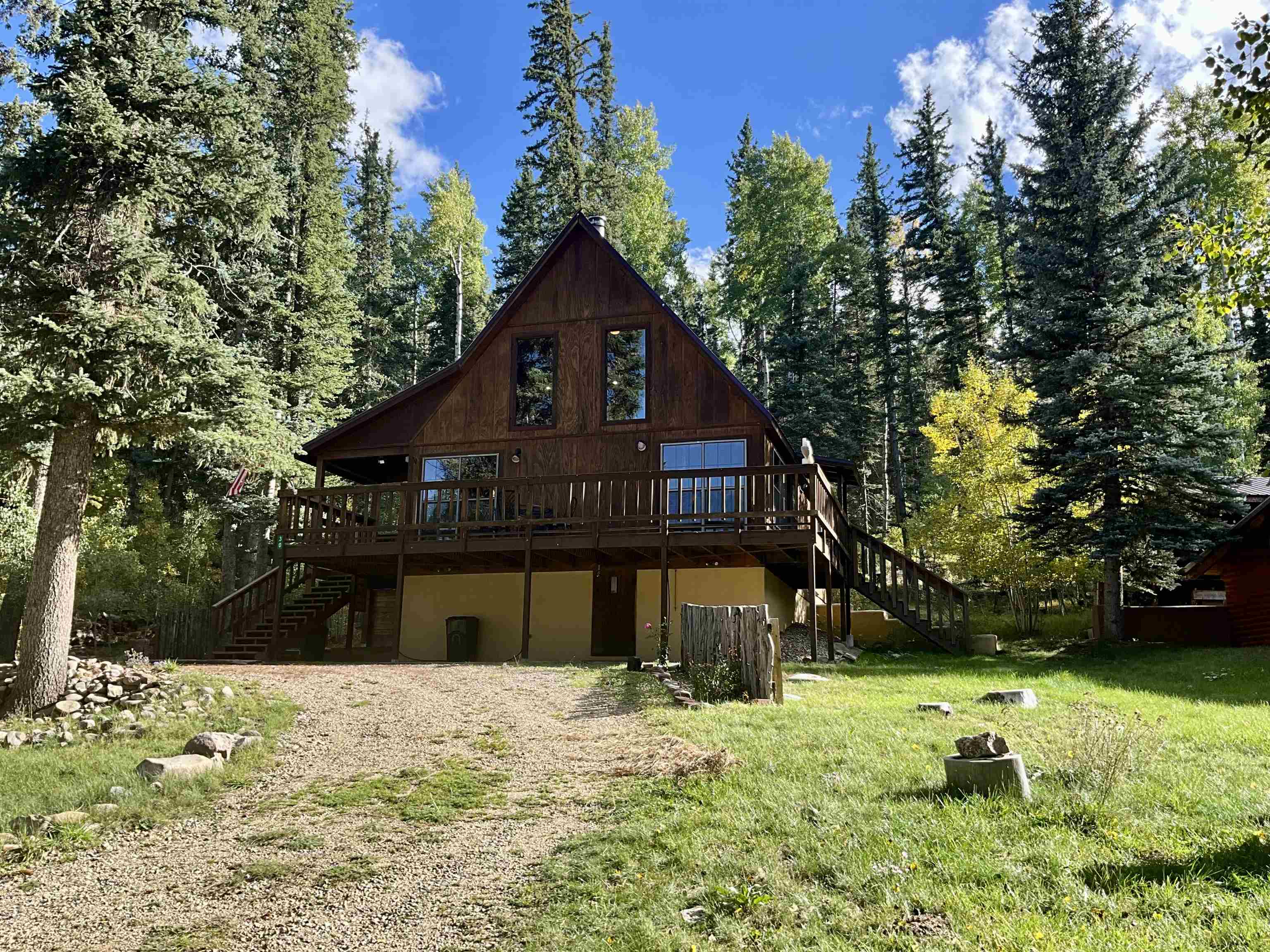 After a long day on the hunt from the national forest around the corner, return to the comfort of your mountian home. The open living area features a wood fireplace, vaulted ceilings, and windows that frame the mountainous outdoors. Step onto the expansive decks to take in the crisp Taos air and keep an eye in the natural landscape where game wind through to surrounding forest. The home offers multiple bedrooms, a spacious kitchen and dining area for hearty meals. and plenty of outdoor space for simply gathering with fellow sportsmen. When you're not hunting, enjoy fishing in stocked ponds, hiking forest trails, or playing a quiet round on the 9-hole Valle Escondido course located in the Valle Escondido golf community or enjoy a snack and drink at the clubhouse. One other detail that could save some money in your pocket, the loan is assumable at rate of 3.1%!!! Located just minutes from Taos, you'll have easy access to supplies, dining, and year-round adventure -- but always return to the peace and privacy of your hunting basecamp.