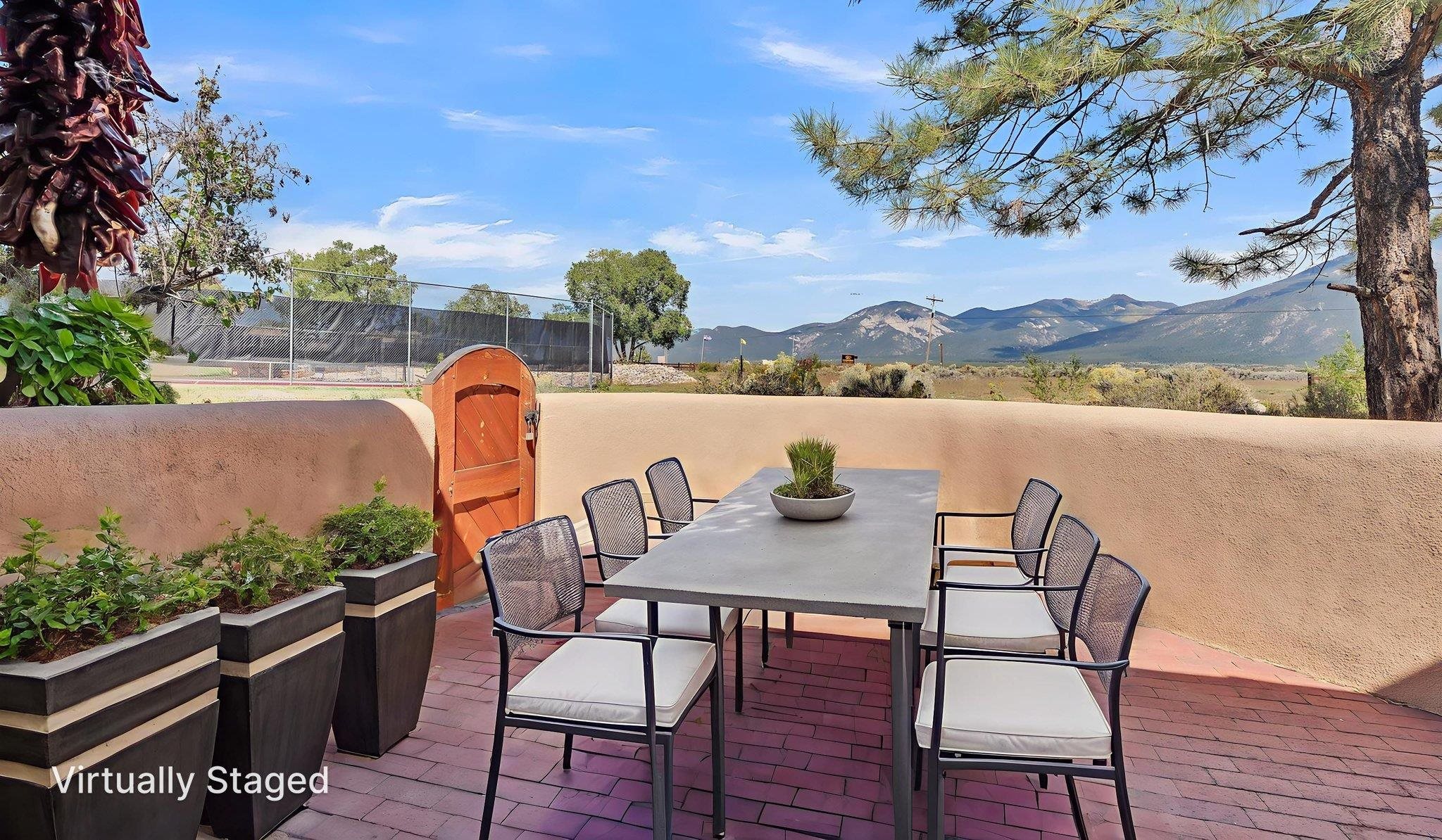 Modern Comfort and Mountain Views in El Prado, NM ~ This beautifully renovated and spacious 2-bedroom, 3-bath pet friendly condo at the well-located Quail Ridge Resort is perfect for full time, or part time resort-style living. The open living and dining areas flow seamlessly into a classy updated kitchen and bathrooms, all thoughtfully redesigned with modern materials for a fresh, welcoming feel. Three Southwest style fireplaces (2 wood, 1 gas) are ideal for creating a cozy environment, and relaxing around after a long day on the slopes. The unit also possesses very special artistic and hand-carved accents that ad to the rich charm of the home and short term rental guests will adore. Step out onto the large patio overlooking the tennis courts, with direct unobstructed views of Taos Mountain and Wheeler Peak. This versatile unit is perfect for long-term enjoyment or as a lucrative long term rental, complete with several convenient storage closets for all your gear. These units are versatile and can easily be used as an income producing property with one, or two lock-off units and ADA access. A washer and dryer are included, adding to the turn-key appeal. Enjoy all the Quail amenities with Low HOA dues, including snow removal, trash service, tennis, pickleball, swimming, and a hot tub. The onsite restaurant is a local favorite, known for the best breakfast burritos in Taos! Some photos have been virtually staged to spark creativity. With easy access to the Town of Taos, Taos Ski Valley, and the Rio Grande River, this condo offers an unbeatable blend of location, style, and comfort for glorious Taos living.