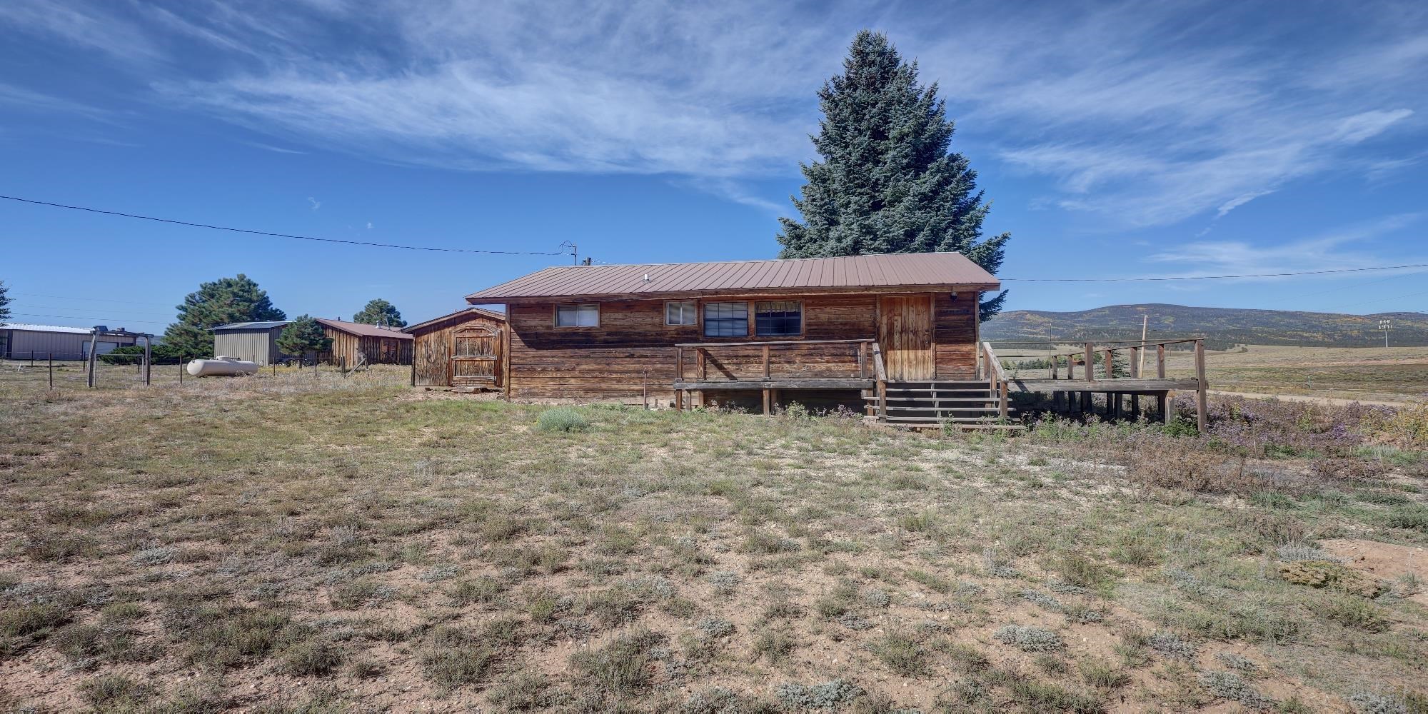 Charming and cozy, this 1 bedroom, 1 bath cabin in Eagle Nest, NM offers the perfect mountain getaway. Conveniently located just off Highway 64, the property provides easy year-round access while still maintaining a peaceful setting. From the porch and windows, enjoy beautiful views of the surrounding mountains and fresh alpine air. The cabin's inviting layout makes it ideal for a full-time residence, vacation retreat, or rental opportunity. With its great location in the heart of the Enchanted Circle, you'll be just minutes from Eagle Nest Lake, Angel Fire, and Red River, with endless opportunities for outdoor recreation. Nice flat lot with room to expand the home.