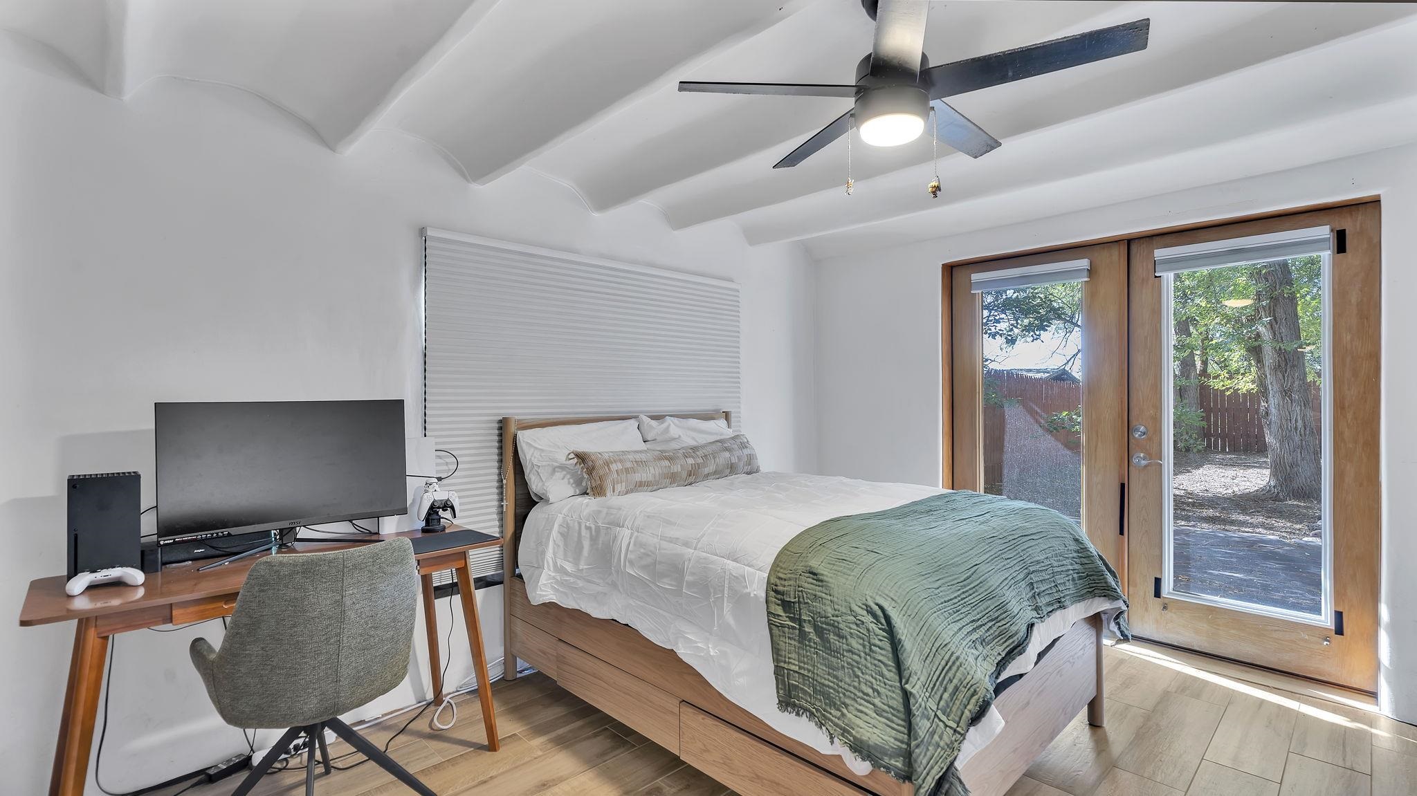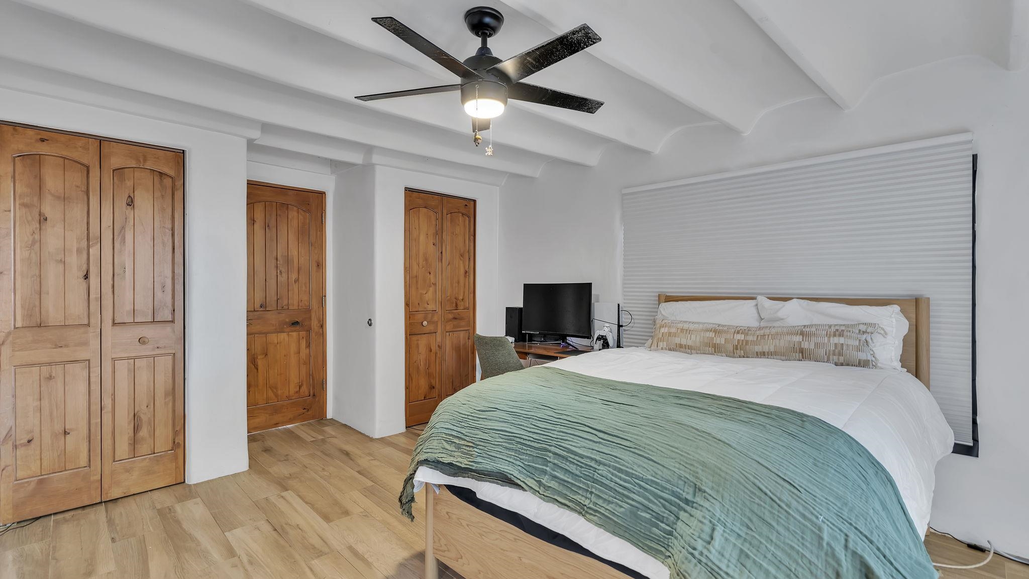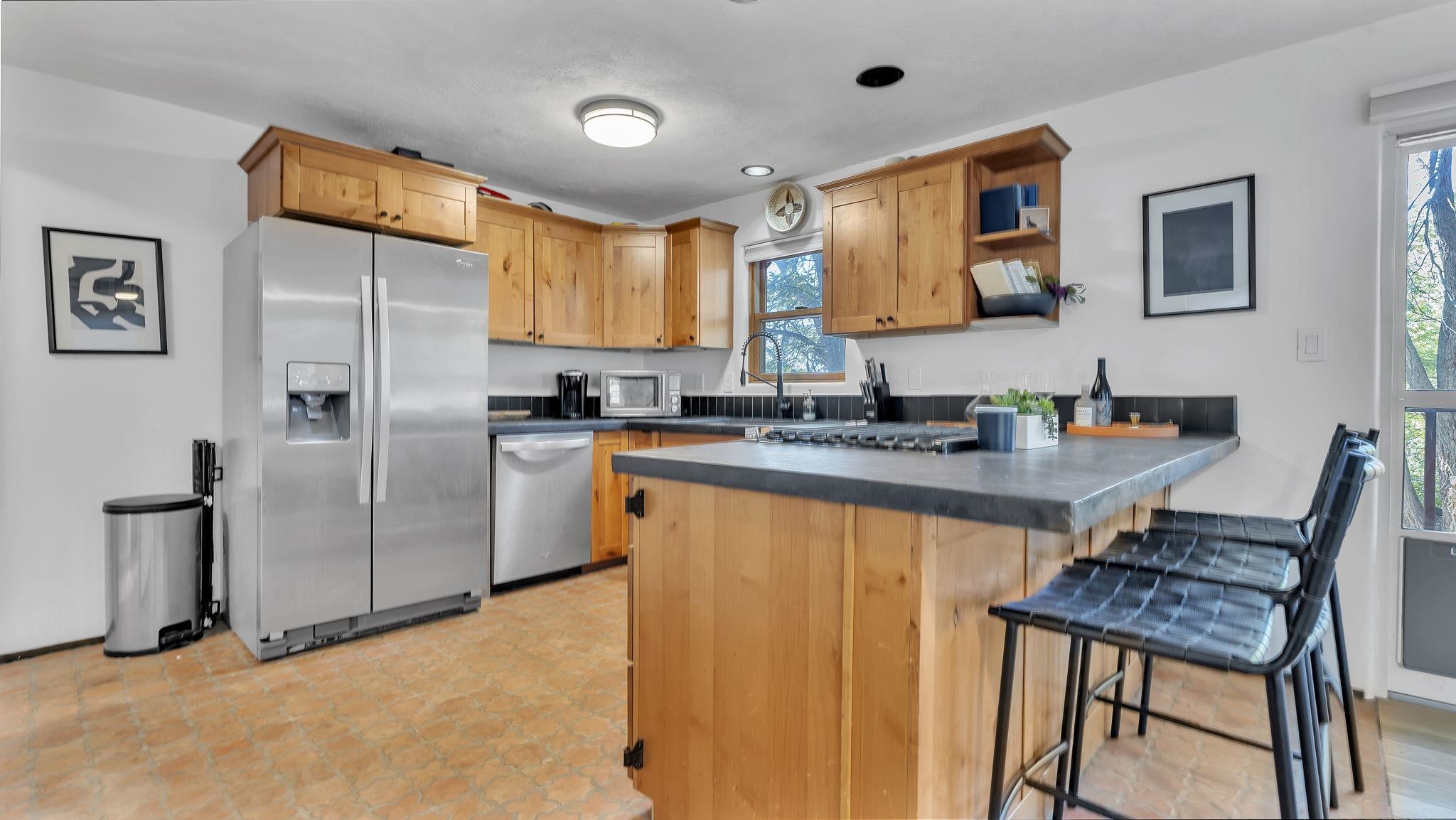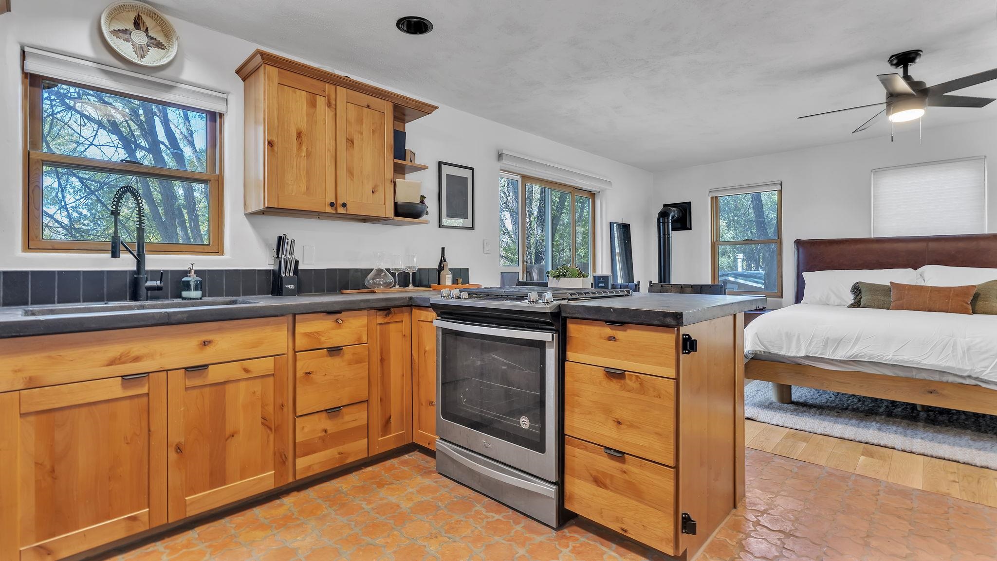 True Taos Charm on Montoya Street Near Taos Plaza ~ This authentic, beautifully remodeled adobe home is a downtown Taos masterpiece, blending historic character with modern luxury. Located just a short stroll from the Taos Plaza, this 1940s-era property features a main house with 3 bedrooms and 2 baths, plus a valuable detached upstairs studio apartment perfect for rental income or a private guest space. Inside the main home, the renovation is meticulous. High-end fixtures complement classic Southwestern style, including elegant oiled pine beams and corbels on the ceilings, and flagstone and wood-inspired tile floors. The kitchen is a chefs desire with stainless steel appliances, thoughtful space, and ample storage. The central living space with extra high ceilings is where you make year-round memories with family and friends. Spacious bedrooms are bathed in natural sunlight, and two offer direct access to the lush, shaded outdoor patios. The home sits on a large, landscaped lot that borders Couse Pasture, providing a fenced backyard ideal for pets to roam and children to play. These spaces, along with the thoughtful layout of the home are designed for entertaining guest for all the holidays and Park Concerts. At this location you are also close to the chic and newly restored Hotel Willa where you will experience some of the finest hospitality and dining in the Southwest. This property is a rare "Old Taos" gem, offering the ultimate walkability and privacy. Owning a home here means immersing yourself in the many special features of Taos, New Mexico. Nestled against the dramatic backdrop of the Sangre de Cristo Mountains, Taos is renowned for its vibrant art scene, with world-class galleries and museums around every corner. It's a haven for outdoor enthusiasts, offering year-round recreation from skiing and snowboarding at Taos Ski Valley to hiking, mountain biking, hunting, fishing, and whitewater rafting on the Rio Grande. The town is rich with history and culture, and offers a unique blend of Native American, Hispanic, and Anglo traditions. In Taos you'll find a community that values both the high desert's serene beauty and a lively, independent spirit. At this home you will find the comfort and peace you've been looking for in our majestic high desert