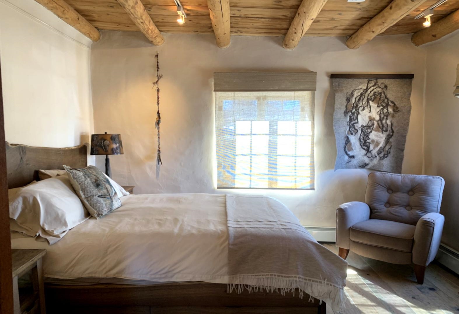 Quintessential Taos! Beautifully renovated historic 1800's adobe in the heart of town. This charming Bent Street home is on the National Register of Historic Places and is just steps away from Taos Plaza, Kit Carson Park, and Taos Inn as well as fine dining, galleries, shops, culture, and entertainment. Feel the warmth and history of this spacious 2 bedroom/1 bath property from the comfort of the ample living/dining room area, where family and friends can gather after dinner around one of two wood-burning Kiva fireplaces. The kitchen offers a gas range/oven and a dining counter, perfect for a quick breakfast before heading out to Taos Valley for a day on the slopes. If working from home is a must, this property offers two additional spacious rooms, which could serve as office space, a den, or even an extra bedroom. Fiber optic internet and alarm system, off street parking, and town utilities are included. Watch the sunset from the comfort of your covered porch or patio. If you really want to immerse yourself in the full Taos experience, then don't wait, because this beautiful home with its classic Southwest accents and ambiance will not last!