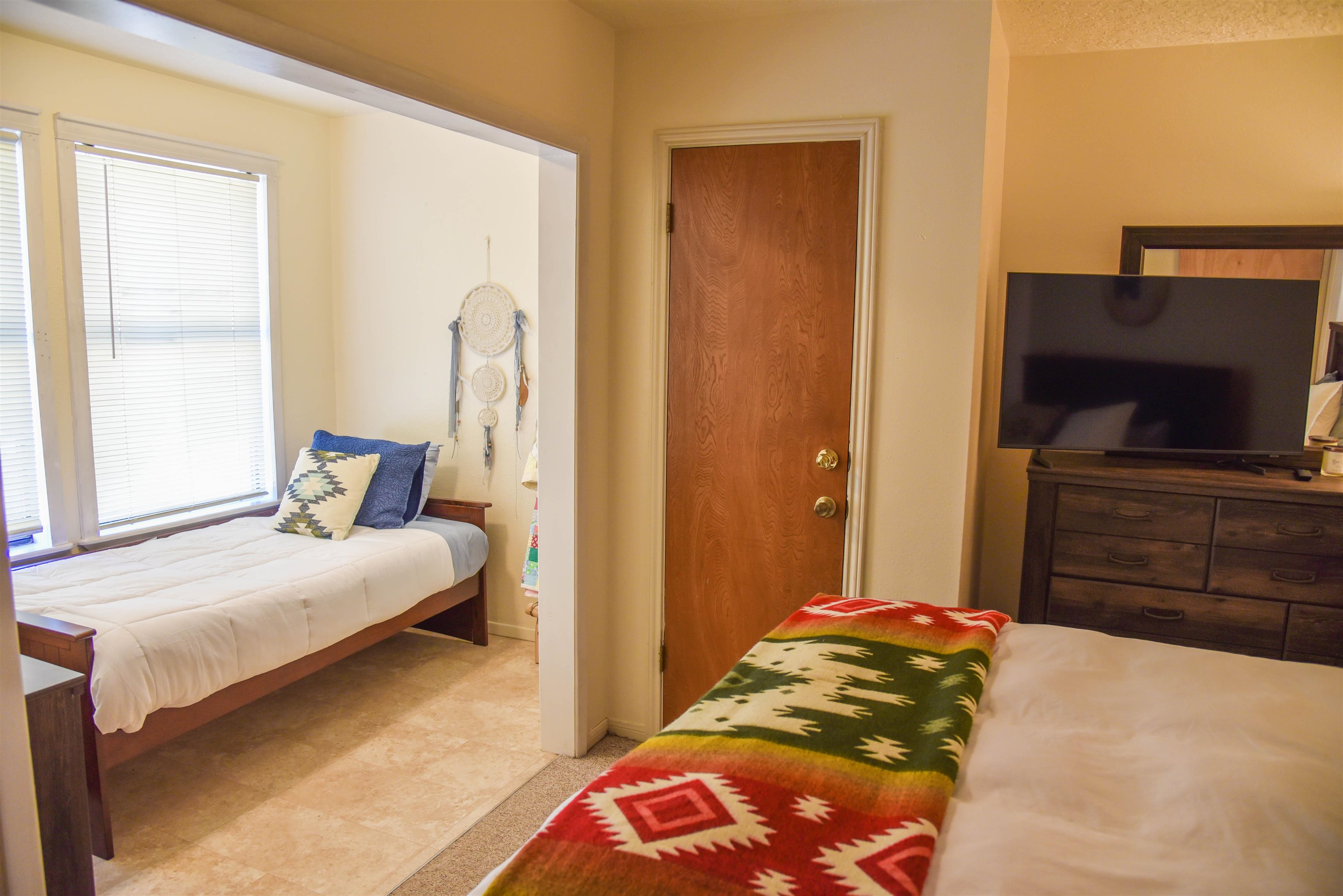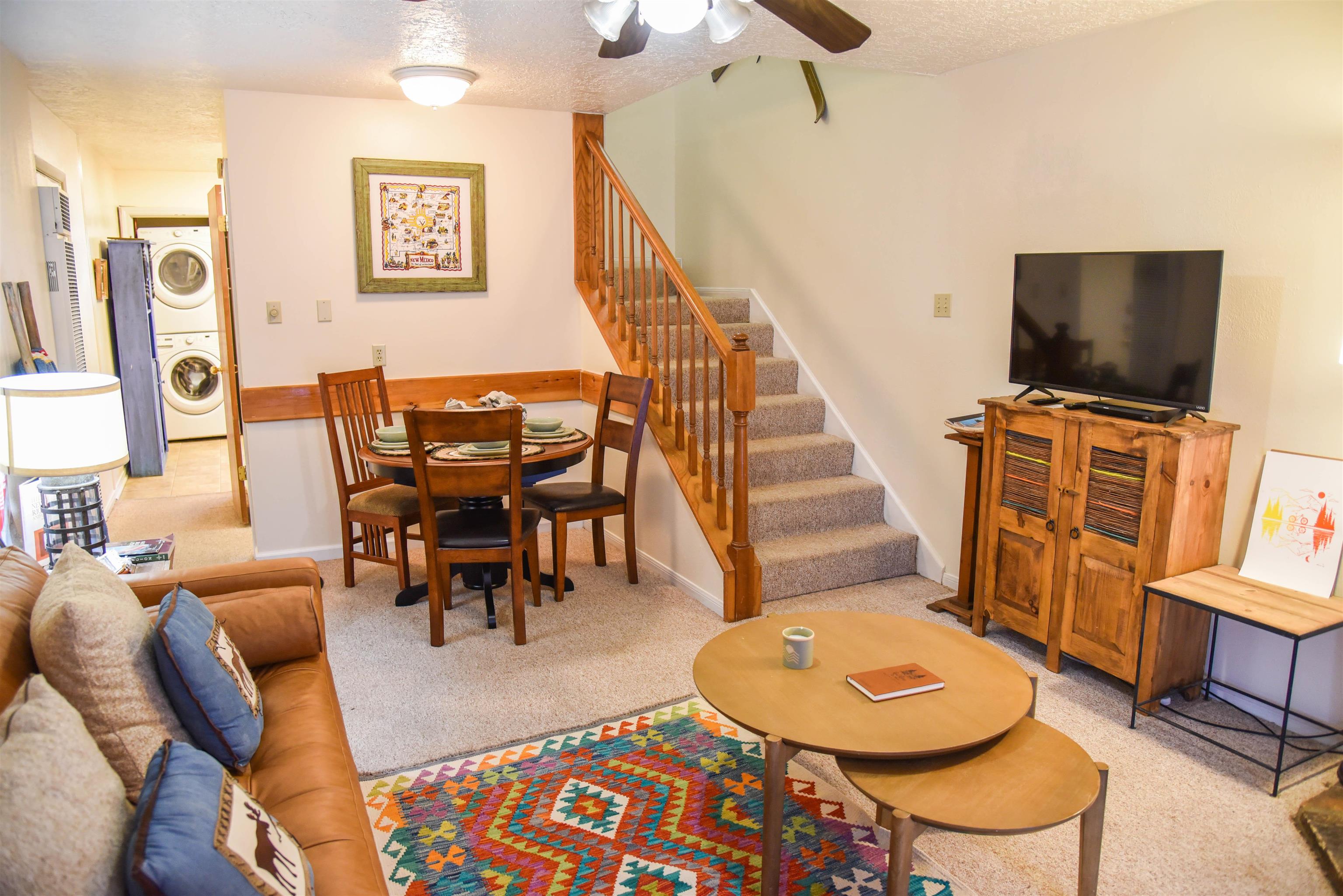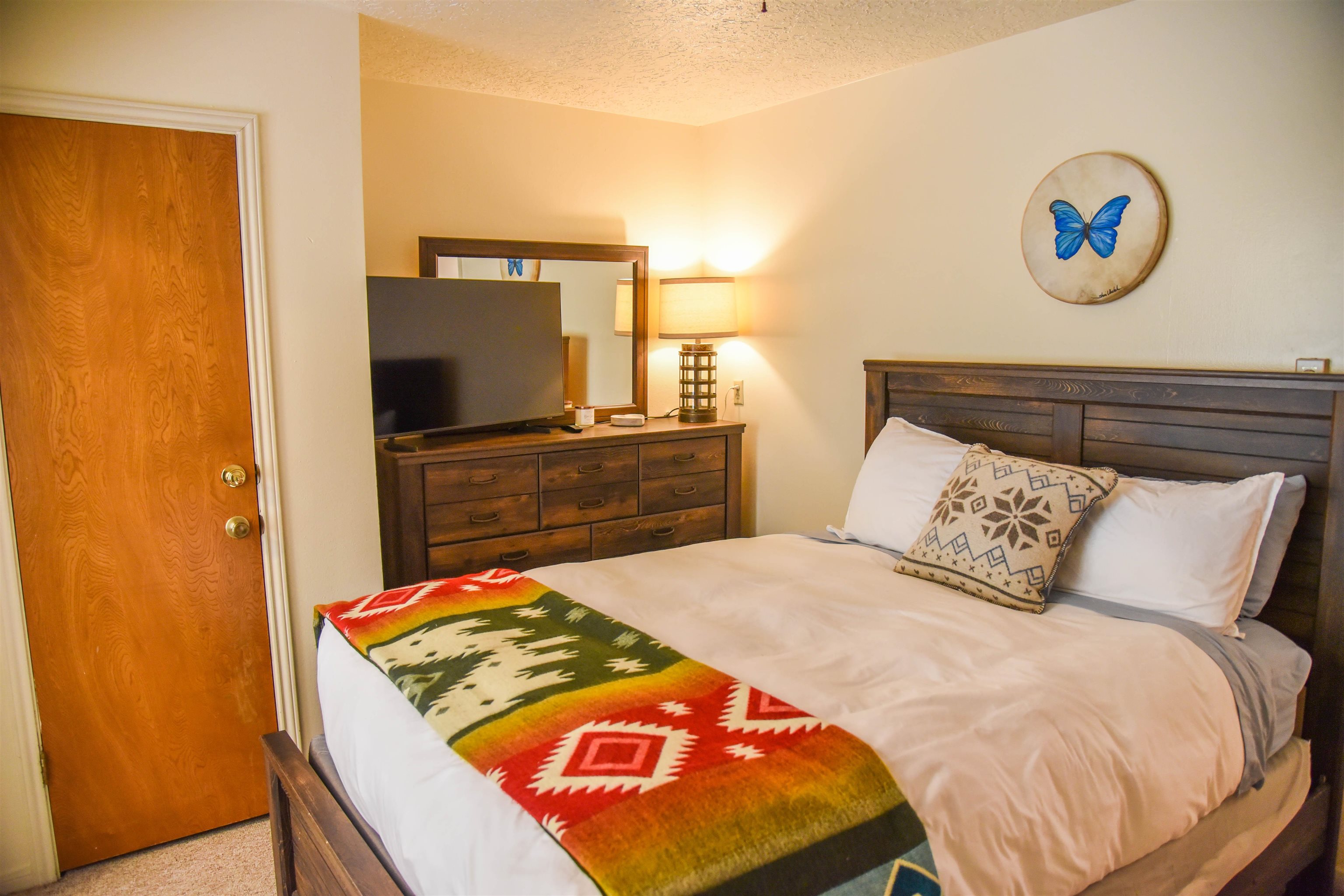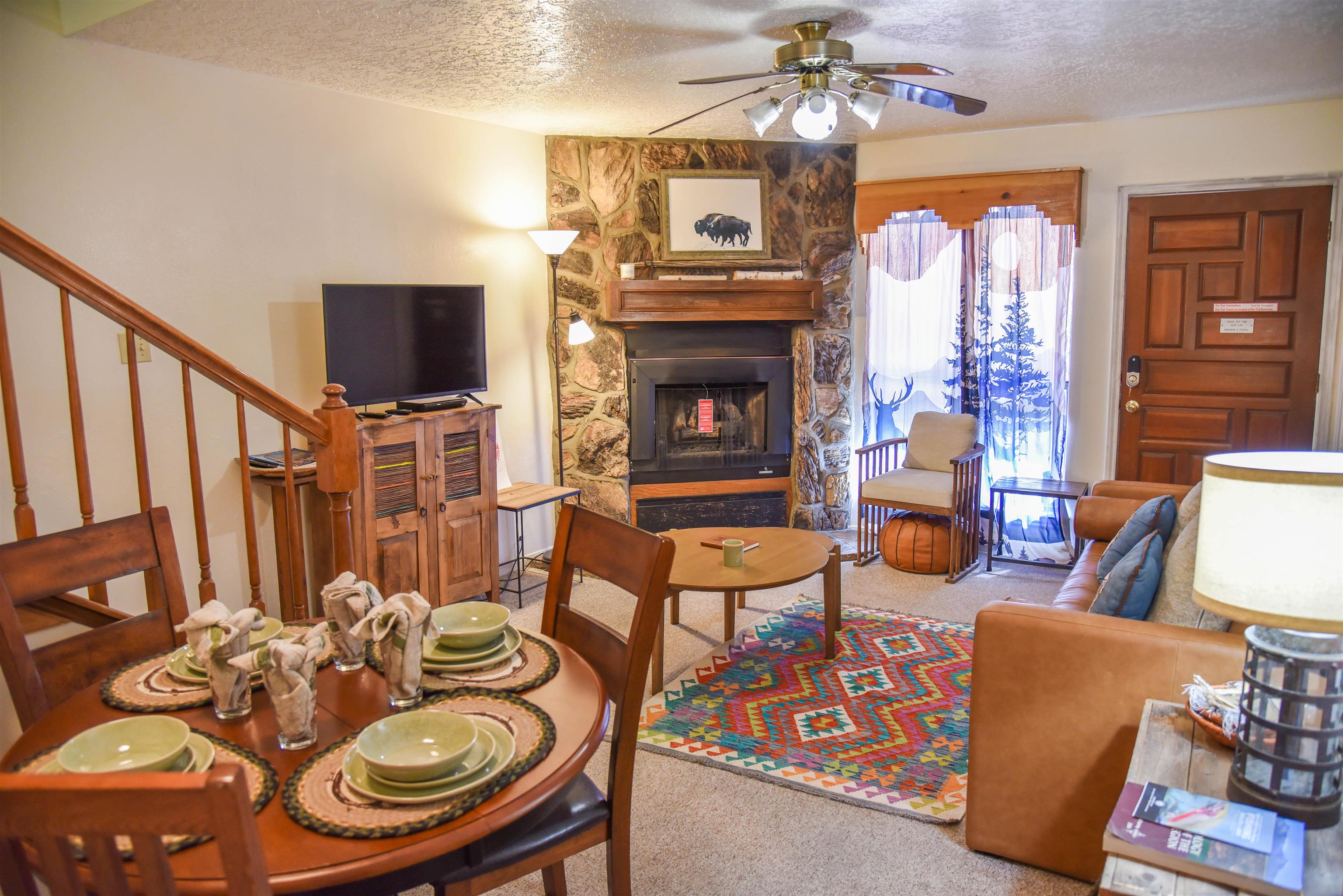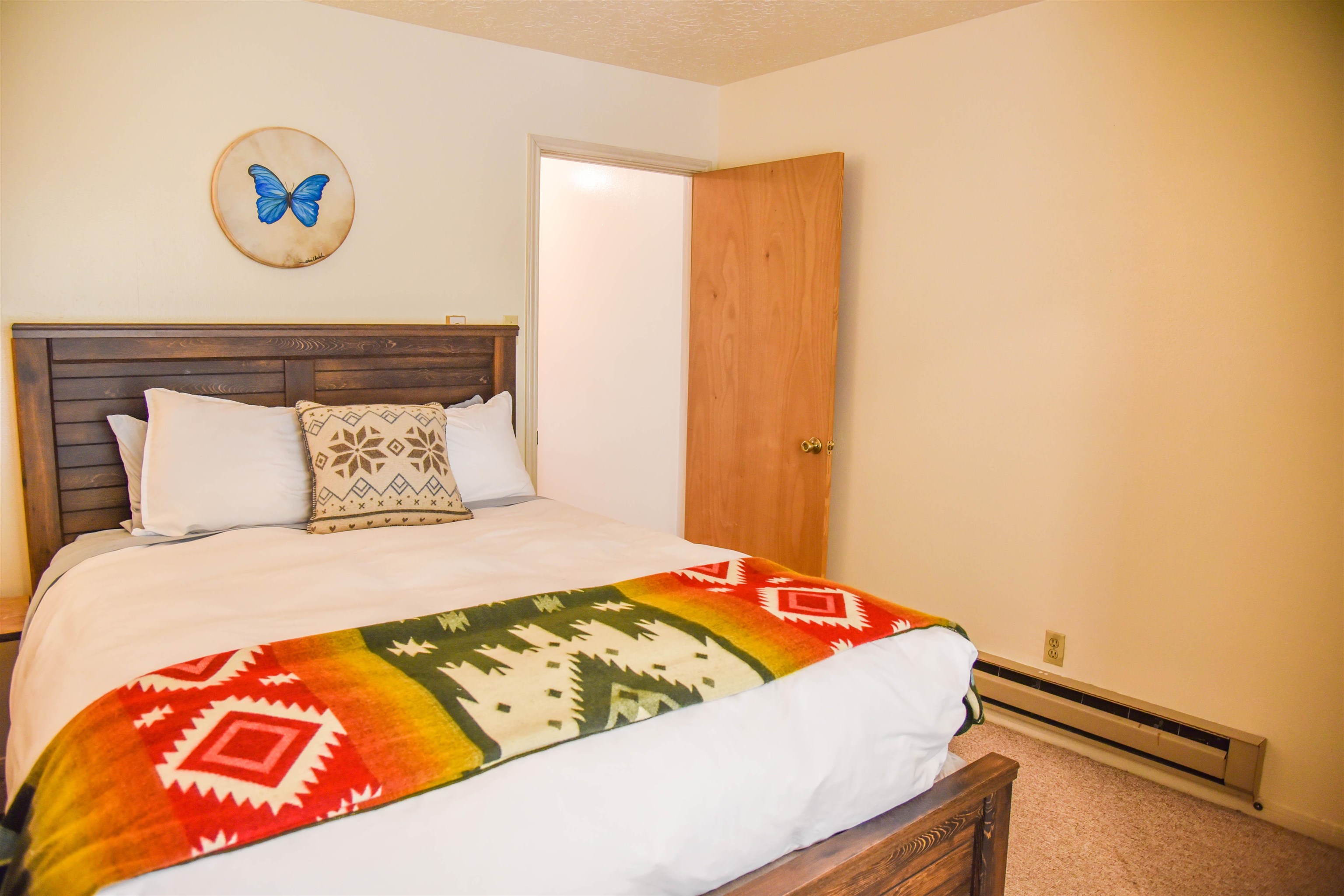Beautiful condo in the quiet Tenderfoot Village neighborhood. This property features 2 bedrooms (the north bedroom has been expanded out for additional sleeping), two full baths, dining off the kitchen, gas fireplace, washer and dryer and much more. This unit has been been recarpeted, repainted, and furnished with all new furniture to give it a very new and cozy feel. There are two hot tubs on the property, Pioneer Creek, a playground and BBQ grills. It's close to all that Red River has to offer! This is a great get-away when you want to use it and can be rented nightly when you're not.