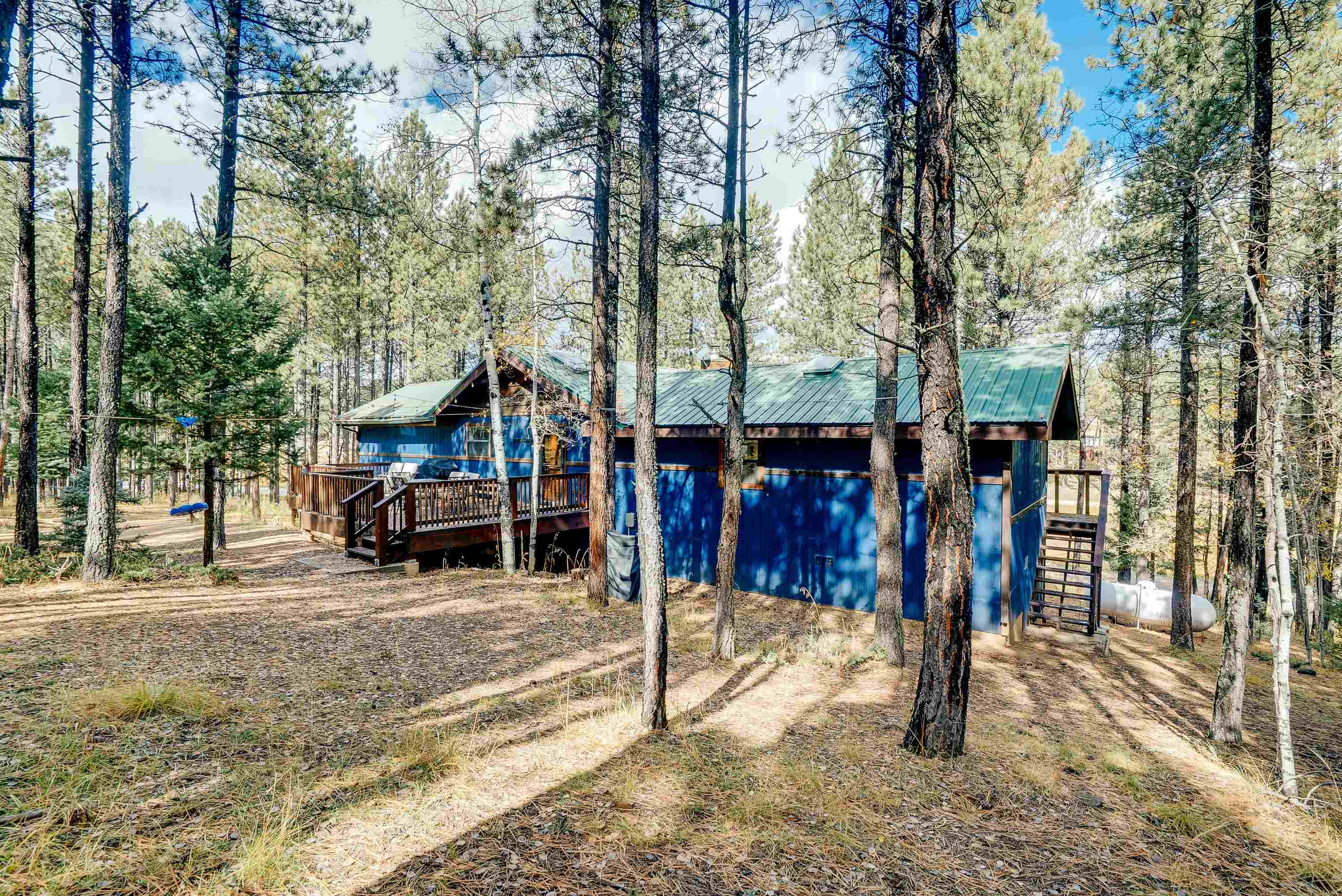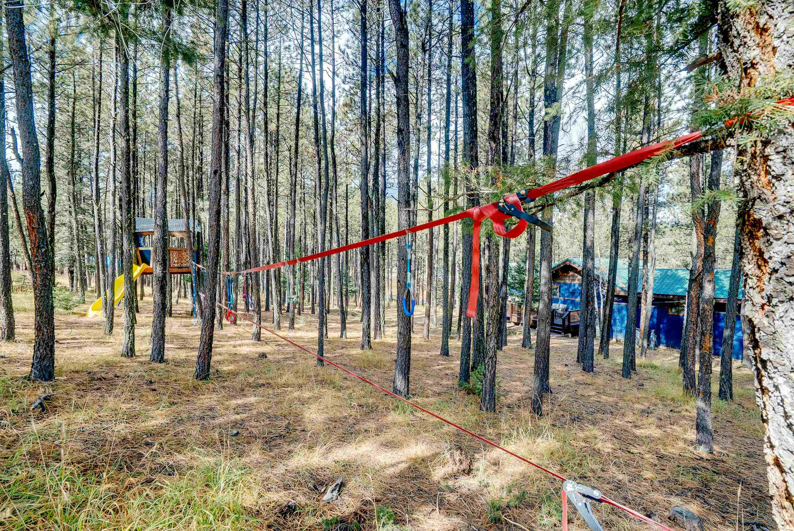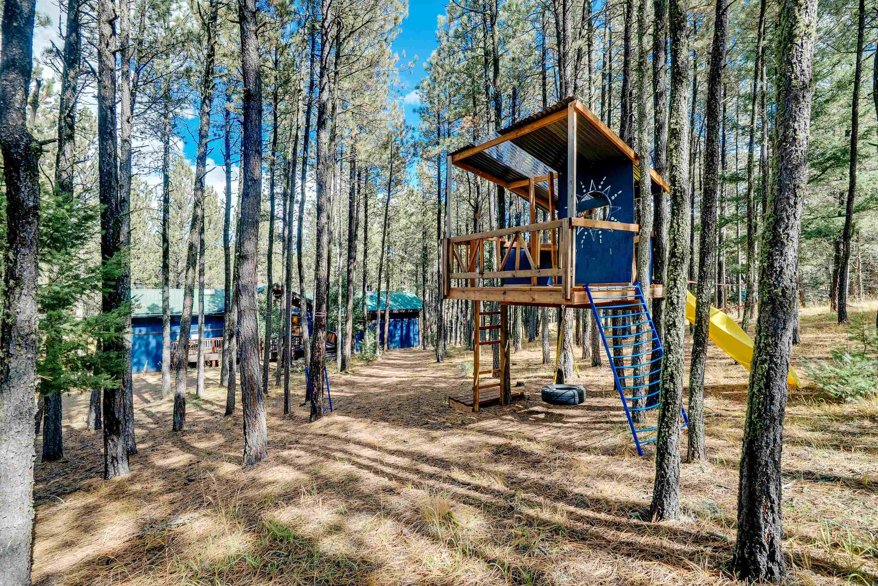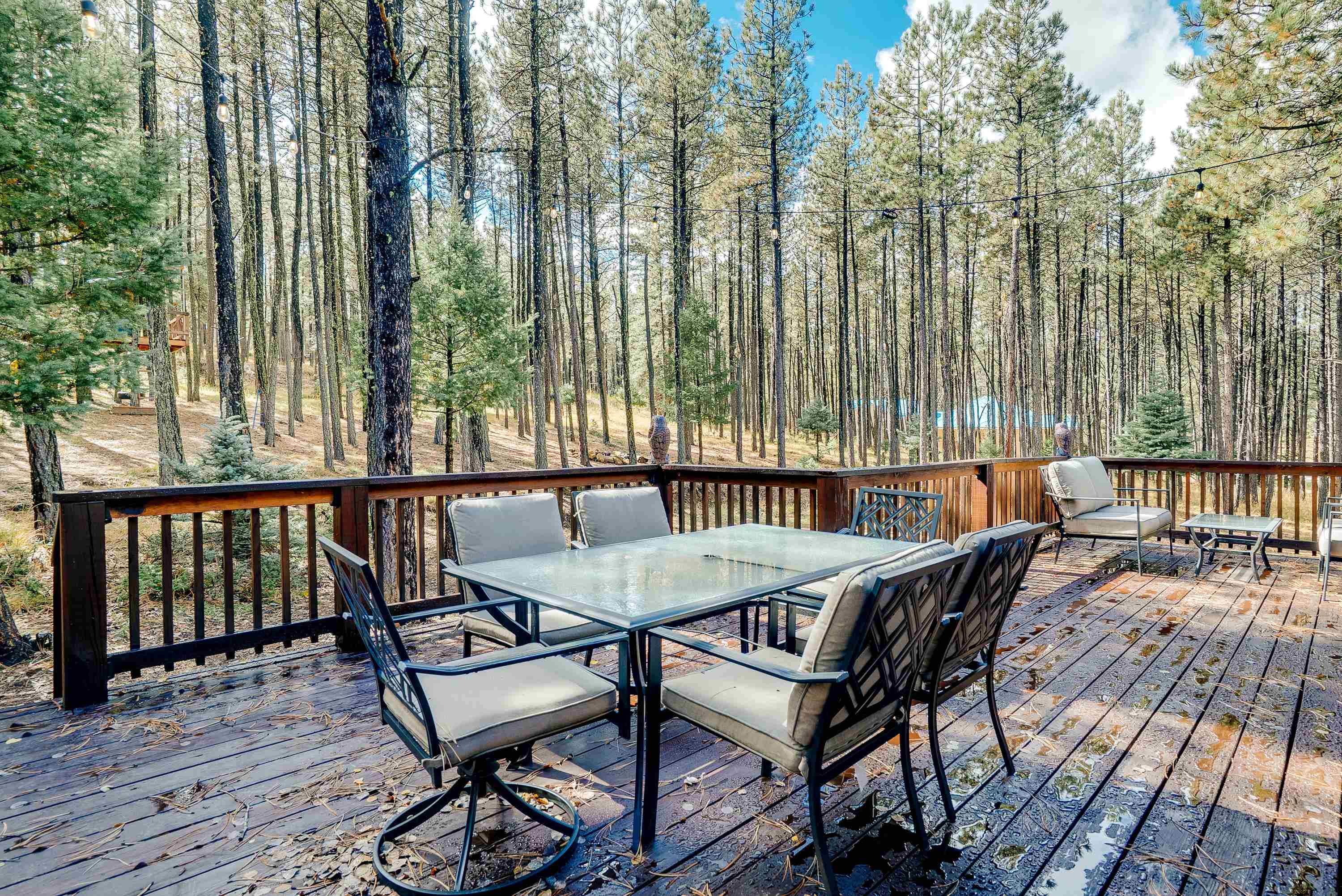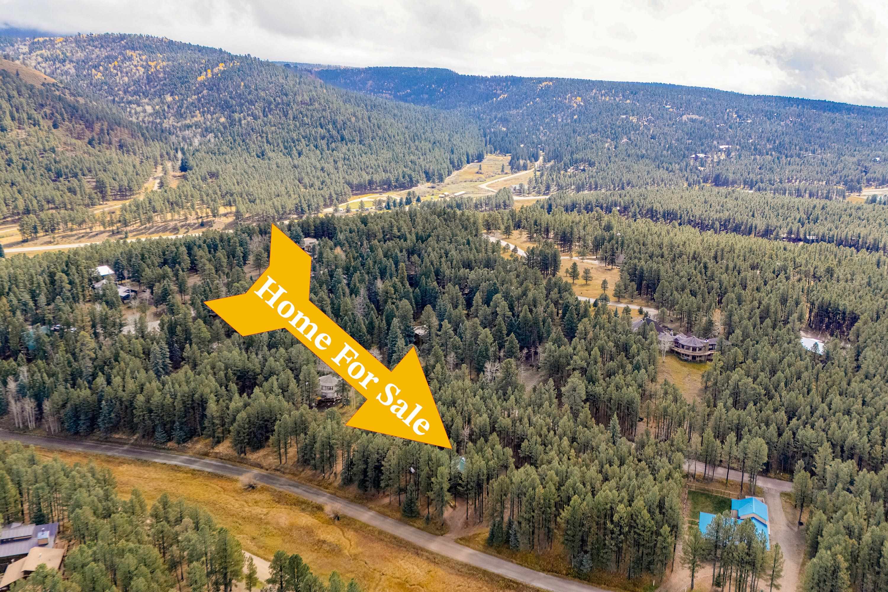 Tucked low in the Moreno Valley for easy, year-round access, this peaceful mountain retreat captures the best of Angel Fire living. Surrounded by towering pines on more than an acre of forested privacy, with a greenbelt across the street and no neighbors in sight, it's a place where the only sounds you'll hear are birdsong and the wind moving through the trees. Here, the days move at the pace of mountain life. Hop on your UTV or golf cart and ride to the Country Club, tee off at the golf course, or wander nearby hiking trails under clear summer skies. Just minutes away, Monte Verde Lake invites you to cast a line for trout, paddleboard or canoe across calm mountain waters, or stroll around its scenic shoreline. And when winter arrives, you're only a short drive from the ski mountain, Nordic Center, and sledding hill, then back home to a cozy wood-burning fire and the hush of the forest. Inside, rustic charm meets modern comfort. Quartz and marble countertops, LVP flooring, and a wood-burning fireplace create a warm, welcoming vibe. With four bedrooms and three full baths, there's space for everyone to gather. Outside, the zip-line, fort, and slack-line turn the backyard into a forest playground for kids and adults alike. Thoughtfully furnished and beautifully styled, this home is offered fully furnished and turn-key, right down to the details, so you can start enjoying it from day one. Whether you're looking for a personal retreat, a family getaway, or a ready-to-go short-term rental with sleeping for eight, 57 Sarazen Terrace delivers the freedom, connection, and serenity you've been searching for. Bring your suitcase and toothbrush, and step straight into Angel Fire living. To see everything included in the sale, contact your favorite REALTOR® for details and a private showing. AAFPO Membership is $1,695 paid annually (valid May 2025-April 2026)