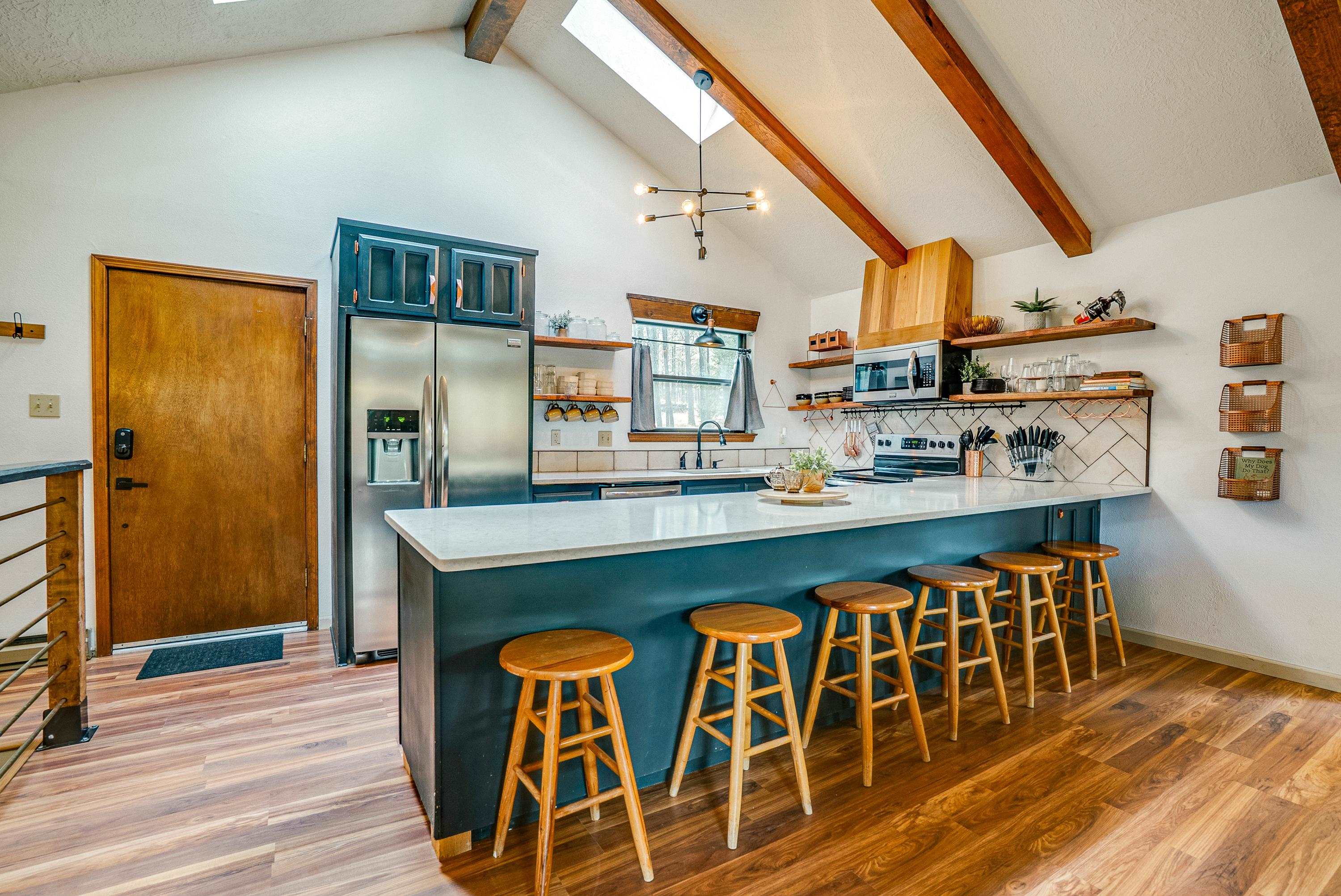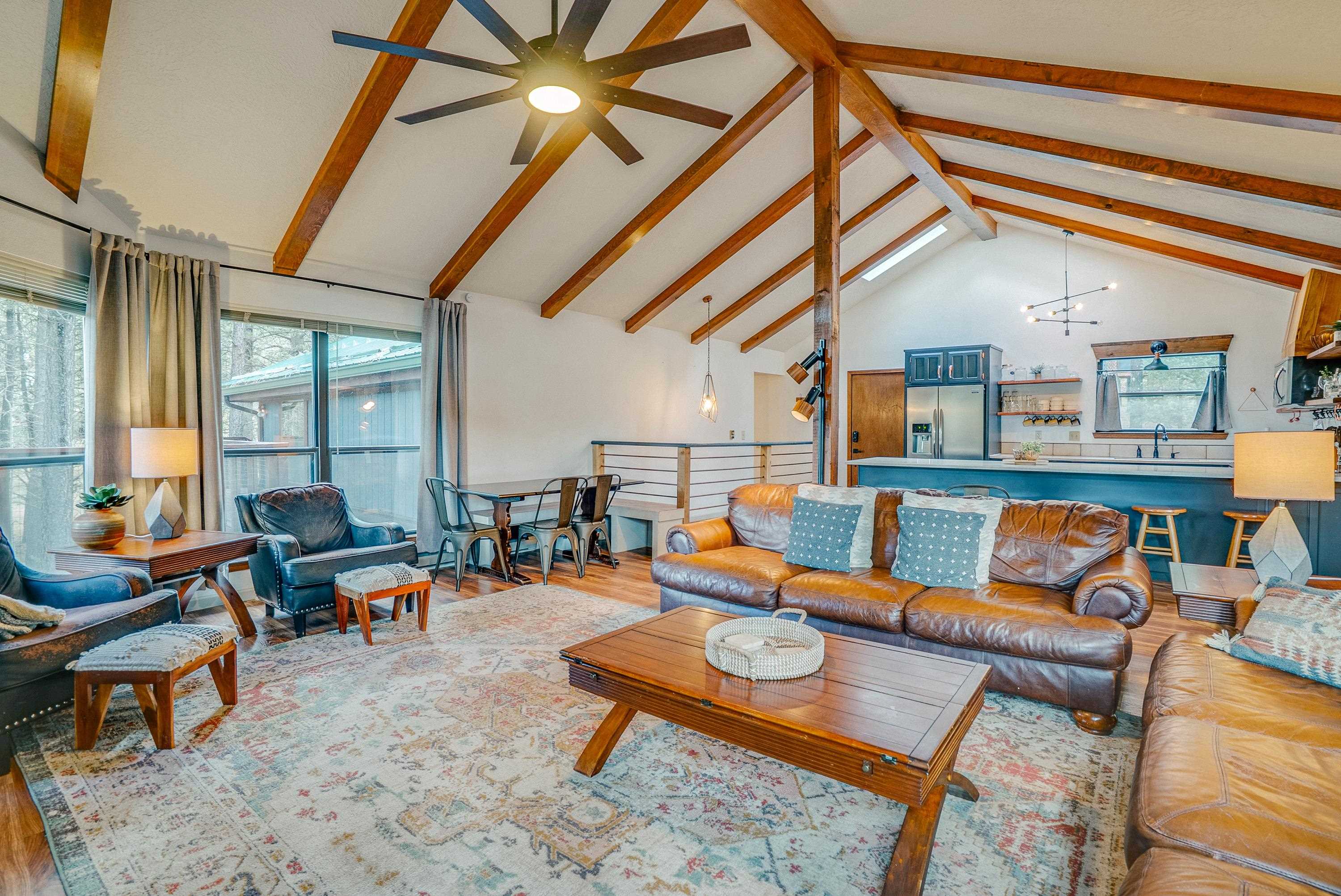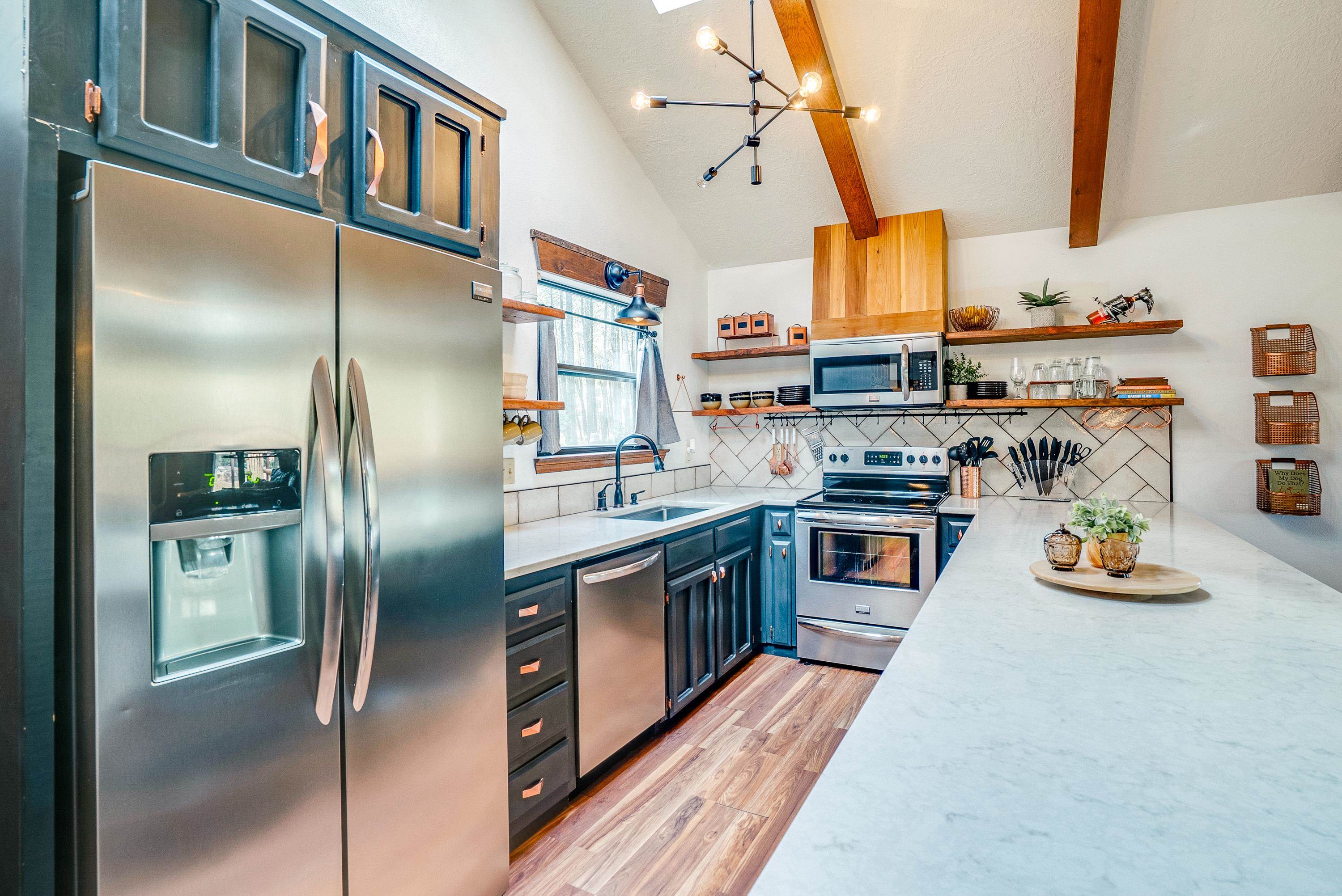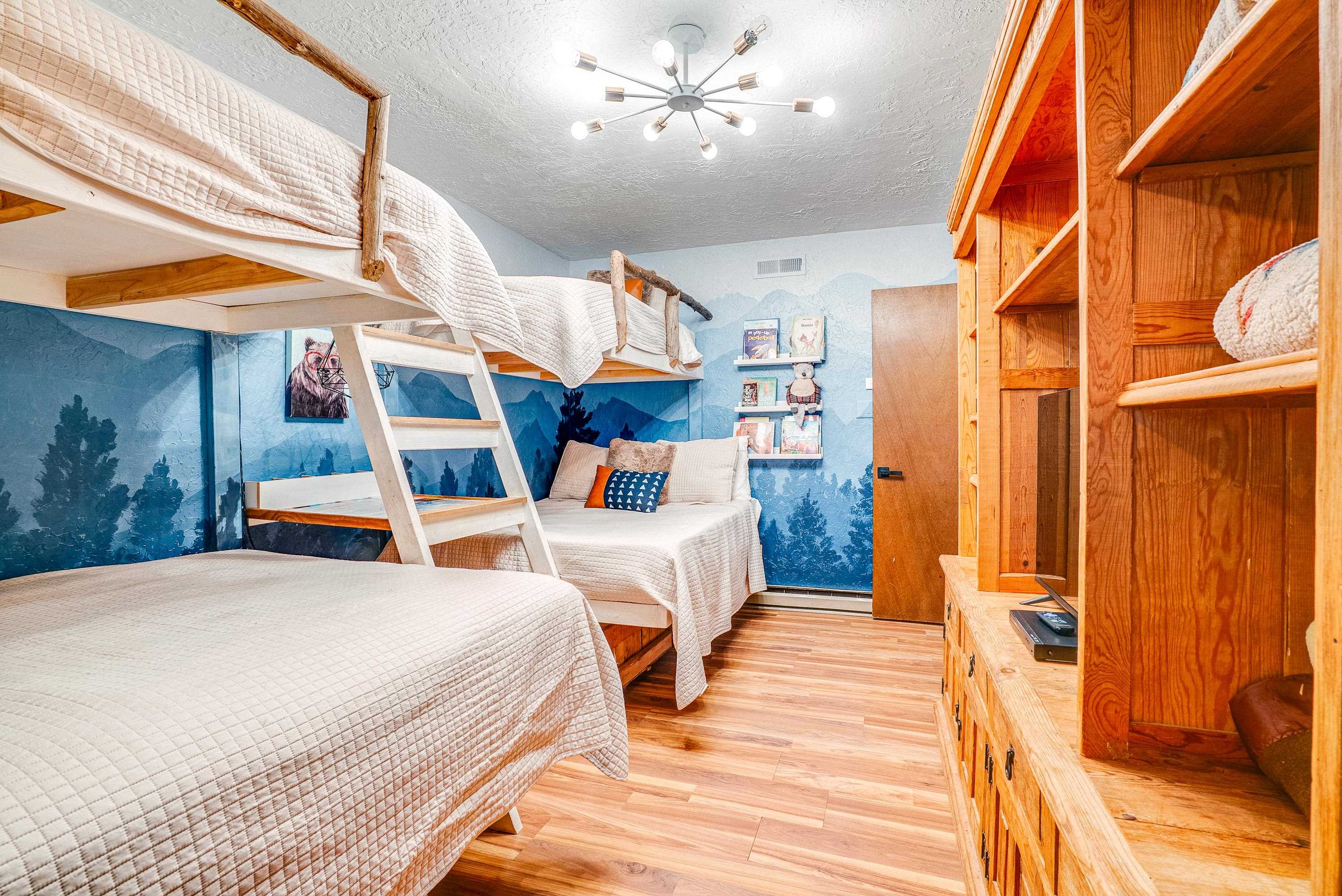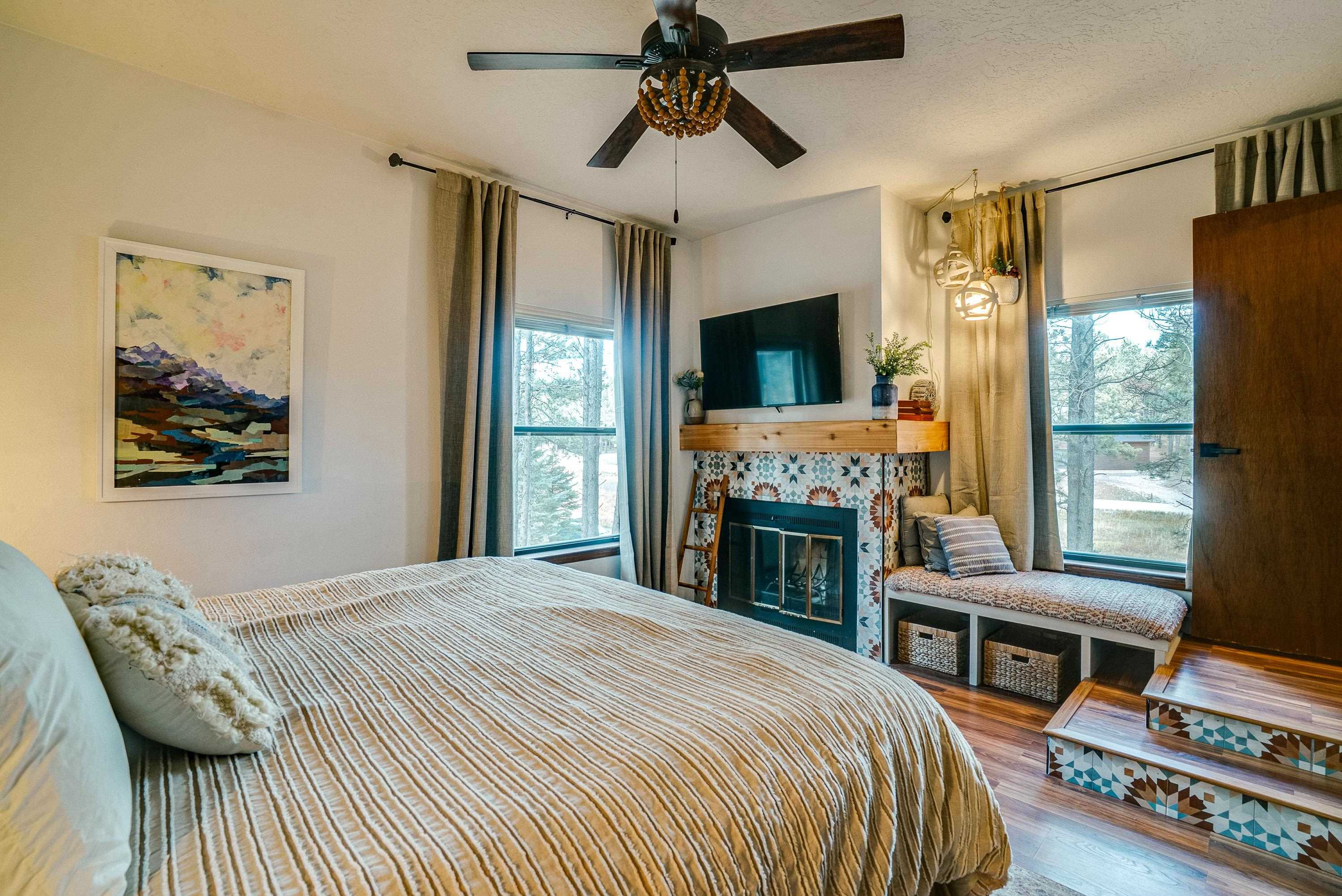 Tucked low in the Moreno Valley for easy, year-round access, this peaceful mountain retreat captures the best of Angel Fire living. Surrounded by towering pines on more than an acre of forested privacy, with a greenbelt across the street and no neighbors in sight, it's a place where the only sounds you'll hear are birdsong and the wind moving through the trees. Here, the days move at the pace of mountain life. Hop on your UTV or golf cart and ride to the Country Club, tee off at the golf course, or wander nearby hiking trails under clear summer skies. Just minutes away, Monte Verde Lake invites you to cast a line for trout, paddleboard or canoe across calm mountain waters, or stroll around its scenic shoreline. And when winter arrives, you're only a short drive from the ski mountain, Nordic Center, and sledding hill, then back home to a cozy wood-burning fire and the hush of the forest. Inside, rustic charm meets modern comfort. Quartz and marble countertops, LVP flooring, and a wood-burning fireplace create a warm, welcoming vibe. With four bedrooms and three full baths, there's space for everyone to gather. Outside, the zip-line, fort, and slack-line turn the backyard into a forest playground for kids and adults alike. Thoughtfully furnished and beautifully styled, this home is offered fully furnished and turn-key, right down to the details, so you can start enjoying it from day one. Whether you're looking for a personal retreat, a family getaway, or a ready-to-go short-term rental with sleeping for eight, 57 Sarazen Terrace delivers the freedom, connection, and serenity you've been searching for. Bring your suitcase and toothbrush, and step straight into Angel Fire living. To see everything included in the sale, contact your favorite REALTOR® for details and a private showing. AAFPO Membership is $1,695 paid annually (valid May 2025-April 2026)