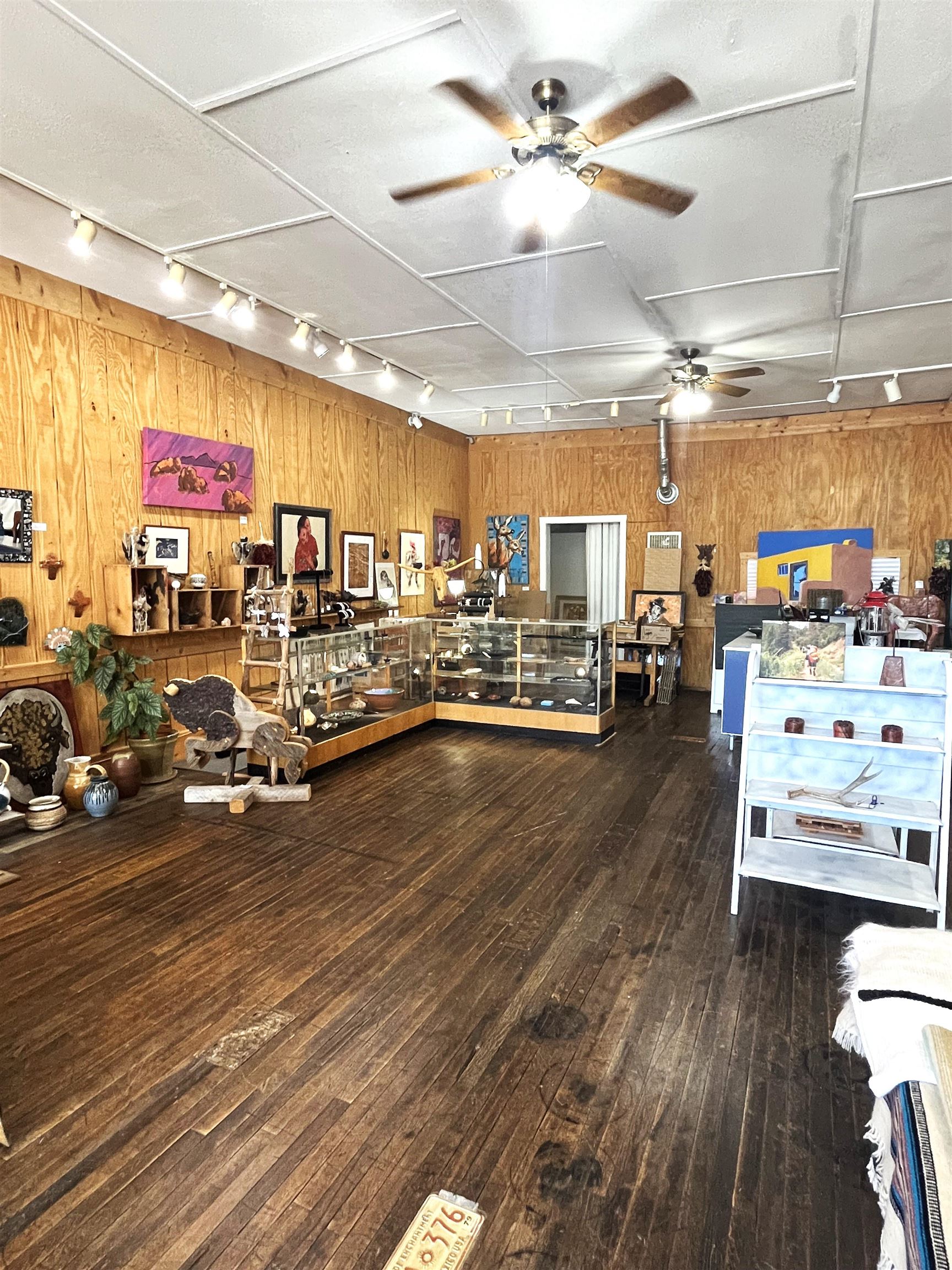 ENDLESS POSSIBLITIES WITH THIS HISTORICAL STORE FRONT AND LIVING SPACE!! Currently operating as the Blue Moon Art Gallery and Gift Emporium with an attached owner's suite. Located in the heart of historical downtown Cimarron, New Mexico, the building was originally the pharmacy and post office in 1910. This property boasts Expansive ceilings, fabulous store front windows, beautiful wood flooring, shade trees, gated alley entrance, covered parking, ample customer parking, space for gardening and relaxation, this property is full of potential. The flexible layout makes it ideal for a retail store, office, gift shop, and the ability to expand the owner's suite or use it as an Airbnb with additional income potential. There is even RV hookup in the back for visiting guests. The adjacent lot is set to become a new downtown park, adding even more value to the location. Retreat from the summer heat in the summer and enjoy the cool Sangre de Cristo Mountain air and snow ski in the winter. Cimarron serves as the gateway for travelers heading to Angel Fire, Eagle Nest, Red River and Taos making this a prime opportunity for a business or investment. This is an active gallery, so please contact the listing broker for any questions and for showings